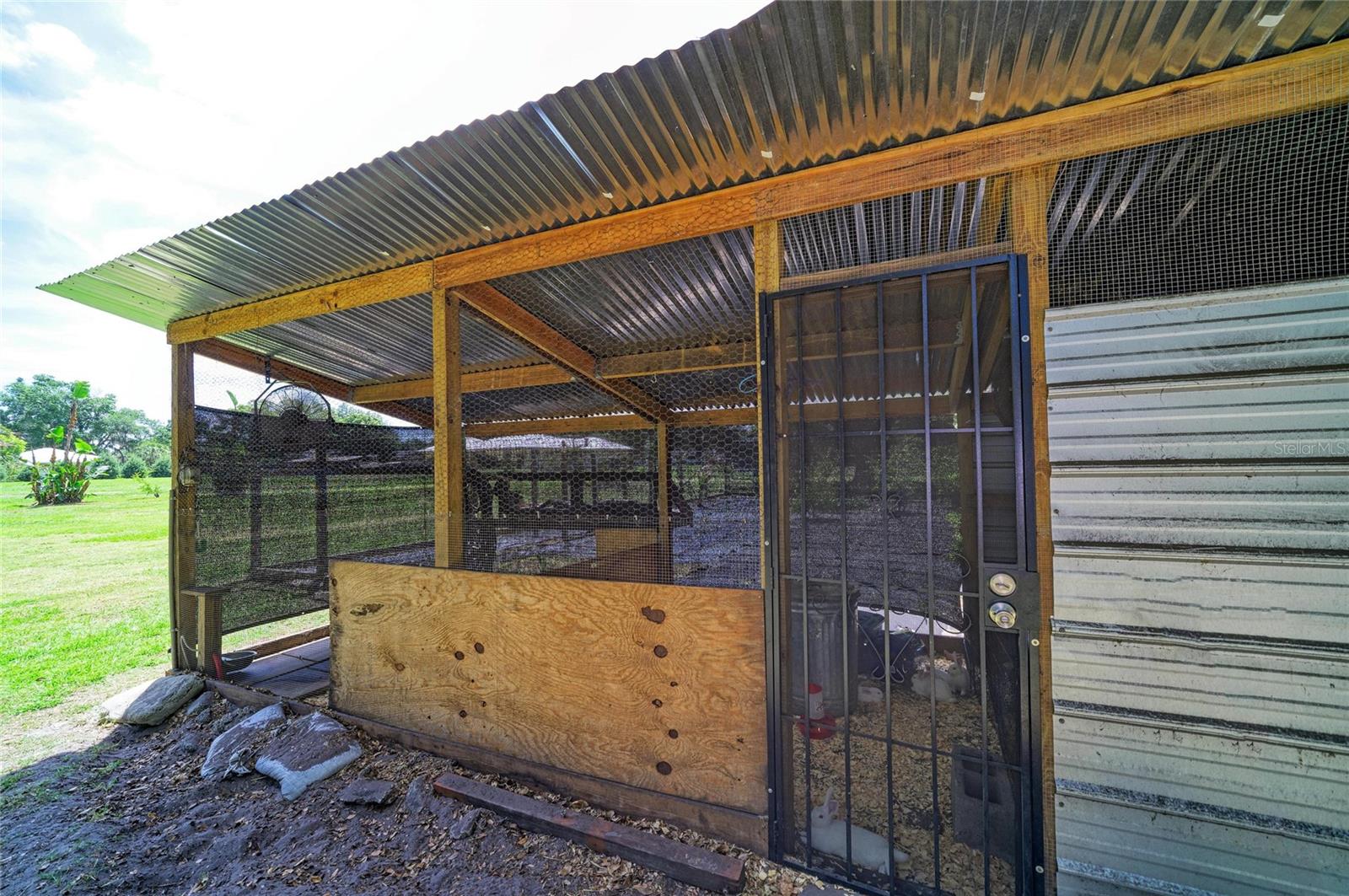 Welcome to your own private slice of paradise with NO HOA and NO CDD! Bring all the toys including the RV as the 220/110 volt hook up is already waiting for you! This impeccably maintained 3-bedroom, 2-bathroom single-family home sits on a cross-fenced 1-acre property, offering the perfect blend of peaceful country living with everyday convenience. The updates in the home and property are numerous, be sure to ask for a complete list of the upgrades and features!From the moment you arrive, you'll appreciate the pride of ownership throughout, starting with the exterior curb appeal, beautiful landscaping, and cozy covered front porch with bench seating. Inside, the home features vaulted ceilings, fresh interior paint, new carpet in one of the bedrooms and thoughtful updates that create a bright, open, and inviting atmosphere. A newer roof adds peace of mind, while the well-maintained condition makes this home truly move-in ready. All bedroom closets have custom built-in storage systems, and there is a reverse osmosis system in the kitchen too! Step out through your French doors to your freshly painted screened in and covered back porch, while admiring your multiple vegetable gardens. Feel secure knowing you have an exterior generator hookup, emergency water tanks (approx. 1,200 gallons) and a wired home security system with 8 channels.On your 1 acre sprawling property you'll feel truly free. Harvest your fruits and vegetables in the existing multiple gardens, and enjoy the large chicken pen with hatching area and a large rabbit pen. The chickens and rabbits can be purchased too! 19 Rhode Island Red-hatched egg layers and "Florida White" rabbits, 1 buck & 2 doe. The property includes a plethora of plants including Travelers Palm, Silver Bismark Palm, Triangle Palm, East African Acacia, Norfolk Pine, Bougainvillea, Bromeliad, Mango, Guava, Fig, Ponderosa lemon, Persian lime, 2 types of banana trees, calamondin-citrus, castor bean, coconut, ginger, desert rose, hibiscus, aloe vera, staghorn fern, multiple succulents, pineapple, queen of the night and more! This property is perfect for those looking to embrace a more self-sufficient lifestyle.Enjoy the private, tucked-away feel, yet still just minutes from everything you need--grocery stores, shopping, and a variety of restaurants--making this an ideal location that offers both convenience and tranquility. If you've been searching for space, privacy, and flexibility without sacrificing location, this is the one.