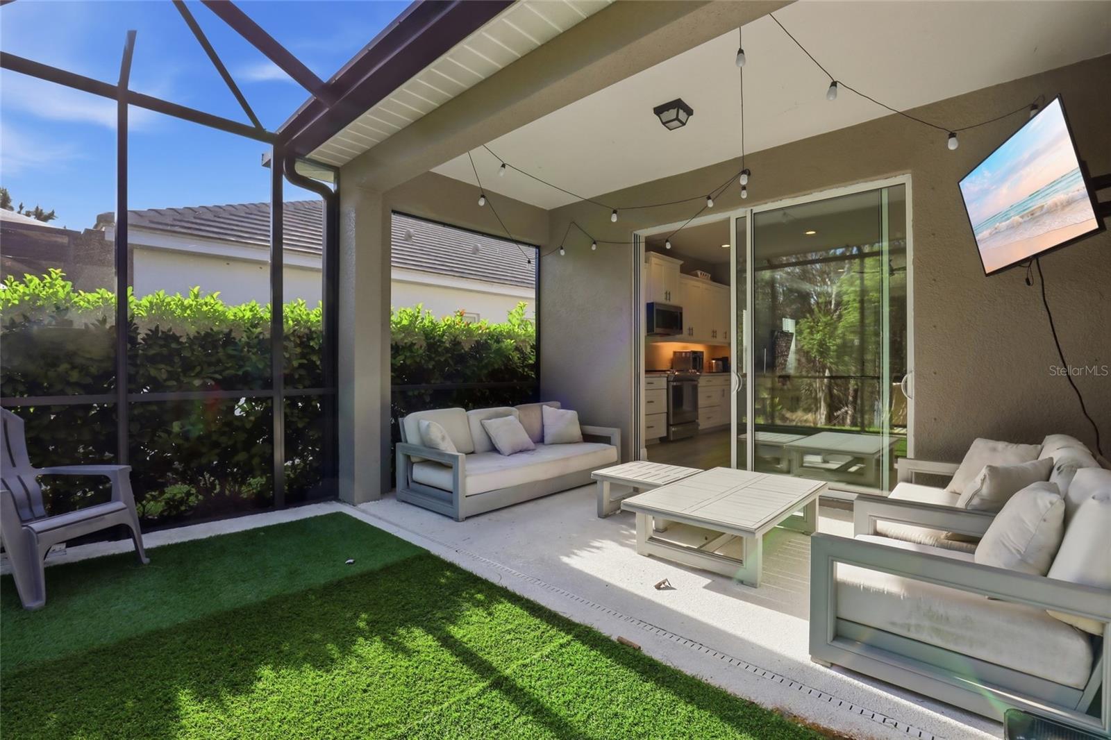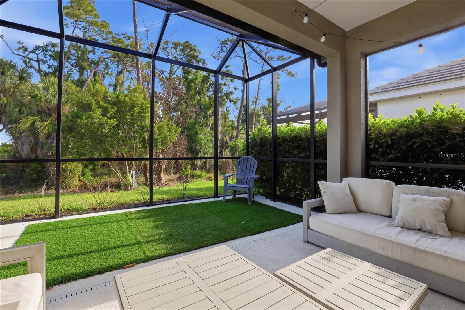 Welcome to Indigo at Lakewood Ranch, where low-maintenance living meets modern design and a true sense of community. Built in 2023 by Neal Communities, this Liberty 3 floor plan offers a smart layout with 3 bedrooms and 2 bathrooms, all set on a private preserve homesite that delivers peaceful views and added privacy. Inside, the home feels open and inviting, with durable wood-look tile running throughout the main living areas. The kitchen is both functional and stylish, featuring quartz countertops, a gas range, and clean, modern finishes that tie the space together. It opens effortlessly into the dining and living areas, making it ideal for everyday living or hosting guests. The primary suite is tucked away for privacy and features a spacious layout with dual sinks, a walk-in shower, and a large closet. At the front of the home, two additional bedrooms and a full bath create a comfortable setup for guests, family, or a home office. Step outside to a generously sized screened lanai overlooking a preserve backdrop -- no rear neighbors, just a quiet, natural setting. Whether it's morning coffee or winding down in the evening, this is a space you'll use year-round. Additional highlights include impact-rated windows and doors, a tile roof, a separate laundry room, and an oversized two-car garage with plenty of storage. Living in Indigo means access to a full lineup of amenities, including multiple pools and spas, a fitness center, pickleball and bocce courts, and an active social calendar curated by a full-time lifestyle director. Lawn care and irrigation are included, allowing you to truly enjoy a lock-and-leave lifestyle. Conveniently located near shopping, dining, golf, and some of the area's best beaches, this home offers the kind of everyday ease that makes Florida living so appealing.
