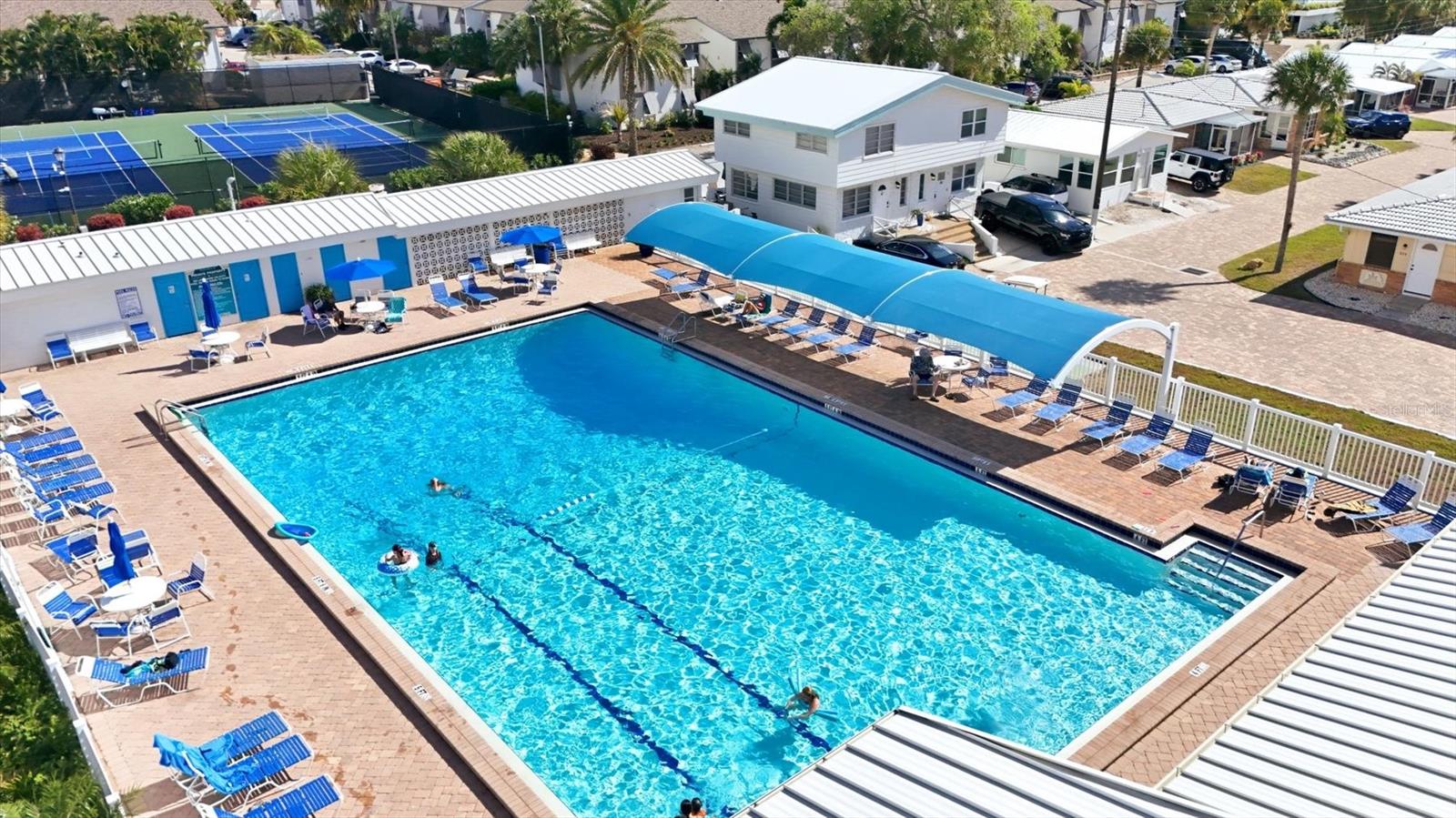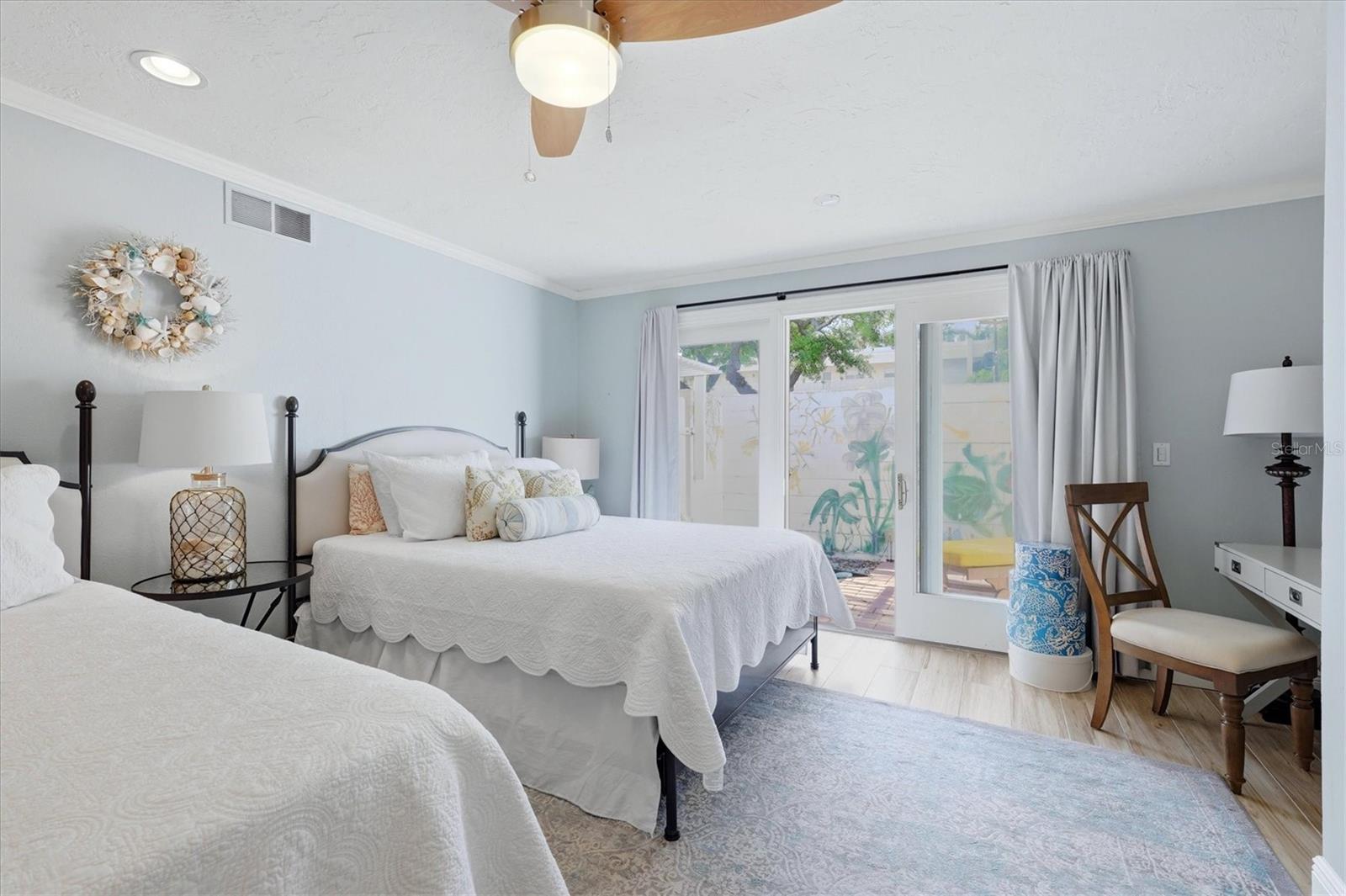Make this beautifully decorated and extensively updated, maintenance-free, open floor plan, free-standing villa your very own piece of paradise. Offering two spacious bedrooms and bathrooms, a flex (den) space, a full size washer and dryer, and your very own lush private patio oasis, all designed with comfort and style in mind. No need to compromise between bay or beach access, with deeded access steps away from your Siesta Key retreat. Added peace of mind comes from no flooding or storm damage sustained from past storms, with the community located on one of the higher elevation points on the Key. Some of the many updates include an extensive renovation to replace the old 1960s cast iron drain lines under the property's slab with all-new PVC lines. Once completed, designer selected wood look tile flooring was added throughout the majority of the home. This intrusive, time-consuming, and costly project has already been completed, putting a new owner at ease regarding future concerns and major costs. The roof and A/C are new as of 2025. The primary bathroom has been completely updated, along with new hardscaping and landscaping. Handpicked light fixtures and ceiling fans have been installed, along with brand new solid core doors throughout the home to reduce noise from room to room. New coastal colors and tones have been added to the interior, along with wider doorways and all new appliances within the past two years. The residence invites plenty of natural light into the home, with multiple windows and sliding glass doors enhancing the appeal of the split floor plan. The primary and guest suites are located on opposite sides of the villa, providing ample space and privacy for all. The kitchen features an abundance of soft closing cabinets, granite countertops, a large pantry, and stainless steel appliances. Throughout the villa, you will find plenty of built-in storage closets, crown molding, as well as both a walk-in shower (primary) and a soaking tub (guest). Open your three sliding glass doors to create a seamless extension of your living space into your private tropical sanctuary, complete with an outdoor shower. The guest suite also includes its own personal outdoor space. When you are ready to venture out and enjoy your surroundings, there is an endless list of options to keep you busy. Enjoy your morning coffee while watching the sunrise and wildlife at the community's bay front park with a new seawall. Here, you will find a kayak launch with two storage racks specifically for your use. Head out on the water kayaking/paddle boarding among dolphins and manatees, or enjoy boating, jet skiing, or fishing for dinner. The community's bay front park also includes a day dock for residents' use. Ready to break a sweat or make new friends? Head to the public pickleball courts just a ten minute walk away. Prefer to take things a little slower? Choose between relaxing on the beach with the sand between your toes or reading a book by the pool, with deeded access to the beach and one of the largest heated pools on Siesta Key via Aloha Kai across the street. No need to bring chairs to the beach or pool, as they are provided for your convenience. Catch the free trolley to enjoy a casual lunch, happy hour, or a fine dining dinner. End your days watching the sunset over the Gulf with your drink of choice. Owners can rent their property on a monthly basis with three weekly rentals permitted a year (outside of Jan-March) and can have one small pet.