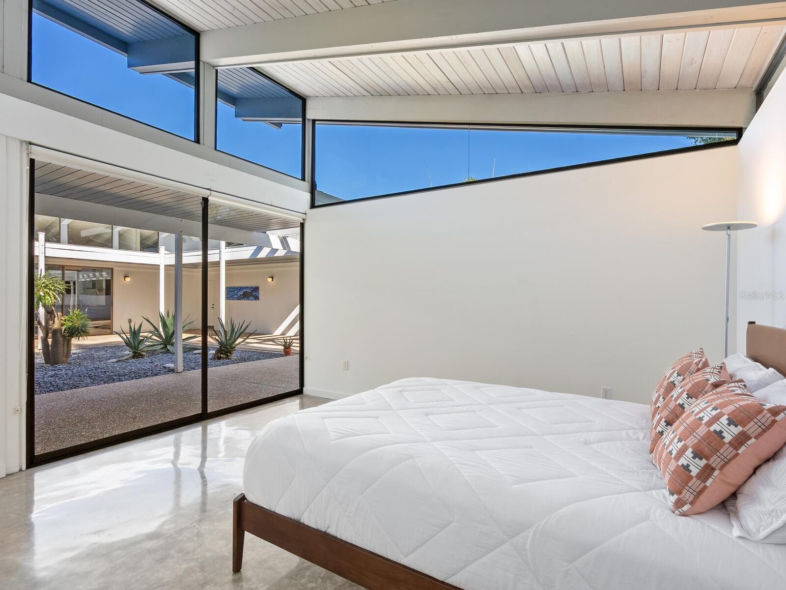 Now is your chance to own an important mid-century modern classic! The Bechtel House (1967), was designed by Seibert Architects' Edward "Tim" Seibert FAIA, one of the Founders of the Sarasota School of Architecture. This iconic property is all about private courtyard living at its finest, with polished concrete floors, soaring ceilings, clerestory windows and sliding walls of glass which open interior rooms to an outstanding 40'x40' walled-in private patio complete with central gardens and a 28'x14' inground swimming pool. Recent improvements include new roof (2025), new water heater and electrical updates. This one-of-a-kind home is located near the Ringling Museum of Art, universities and the 1920s-era Sara Bay Golf & Country Club. Its great location provides easy access to the best shopping, airport, museums, restaurants, celebrated contemporary and classic performing and visual arts, first class sandy beaches and everything Sarasota and the Gulf Coast of Florida is known for. Flood insurance is NOT required. NOTE: Architectural Drawings and survey are available for your kind review.