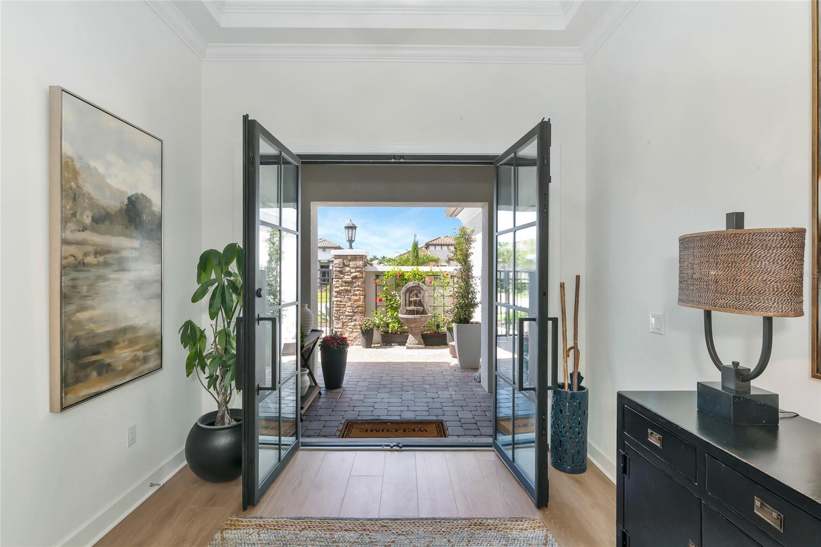 A true standout within Azario at Lakewood Ranch, this Pallazio model delivers a refined take on Florida luxury living -- combining high-end finishes, smart design, and a setting that's hard to replicate.From the moment you arrive, the private courtyard entry sets the tone. A tranquil water feature and custom double glass front doors create a clean, striking first impression while bringing in natural light right from the start. Inside, the home carries a crisp, modern feel with thoughtfully selected upgrades throughout. The kitchen is exactly what buyers are looking for -- quartz countertops, upgraded cabinetry, stainless steel appliances -- all opening seamlessly into the main living space for a layout that just works.Out back is where this property separates itself. The recently completed pool sits against a private preserve backdrop, giving you a level of privacy that's getting harder to find. The covered lanai is oversized and dialed in with a full summer kitchen, making it just as suited for hosting as it is for a quiet night at home.The primary suite is positioned as a true retreat with a large walk-in closet and a well-appointed bath featuring dual vanities and a walk-in shower. Guest bedrooms are thoughtfully laid out, including one with its own en suite, and the den gives you flexibility for an office, media room, or overflow space depending on how you live.Azario continues to be one of the most sought-after communities in Lakewood Ranch for a reason -- offering a full amenity package including resort-style pool, fitness center, tennis, pickleball, on-site dining, and championship golf, all within a gated setting.Fully finished, move-in ready, and dialed in where it counts; this is the kind of property buyers are hoping to find but rarely do.A full 3D virtual tour is available, giving buyers the ability to walk the home, understand the layout, and experience the flow before ever stepping inside.