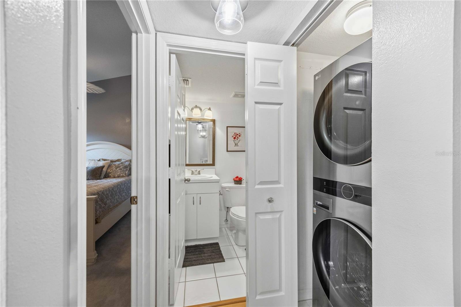 Welcome to Pinestone at Palmer Ranch, one of Sarasota's most desirable gated communities offering true resort-style living in the heart of Palmer Ranch. This beautifully updated unit delivers the perfect blend of style, comfort, and convenience. This natural light-filled residence features vaulted ceilings and an open-concept layout, enhanced by rich bamboo flooring and LED recessed dimmable lighting, creating a warm yet modern ambiance throughout. The beautifully updated kitchen showcases elegant quartz countertops, a mosaic tile backsplash, newer stainless steel appliances and thoughtful finishes that elevate both form and function. Designer ceiling fans and a mobile-controlled thermostat add comfort and efficiency, while a stackable washer and dryer provide everyday convenience. The split-bedroom floor plan offers privacy for both owners and guests, with spacious living and dining areas that flow seamlessly to a private screened lanai perfect for morning coffee or relaxing evenings. Residents enjoy lush tropical surroundings and an impressive array of amenities, including a resort-style heated pool and spa, fitness, billiards room, library, tennis and pickleball courts, shuffle board, basketball, fire pit, BBQ grills, there is even a private community theater! An active social calendar and welcoming atmosphere make this community truly stand out. Ideally located just minutes from Siesta Key Beach, as well as shopping, dining, and the Legacy Trail, with easy access to I-75, this home offers the best of Sarasota living. Whether you're searching for a full-time residence or a seasonal getaway, this move-in ready condo checks all the boxes for easy Florida living. ***Couch, loveseat and area rug in living room, conveys with sale.
