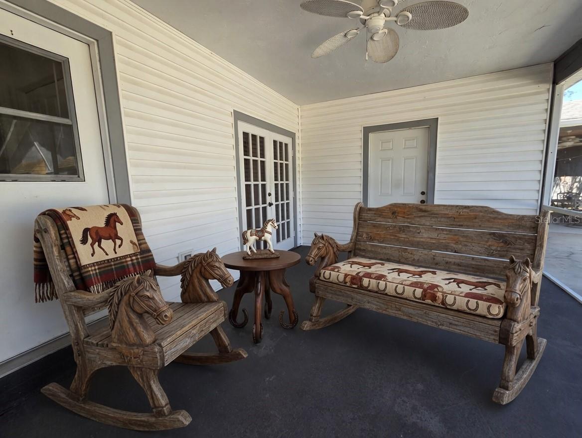 One or more photo(s) has been virtually staged. The ultimate equestrian estate in prestigious gated Saddle Creek is now available- a true horse lover's paradise!Drive through the gated entrance of Saddle Creek and discover one of Sarasota's most exclusive equestrian enclaves -- a peaceful, deed-restricted community of 5+ acre estates where horses graze beneath ancient oaks. Miles of private bridle paths -- Palomino Trail, Bridle Path, Saddle Creek Way, and more -- wind right from your back gate. This is authentic Florida horse country with easy access to I-75, yet you're surrounded by like-minded owners who live the equestrian lifestyle year-round.The on-site facilities are built for serious horse enthusiasts. You'll find three expansive barns: 2 connected directly to the home by covered breezeways, plus 1 free-standing barn with a half bath! The concrete attached barn (50x30) has 4 stalls (10x11 each), an 18x12 tack room, 10x16 mud room, 14x11 feed room, and a 13x17 tool room. The 2nd barn (70x 22) has 7 stalls (12x10 each), and the 3rd metal barn (48x 22) has 4 stalls (12x12 each). Together they offer a full complement of stalls, tack rooms, feed storage, a convenient half-bath, and a wash station. The entire 5+ acre property is fully fenced and cross-fenced, with an arena, paddocks and open pasture ready for daily turnout and training.These same barns also provide incredible versatility beyond horses -- ideal for a car collector, carpenter's workshop, additional storage, or any hobbyist needing large outbuildings with electricity and easy access.Inside the comfortable 3-bedroom, 2-bath single-level home(shown here virtually staged to illustrate its excellent flow and potential), you'll love the warm, open layout designed for easy living between house and barns. The spacious great room features a stunning double-sided stone fireplacethat opens to both the living area and the primary suite. The kitchen offers stone countertops and stainless-steel appliances, while the adjacent dining area and bonus room provide flexible space for clients or family. A generous screened porch and multiple covered patios create seamless indoor-outdoor living. You're a quick 20-minute drive from TerraNova Equestrian Centerin Myakka City -- Florida's premier destination with 6 state-of-the-art competition arenas, an Olympic-level cross-country course, 250+ permanent stalls (expanding soon), and a year-round calendar of international-level hunter/jumper (including CSI2* and National), dressage, eventing, and combined driving events.A short, easy drive south puts you at Fox Lea Farmin Venice -- the family-friendly 50-acre boutique venue that hosts the popular 9-week Venice Equestrian Tour, weekly Grand Prix "Show Jumping Under the Stars," plus Quarter Horse, Appaloosa, and dressage shows.When the big leagues call, world-renowned WEC in Ocalais a manageable, scenic 2.5-hour drive -- close enough for weekend clinics or major events without ever feeling far from home.Add quick access to Sarasota Memorial Hospital, top-tier shopping, dining, and the stunning Gulf beaches -- "The Water" is literally minutes away for sunset rides or client entertaining.This rare gated-community equestrian estate delivers serious barn infrastructure, endless private trails, and prime positioning on Florida's premier show circuit. Whether you're a full-time trainer, a passionate horse owner, or someone who wants the ultimate equine lifestyle with room to grow, this property offers it all year-round.
