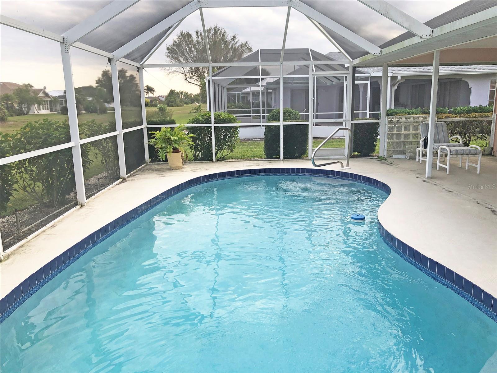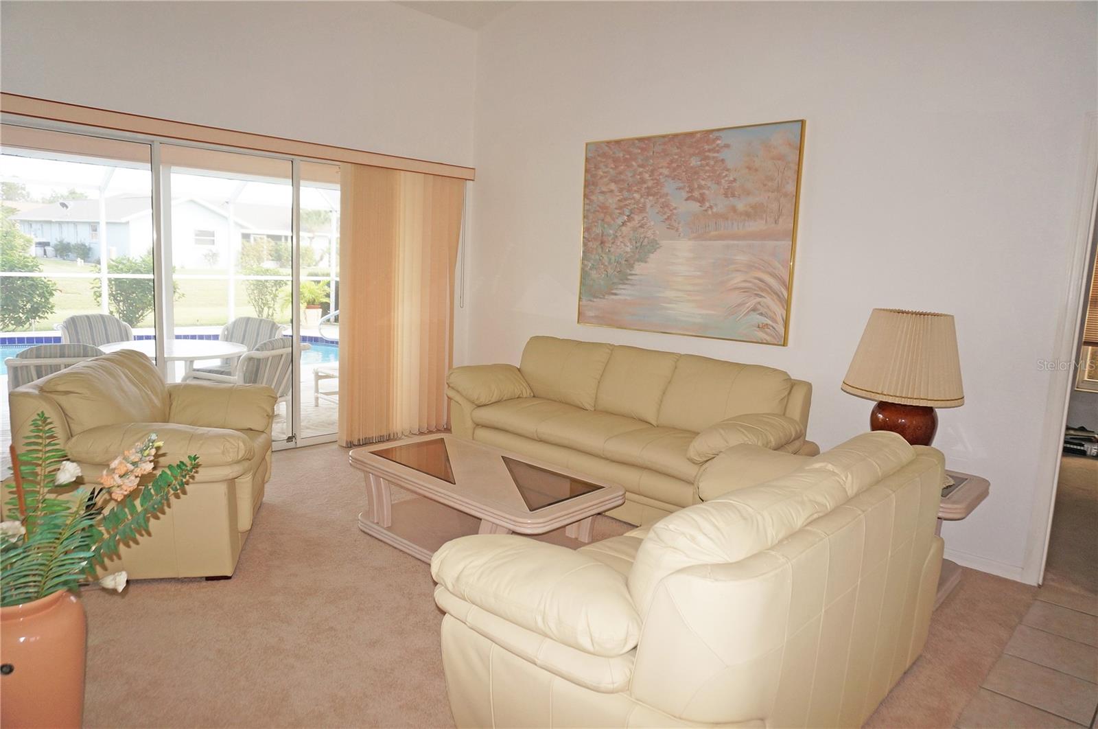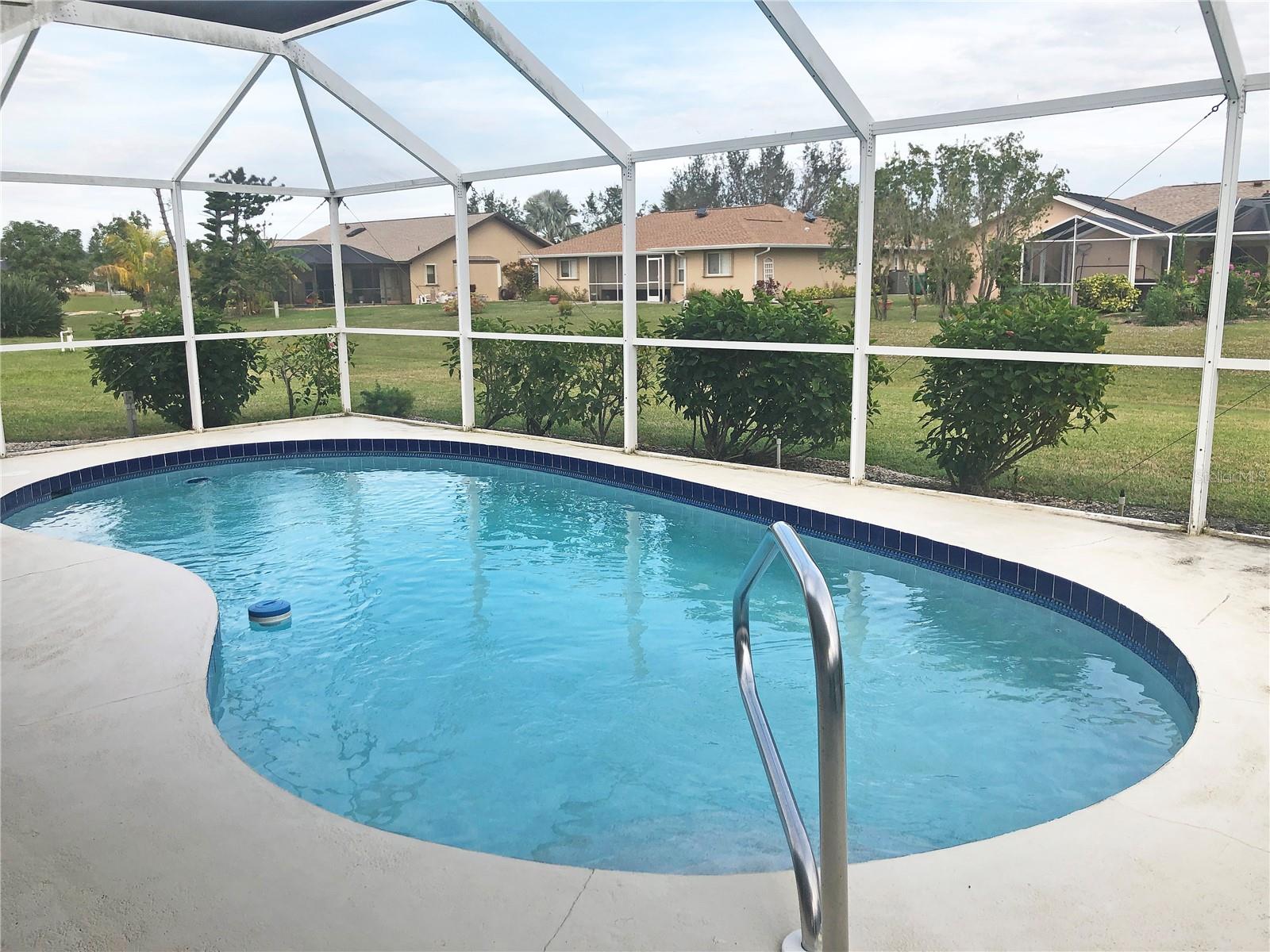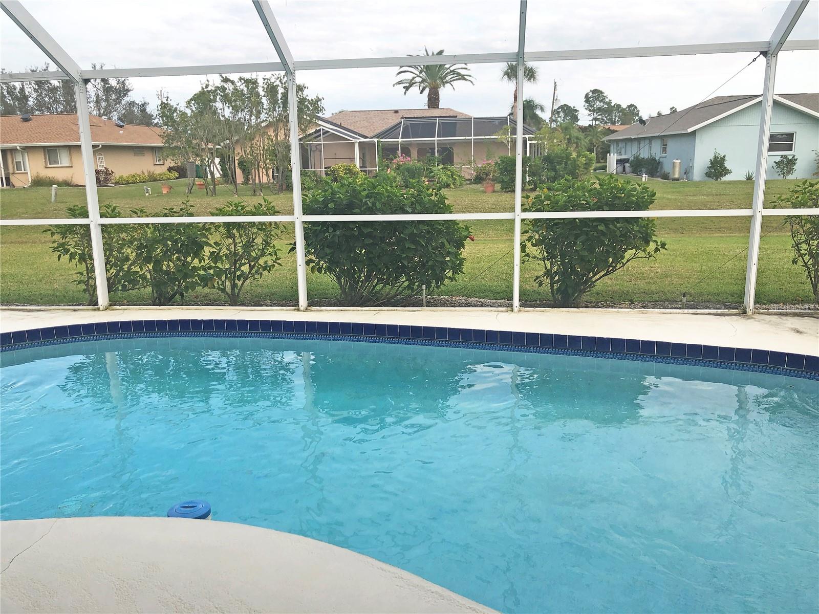 Spacious 3 Bedroom, 2 Bathroom *FURNISHED* POOL HOME with attached 2 Car Garage located in the desirable deed restricted community of Deep Creek....Located on a quiet dead end street yet only minutes from amenities. This light and bright home offers an open and split bedroom floor plan with Living Room, separate Dining Room, Family Room, well equipped Kitchen, Inside Laundry with washer and dryer.. The Living Room has high ceilings, a skylight and sliding glass doors to the lanai. The Kitchen features great counter and cabinet space, closet pantry, built in desk, breakfast bar and dining area overlooking the pool. The large Master Bedroom suite features lanai access, walk in closet and private bathroom with walk in shower and dual sinks. There are two additional generous sized bedrooms and the guest bathroom has a tub/shower comb. The garage has a hurricane door, screened sliders across the entrance, pull down attic. Your living space extends via pocket sliding glass doors to the screened lanai and pool area with large covered area, 26x13 inground pool and plenty of deck for sunbathing. Enjoy the peaceful greenbelt view. **NEW ROOF 2021**....**NEW A/C 2021**...Other features include: irrigation system, rain gutters, screened front entry, double door entry with transom window, cathedral ceiling, plant shelves. Utilities are county water and sewer. HOA is only $165/ year. This home is 10 minutes from Golf, shopping, dining, entertainment, I-75 and is a short drive to medical care and waterfront parks, boat ramps, fishing piers. Easy drive to world class fishing on Boca Grande, gorgeous Gulf beaches in Englewood and Venice. This home is perfect for a family or those expecting lots of winter visitors!