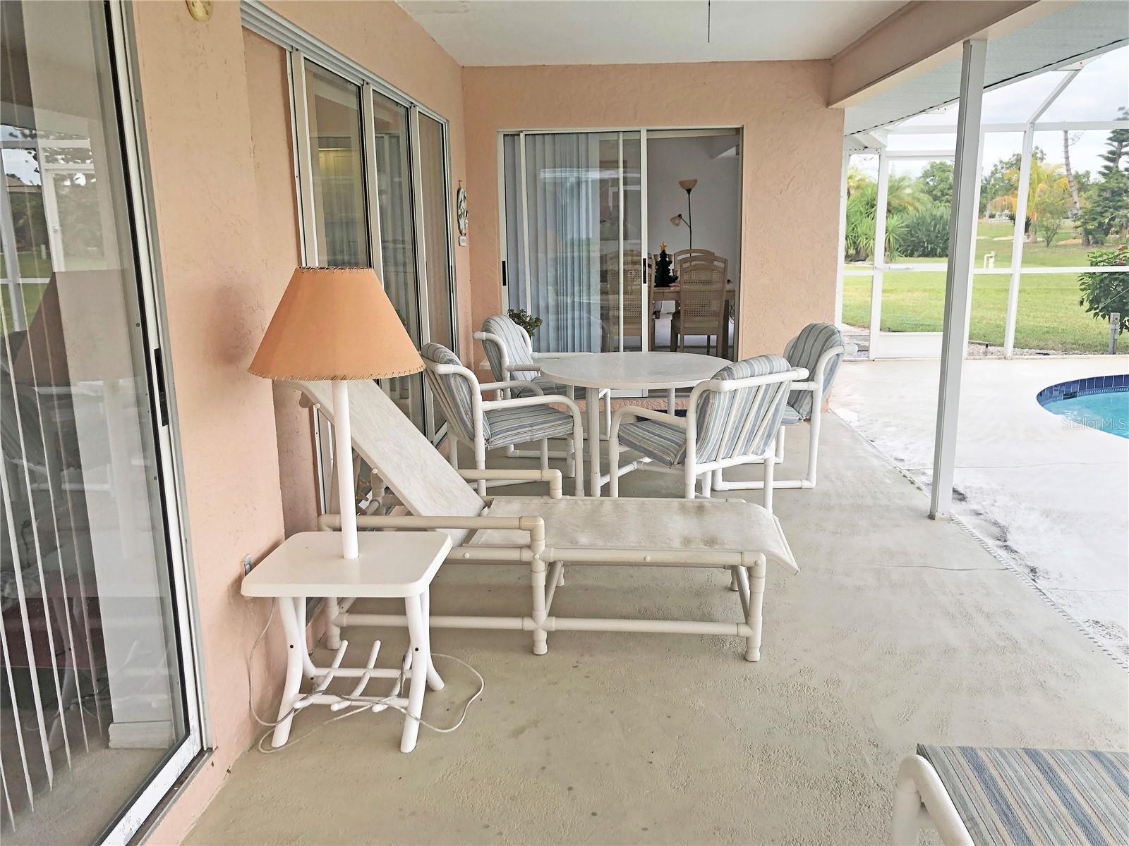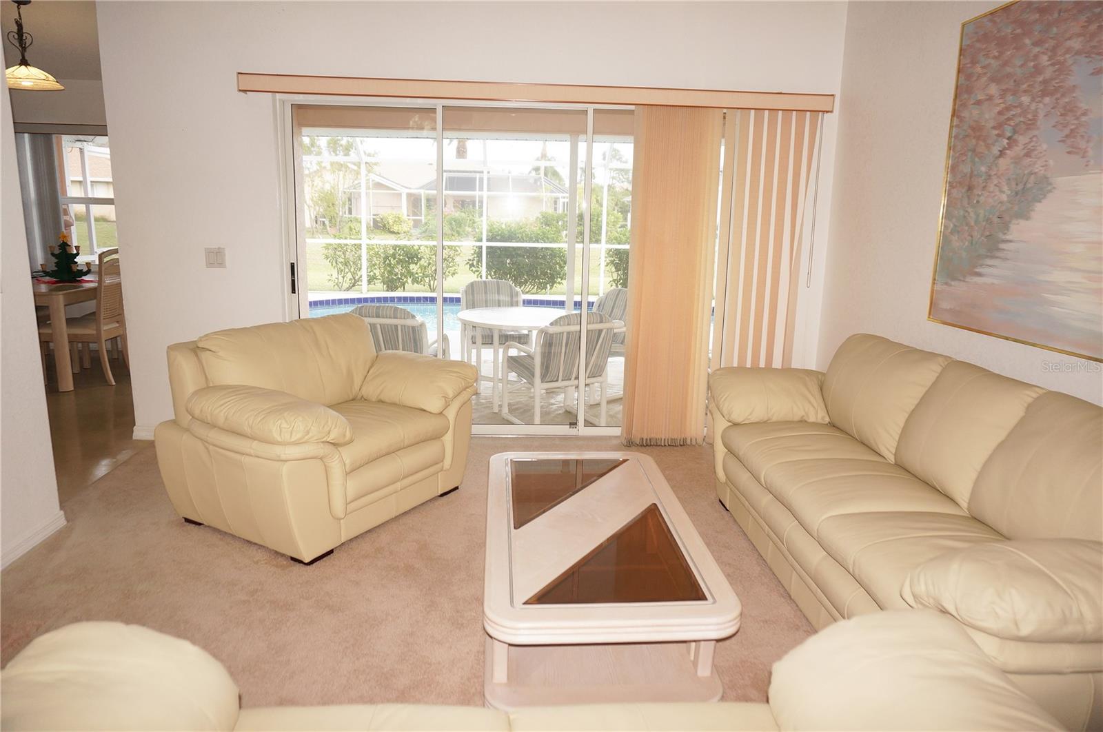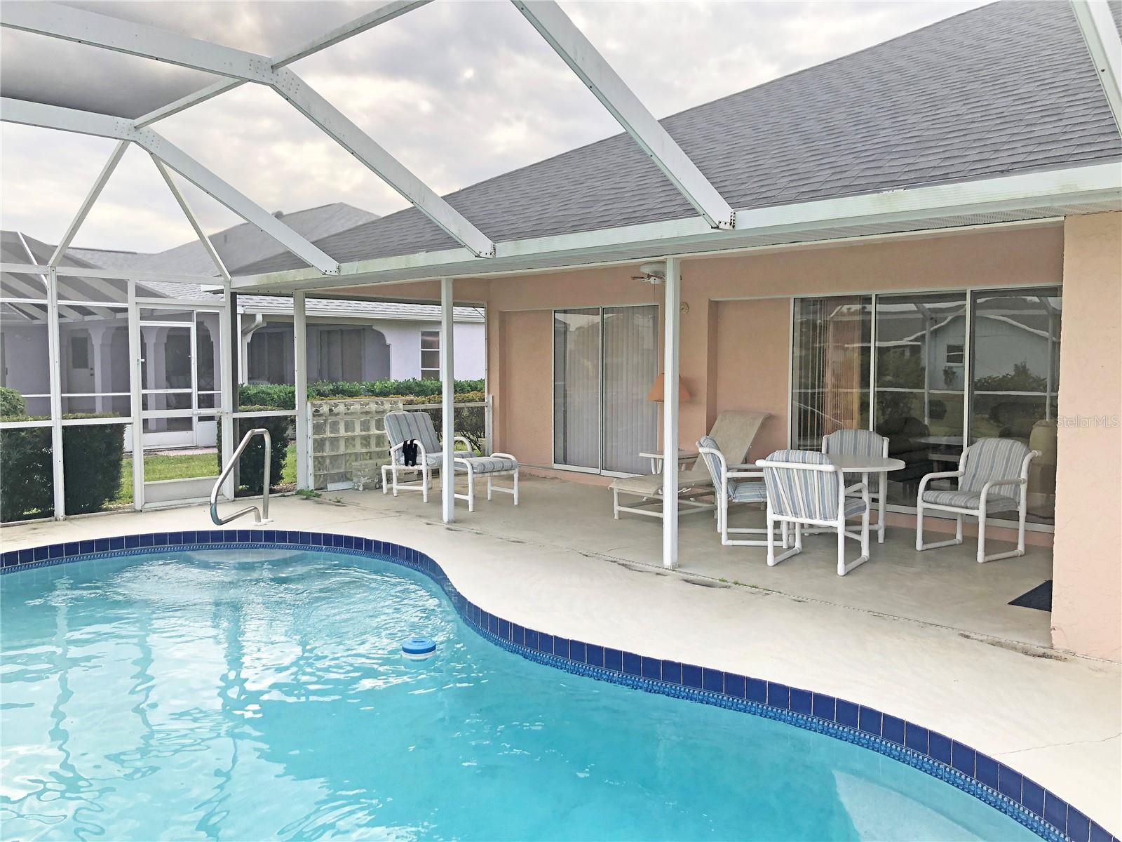 Spacious 3 Bedroom, 2 Bathroom *FURNISHED* POOL HOME with attached 2 Car Garage located in the desirable deed restricted community of Deep Creek....Located on a quiet dead end street yet only minutes from amenities. This light and bright home offers an open and split bedroom floor plan with Living Room, separate Dining Room, Family Room, well equipped Kitchen, Inside Laundry with washer and dryer.. The Living Room has high ceilings, a skylight and sliding glass doors to the lanai. The Kitchen features great counter and cabinet space, closet pantry, built in desk, breakfast bar and dining area overlooking the pool. The large Master Bedroom suite features lanai access, walk in closet and private bathroom with walk in shower and dual sinks. There are two additional generous sized bedrooms and the guest bathroom has a tub/shower comb. The garage has a hurricane door, screened sliders across the entrance, pull down attic. Your living space extends via pocket sliding glass doors to the screened lanai and pool area with large covered area, 26x13 inground pool and plenty of deck for sunbathing. Enjoy the peaceful greenbelt view. **NEW ROOF 2021**....**NEW A/C 2021**...Other features include: irrigation system, rain gutters, screened front entry, double door entry with transom window, cathedral ceiling, plant shelves. Utilities are county water and sewer. HOA is only $165/ year. This home is 10 minutes from Golf, shopping, dining, entertainment, I-75 and is a short drive to medical care and waterfront parks, boat ramps, fishing piers. Easy drive to world class fishing on Boca Grande, gorgeous Gulf beaches in Englewood and Venice. This home is perfect for a family or those expecting lots of winter visitors!