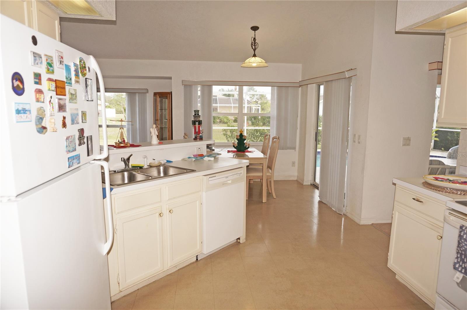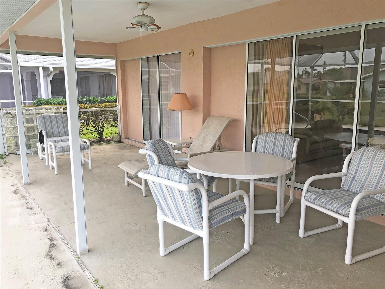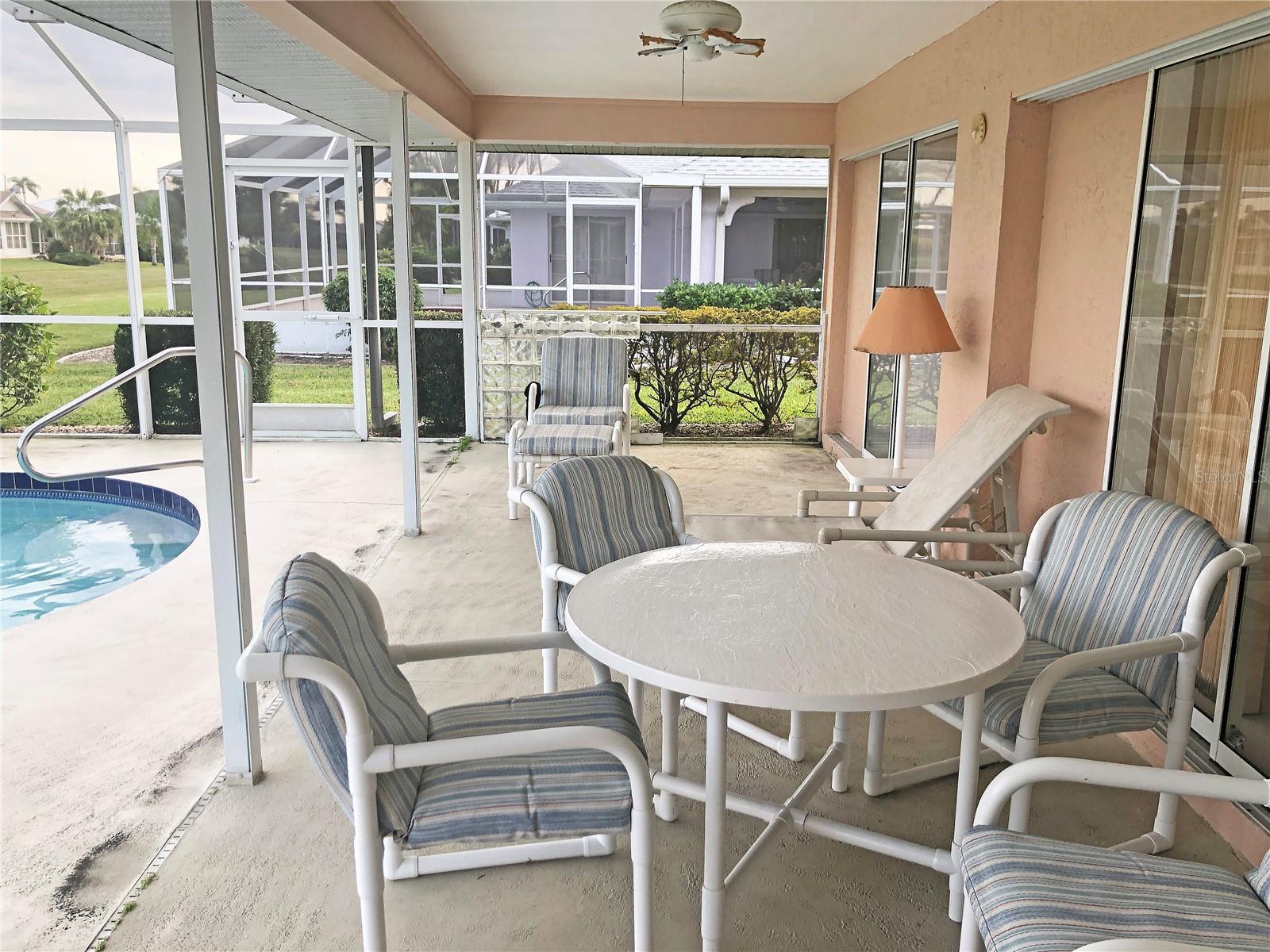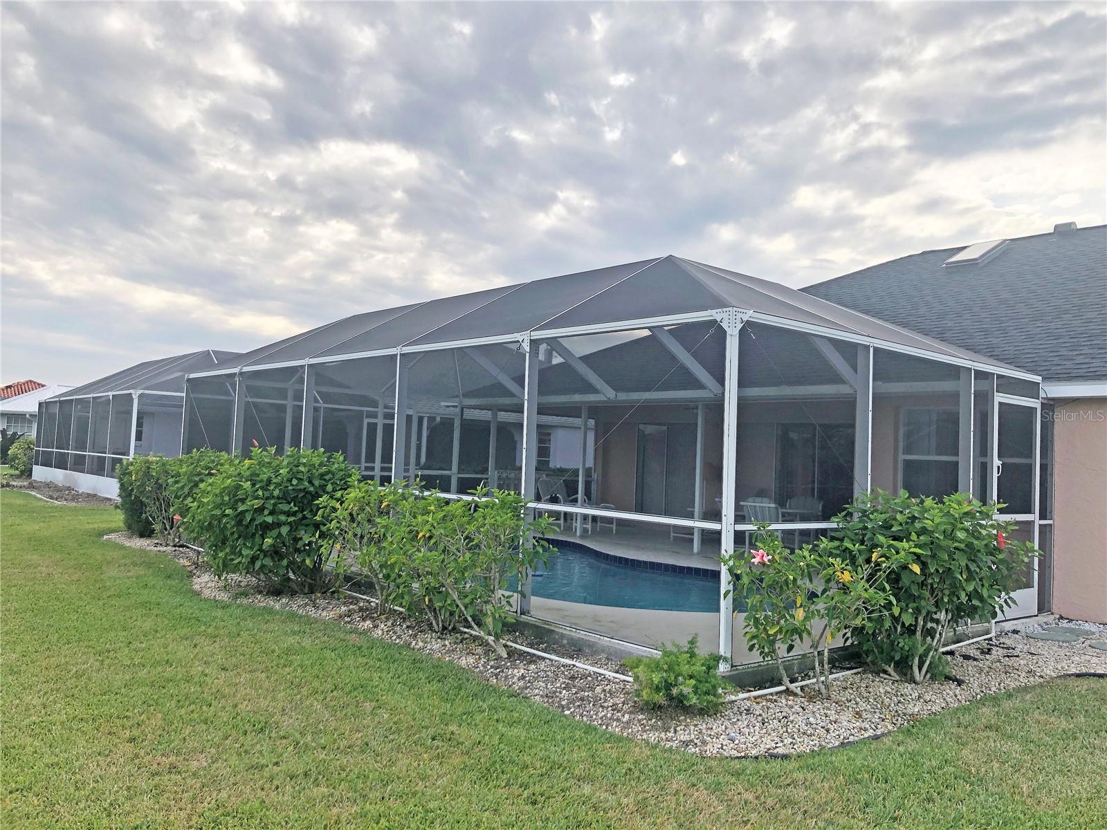 Spacious 3 Bedroom, 2 Bathroom *FURNISHED* POOL HOME with attached 2 Car Garage located in the desirable deed restricted community of Deep Creek....Located on a quiet dead end street yet only minutes from amenities. This light and bright home offers an open and split bedroom floor plan with Living Room, separate Dining Room, Family Room, well equipped Kitchen, Inside Laundry with washer and dryer.. The Living Room has high ceilings, a skylight and sliding glass doors to the lanai. The Kitchen features great counter and cabinet space, closet pantry, built in desk, breakfast bar and dining area overlooking the pool. The large Master Bedroom suite features lanai access, walk in closet and private bathroom with walk in shower and dual sinks. There are two additional generous sized bedrooms and the guest bathroom has a tub/shower comb. The garage has a hurricane door, screened sliders across the entrance, pull down attic. Your living space extends via pocket sliding glass doors to the screened lanai and pool area with large covered area, 26x13 inground pool and plenty of deck for sunbathing. Enjoy the peaceful greenbelt view. **NEW ROOF 2021**....**NEW A/C 2021**...Other features include: irrigation system, rain gutters, screened front entry, double door entry with transom window, cathedral ceiling, plant shelves. Utilities are county water and sewer. HOA is only $165/ year. This home is 10 minutes from Golf, shopping, dining, entertainment, I-75 and is a short drive to medical care and waterfront parks, boat ramps, fishing piers. Easy drive to world class fishing on Boca Grande, gorgeous Gulf beaches in Englewood and Venice. This home is perfect for a family or those expecting lots of winter visitors!