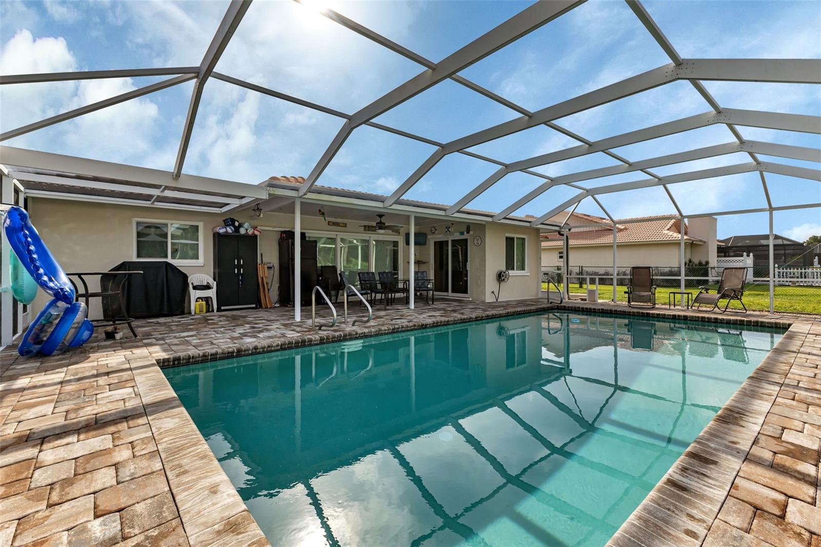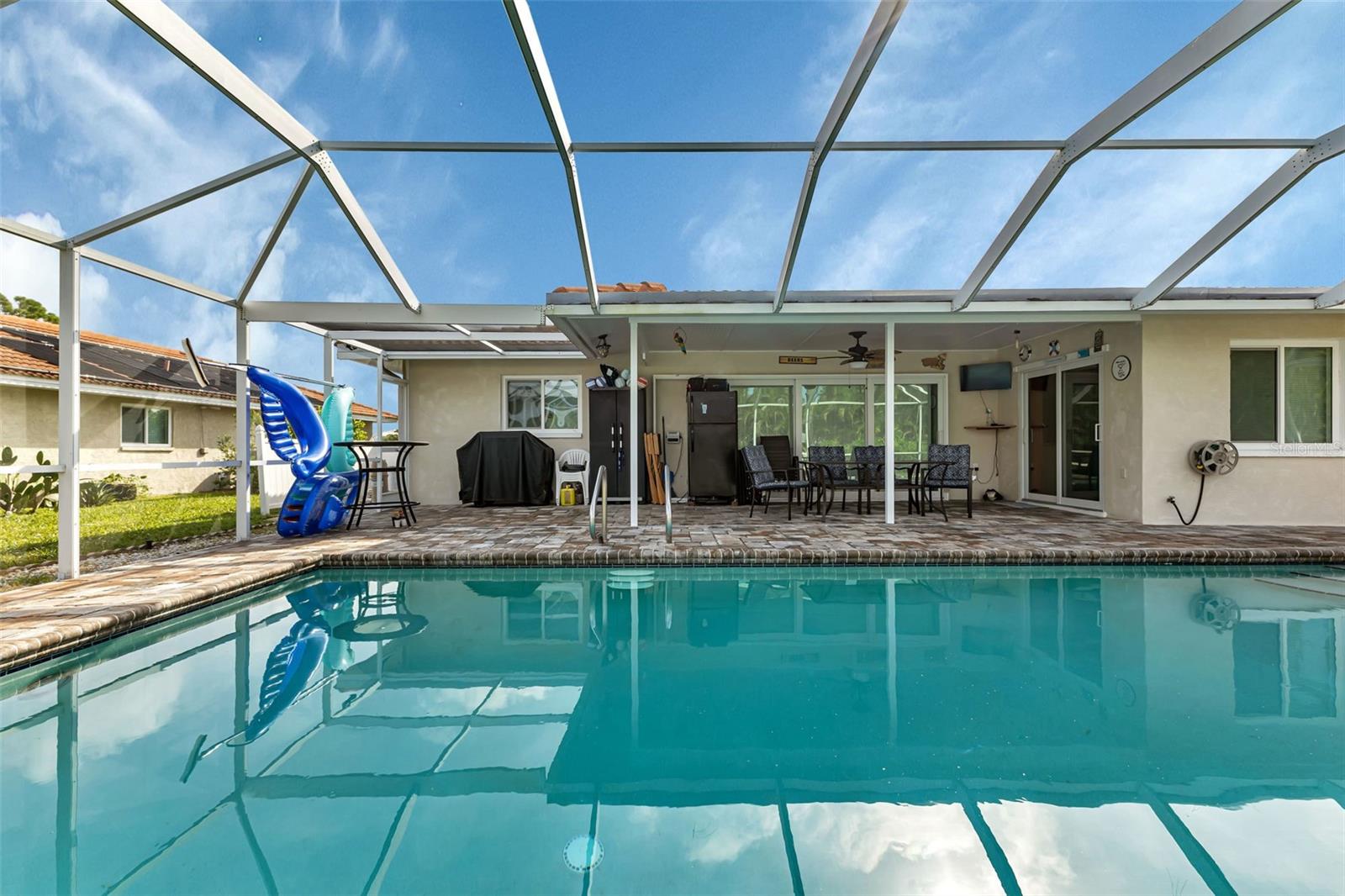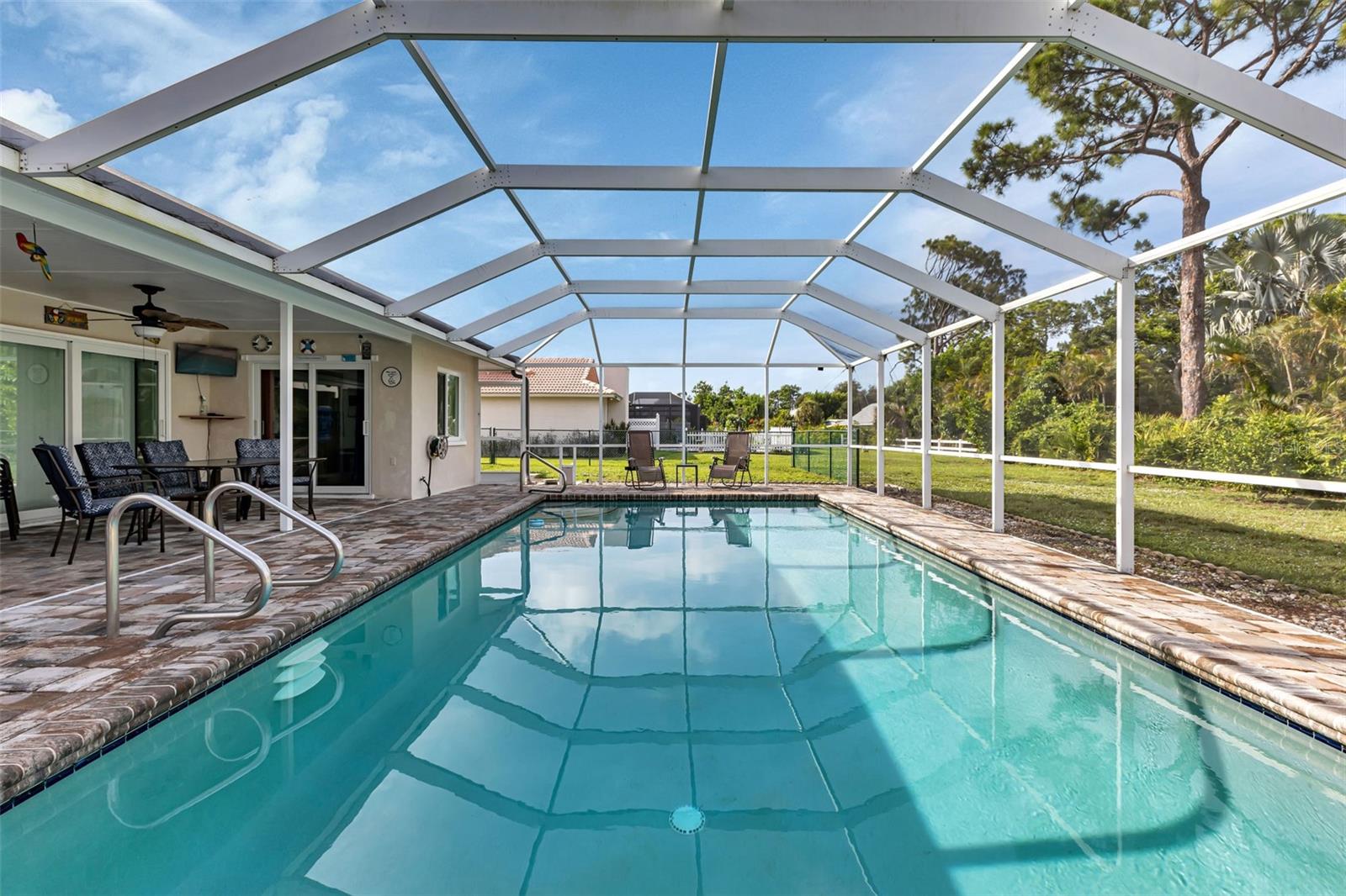 ENGLEWOOD ISLES - Discover the charm of this delightful coastal residence located in the heart of Englewood Isles and situated on a serene street perfect for those seeking a tranquil yet convenient lifestyle in picturesque surroundings in a deed restricted community. This property features 2 spacious bedrooms with ample natural light and generous closet space, 2 updated bathrooms featuring contemporary fixtures and finishes, a two-car garage, a laundry area, and ample storage throughout the home. You will have peace of mind with Hurricane protected doors and windows as well as a generator and this home is not in a flood zone. Enjoy the Florida sunshine in your private backyard oasis complete with sparkling and inviting pool, and plenty of screened and covered lanai space for shade. Your pets will be right at home too in their own fenced area off the lanai. Enjoy the convenience of this location as Englewood Isles is just minutes away from the pristine shores of Englewood Beach, where you can enjoy sunbathing, swimming, and breathtaking sunsets. Other local attractions include the historic downtown Dearborn Street, Lemon Bay Park, multiple golf courses, shopping, dining, and entertainment options. Explore the vibrant local community and all it has to offer! Easy access to major highways, making it a breeze to travel to nearby cities such as Sarasota, Venice and Punta Gorda! Homeowners in Englewood Isles have the means to rent or buy boat slips, when available, at The Isles Marina Association, Inc. but many public boat ramps provide easy access to Lemon Bay and the Gulf of Mexico, making it a boating and fishing paradise. This home is a true gem, offering a perfect blend of comfort, style, and location. Don't miss the opportunity to make this your new home and experience the best of Florida living. Schedule a showing today!