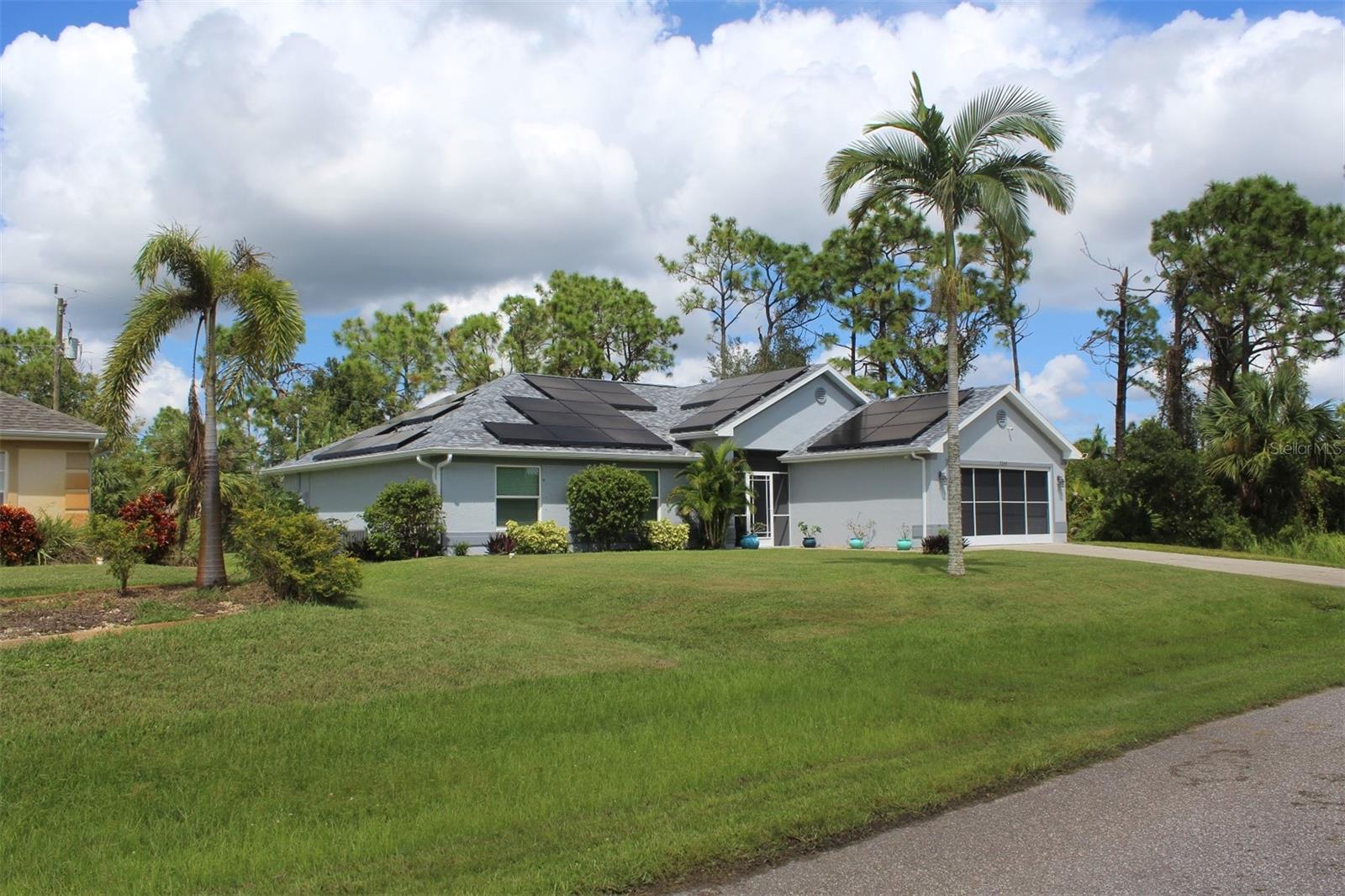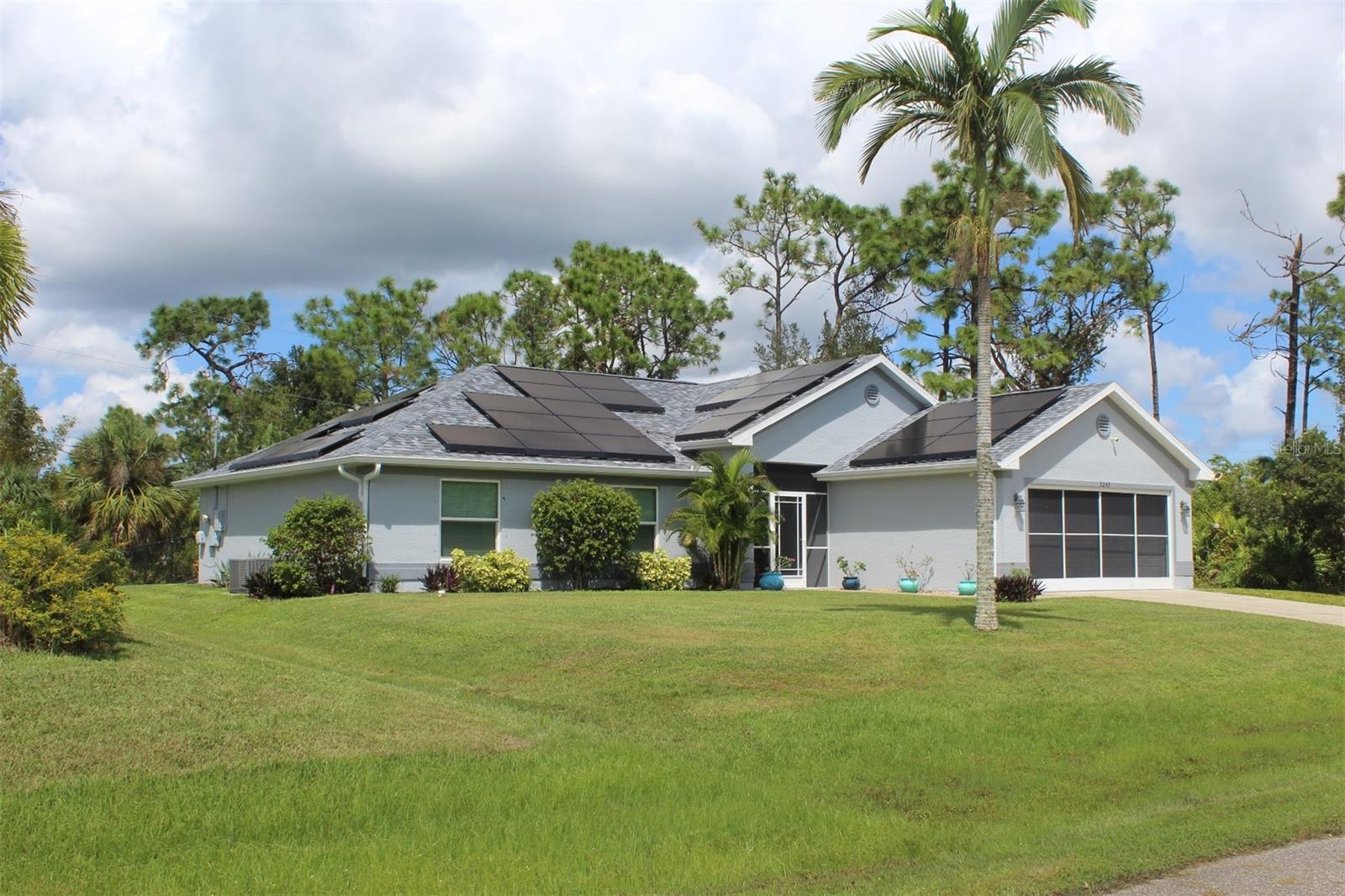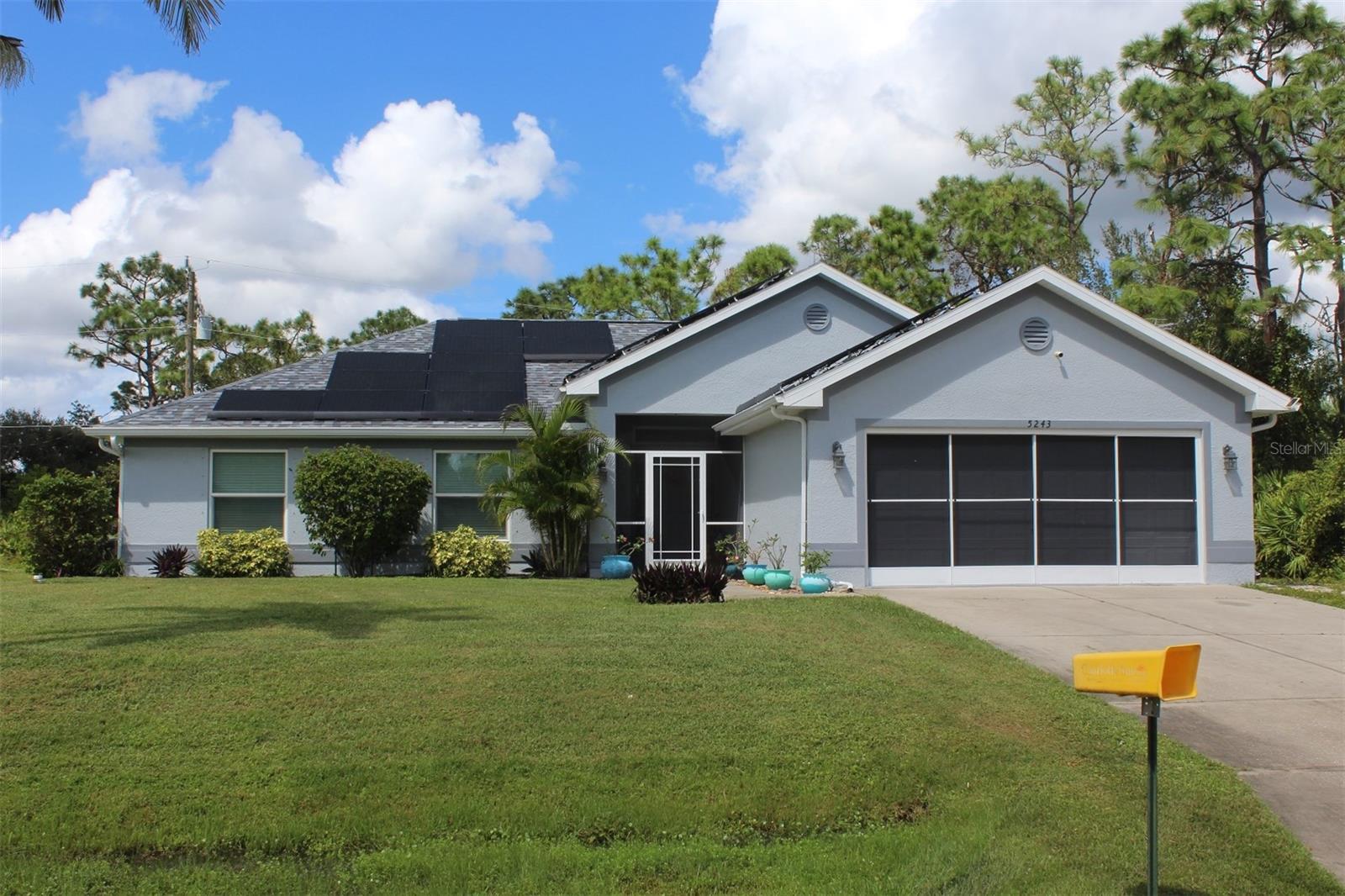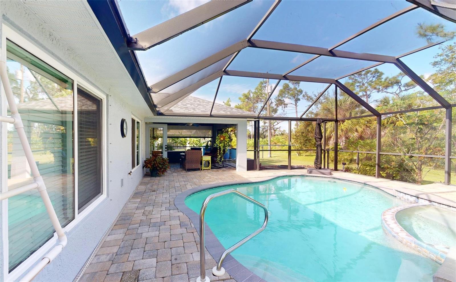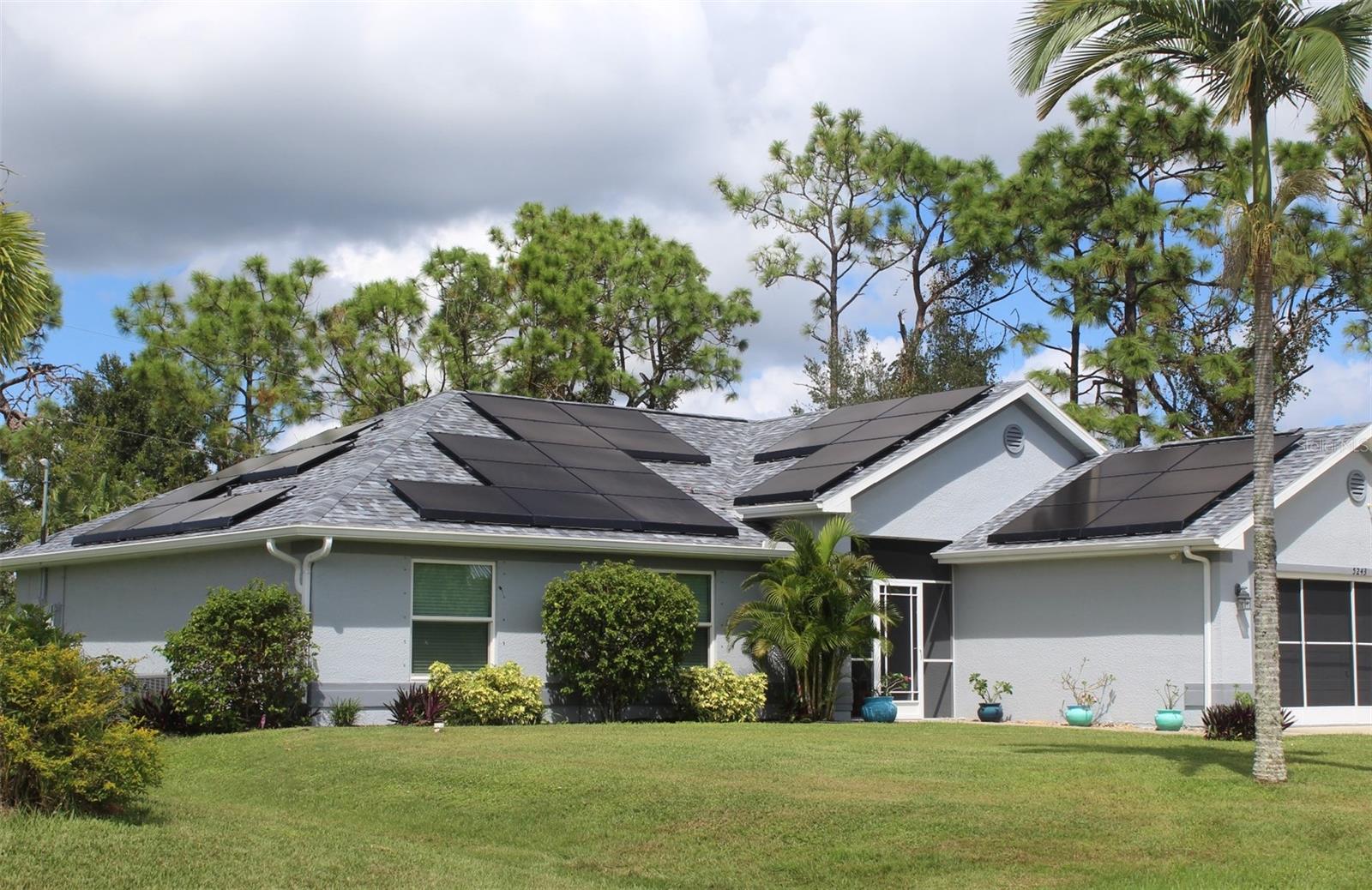 Spacious 3-Bedroom Home with Bonus Room, Heated Saltwater Pool, Sunrun Solar, and Extra Lot.Discover your dream home in this stunning 3-bedroom, 2-bathroom property with an additional bonus room that can serve as a 4th bedroom, office, or playroom. Located on a beautifully landscaped half-acre lot, this home offers the perfect combination of comfort, energy efficiency, and luxurious outdoor living.Heated Saltwater Pool & Spa: Relax year-round in your heated saltwater pool with an attached spa. The pool deck features elegant brick pavers, and the lanai comes equipped with a convenient roll-down sunshade for extra privacy and comfort. Energy-Efficient Living with Sunrun Solar System: This home includes a Sunrun leased whole-house solar system that is assumable by the new owner. With an average electric bill for 2024 of just $41.50 per month, you'll enjoy significant energy savings. Plus, **Sunrun maintains the system**, providing hassle-free, eco-friendly living.Spacious Kitchen: The modern kitchen boasts stainless steel appliances, including a range with a double oven, and stylish butcher block countertops--a perfect space for cooking and gathering. Primary Suite: The spacious primary bedroom includes a large en-suite bathroom with a dual-sink vanity, walk-in shower, private toilet area, and a generous walk-in closet.Outdoor Living: Enjoy an extra lot with a 10x20 shed for added storage, rain barrels for eco-friendly watering, and a partial drive with culvert for even more space--perfect for a boat or RV.Additional Amenities: Interior laundry room with washer and dryer included, newer double-pane windows with hurricane shutters, city water access, and a beautifully landscaped 1/2 acre yard. New roof installed in 2023 provides lasting durability and peace of mind. The AC system has a UV blue light filter that's used in HVAC systems to improve indoor air quality This home offers a rare blend of modern convenience, energy efficiency, and luxurious outdoor living, making it a must-see property!