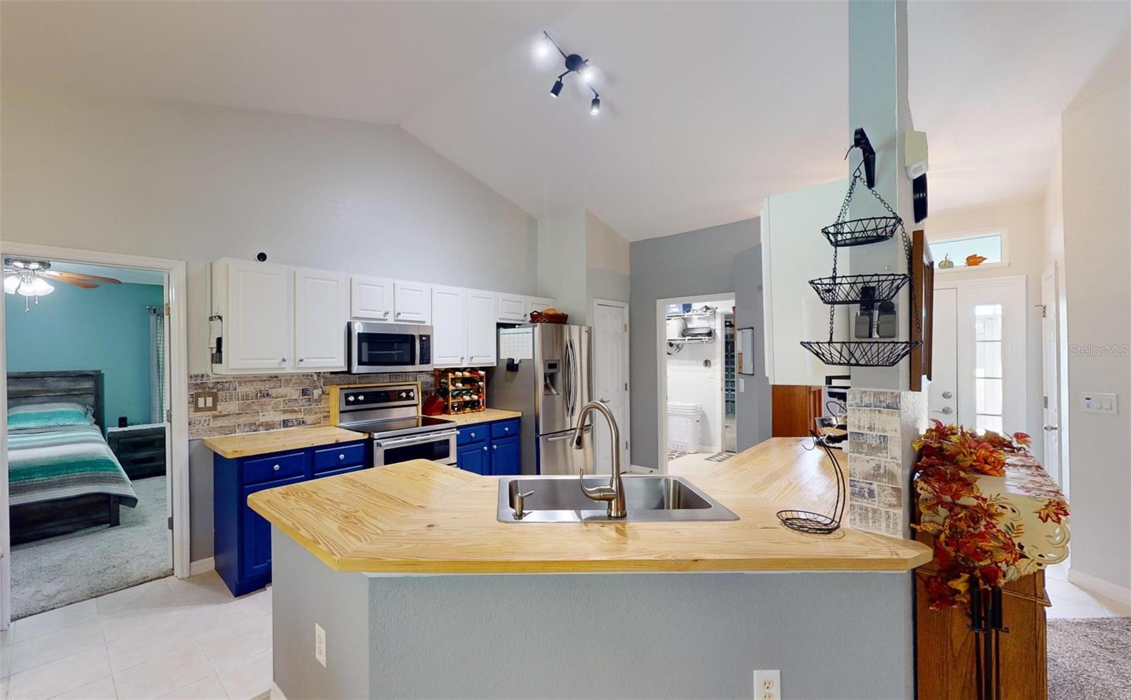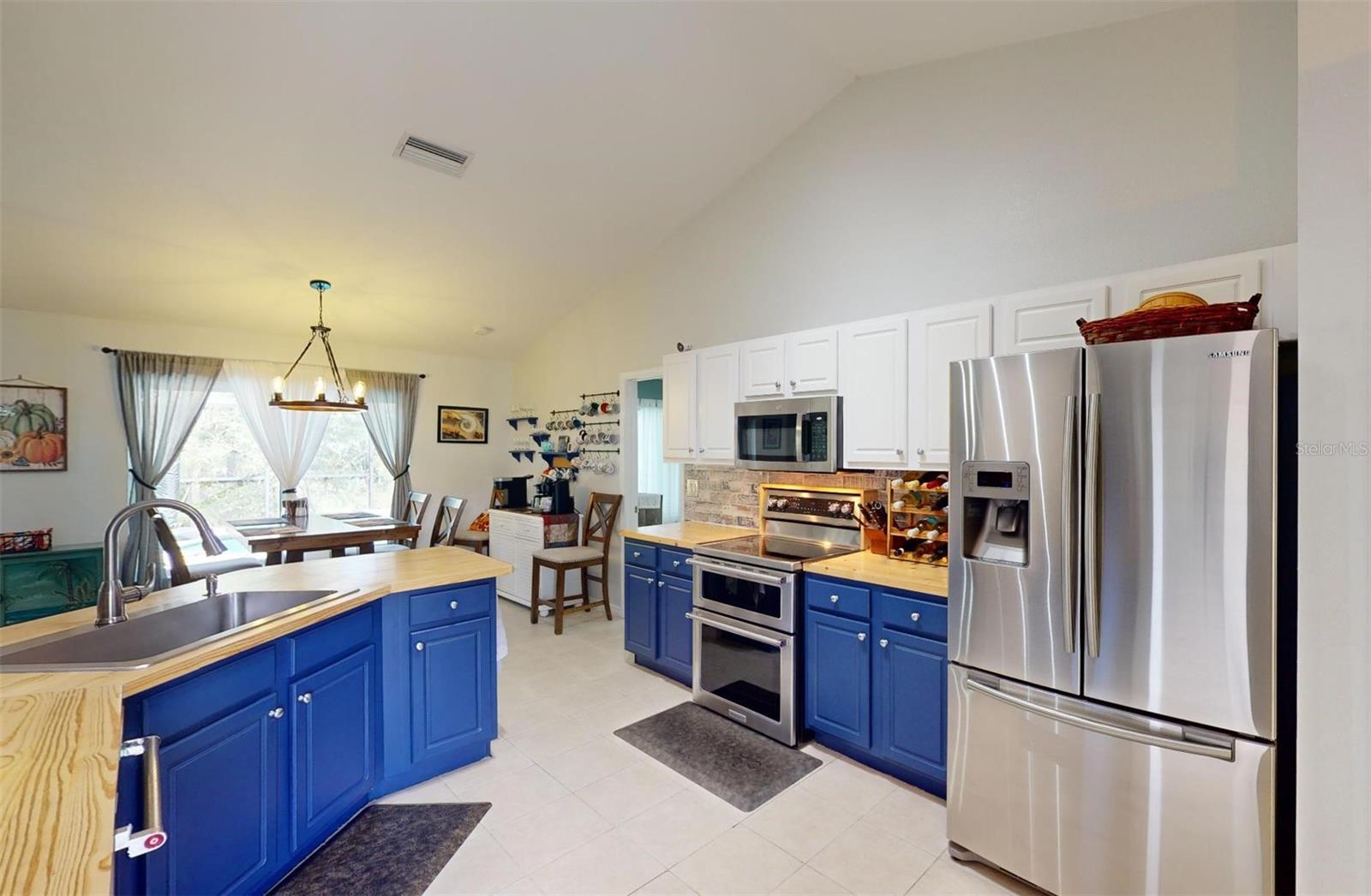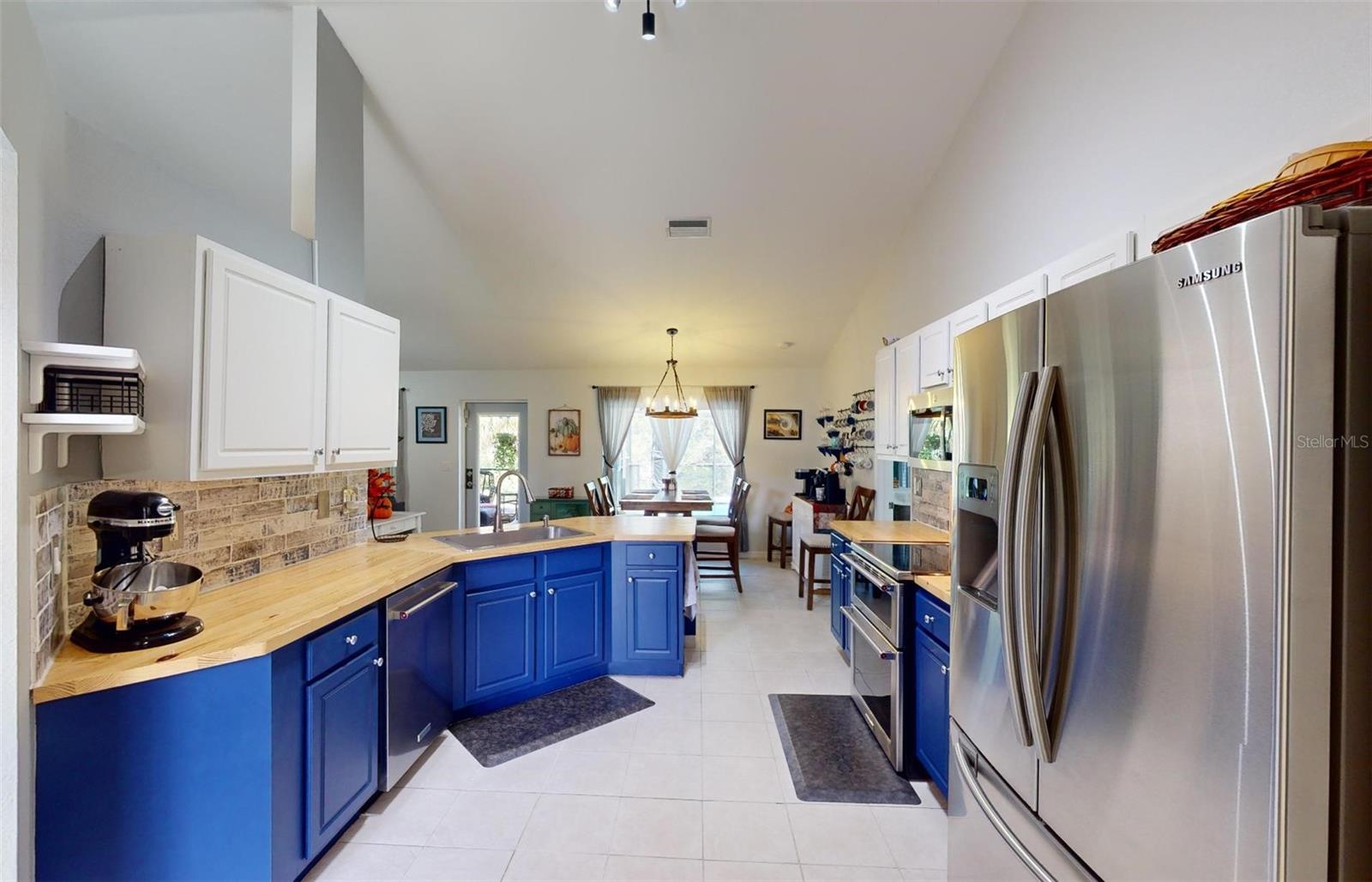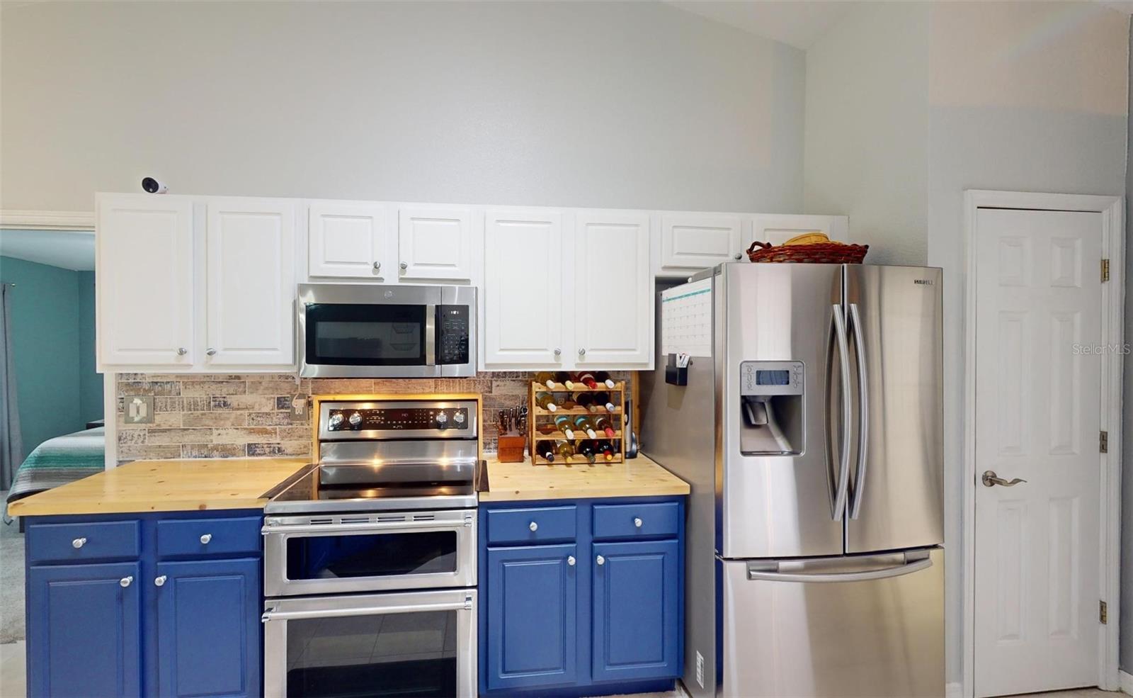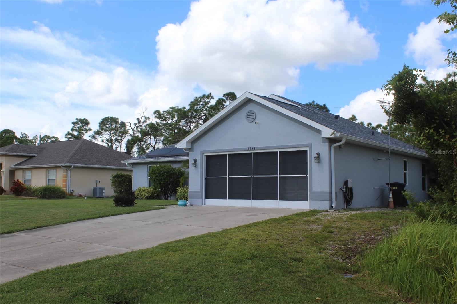 Spacious 3-Bedroom Home with Bonus Room, Heated Saltwater Pool, Sunrun Solar, and Extra Lot.Discover your dream home in this stunning 3-bedroom, 2-bathroom property with an additional bonus room that can serve as a 4th bedroom, office, or playroom. Located on a beautifully landscaped half-acre lot, this home offers the perfect combination of comfort, energy efficiency, and luxurious outdoor living.Heated Saltwater Pool & Spa: Relax year-round in your heated saltwater pool with an attached spa. The pool deck features elegant brick pavers, and the lanai comes equipped with a convenient roll-down sunshade for extra privacy and comfort. Energy-Efficient Living with Sunrun Solar System: This home includes a Sunrun leased whole-house solar system that is assumable by the new owner. With an average electric bill for 2024 of just $41.50 per month, you'll enjoy significant energy savings. Plus, **Sunrun maintains the system**, providing hassle-free, eco-friendly living.Spacious Kitchen: The modern kitchen boasts stainless steel appliances, including a range with a double oven, and stylish butcher block countertops--a perfect space for cooking and gathering. Primary Suite: The spacious primary bedroom includes a large en-suite bathroom with a dual-sink vanity, walk-in shower, private toilet area, and a generous walk-in closet.Outdoor Living: Enjoy an extra lot with a 10x20 shed for added storage, rain barrels for eco-friendly watering, and a partial drive with culvert for even more space--perfect for a boat or RV.Additional Amenities: Interior laundry room with washer and dryer included, newer double-pane windows with hurricane shutters, city water access, and a beautifully landscaped 1/2 acre yard. New roof installed in 2023 provides lasting durability and peace of mind. The AC system has a UV blue light filter that's used in HVAC systems to improve indoor air quality This home offers a rare blend of modern convenience, energy efficiency, and luxurious outdoor living, making it a must-see property!