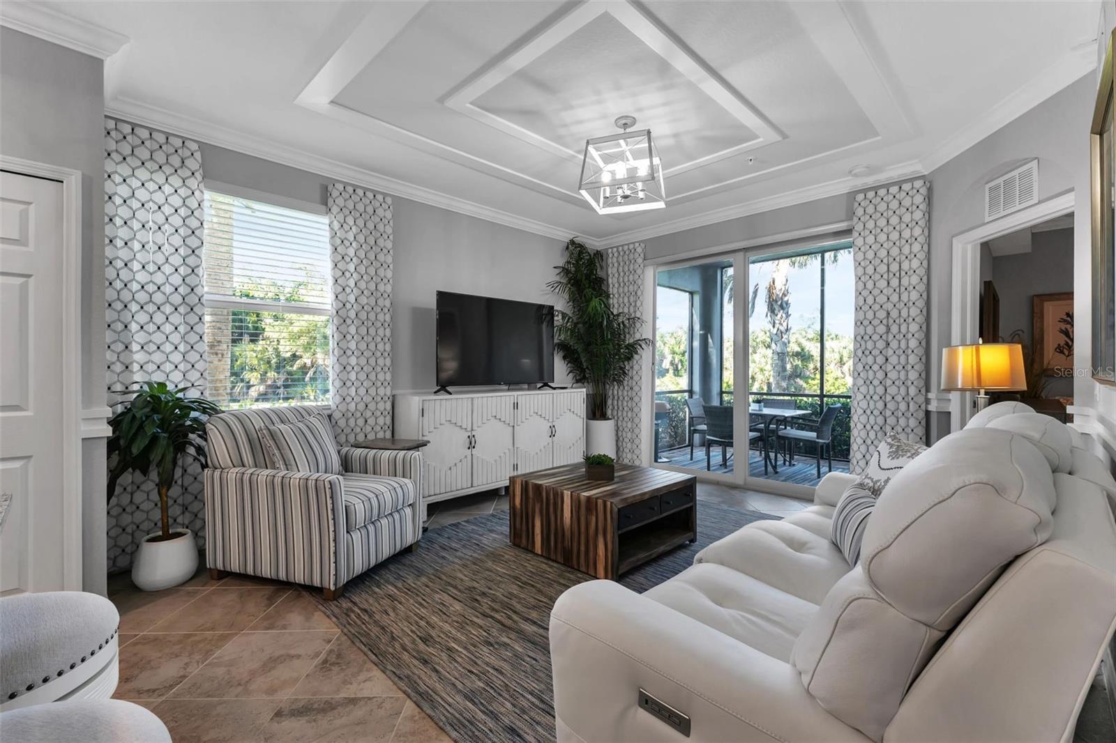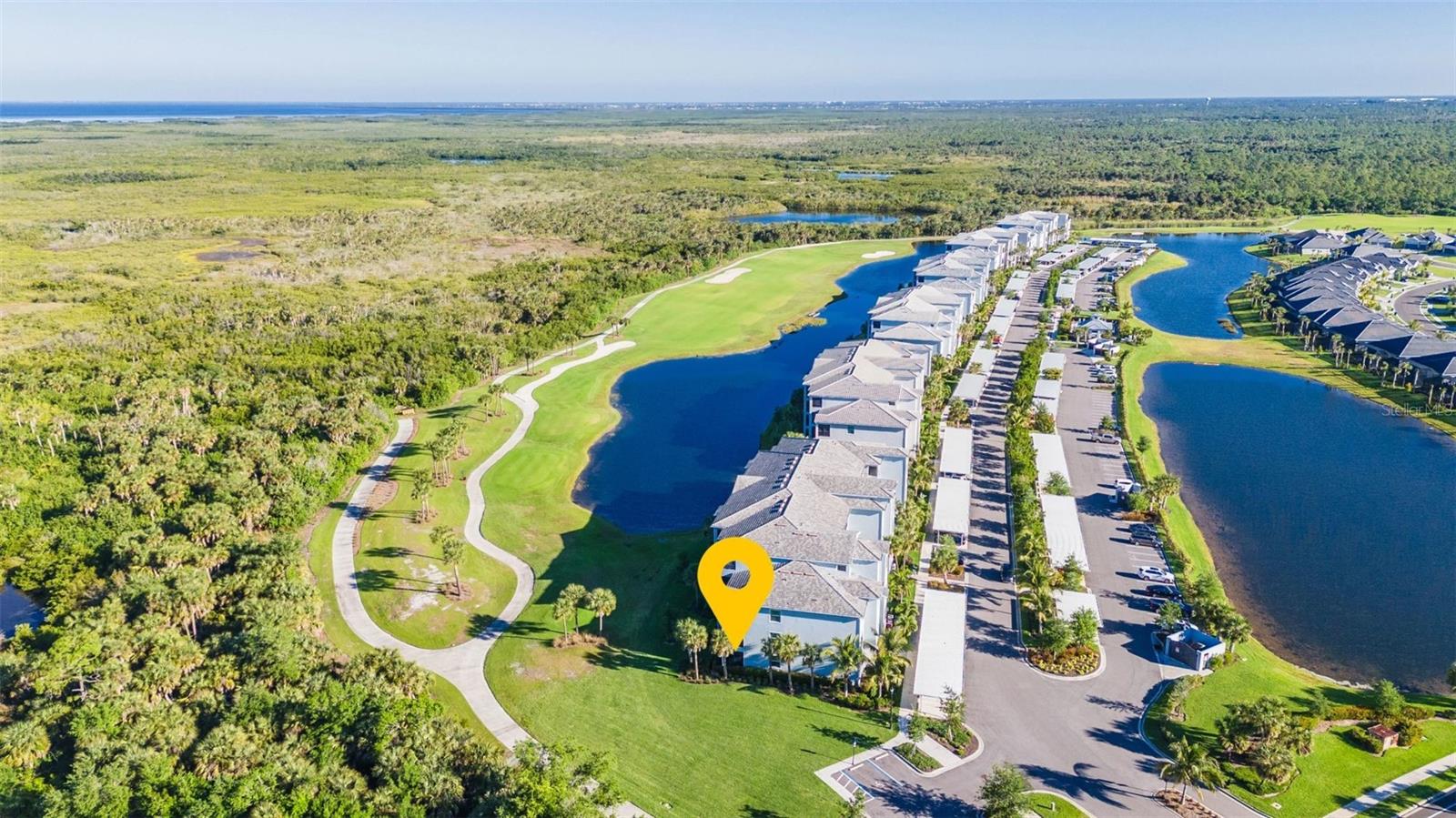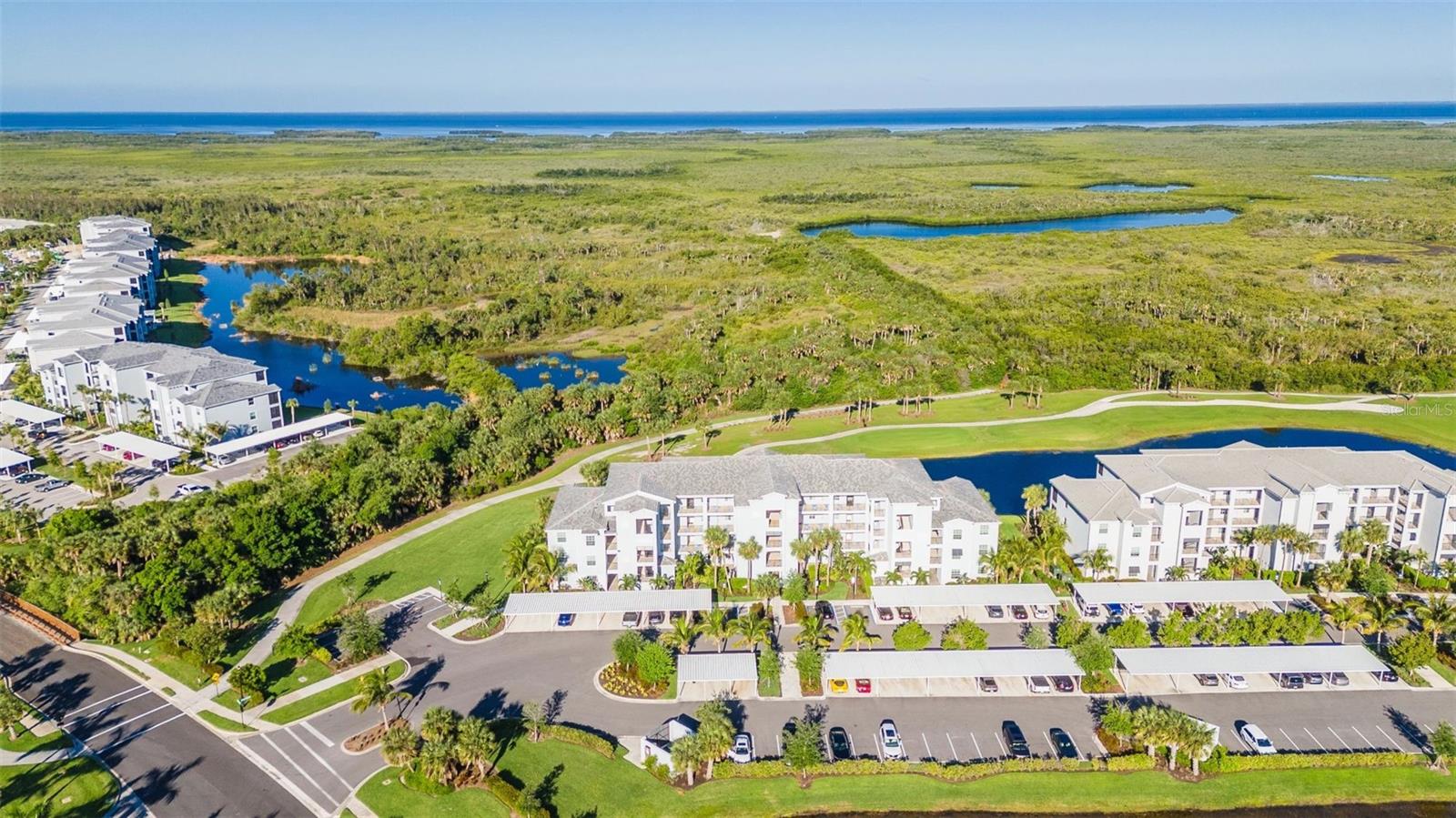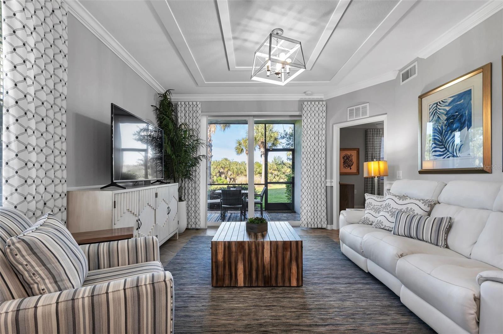 Available NOW, this Beautiful Turnkey first floor 3 bed, 2 bath Carolina model condo in the private, gated golf course community of Heritage Landing! (GOLF MEMBERSHIP INCLUDED) With views of the golf course and pond, this tastefully decorated home with clean lines, unique contemporary lighting, and custom paint in cool coastal shades of blue is sure to impress! Stunning 10ft tray ceilings allow for an open, airy feel while the chair rail, crown molding, plantation shutters, and custom drapes show off the thoughtful design of the builder. The spacious kitchen features granite countertops, stainless appliances, breakfast bar, and shaker cabinets and is open to the dining area and comfortable living room. Open the sliders and enjoy your morning coffee and the beautiful Florida weather in the screened-in lanai. The primary is ensuite with dual sinks and tiled shower, while guests will appreciate privacy in the 2nd and 3rd bedrooms and guest bath. Heritage Landing amenities include a resort-style pool featuring gradual entry and lap lanes, a total of three restaurants including an outdoor pool caf, two full-service bars, tennis, pickleball, bocce ball, guard gated entry, fitness center, aerobics room, full-service spa offering nails and massage, and more! This stunning condo will not last long. Start living the laid-back Florida lifestyle today!