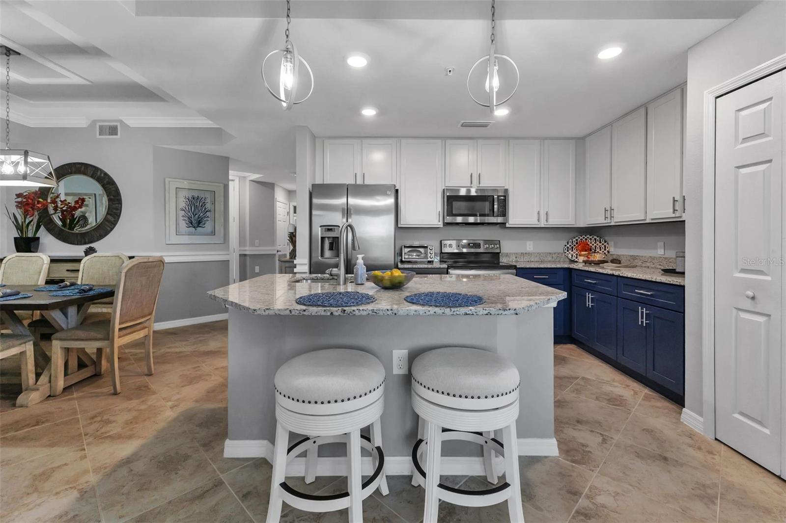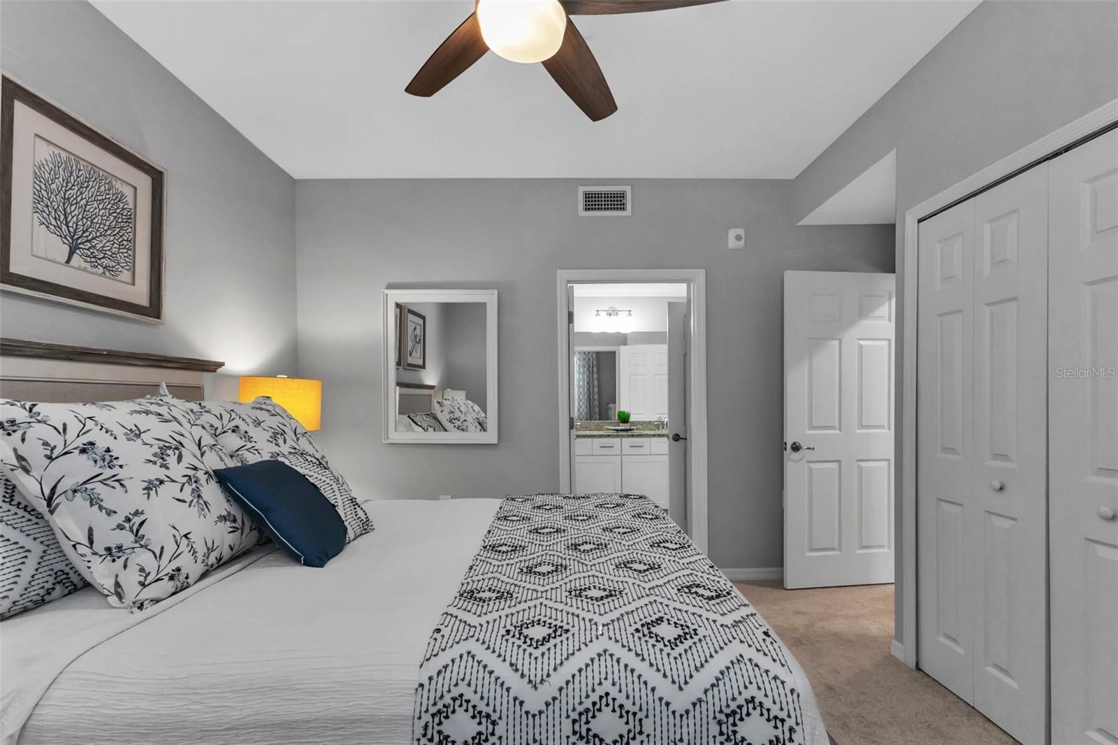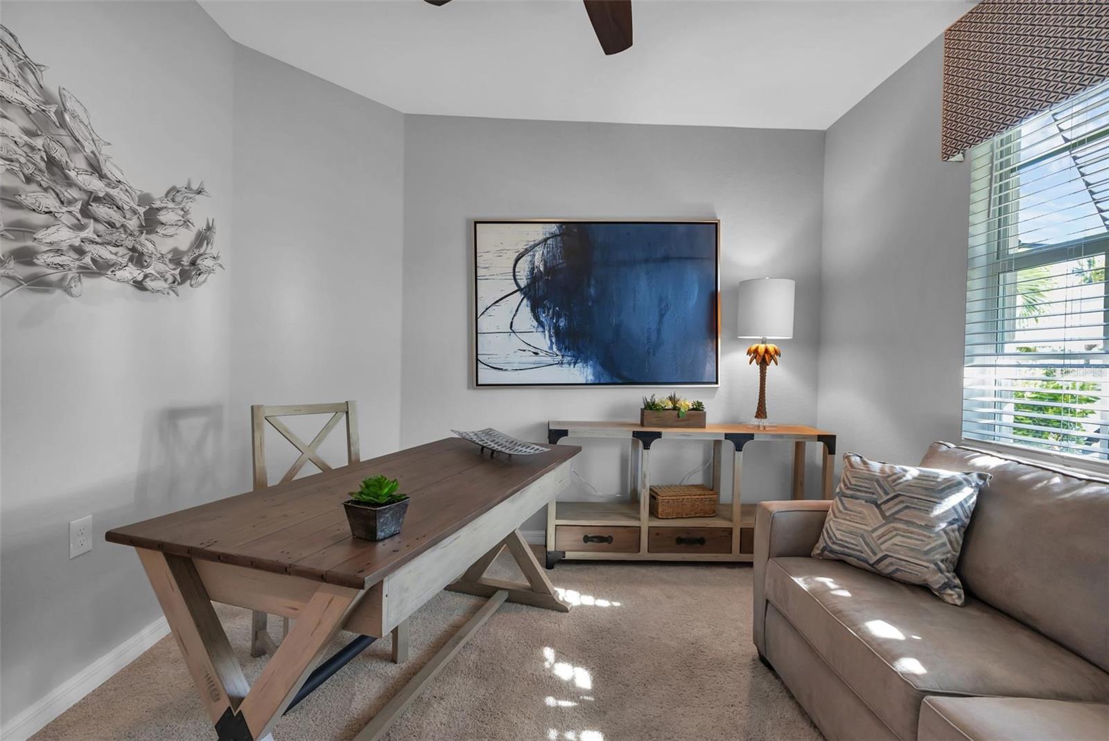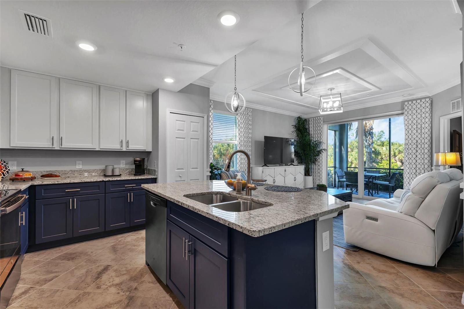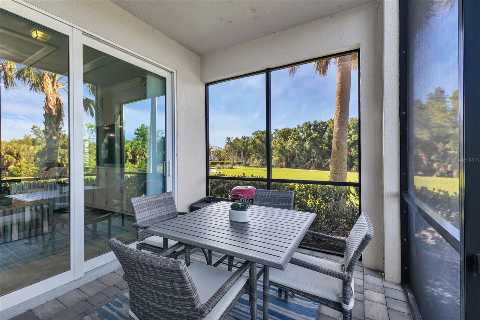 Available NOW, this Beautiful Turnkey first floor 3 bed, 2 bath Carolina model condo in the private, gated golf course community of Heritage Landing! (GOLF MEMBERSHIP INCLUDED) With views of the golf course and pond, this tastefully decorated home with clean lines, unique contemporary lighting, and custom paint in cool coastal shades of blue is sure to impress! Stunning 10ft tray ceilings allow for an open, airy feel while the chair rail, crown molding, plantation shutters, and custom drapes show off the thoughtful design of the builder. The spacious kitchen features granite countertops, stainless appliances, breakfast bar, and shaker cabinets and is open to the dining area and comfortable living room. Open the sliders and enjoy your morning coffee and the beautiful Florida weather in the screened-in lanai. The primary is ensuite with dual sinks and tiled shower, while guests will appreciate privacy in the 2nd and 3rd bedrooms and guest bath. Heritage Landing amenities include a resort-style pool featuring gradual entry and lap lanes, a total of three restaurants including an outdoor pool caf, two full-service bars, tennis, pickleball, bocce ball, guard gated entry, fitness center, aerobics room, full-service spa offering nails and massage, and more! This stunning condo will not last long. Start living the laid-back Florida lifestyle today!