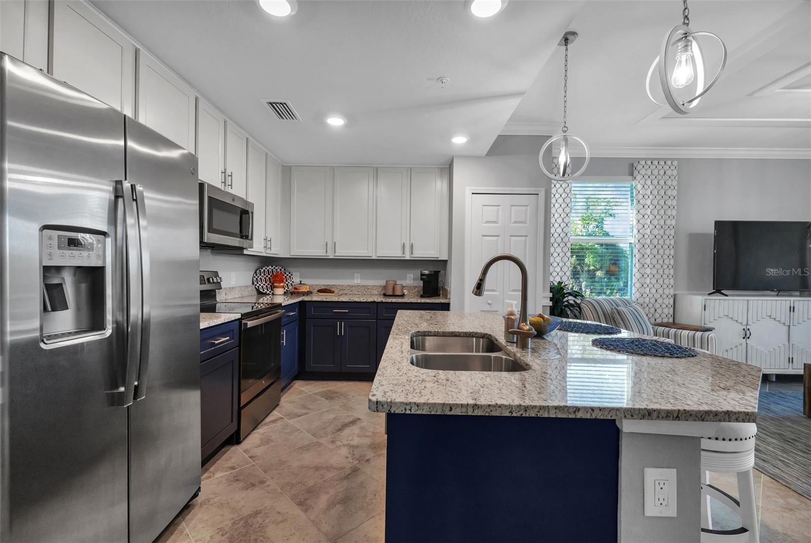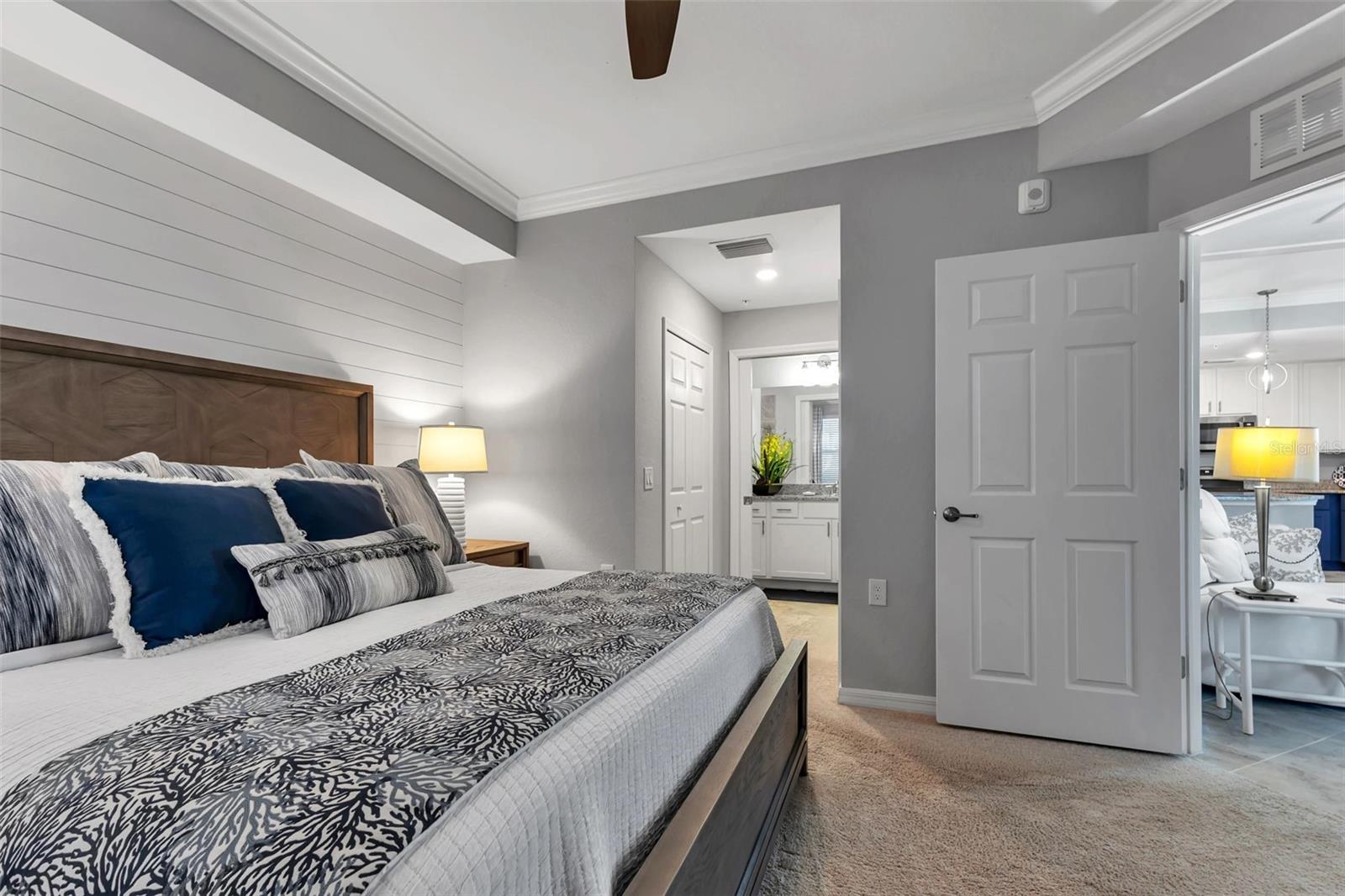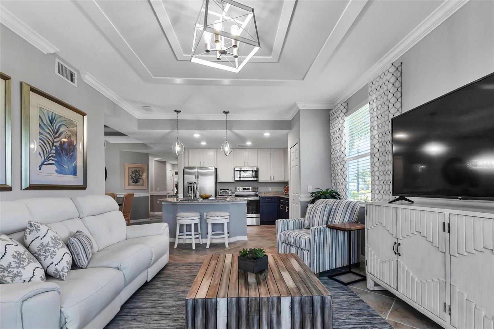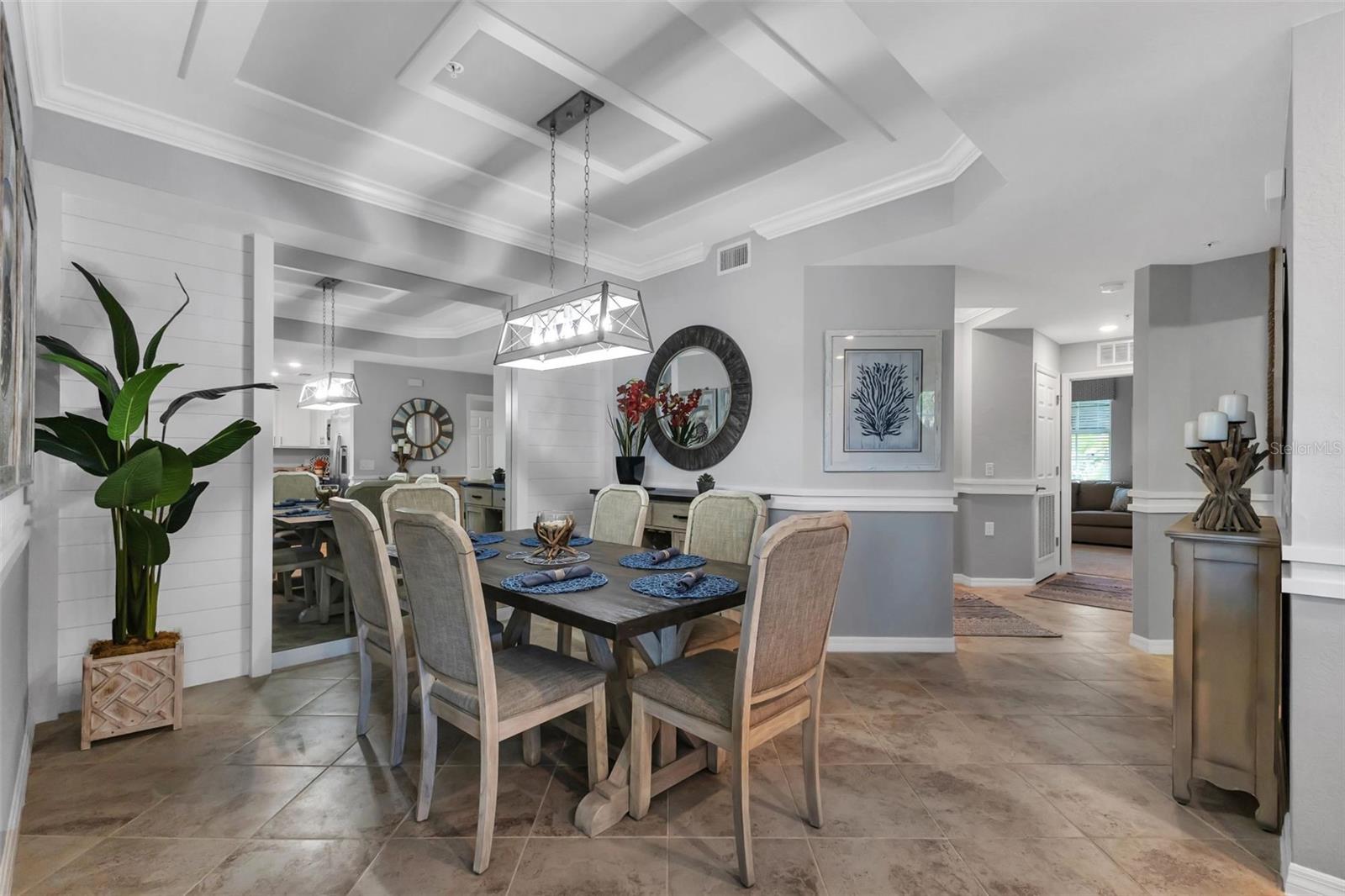 Available NOW, this Beautiful Turnkey first floor 3 bed, 2 bath Carolina model condo in the private, gated golf course community of Heritage Landing! (GOLF MEMBERSHIP INCLUDED) With views of the golf course and pond, this tastefully decorated home with clean lines, unique contemporary lighting, and custom paint in cool coastal shades of blue is sure to impress! Stunning 10ft tray ceilings allow for an open, airy feel while the chair rail, crown molding, plantation shutters, and custom drapes show off the thoughtful design of the builder. The spacious kitchen features granite countertops, stainless appliances, breakfast bar, and shaker cabinets and is open to the dining area and comfortable living room. Open the sliders and enjoy your morning coffee and the beautiful Florida weather in the screened-in lanai. The primary is ensuite with dual sinks and tiled shower, while guests will appreciate privacy in the 2nd and 3rd bedrooms and guest bath. Heritage Landing amenities include a resort-style pool featuring gradual entry and lap lanes, a total of three restaurants including an outdoor pool caf, two full-service bars, tennis, pickleball, bocce ball, guard gated entry, fitness center, aerobics room, full-service spa offering nails and massage, and more! This stunning condo will not last long. Start living the laid-back Florida lifestyle today!