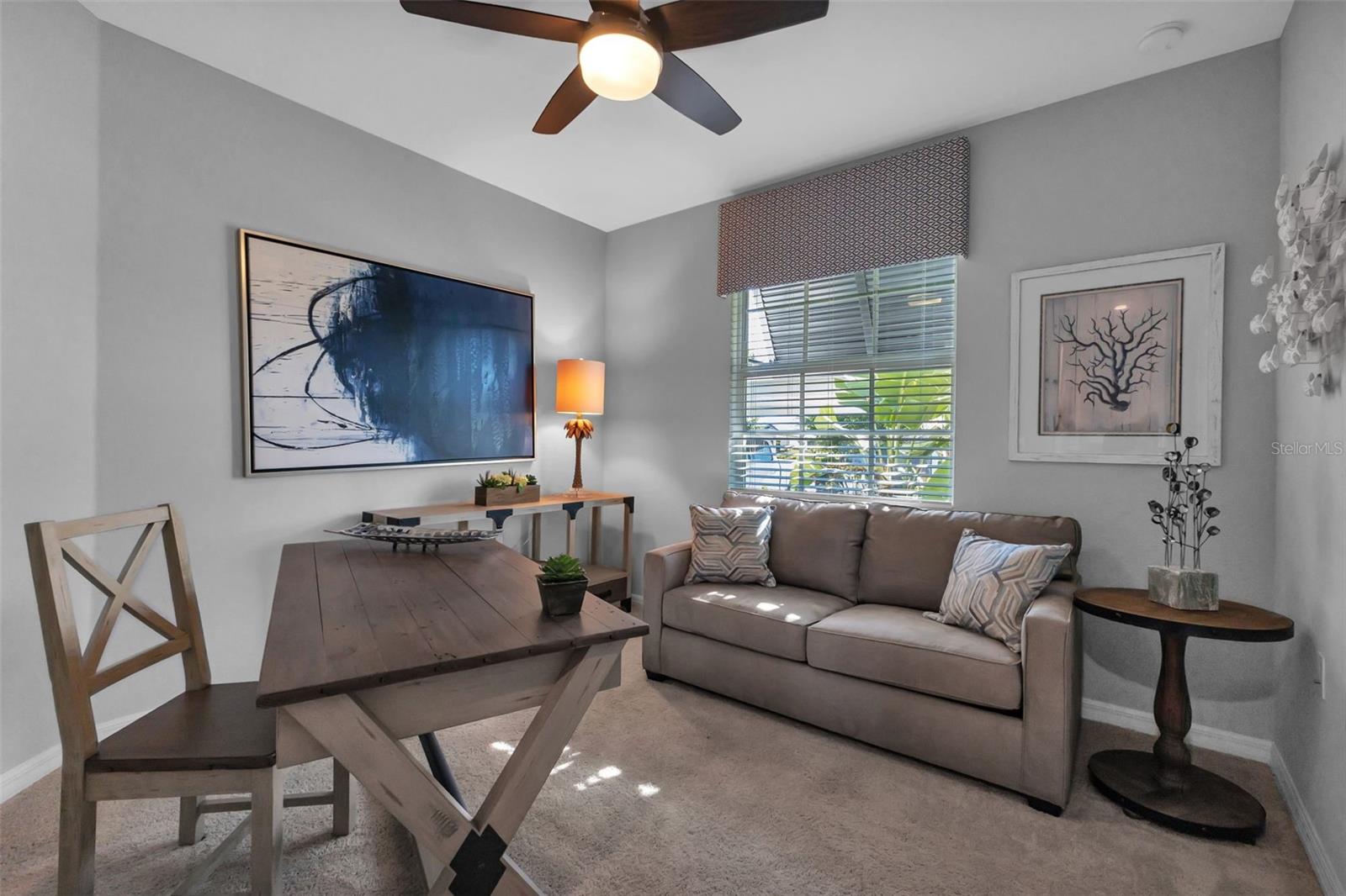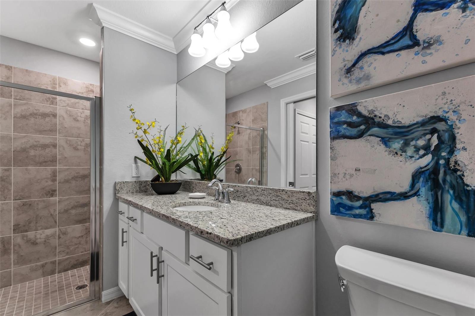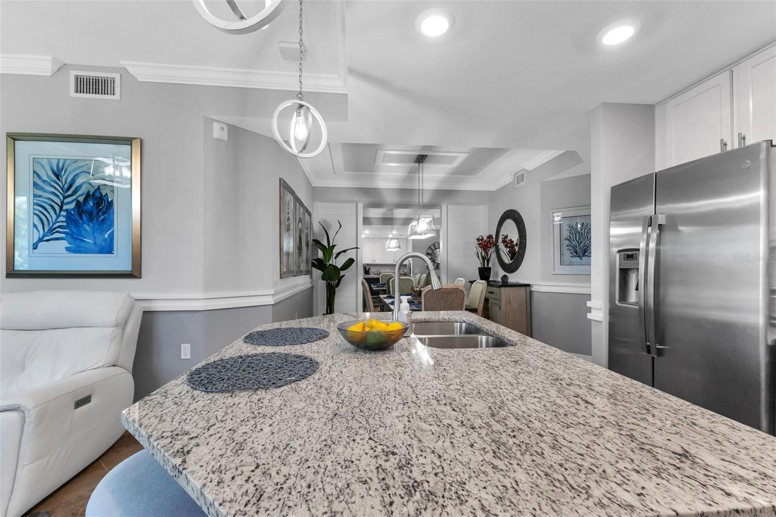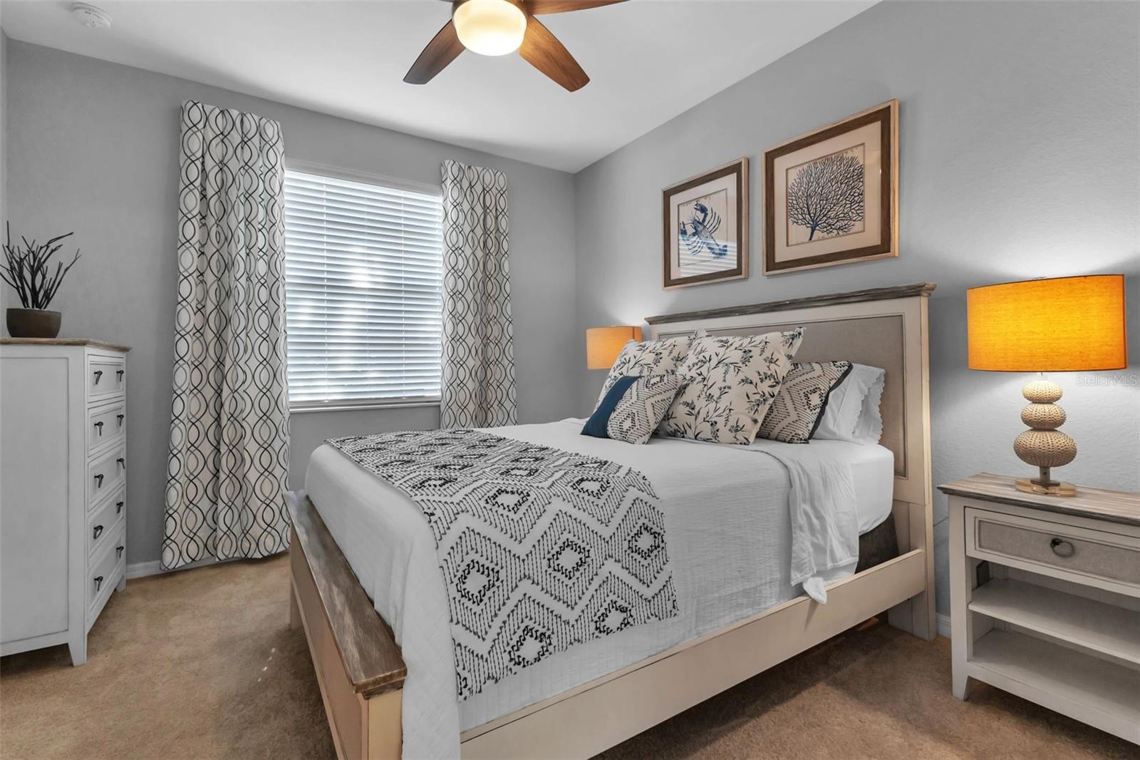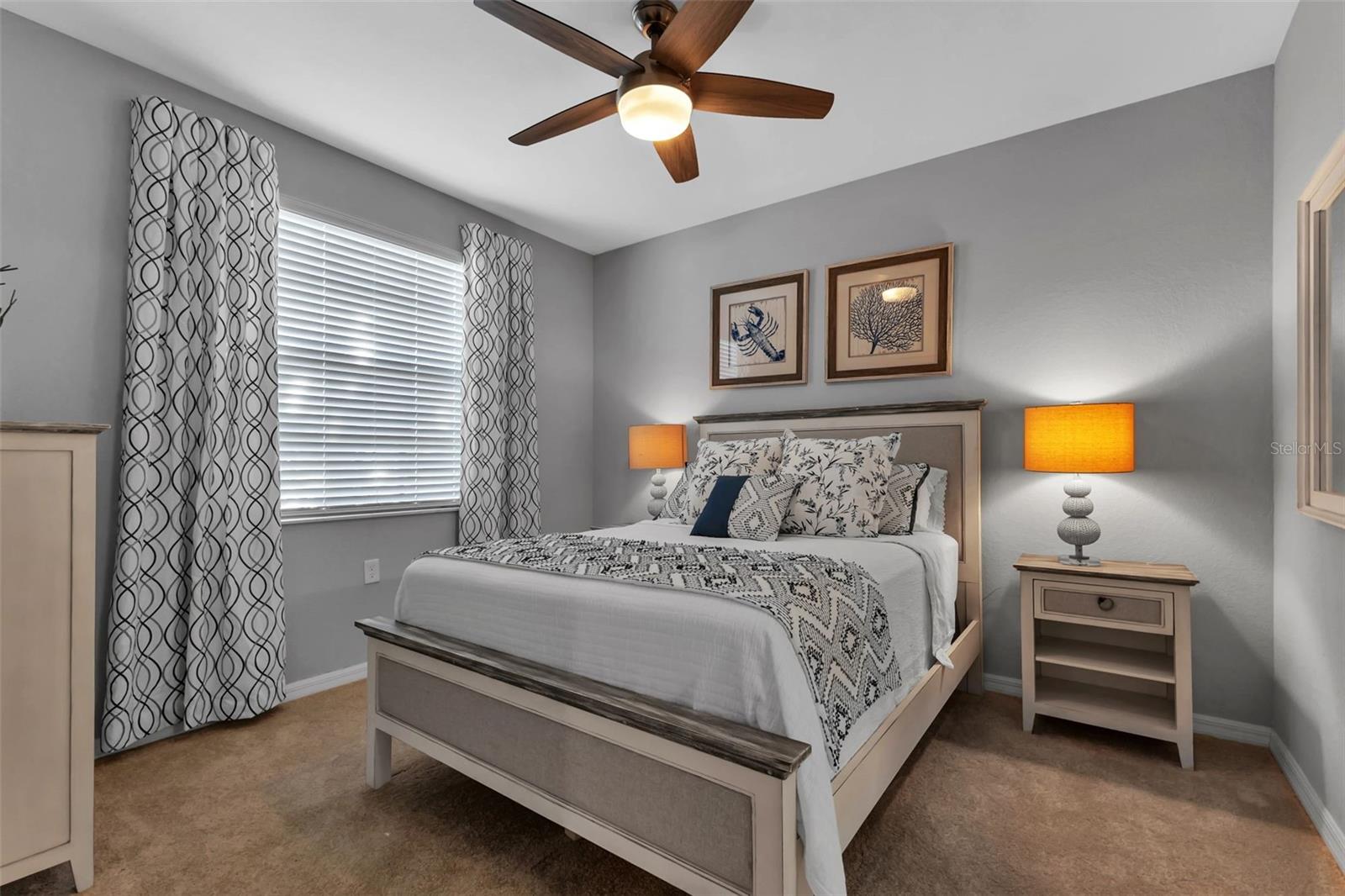 Available NOW, this Beautiful Turnkey first floor 3 bed, 2 bath Carolina model condo in the private, gated golf course community of Heritage Landing! (GOLF MEMBERSHIP INCLUDED) With views of the golf course and pond, this tastefully decorated home with clean lines, unique contemporary lighting, and custom paint in cool coastal shades of blue is sure to impress! Stunning 10ft tray ceilings allow for an open, airy feel while the chair rail, crown molding, plantation shutters, and custom drapes show off the thoughtful design of the builder. The spacious kitchen features granite countertops, stainless appliances, breakfast bar, and shaker cabinets and is open to the dining area and comfortable living room. Open the sliders and enjoy your morning coffee and the beautiful Florida weather in the screened-in lanai. The primary is ensuite with dual sinks and tiled shower, while guests will appreciate privacy in the 2nd and 3rd bedrooms and guest bath. Heritage Landing amenities include a resort-style pool featuring gradual entry and lap lanes, a total of three restaurants including an outdoor pool caf, two full-service bars, tennis, pickleball, bocce ball, guard gated entry, fitness center, aerobics room, full-service spa offering nails and massage, and more! This stunning condo will not last long. Start living the laid-back Florida lifestyle today!