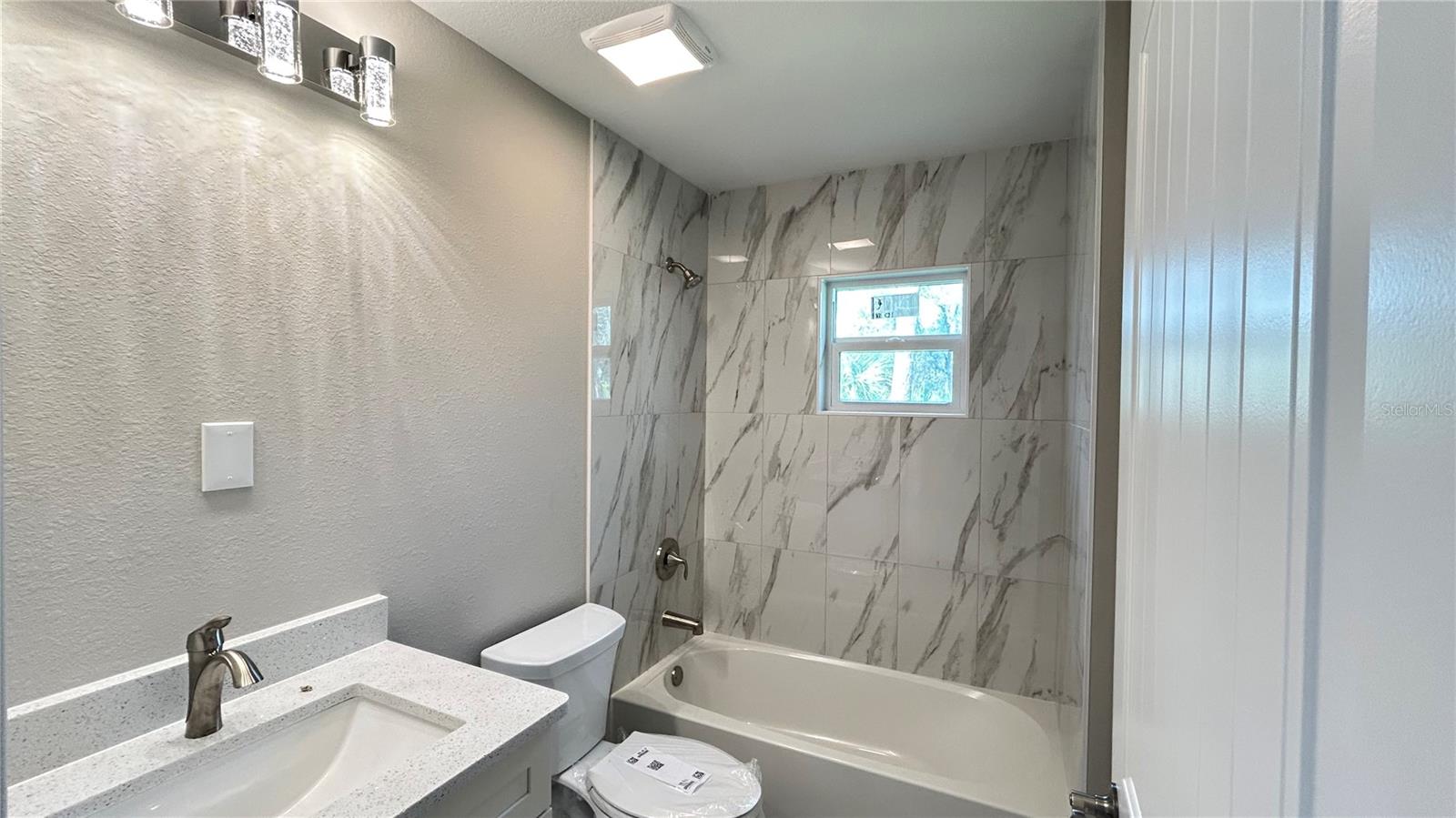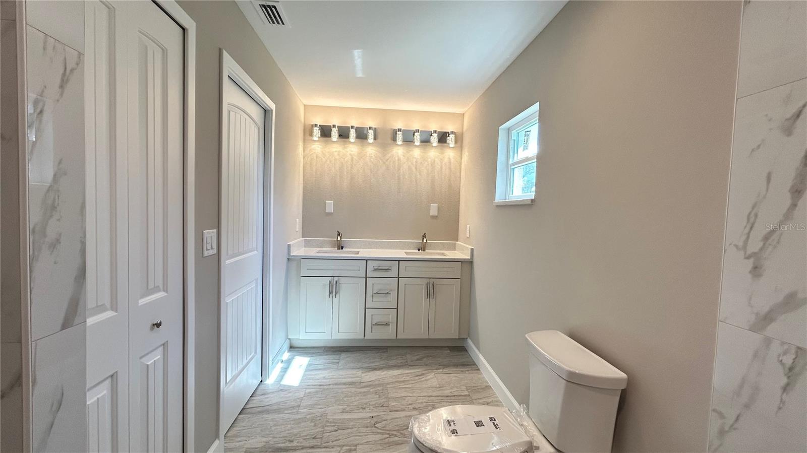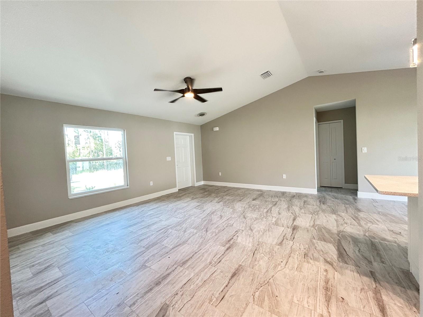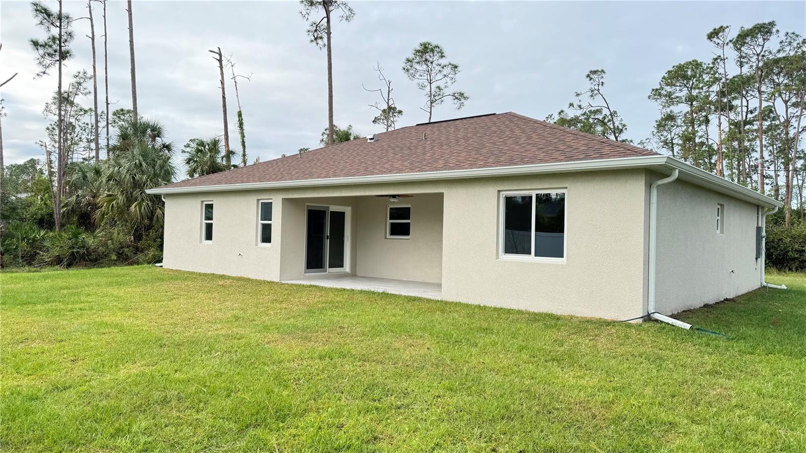 COMPLETED AND READY FOR OCCUPANCY. Welcome to this new and beautifully constructed 3 bedrooms + ENCLOSED OFFICE (11x13) with spotlights, 2 bathrooms home with a 2-car garage. It is located in the fast-growing city of North Port. This property features ceramic tile floors throughout the house for easy maintenance, impact windows and impact sliding doors, which do not need hurricane shutters. The living area is expansive and has large sliding glass doors, which open up to the porch. The tiled lanai is under one roof with the house. The kitchen has quartz counter tops. It also features 39'' inches soft closing cabinets, upgraded stainless steel appliances, and a kitchen island overlooking the living and dining/breakfast areas. The master bedroom has a walk-in closet and sliding doors that lead to the lanai. The master bathroom has a linen closet, walk-in shower with a built-in bench and a double sink. Both - the master and guest bathrooms have full-length tiled shower walls. There is also a linen closet in the hall (between two guest bedrooms), and an inside laundry room with a sink. Other features of this home include seamless gutters around the entire house, quartz windowsills. There is plenty of room for a pool.