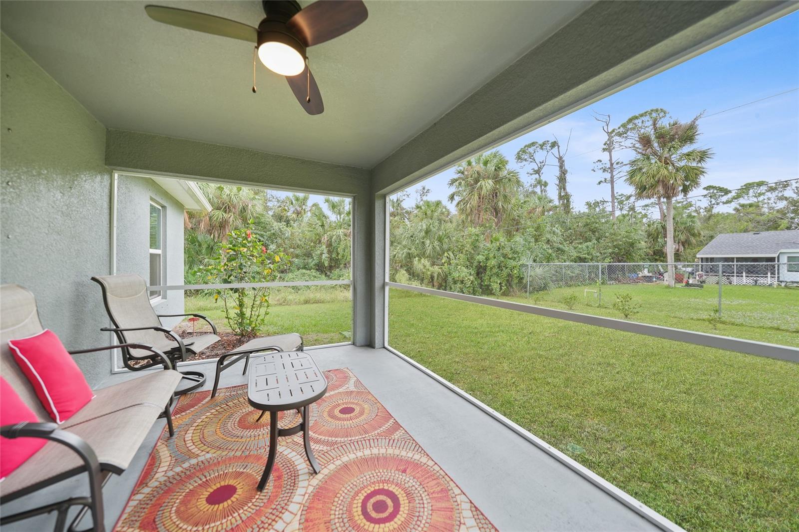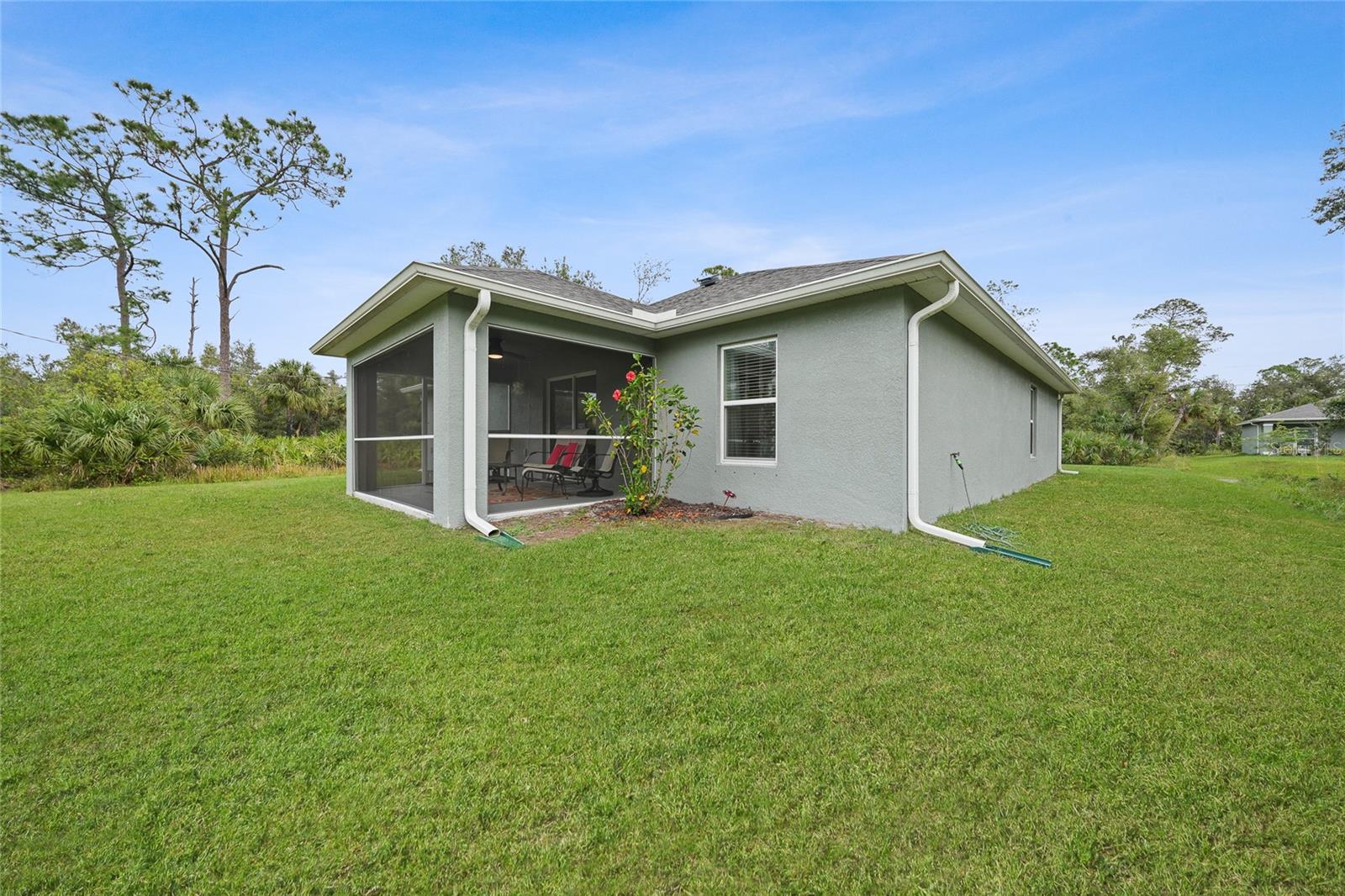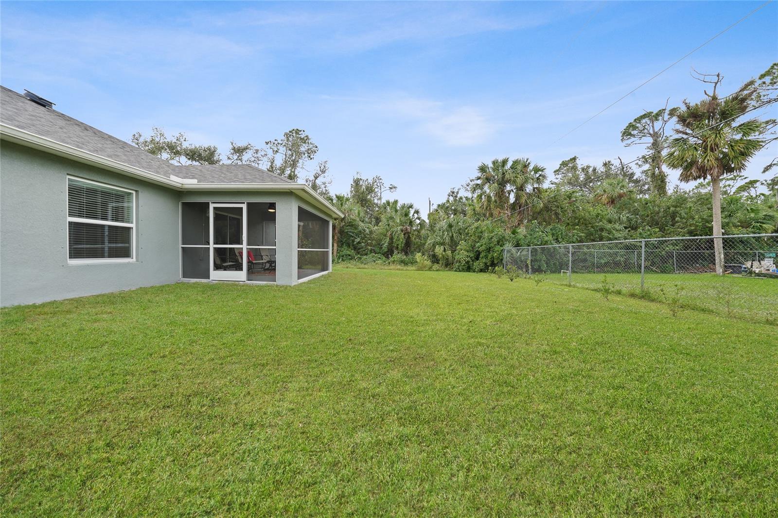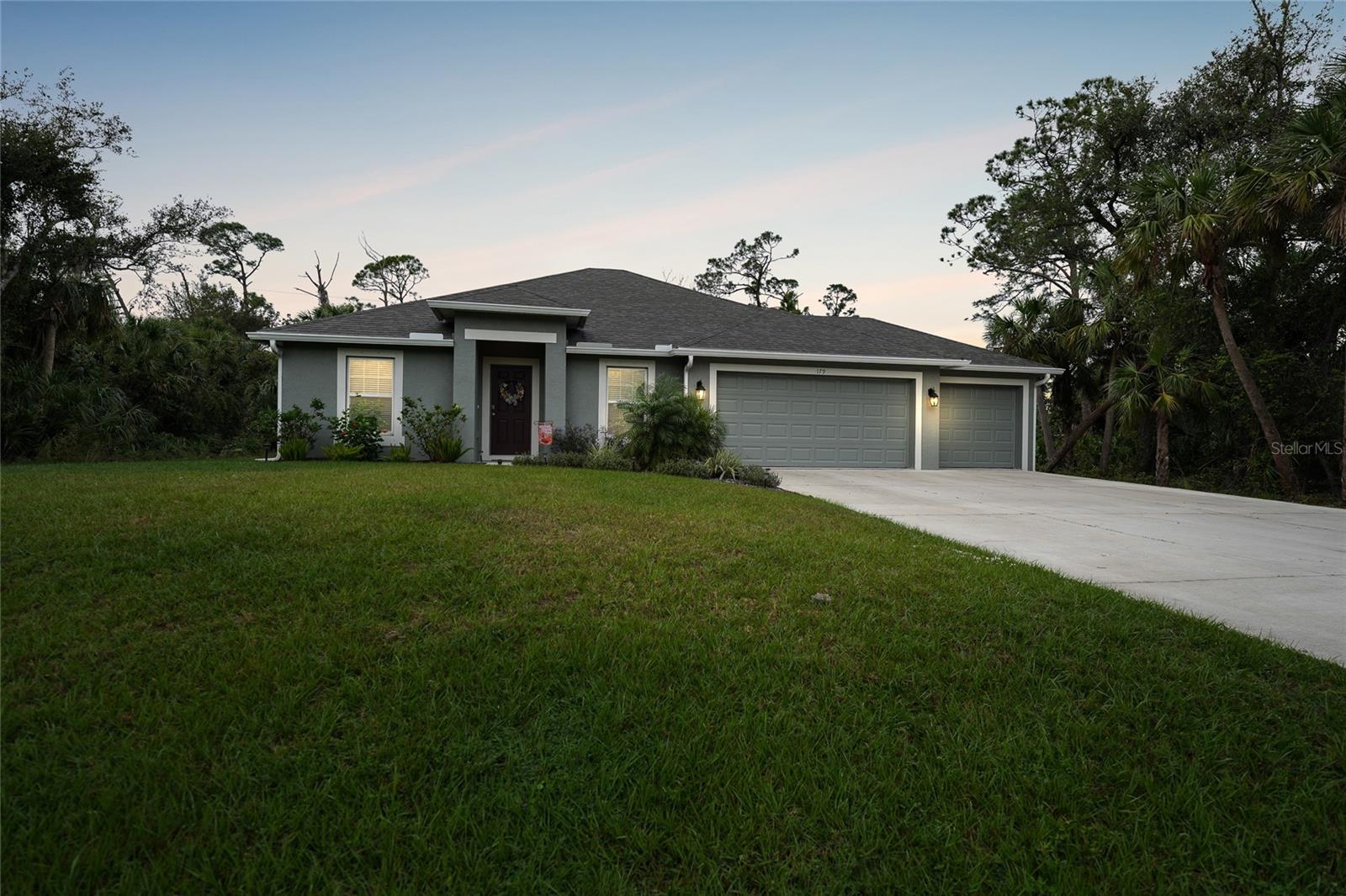 Welcome to this beautifully crafted 3-bedroom, 2-bathroom, 3-car garage home located in the desirable community of Port Charlotte. Built by Holiday Builders, this spacious Fallon model offers an open and inviting layout with modern finishes throughout. Upon entering, you'll be greeted by a formal dining room to the right and a bright living room to the left, both featuring luxury vinyl flooring that flows seamlessly through the main living spaces. The home opens into a spacious living room with soaring ceilings and expansive sliders that lead to the lanai, perfect for indoor-outdoor living. The impressive kitchen is a chef's dream, featuring gorgeous granite countertops, a large breakfast bar, and a pantry closet for ample storage. High-end Whirlpool stainless steel appliances complement the beautiful Shaker-style cabinetry, complete with crown molding, creating an elegant and functional cooking space. The kitchen is open to both the family room and dining room, making it perfect for entertaining. This home boasts a desirable split floor plan, with the spacious owner's suite privately located on one side of the home. The suite features plush carpeting, a custom walk-in closet, and an ensuite bathroom with a walk-in shower and a dual-sink granite vanity for added luxury. On the other side of the home, you'll find two guest bedrooms, both featuring plush carpeting and built-in closets. The guest rooms share a full bathroom, providing comfort and convenience for family or visitors. Convenience is key with a dedicated laundry room, which includes a washer and dryer, flowing seamlessly into the three-car garage. This extra-large garage offers plenty of storage space or room for additional vehicles, a workshop, or hobbies. The 16x10 screened lanai is the perfect spot for relaxing, entertaining, or enjoying a morning coffee while staying protected from the elements. Located in a quiet, well-established neighborhood in Port Charlotte, this home is close to shopping, dining, parks, and schools, offering the best of Florida living.