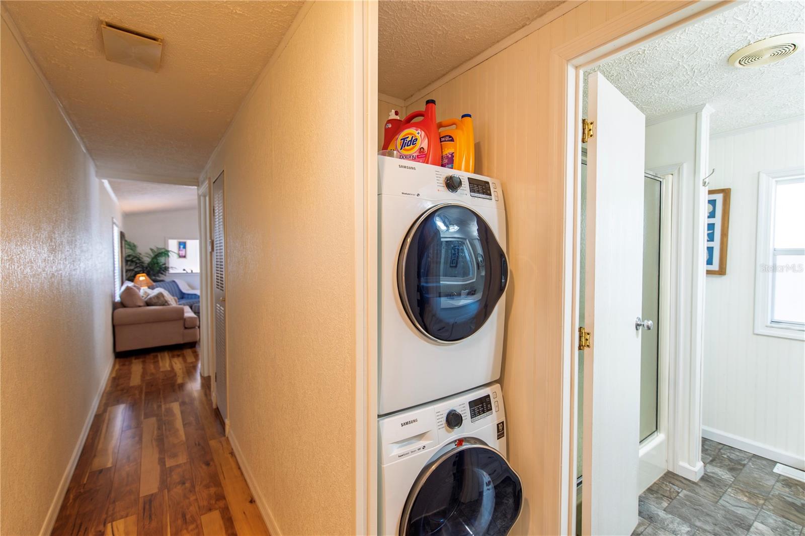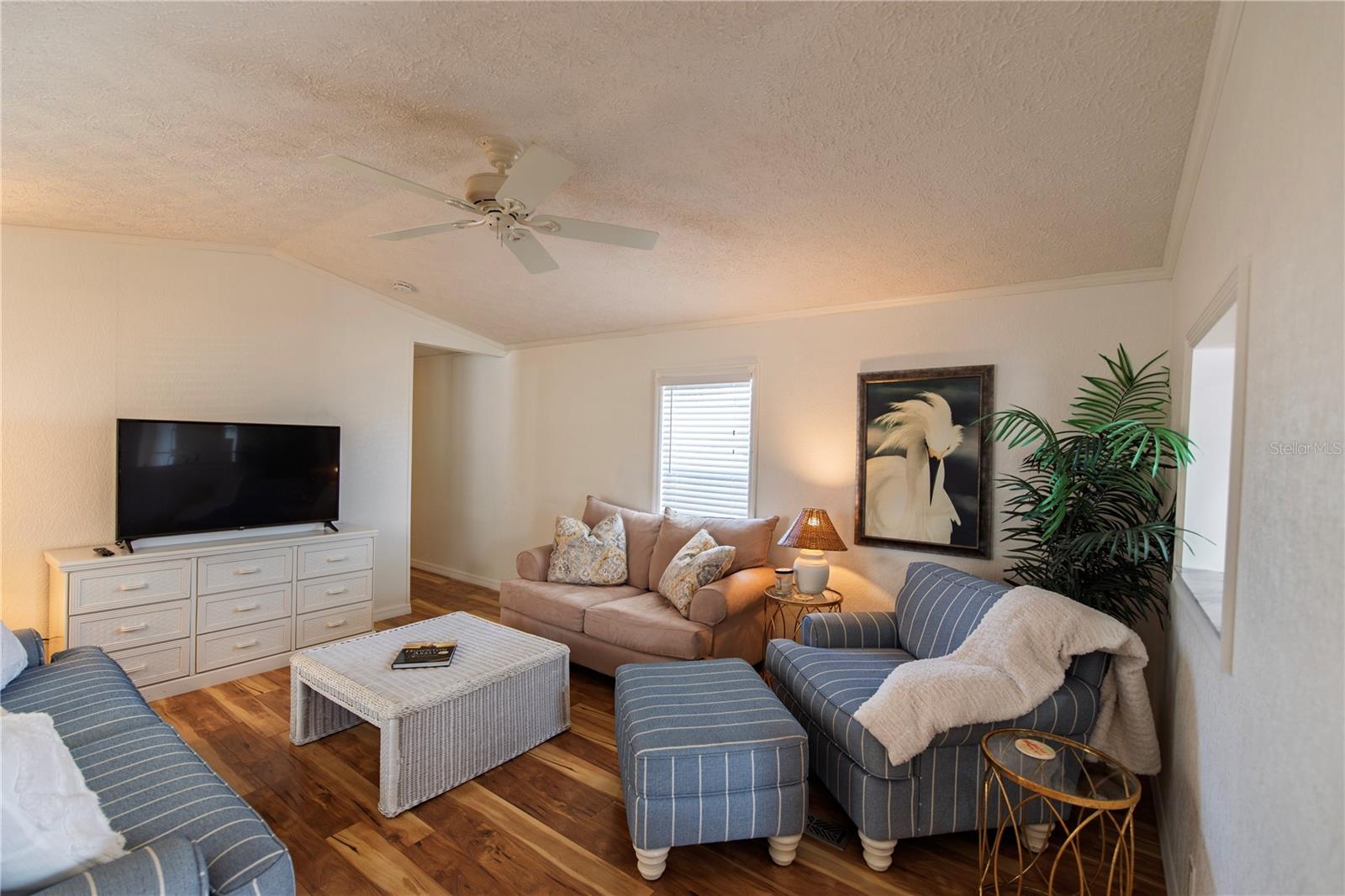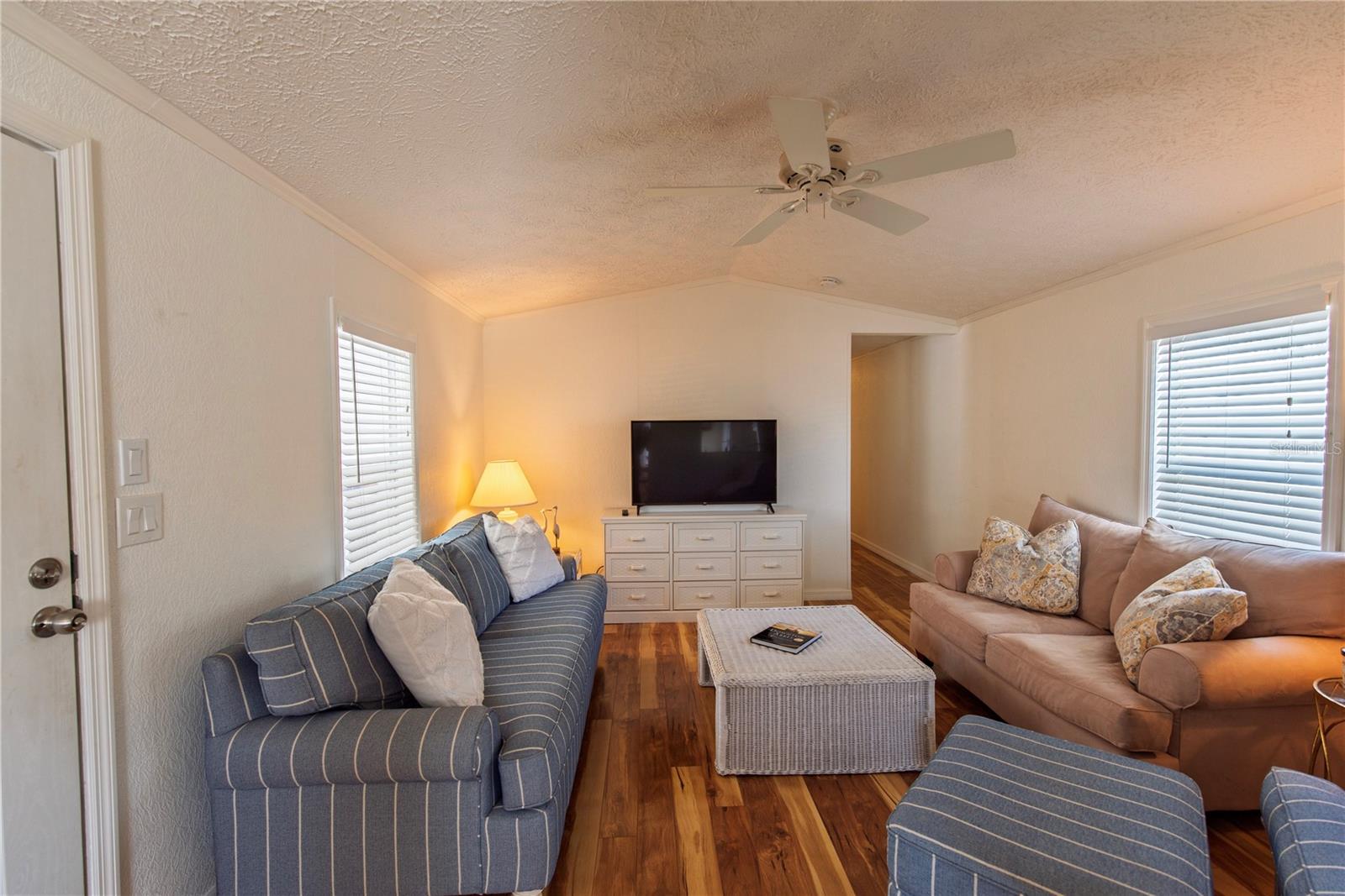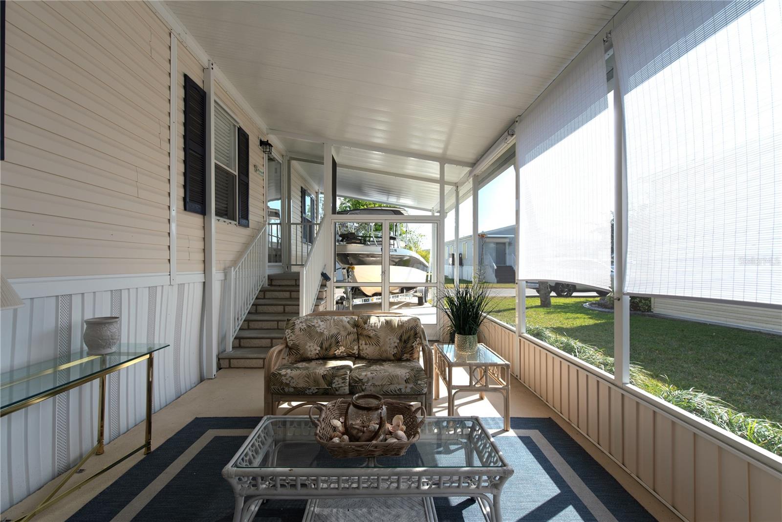 Located in the desirable 55+ community of Windmill Village, this 2005 Dynasty turnkey home offers 784 square feet of thoughtfully designed living space. The open-concept layout features modern granite countertop, a new backsplash, and updated LED pot lights. Freshly painted throughout, the home includes all-new plugs and switches, plus added lighting upgrades like new closet lights in the primary bedroom and a new bed and mattress in the second bedroom. Enjoy outdoor living on the lanai, with power and lights added inside the shed in 2022, a power plug for a golf cart, and roll-down sun blinds. The property also boasts a carport with steel cables installed after Hurricane Ian for extra security. Additional updates include a new membrane roof (2018), Yolink house and fridge temperature alarms linked to your phone, new outdoor light fixtures (2021), a washer and dryer with a 10-year warranty (2021), and a new hot water heater (2024). The driveway, expanded to a double-wide concrete space in 2022, offers tie-downs for a boat and golf cart, along with tightened house tie-downs adjusted in 2024 added a second driveway to accommodate additional parking. The home also features upgraded security with five new deadbolts and matching door handles for the house and shed. Lush new landscaping enhances curb appeal, making this property a true gem in Windmill Village. Plus, the HOA of $226.00 covers water, sewer, trash, grass maintenance, common area upkeep, and road maintenance, ensuring a hassle-free lifestyle for residents. Don't miss your chance to experience the comfort and convenience of waterfront living in this meticulously maintained home at Windmill Village! This active lifestyle community features two private marinas, boat ramp, trailer storage yard, horseshoe pits, shuffleboard, bocce ball, billiards, indoor pickleball, a large community center and many clubs catering to your hobby interests. The Pavilion by the heated pool offers an area for holding gatherings. Punta Gorda was voted "#1 Best Small Place to Live" by Money Magazine and Forbes. Purchase price does not include $18,285 for Buy-In Share and Bond, which is refunded when you sell. Don't miss the opportunity to make this thoughtfully upgraded and beautifully maintained home in Windmill Village yours! Schedule your showing today-this is your paradise.