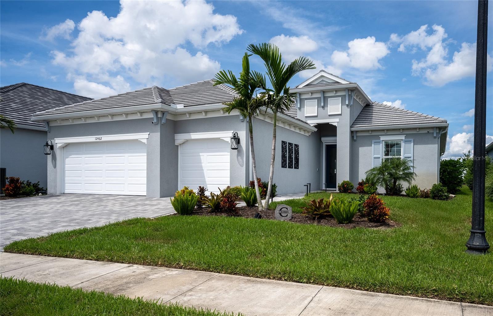 EXCEPTIONAL 4 BEDROOM, 3.5 BATH, 3-CAR GARAGE LAKEFRONT POOL HOME IN THE GATED OASIS COMMUNITY IN WELLEN PARK! Built-in 2023, this spacious gem offers 3,033 square feet of luxurious living space including a separate flex space perfect for an office, game room or playroom and is perfect for those who love to entertain or simply enjoy the Florida lifestyle. Upgrades abound in this stunning Interlude model with hurricane impact windows, recessed lighting, high end brushed gold fixtures, custom cabinetry & quartz countertops and conveniently equipped with high end Sonos sound system throughout the home that is effortlessly controlled right from your phone! Step inside and be greeted by a bright and airy open floor plan, complete with a chef's kitchen, featuring modern stainless appliances, beautiful quartz counters with ample space for all your cooking adventures plus large center island with breakfast bar. The living area boasts a large slider which flows seamlessly to a covered lanai and beautiful sparkling pool with a gorgeous lake view! The primary suite is a true retreat, featuring a spacious walk-in closet and a private en-suite bathroom with dual vanities, quartz counters, standalone soaking tub and walk-in shower with dual shower heads. The split floor plan provides privacy for guests with a separate hall leading to three bedrooms, a jack and jill bath and a third bath with convenient access to lanai and pool. Meticulously maintained landscaping, a cozy front porch to enjoy your morning coffee and true western exposure from the lanai to enjoy amazing sunsets are also featured. Located in a gated community with access to fantastic amenities like pickleball courts, dog park, resort style pool w/clubhouse and lovely walking trails. Situated among the booming Wellen Park area you are minutes from both fine & casual dining, shopping, parks, nature trails, entertainment and so much more! Don't miss out on this incredible opportunity to own a piece of paradise in Venice. Schedule a showing today!