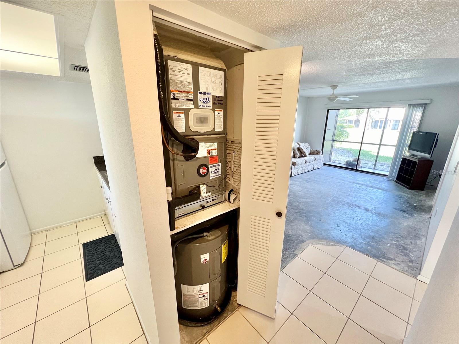 Welcome to Sandhill Pines, your new home in the heart of Port Charlotte! Nestled within a vibrant 55+ community, this ground floor corner unit offers a rare opportunity for both convenience and tranquility. As you step inside, you're greeted by an inviting open floor plan that seamlessly combines the living and dining areas, creating a spacious and airy atmosphere perfect for entertaining or relaxing. BRAND NEW LUXURY VINYL FLOORING in the living room and the bedrooms that was just recently done. The condo boasts modern comforts, including a newer water heater and A/C system, ensuring year-round comfort. Convenience is key with a stackable washer and dryer tucked away inside the unit, making laundry days a breeze. Step outside onto your private screened balcony, where you can unwind and enjoy the serene surroundings. With a storage closet included, you'll have ample space to stow away your belongings. For those who enjoy an active lifestyle, the community offers amenities such as a tennis court and a refreshing pool. Nature enthusiasts will appreciate the beautiful pond situated just beyond the condo, providing a peaceful backdrop to your daily routine. Location couldn't be better, with easy access to I-75 and just a short drive to Englewood Beach and Boca Grande Beach, where you can soak up the sun and enjoy the coastal lifestyle. Additionally, convenience is at your doorstep, with Winn Dixie, Bealls, and a variety of restaurants and shops right around the corner. Don't miss out on the opportunity to call this Sandhill Pines condo your own. Schedule your showing today and start envisioning your new chapter in this wonderful community.
