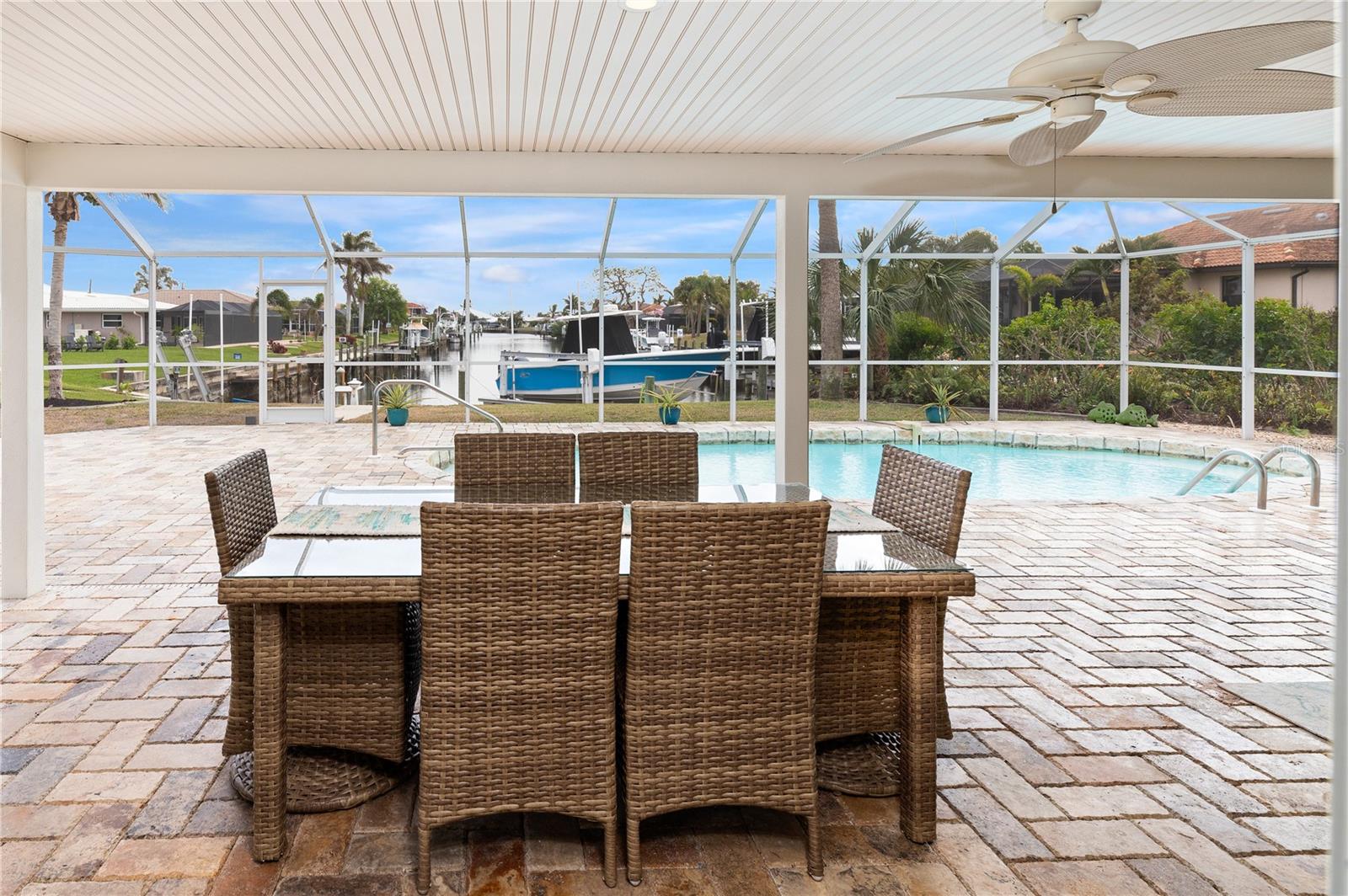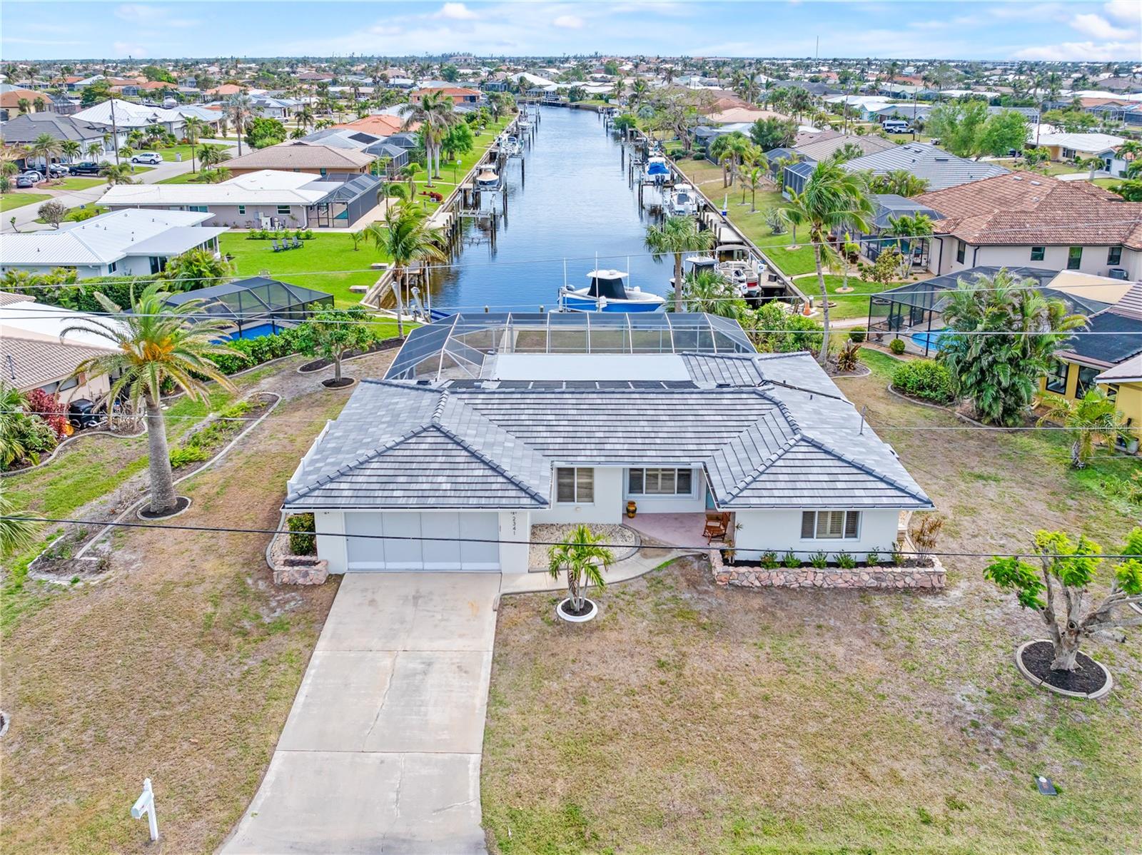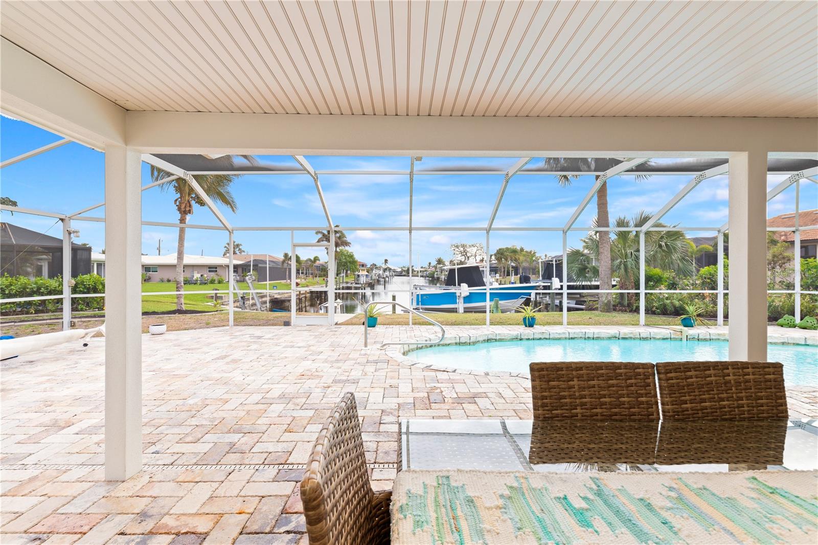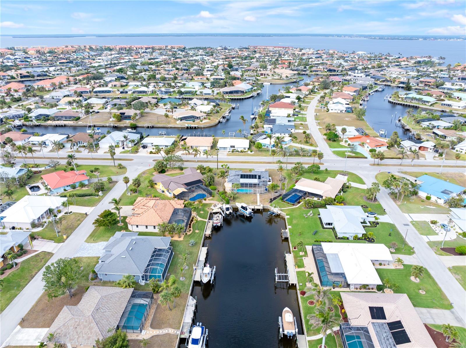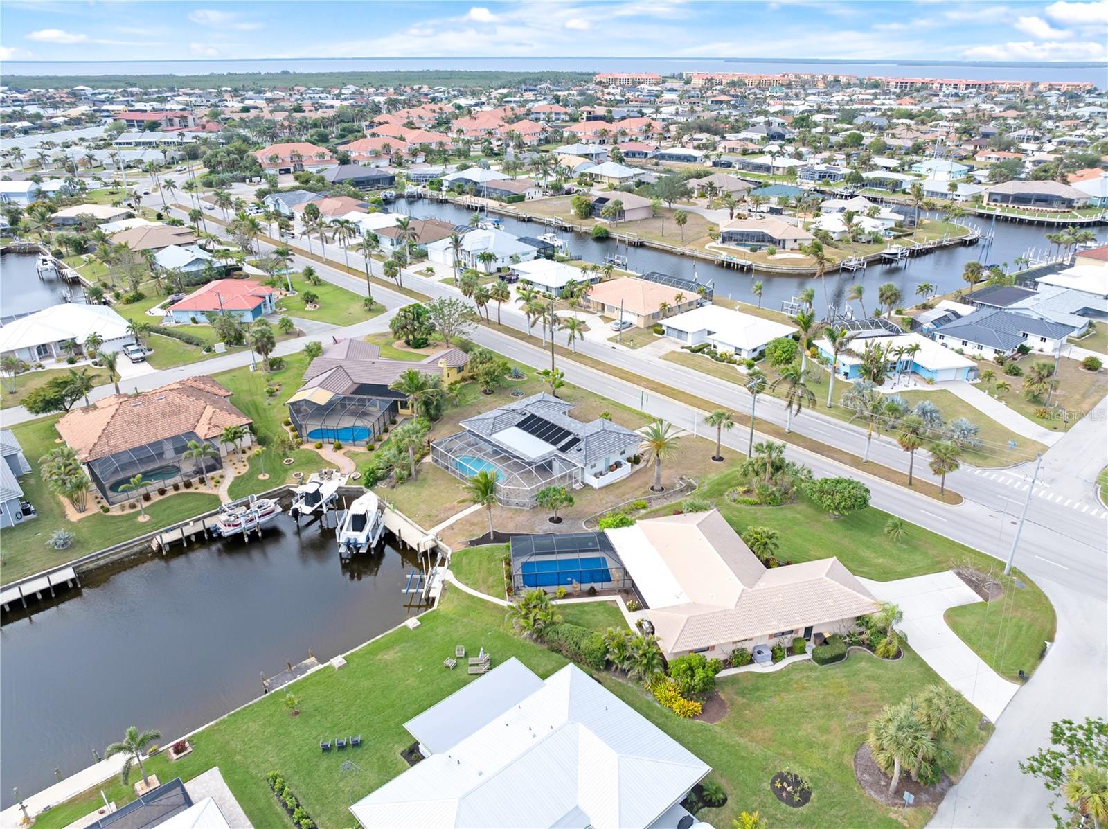 PUNTA GORDA ISLES UPDATED POOL HOME WITH CANAL LONG VIEW OF SWORDFISH STRAIGHT. THIS OPEN FLOOR PLAN CONCEPT WITH SLIDINGS DOORS LEADING TO LIVING ROOM, PRIMARY BEDROOM AND KITCHEN PERFECT FOR INDOOR/ OUTDOOR LIVING AND TONS OF NATURAL LIGHT. THE KITCHEN FEATURES MANY UPGRADES INCLUDING SUB ZERO REFRIGERATOR, OPAL MARBLE COUNTERTOPS, ZEPHYR GLASS EXHAUST HOOD, NEW GE DISHWASHER, UNDER CABINET LED LIGHTING AND GE PROFILE LP GAS STOVETOP. THE HOME OPENS UP TO AN OVER SIZED TRAVERTINE LANAI WITH LARGE UNDER COVER AREA AND GORGEOUS POOL WITH NEW PROGRAMABLE POOL PUMP AND AUTOMATIC SOLAR POOL HEATER. WALK DOWN THE NEW SIDEWALK TO YOUR EXPANDED 32 FOOT DOCK THAT INCLUDES ELECTRICITY, WATER AND FISH CLEANING STATION AND ENJOY YOUR US BOAT 10K BOAT LIFT WITH NEW GEM BOAT LIFT REMOTE CONTROL WITH NEW CABLES AND DRIVE MOTORS. THIS HOME HAS SO MANY UPGRADES THAT MAKE IT TRULY MOVE IN READY THEY INCLUDE: NEW CONCRETE TILE ROOF, NEW 3 TON LENNOX HVAC SYSTEM, NEW PAINT INSIDE AND OUT, CAROLINA SHUTTERS IN LIVING ROOM AND BEDROOMS, COMMERCIAL GRADE GE WASHER AND DRYER AND SO MUCH MORE. HOME IS LOCATED IN WONDERFUL PUNTA GORDA ISLES CLOSE TO ALL THAT THE CITY HAS TO OFFER. SCHEDULE YOUR SHOWING TODAY!!