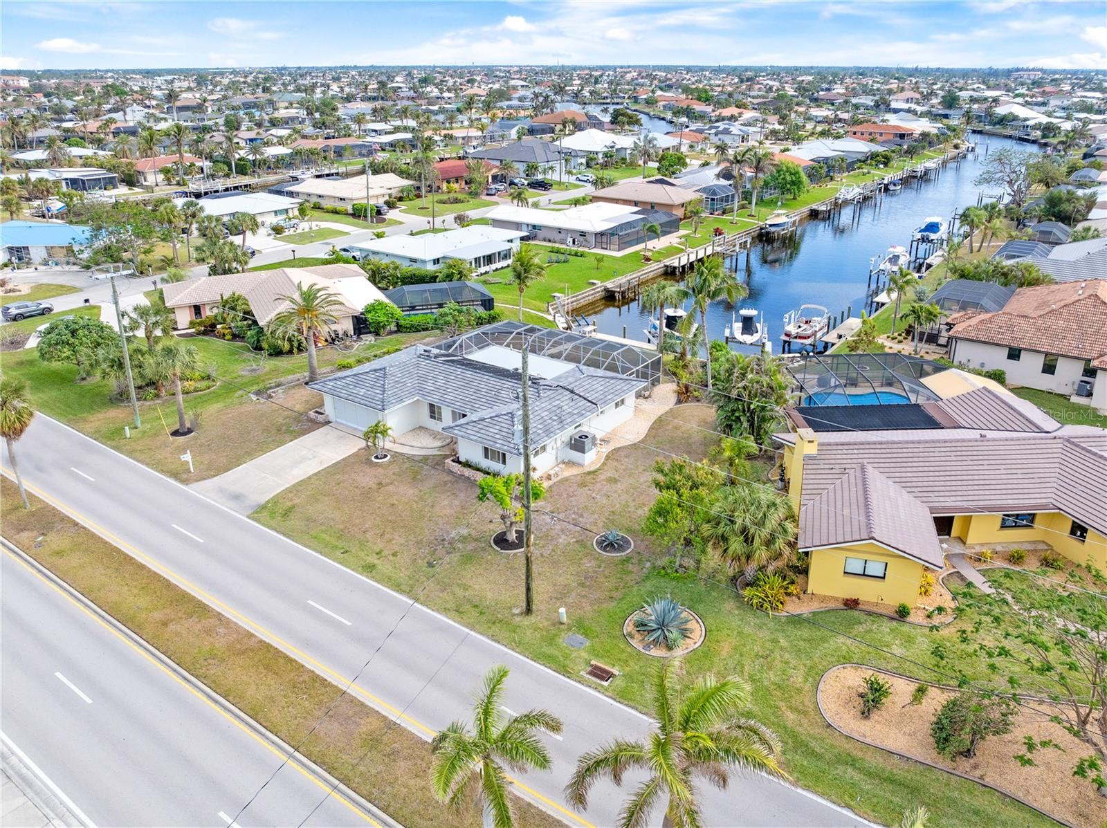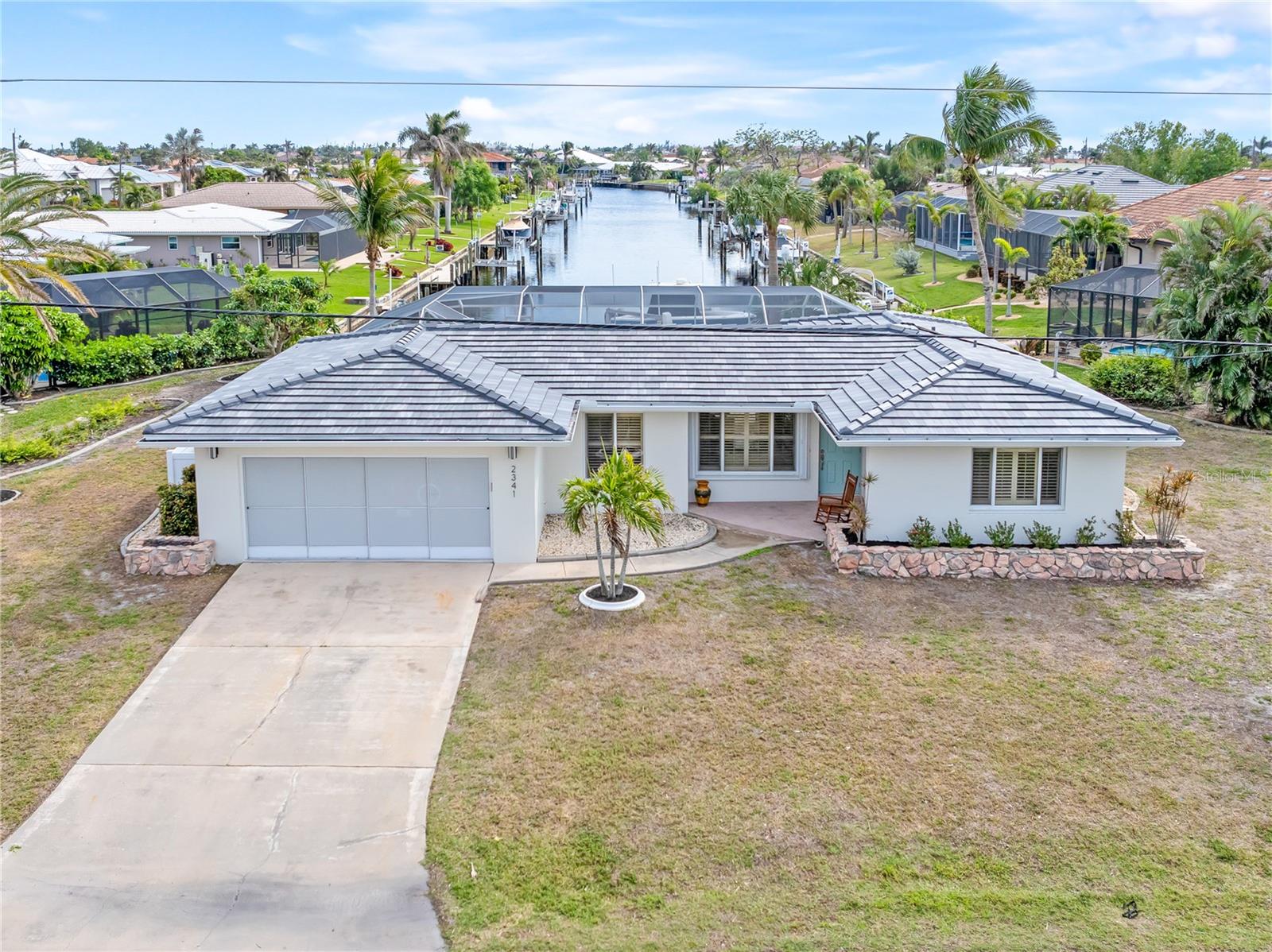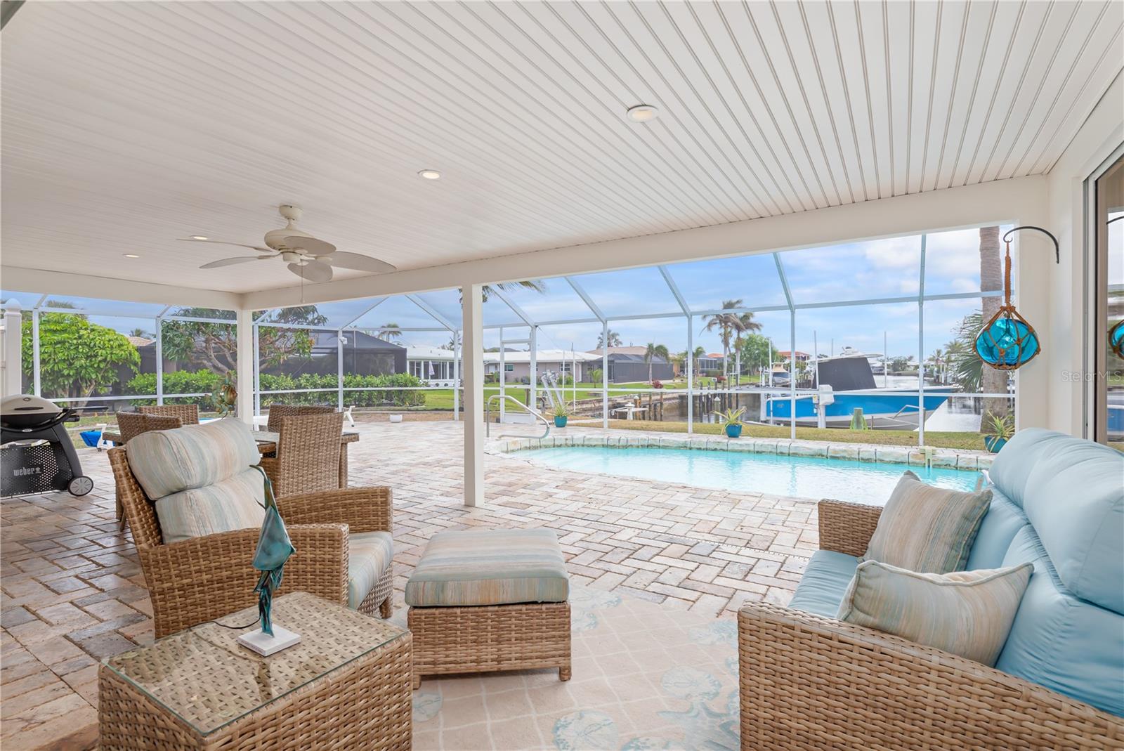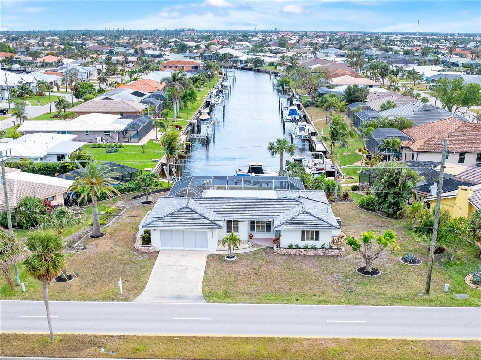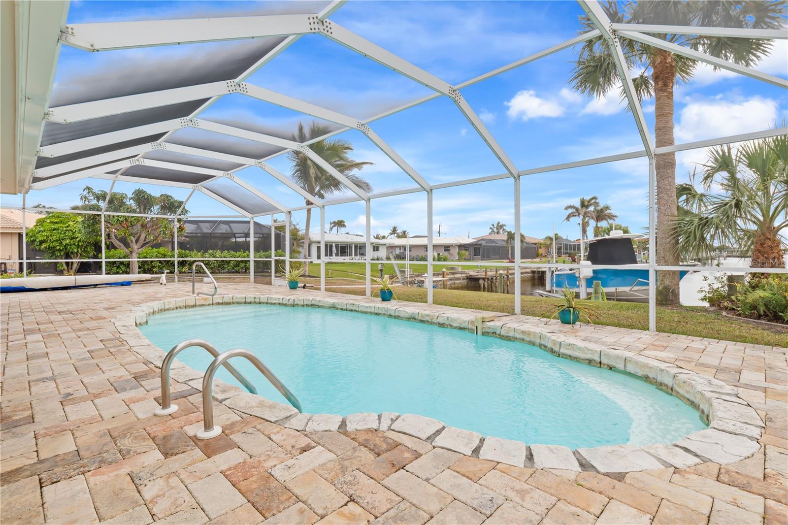 PUNTA GORDA ISLES UPDATED POOL HOME WITH CANAL LONG VIEW OF SWORDFISH STRAIGHT. THIS OPEN FLOOR PLAN CONCEPT WITH SLIDINGS DOORS LEADING TO LIVING ROOM, PRIMARY BEDROOM AND KITCHEN PERFECT FOR INDOOR/ OUTDOOR LIVING AND TONS OF NATURAL LIGHT. THE KITCHEN FEATURES MANY UPGRADES INCLUDING SUB ZERO REFRIGERATOR, OPAL MARBLE COUNTERTOPS, ZEPHYR GLASS EXHAUST HOOD, NEW GE DISHWASHER, UNDER CABINET LED LIGHTING AND GE PROFILE LP GAS STOVETOP. THE HOME OPENS UP TO AN OVER SIZED TRAVERTINE LANAI WITH LARGE UNDER COVER AREA AND GORGEOUS POOL WITH NEW PROGRAMABLE POOL PUMP AND AUTOMATIC SOLAR POOL HEATER. WALK DOWN THE NEW SIDEWALK TO YOUR EXPANDED 32 FOOT DOCK THAT INCLUDES ELECTRICITY, WATER AND FISH CLEANING STATION AND ENJOY YOUR US BOAT 10K BOAT LIFT WITH NEW GEM BOAT LIFT REMOTE CONTROL WITH NEW CABLES AND DRIVE MOTORS. THIS HOME HAS SO MANY UPGRADES THAT MAKE IT TRULY MOVE IN READY THEY INCLUDE: NEW CONCRETE TILE ROOF, NEW 3 TON LENNOX HVAC SYSTEM, NEW PAINT INSIDE AND OUT, CAROLINA SHUTTERS IN LIVING ROOM AND BEDROOMS, COMMERCIAL GRADE GE WASHER AND DRYER AND SO MUCH MORE. HOME IS LOCATED IN WONDERFUL PUNTA GORDA ISLES CLOSE TO ALL THAT THE CITY HAS TO OFFER. SCHEDULE YOUR SHOWING TODAY!!
