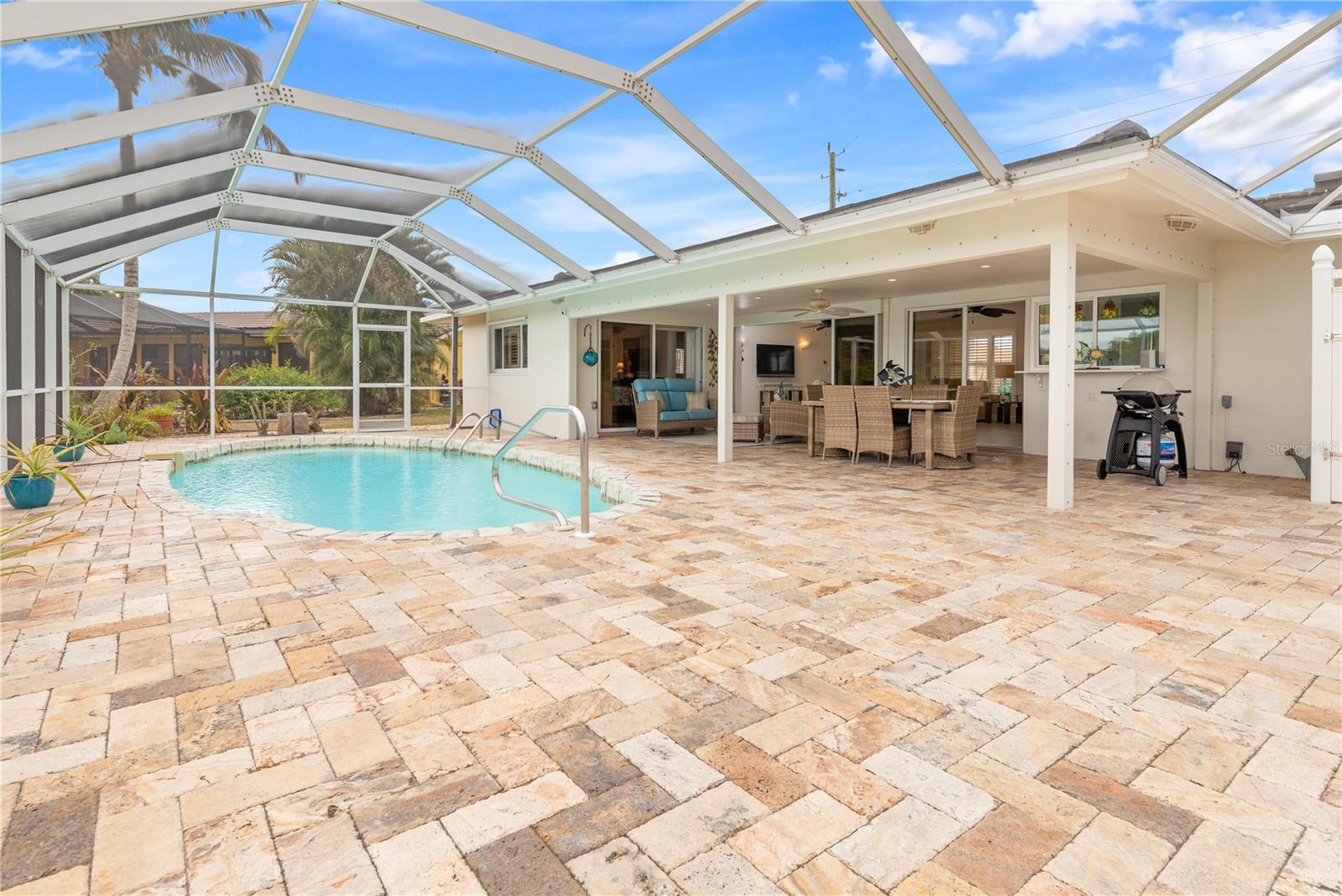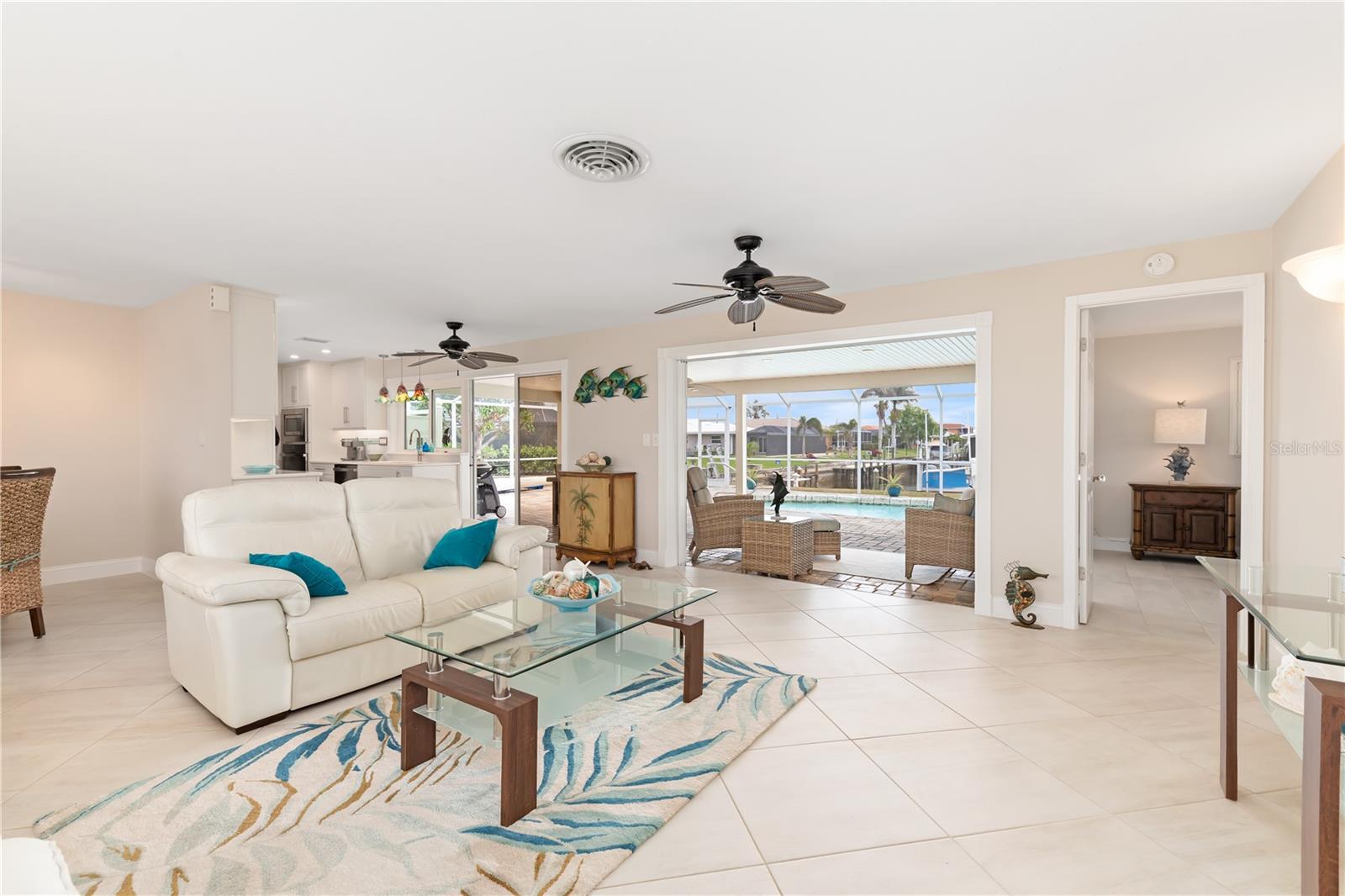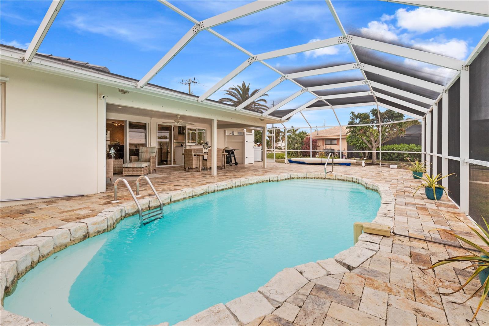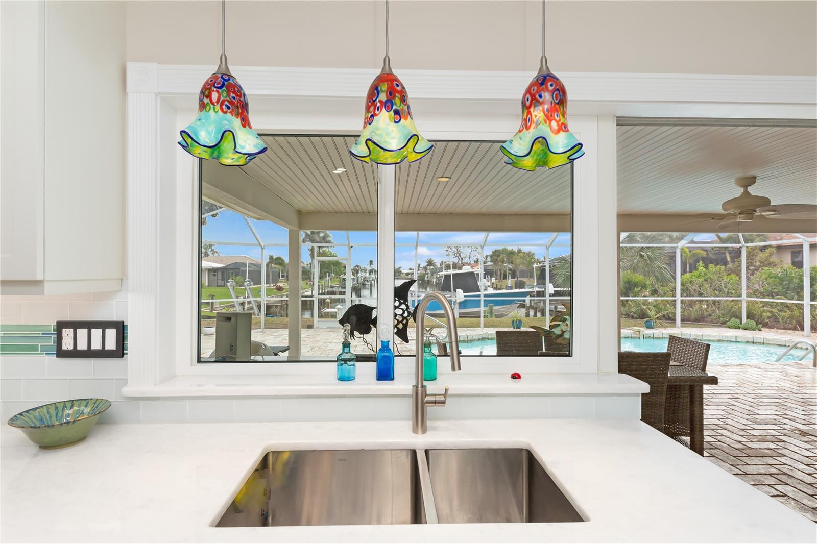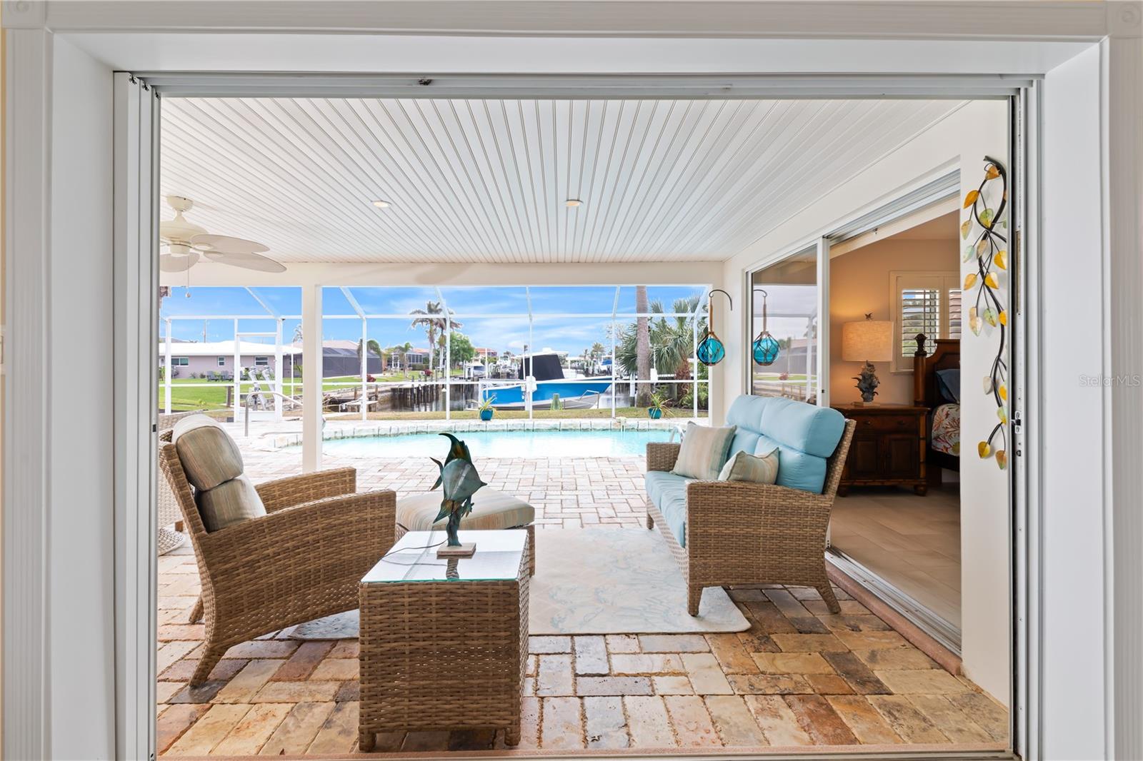 PUNTA GORDA ISLES UPDATED POOL HOME WITH CANAL LONG VIEW OF SWORDFISH STRAIGHT. THIS OPEN FLOOR PLAN CONCEPT WITH SLIDINGS DOORS LEADING TO LIVING ROOM, PRIMARY BEDROOM AND KITCHEN PERFECT FOR INDOOR/ OUTDOOR LIVING AND TONS OF NATURAL LIGHT. THE KITCHEN FEATURES MANY UPGRADES INCLUDING SUB ZERO REFRIGERATOR, OPAL MARBLE COUNTERTOPS, ZEPHYR GLASS EXHAUST HOOD, NEW GE DISHWASHER, UNDER CABINET LED LIGHTING AND GE PROFILE LP GAS STOVETOP. THE HOME OPENS UP TO AN OVER SIZED TRAVERTINE LANAI WITH LARGE UNDER COVER AREA AND GORGEOUS POOL WITH NEW PROGRAMABLE POOL PUMP AND AUTOMATIC SOLAR POOL HEATER. WALK DOWN THE NEW SIDEWALK TO YOUR EXPANDED 32 FOOT DOCK THAT INCLUDES ELECTRICITY, WATER AND FISH CLEANING STATION AND ENJOY YOUR US BOAT 10K BOAT LIFT WITH NEW GEM BOAT LIFT REMOTE CONTROL WITH NEW CABLES AND DRIVE MOTORS. THIS HOME HAS SO MANY UPGRADES THAT MAKE IT TRULY MOVE IN READY THEY INCLUDE: NEW CONCRETE TILE ROOF, NEW 3 TON LENNOX HVAC SYSTEM, NEW PAINT INSIDE AND OUT, CAROLINA SHUTTERS IN LIVING ROOM AND BEDROOMS, COMMERCIAL GRADE GE WASHER AND DRYER AND SO MUCH MORE. HOME IS LOCATED IN WONDERFUL PUNTA GORDA ISLES CLOSE TO ALL THAT THE CITY HAS TO OFFER. SCHEDULE YOUR SHOWING TODAY!!