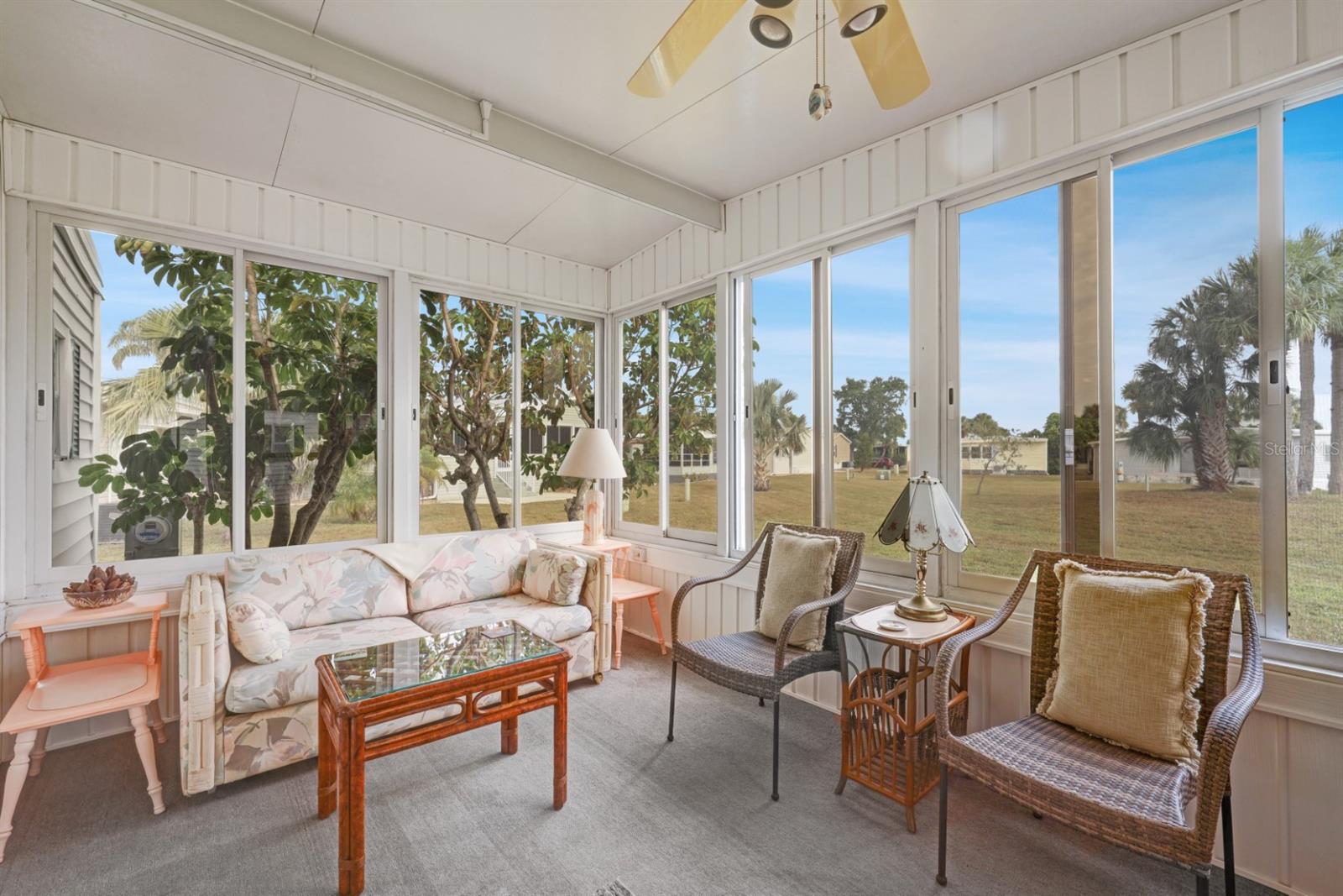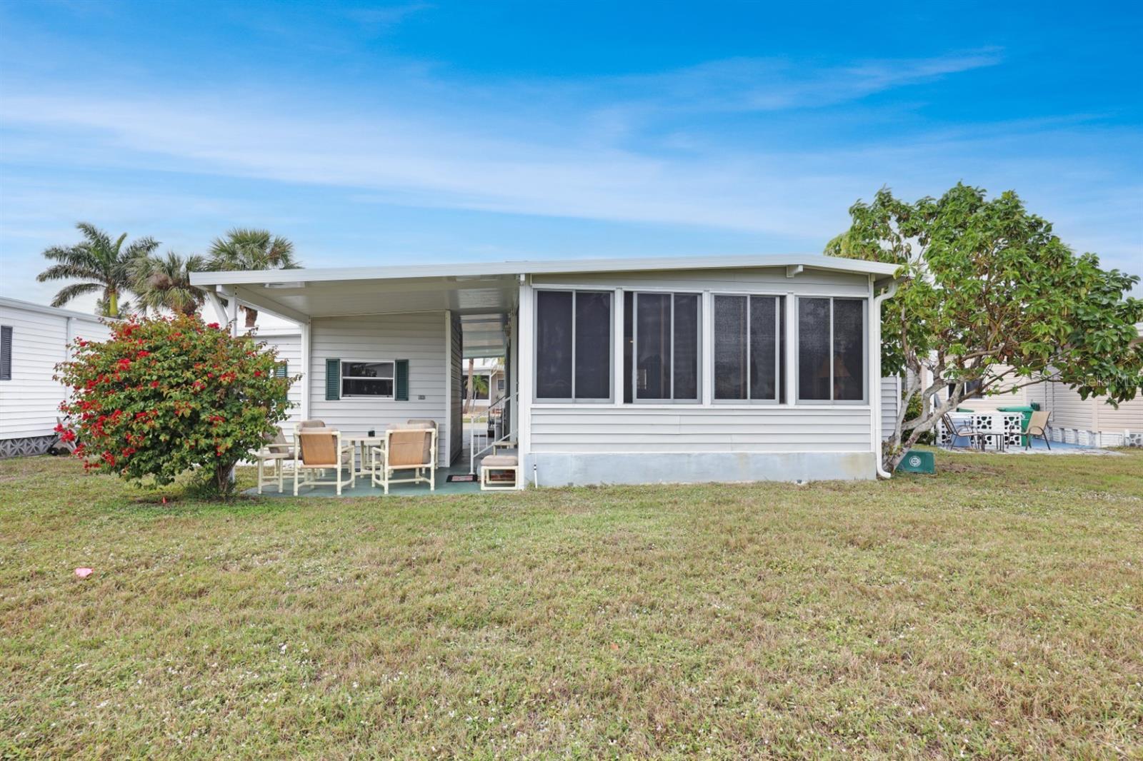 This one could be just what you are looking for - spacious, affordable and with your touches it could be perfect for you. This 2 bedroom/2 full bath home has a fantastic rear lanai overlooking green space. There are also two sheds (one can be used as a golf cart garage) and a covered patio. This home is being sold furnished with a few minor exclusions and with a non warranted golf cart. This 1977 manufactured home has 912 square feet of living space that will be just right for your winter in the sun. In Maple Leaf you'll enjoy an active social community with over 75+ clubs and activities, golf course, 4 pickleball courts, 5 tennis courts, 4 swimming pools, 2 shuffleboard court centers, mini golf, horseshoe pits, 2 hot tubs, clubhouses, 2 restaurants, tiki bar and the list just goes on and on. There's always something to do in Maple Leaf. If you want to hit the interstate and head out to other destinations for a day trip interstate 75 is just a short drive away. There's plenty of restaurants and shopping all within a short drive. If staying local is your thing head down Kings Highway to the Sunseeker resort for many types of dining or to Punta Gorda where downtown always has something to offer. It's all about the lifestyle in Maple Leaf!