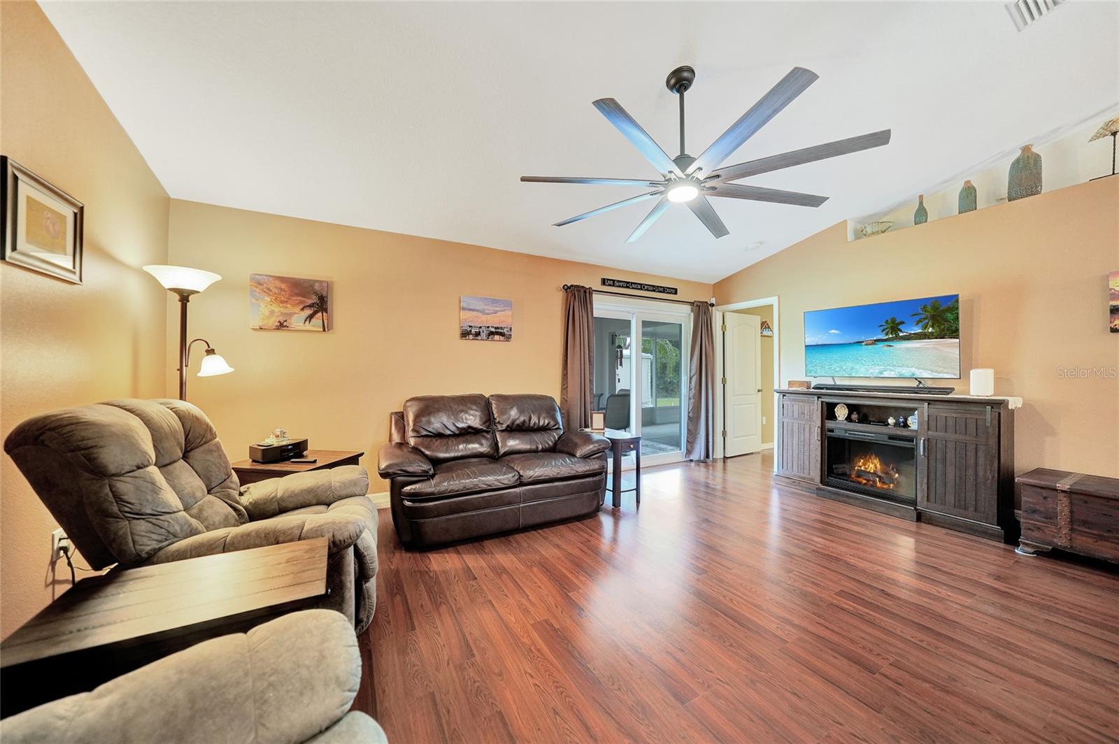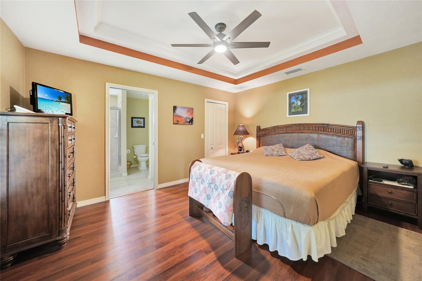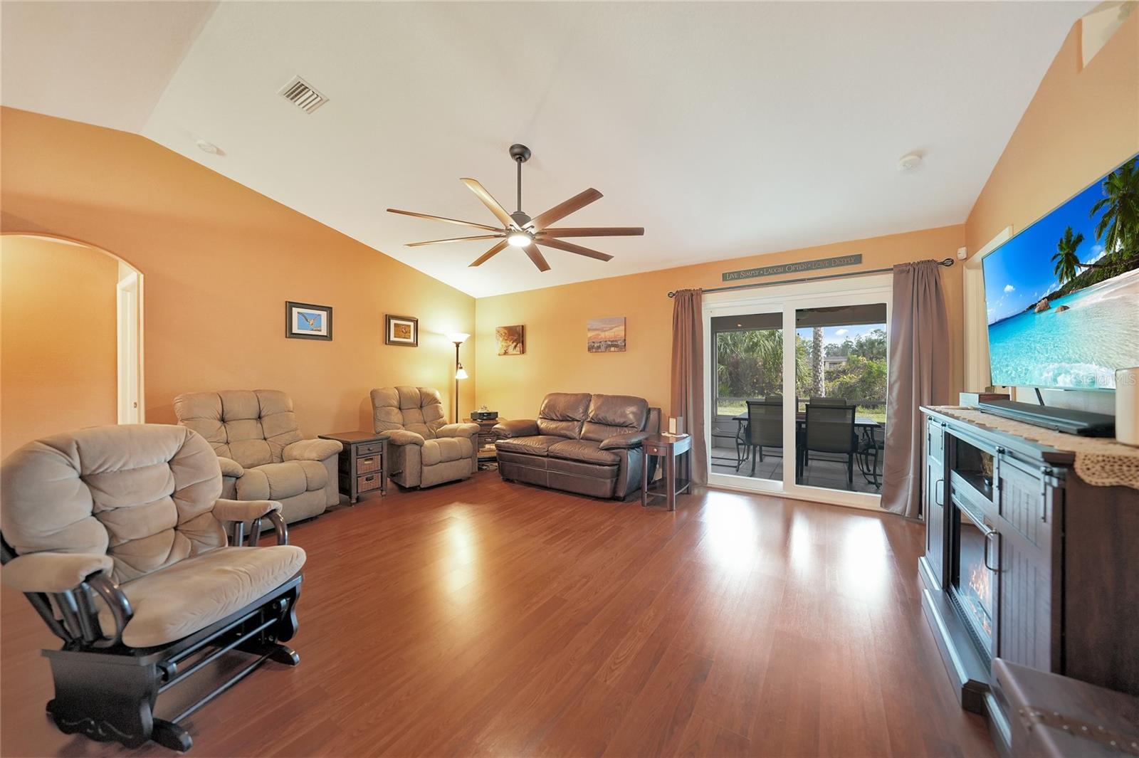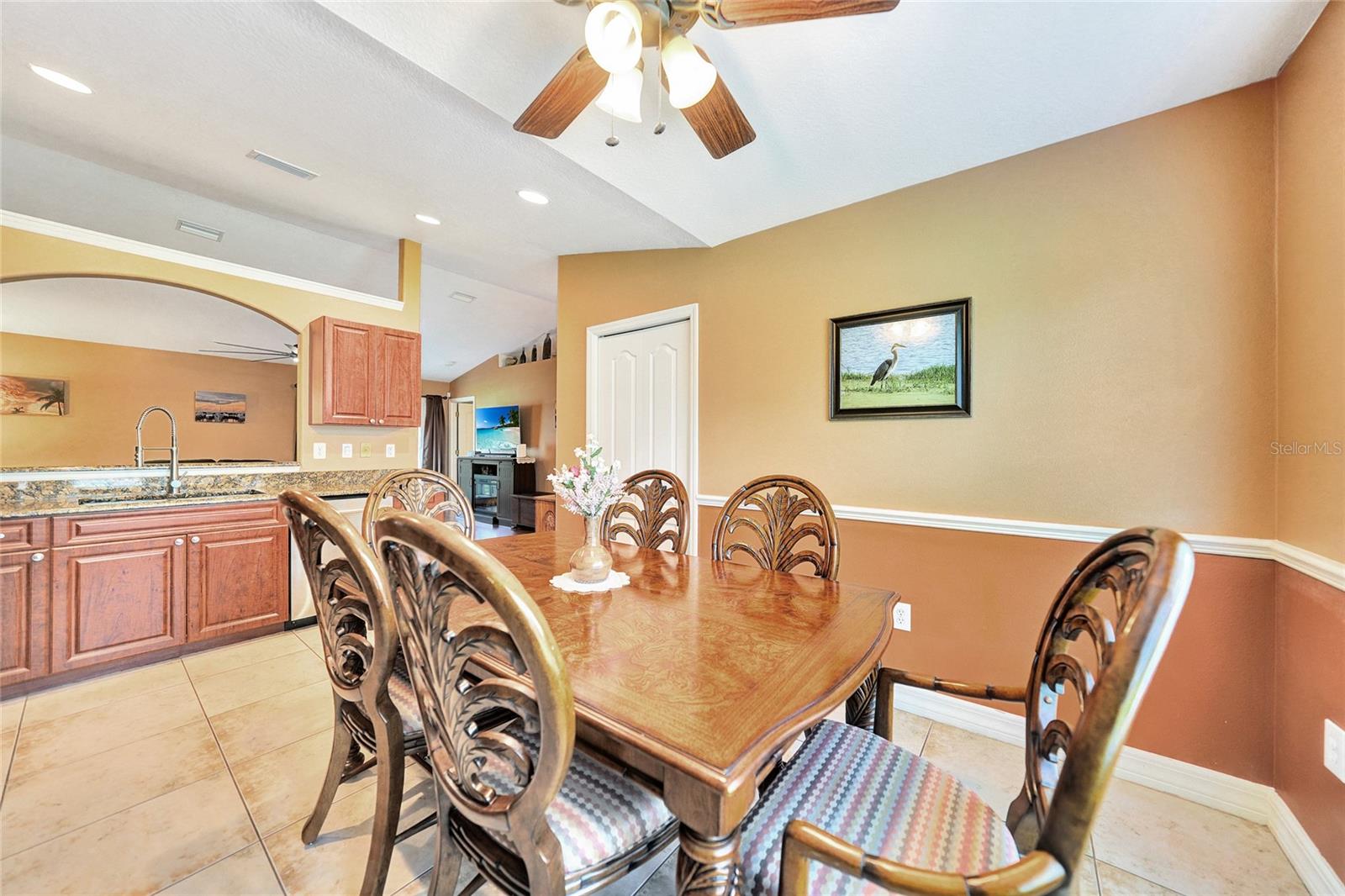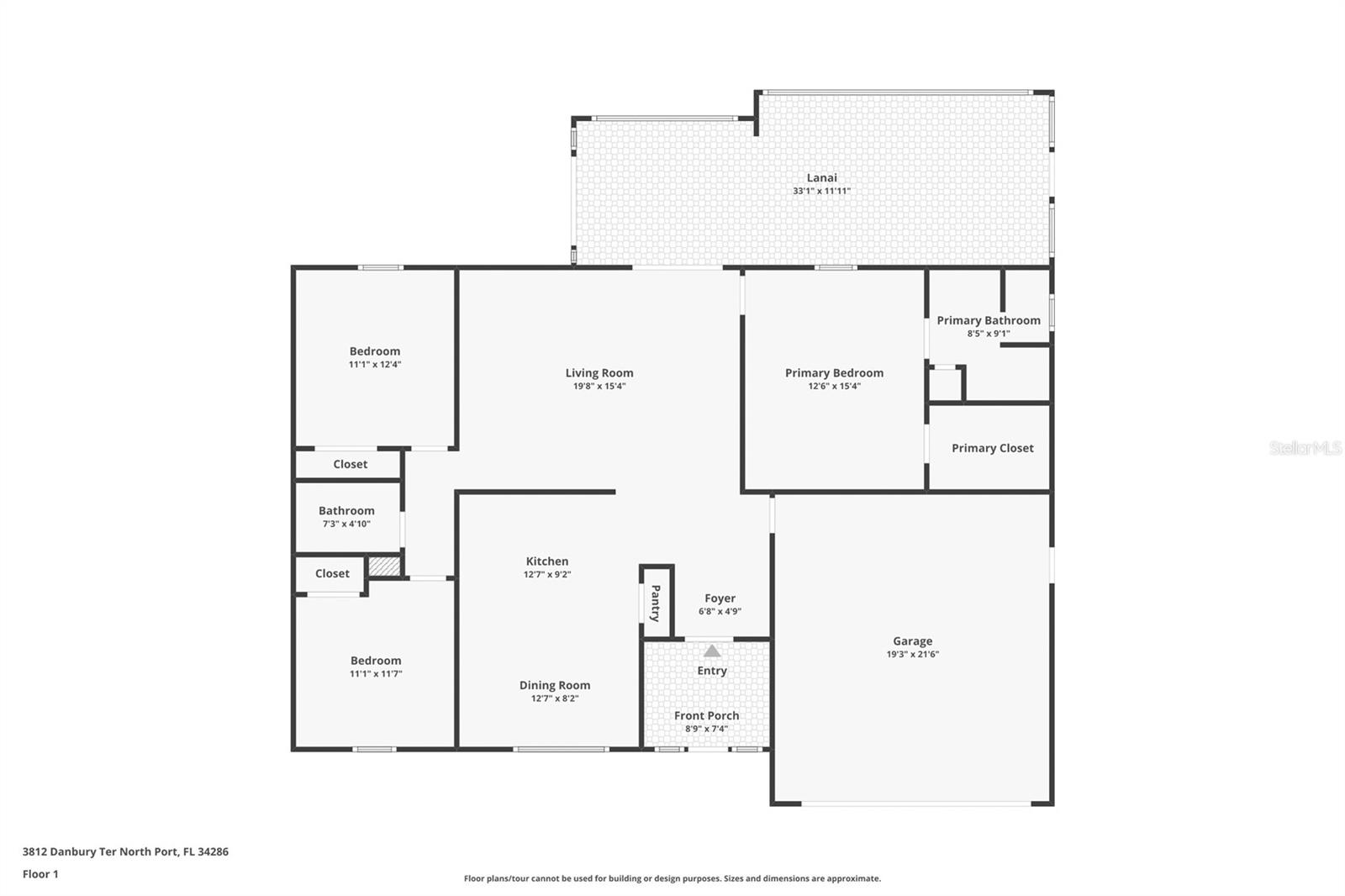 Welcome to your dream home! This beautifully maintained 3-bedroom, 2-bathroom, 2 car garage residence offers 1,350 square feet of modern living space, situated on a spacious 10,000-square-foot lot. Recently updated with a new roof (2023), this home showcases a smart split floor plan with soaring ceilings, blending style and function effortlessly. As you step inside, you'll immediately notice the ceramic tile and wood laminate flooring throughout the home, creating a warm and inviting atmosphere. The heart of the home is the chef-inspired kitchen, featuring sleek hardwood soft-close cabinets, high-end stainless steel appliances, granite countertops, and a Whole House Reverse Osmosis system. The dining area boasts charming windows that overlook the front yard, creating a perfect spot for casual meals. The open-concept design seamlessly connects the kitchen to the spacious great room, where sliding doors lead to the expansive lanai with Jacuzzi and brick paver patio--ideal for outdoor entertaining or simply relaxing. The primary bedroom is a true sanctuary, offering a tray ceiling with industrial style ceiling fan and a custom walk-in closet. The en-suite bath includes a walk-in shower, extended vanity, and a convenient linen closet. Two additional well-sized guest bedrooms, each with built-in closets, share a full bathroom, ensuring comfort and privacy for family and visitors. The large backyard is a blank canvas with plenty of space for a pool, providing endless opportunities for outdoor living. A 12x14 shed with electricity adds additional storage or workspace options. Surrounded by lush, wooded land in the back, the property provides a serene and peaceful outdoor retreat. The two-car garage includes a dedicated laundry area, adding convenience and practicality to this already exceptional home. With impact glass windows (2023) and an updated A/C system (2016), this home is ready for years of worry-free living. Don't miss the chance to own this beautifully updated property that blends modern features with ample space and a prime location! Situated in a desirable North Port neighborhood, this home is not located in a flood zone or subject to HOA fees. It's conveniently close to I-75 and Tamiami Trail, with quick access to some of Florida's best beaches, golf courses, public boat ramps, shopping, dining, and entertainment options.