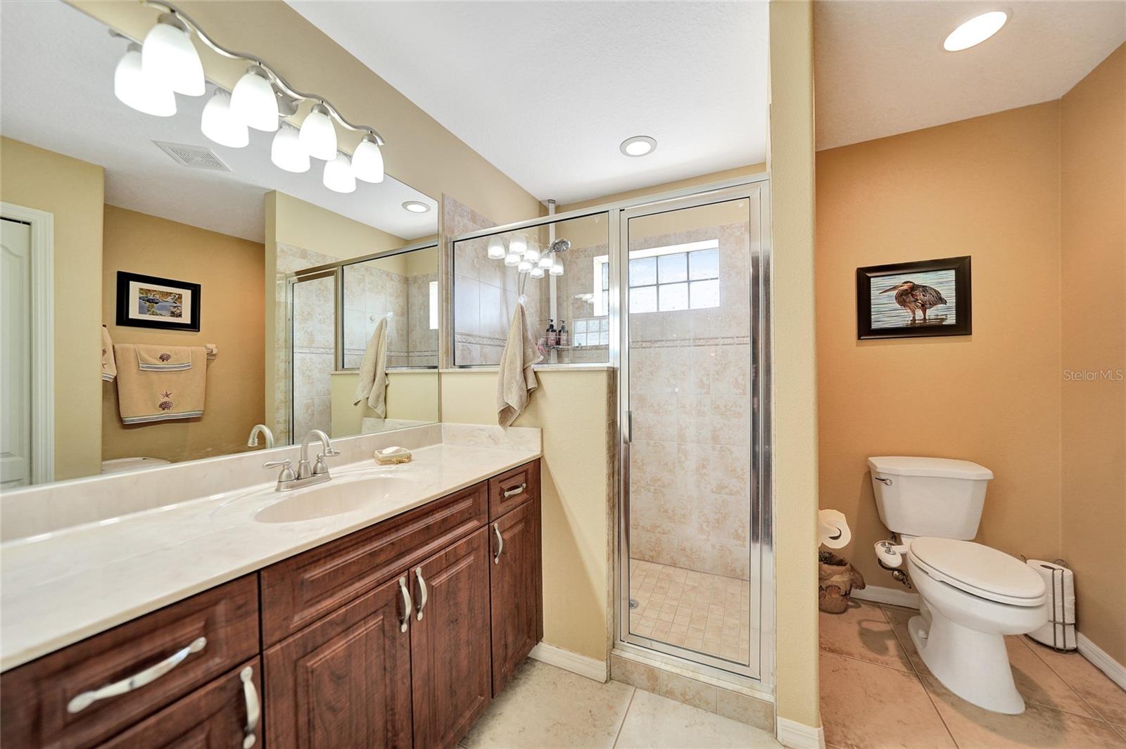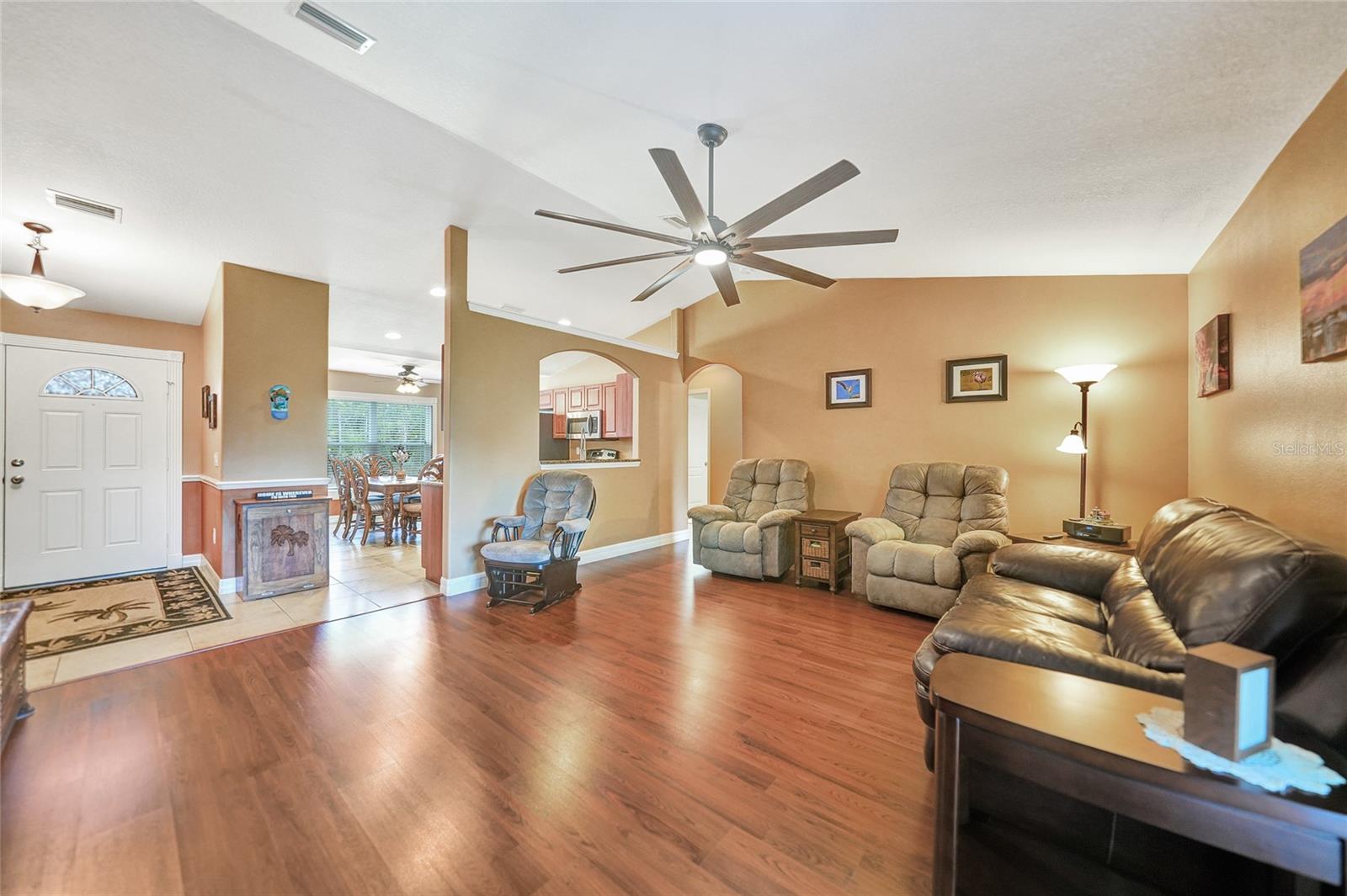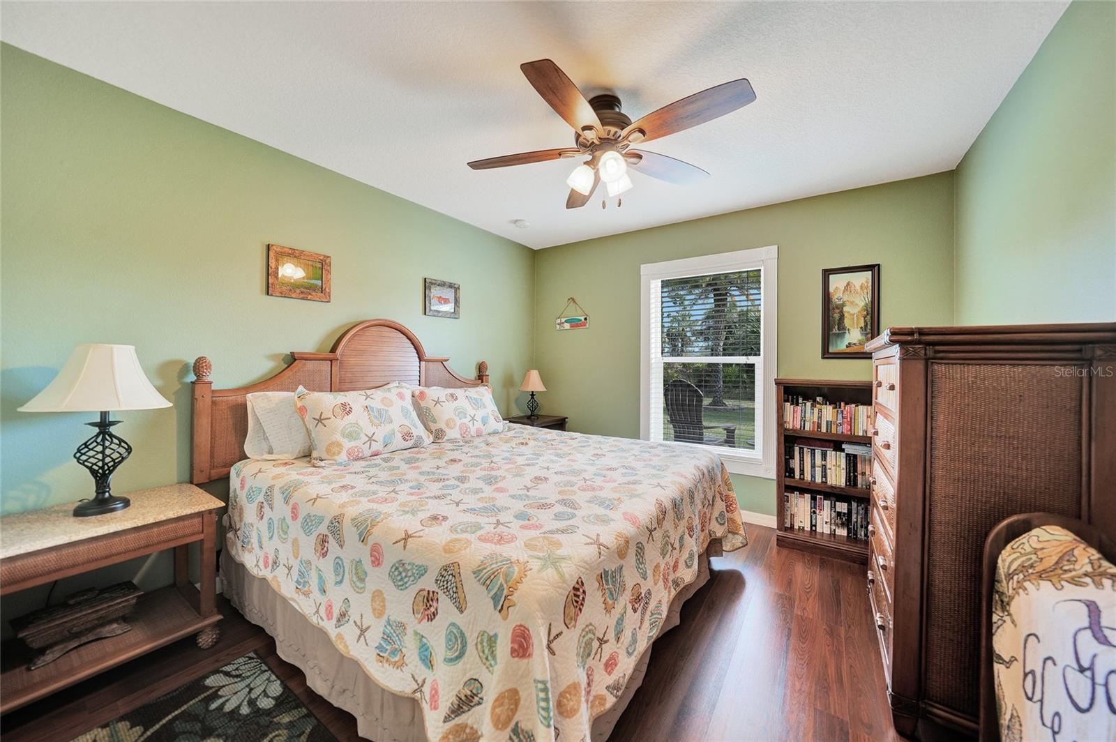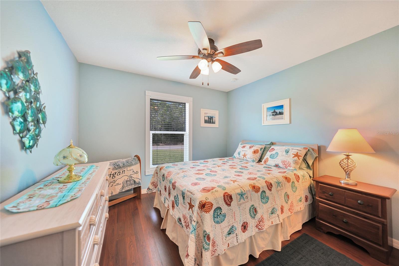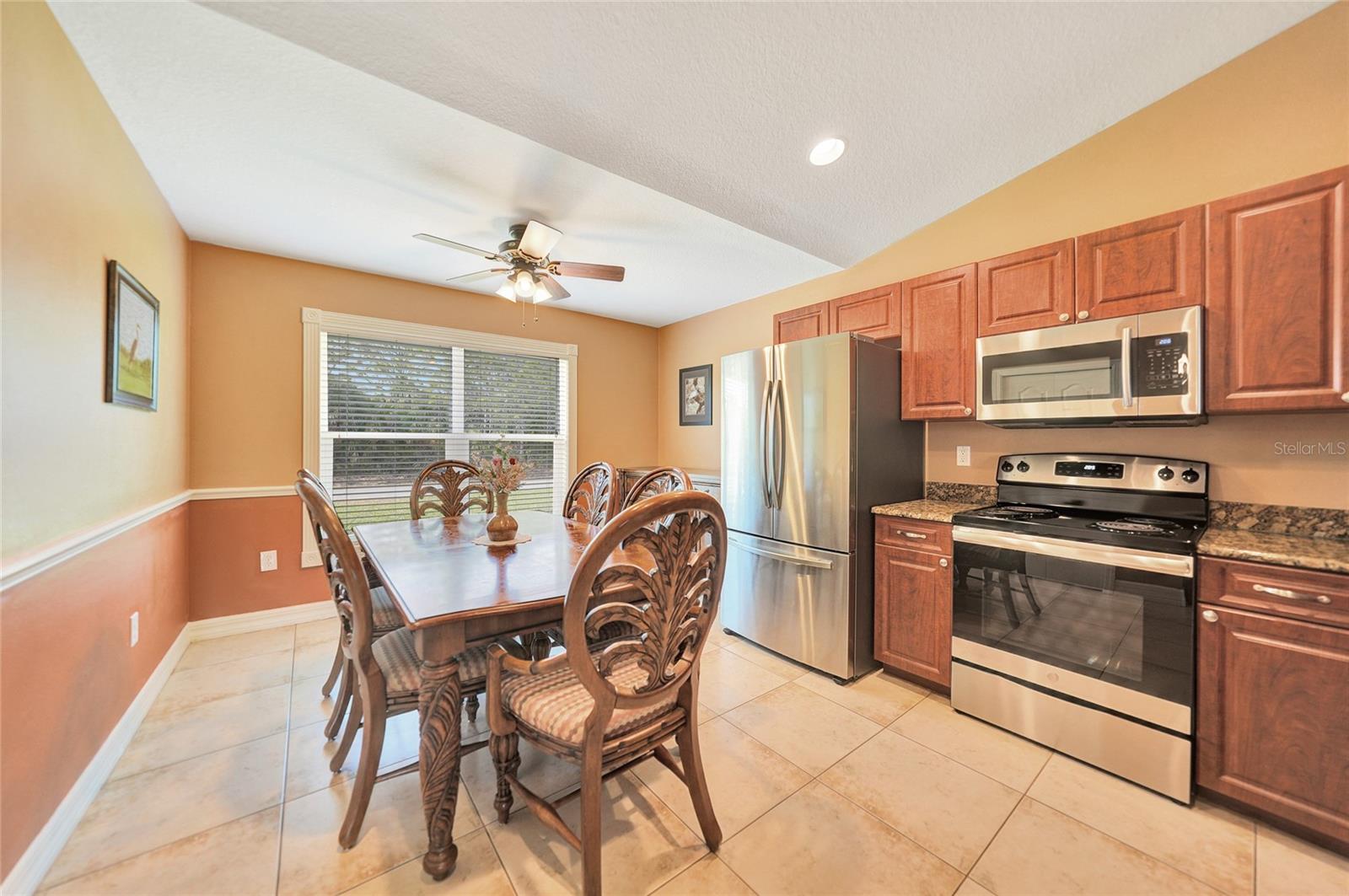 Welcome to your dream home! This beautifully maintained 3-bedroom, 2-bathroom, 2 car garage residence offers 1,350 square feet of modern living space, situated on a spacious 10,000-square-foot lot. Recently updated with a new roof (2023), this home showcases a smart split floor plan with soaring ceilings, blending style and function effortlessly. As you step inside, you'll immediately notice the ceramic tile and wood laminate flooring throughout the home, creating a warm and inviting atmosphere. The heart of the home is the chef-inspired kitchen, featuring sleek hardwood soft-close cabinets, high-end stainless steel appliances, granite countertops, and a Whole House Reverse Osmosis system. The dining area boasts charming windows that overlook the front yard, creating a perfect spot for casual meals. The open-concept design seamlessly connects the kitchen to the spacious great room, where sliding doors lead to the expansive lanai with Jacuzzi and brick paver patio--ideal for outdoor entertaining or simply relaxing. The primary bedroom is a true sanctuary, offering a tray ceiling with industrial style ceiling fan and a custom walk-in closet. The en-suite bath includes a walk-in shower, extended vanity, and a convenient linen closet. Two additional well-sized guest bedrooms, each with built-in closets, share a full bathroom, ensuring comfort and privacy for family and visitors. The large backyard is a blank canvas with plenty of space for a pool, providing endless opportunities for outdoor living. A 12x14 shed with electricity adds additional storage or workspace options. Surrounded by lush, wooded land in the back, the property provides a serene and peaceful outdoor retreat. The two-car garage includes a dedicated laundry area, adding convenience and practicality to this already exceptional home. With impact glass windows (2023) and an updated A/C system (2016), this home is ready for years of worry-free living. Don't miss the chance to own this beautifully updated property that blends modern features with ample space and a prime location! Situated in a desirable North Port neighborhood, this home is not located in a flood zone or subject to HOA fees. It's conveniently close to I-75 and Tamiami Trail, with quick access to some of Florida's best beaches, golf courses, public boat ramps, shopping, dining, and entertainment options.