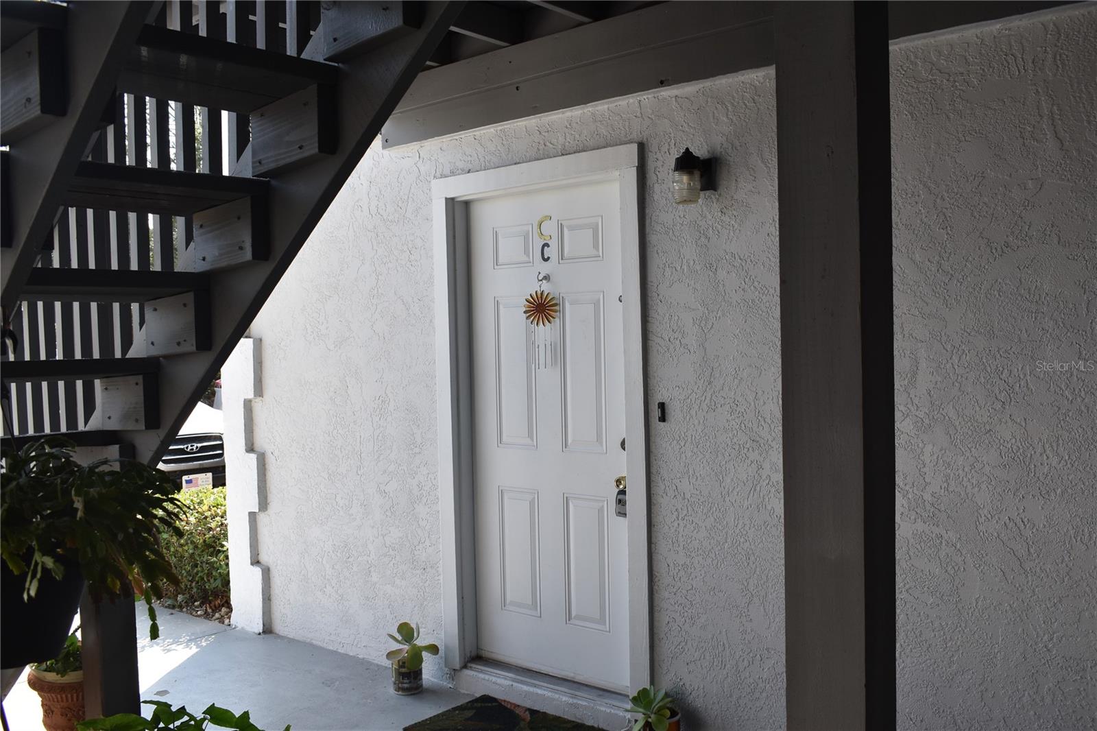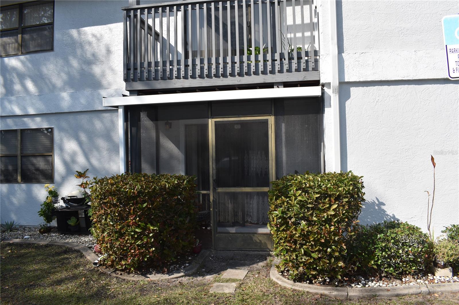 Exterior: Rain Gutters, Sidewalk, Sliding Doors, Storage