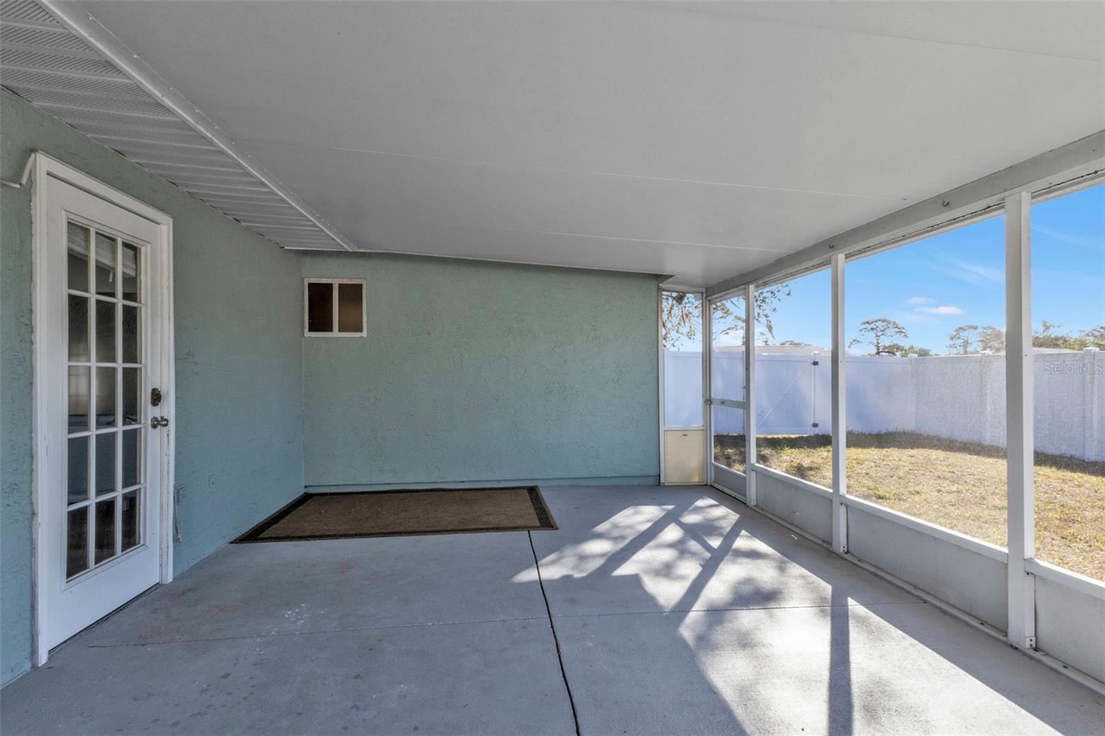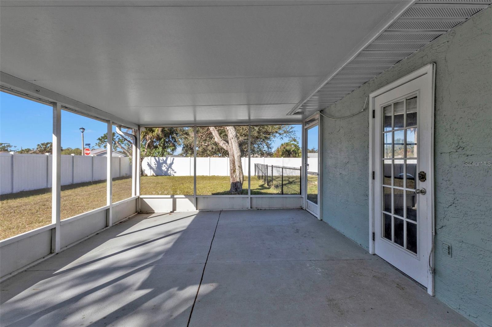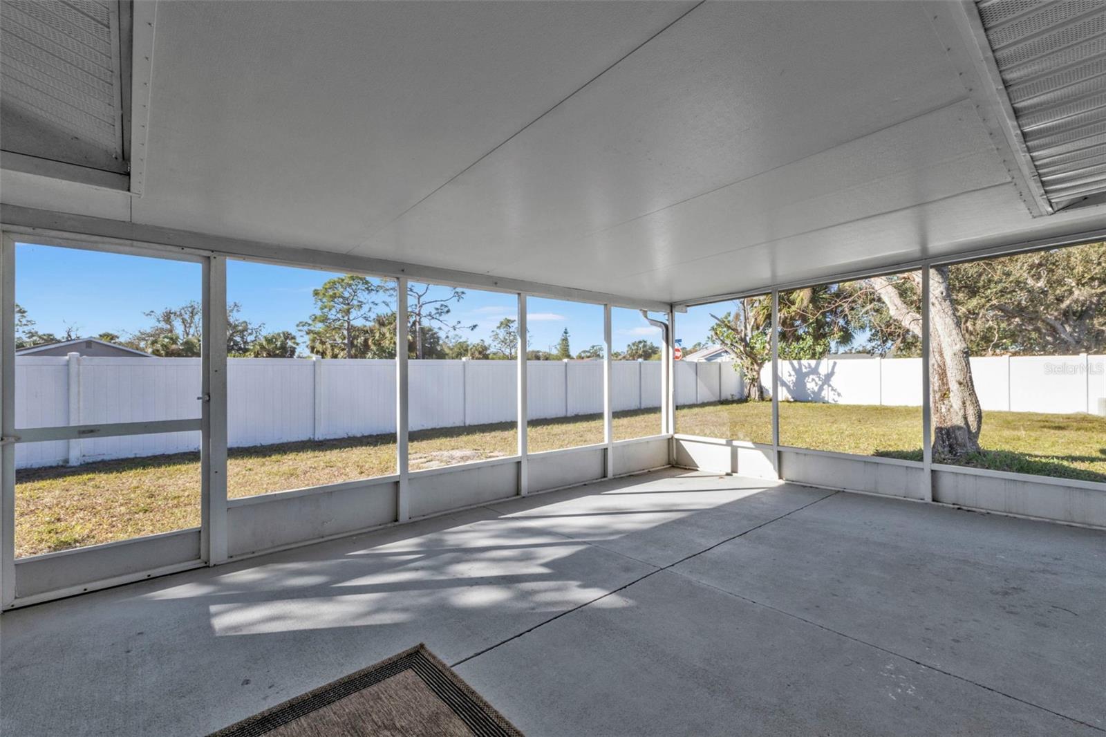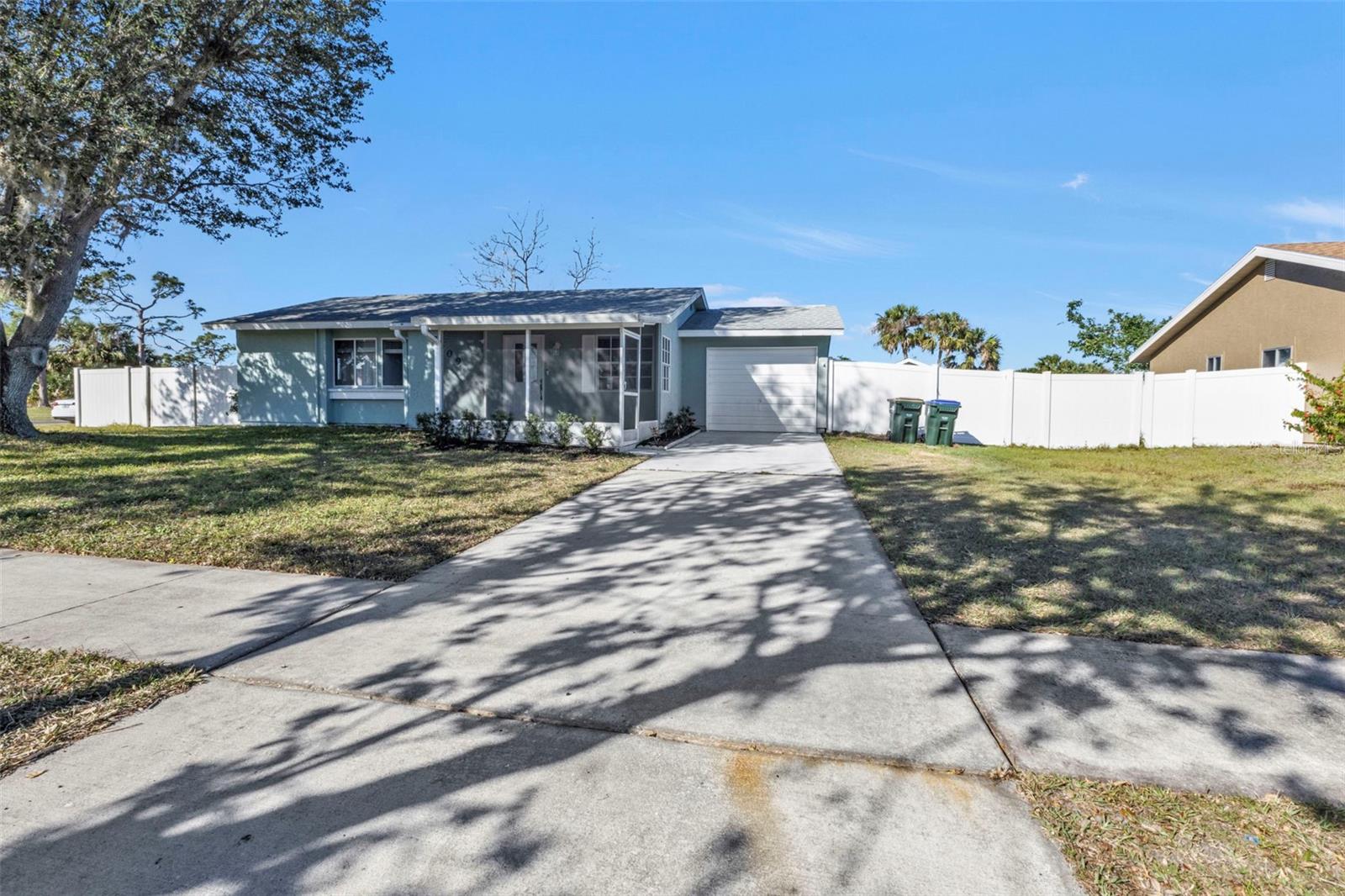 Don't miss this adorable 3-bedroom, 2-bathroom home situated on an oversized corner lot with city water and sewer! As you step through the screened-in entryway, you'll be welcomed into a spacious living and dining room combo with tile flooring. The kitchen boasts granite countertops, a stylish tile backsplash, and a central island, perfect for meal prep and entertaining. The master bedroom and one guest bedroom feature laminate flooring. The master bathroom includes a single vanity and a walk-in shower. The guest bathroom is equipped with a single vanity and a shower/tub combo. The converted garage adds versatility, housing the third bedroom and laundry room is located off of bedroom, both with tile flooring. Part of the garage remains for storage. Need extra space?!? The huge BONUS family room off the dining area is ideal for gatherings and opens to the screened-in lanai and fully fenced backyard a great space for entertaining or your furry friends. No deed restrictions or HOA. Additional features: Roof, Electric Panel and Hot Water Heater all replaced in 2019. Conveniently located in a nice neighborhood close to restaurants, shopping, beaches, and more. Ask to see this one first...make YOUR appointment today!!!