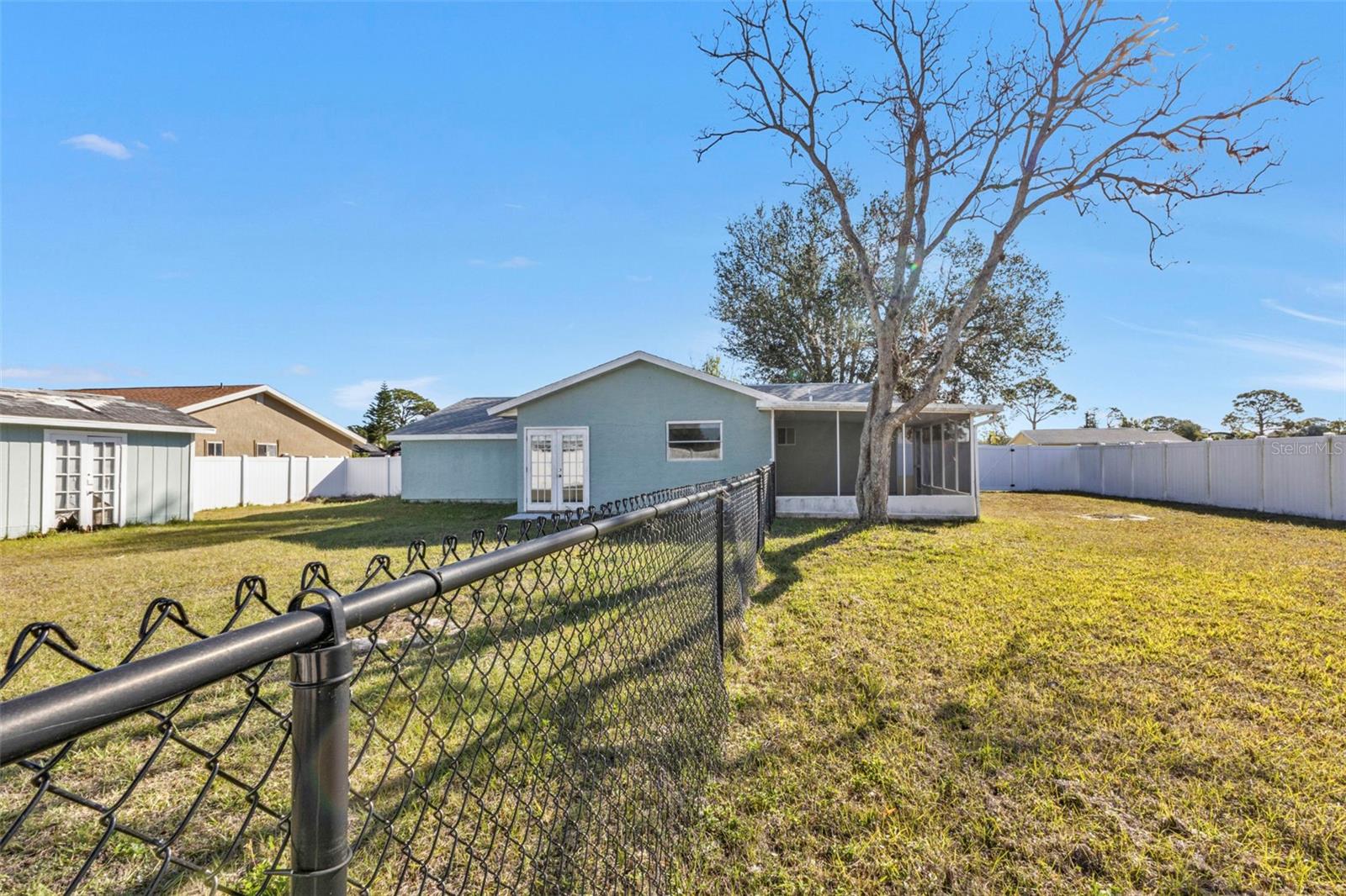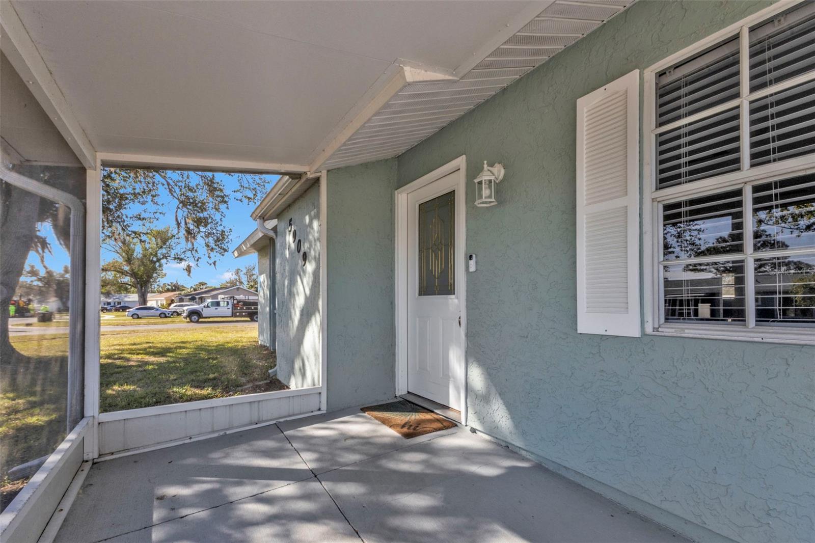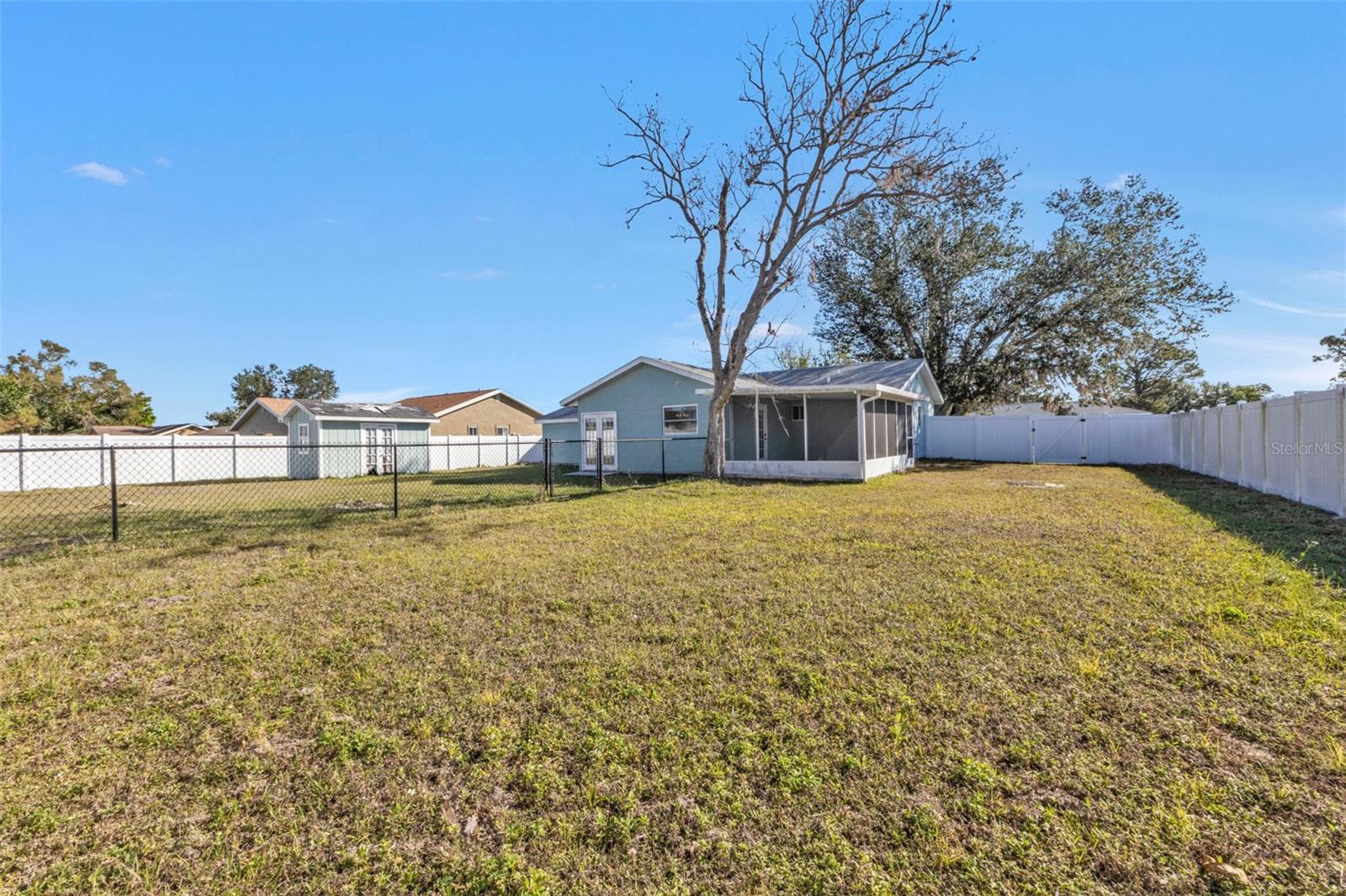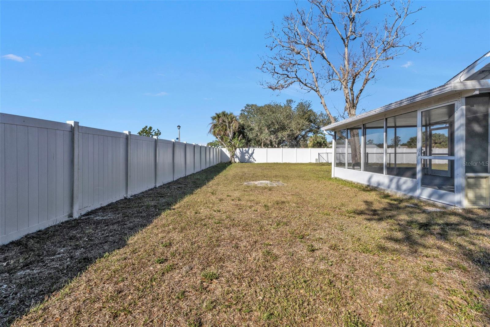 Don't miss this adorable 3-bedroom, 2-bathroom home situated on an oversized corner lot with city water and sewer! As you step through the screened-in entryway, you'll be welcomed into a spacious living and dining room combo with tile flooring. The kitchen boasts granite countertops, a stylish tile backsplash, and a central island, perfect for meal prep and entertaining. The master bedroom and one guest bedroom feature laminate flooring. The master bathroom includes a single vanity and a walk-in shower. The guest bathroom is equipped with a single vanity and a shower/tub combo. The converted garage adds versatility, housing the third bedroom and laundry room is located off of bedroom, both with tile flooring. Part of the garage remains for storage. Need extra space?!? The huge BONUS family room off the dining area is ideal for gatherings and opens to the screened-in lanai and fully fenced backyard a great space for entertaining or your furry friends. No deed restrictions or HOA. Additional features: Roof, Electric Panel and Hot Water Heater all replaced in 2019. Conveniently located in a nice neighborhood close to restaurants, shopping, beaches, and more. Ask to see this one first...make YOUR appointment today!!!