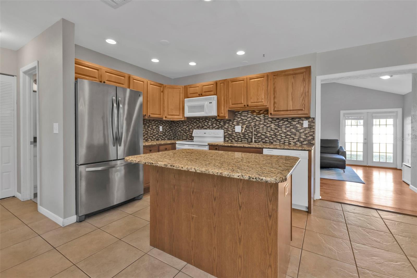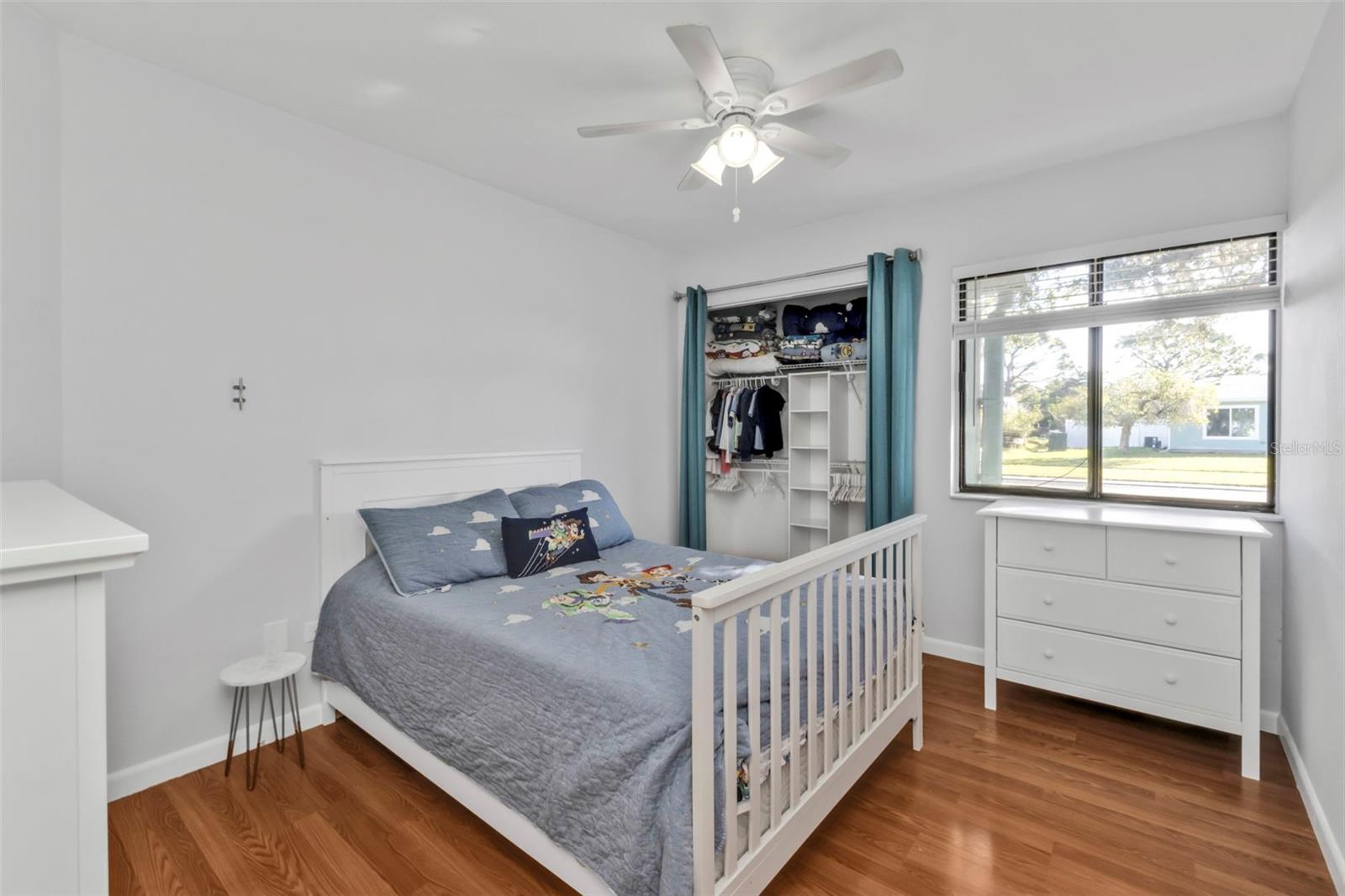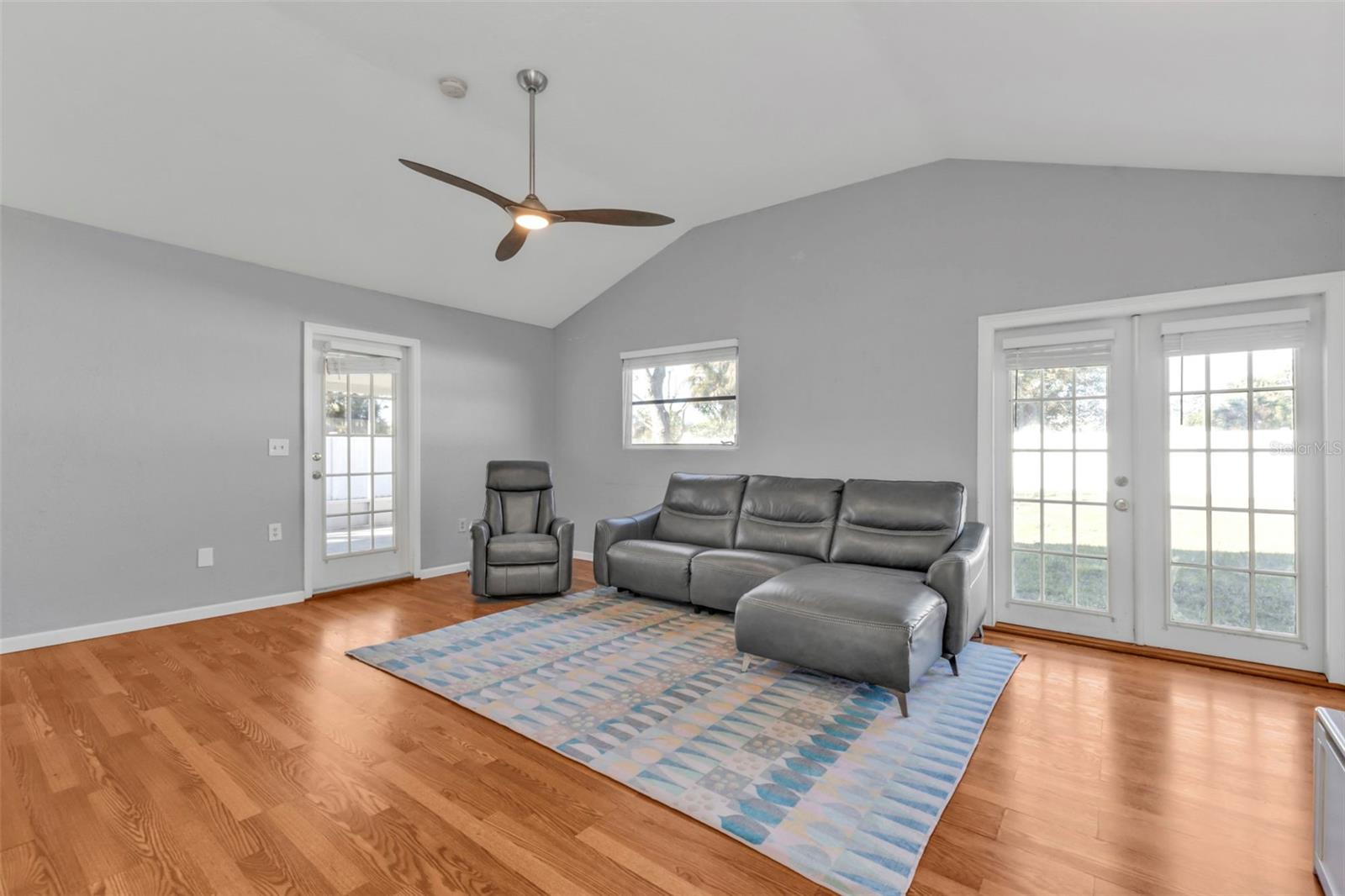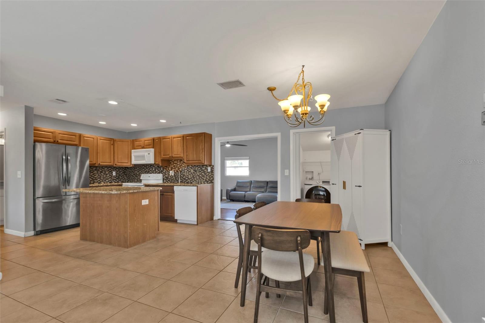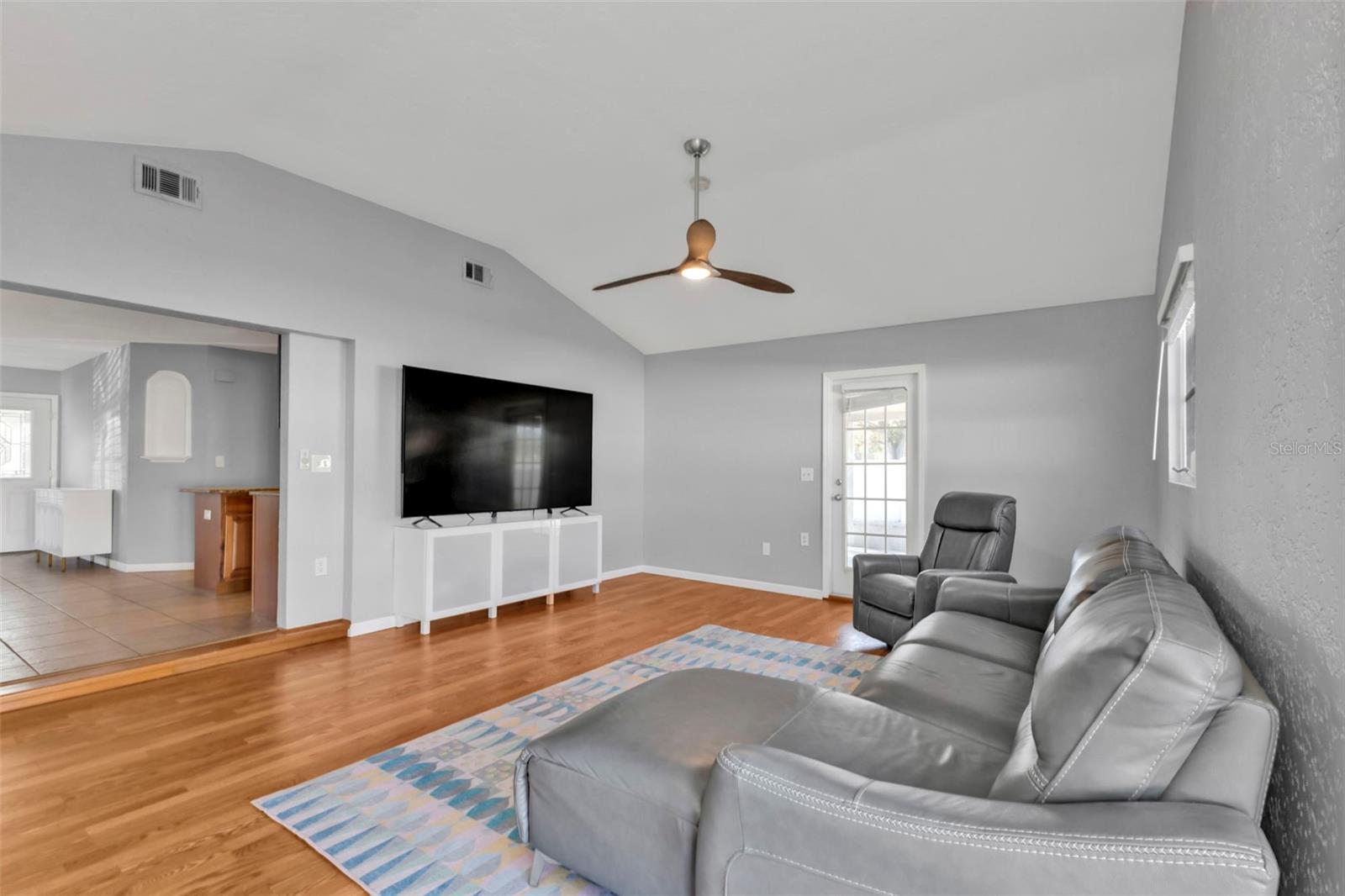 Don't miss this adorable 3-bedroom, 2-bathroom home situated on an oversized corner lot with city water and sewer! As you step through the screened-in entryway, you'll be welcomed into a spacious living and dining room combo with tile flooring. The kitchen boasts granite countertops, a stylish tile backsplash, and a central island, perfect for meal prep and entertaining. The master bedroom and one guest bedroom feature laminate flooring. The master bathroom includes a single vanity and a walk-in shower. The guest bathroom is equipped with a single vanity and a shower/tub combo. The converted garage adds versatility, housing the third bedroom and laundry room is located off of bedroom, both with tile flooring. Part of the garage remains for storage. Need extra space?!? The huge BONUS family room off the dining area is ideal for gatherings and opens to the screened-in lanai and fully fenced backyard a great space for entertaining or your furry friends. No deed restrictions or HOA. Additional features: Roof, Electric Panel and Hot Water Heater all replaced in 2019. Conveniently located in a nice neighborhood close to restaurants, shopping, beaches, and more. Ask to see this one first...make YOUR appointment today!!!