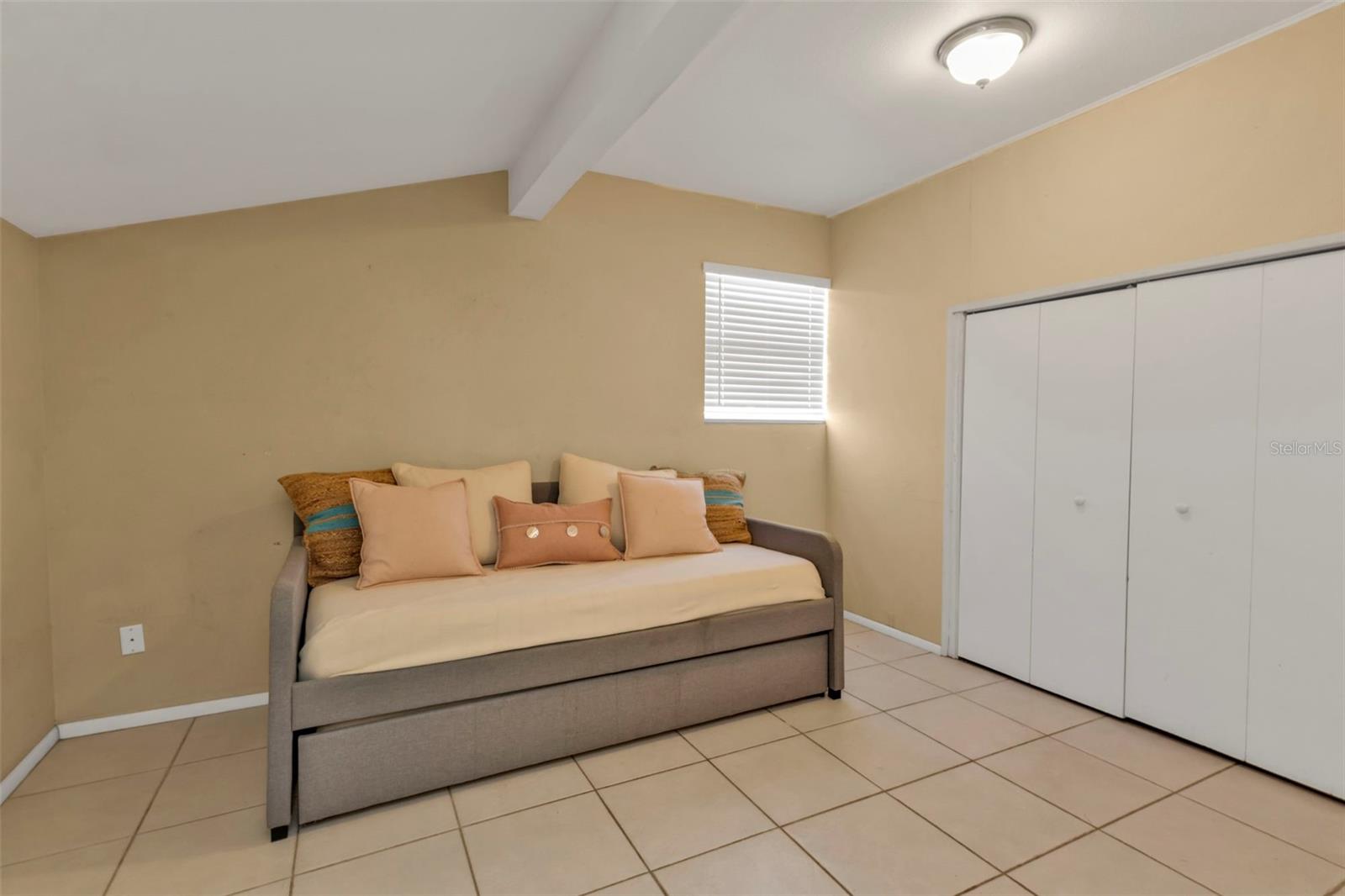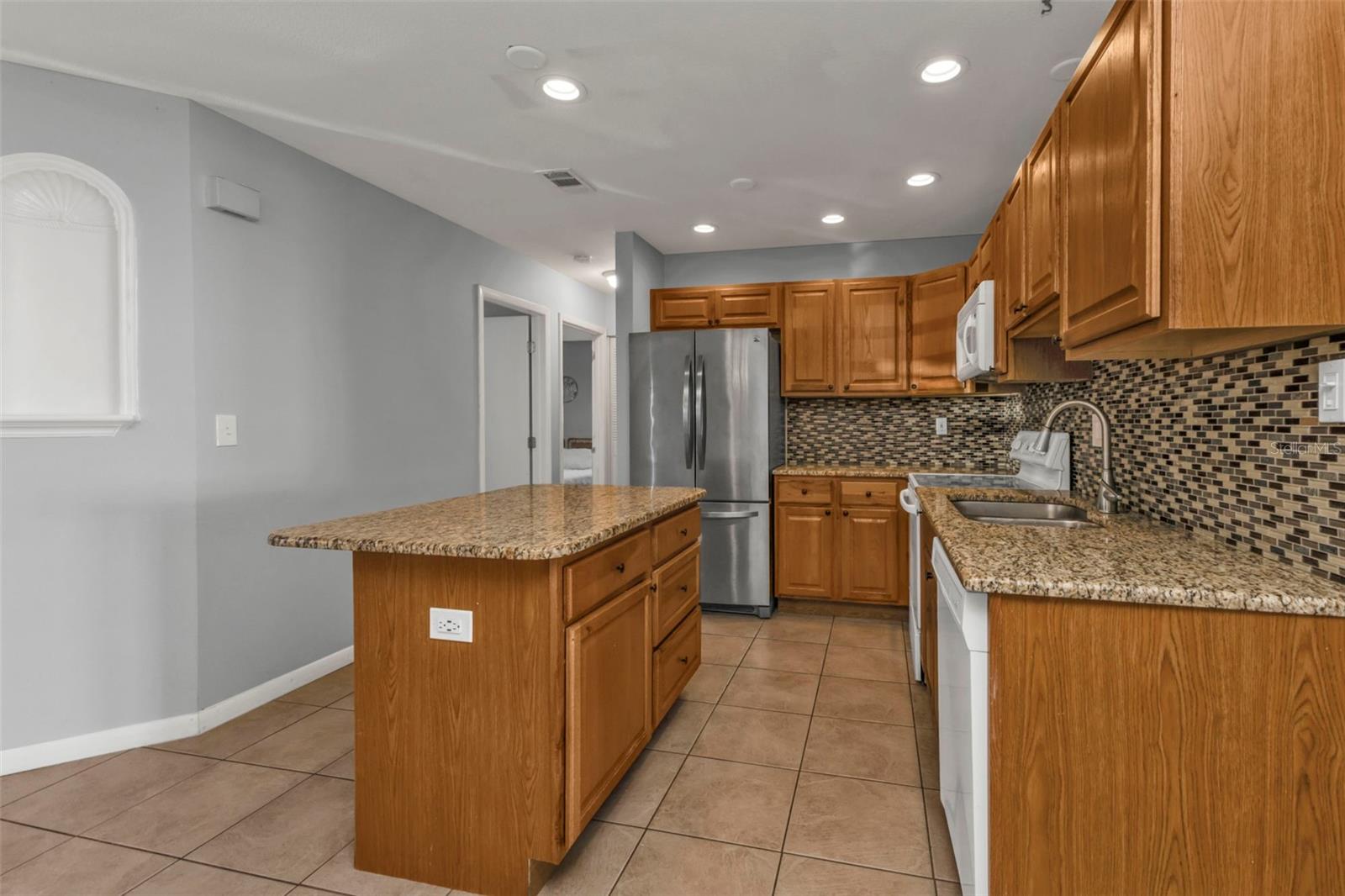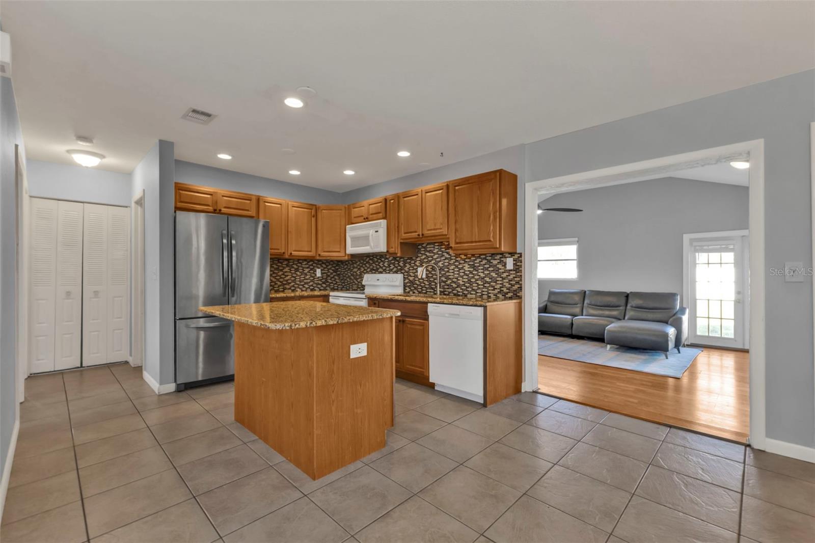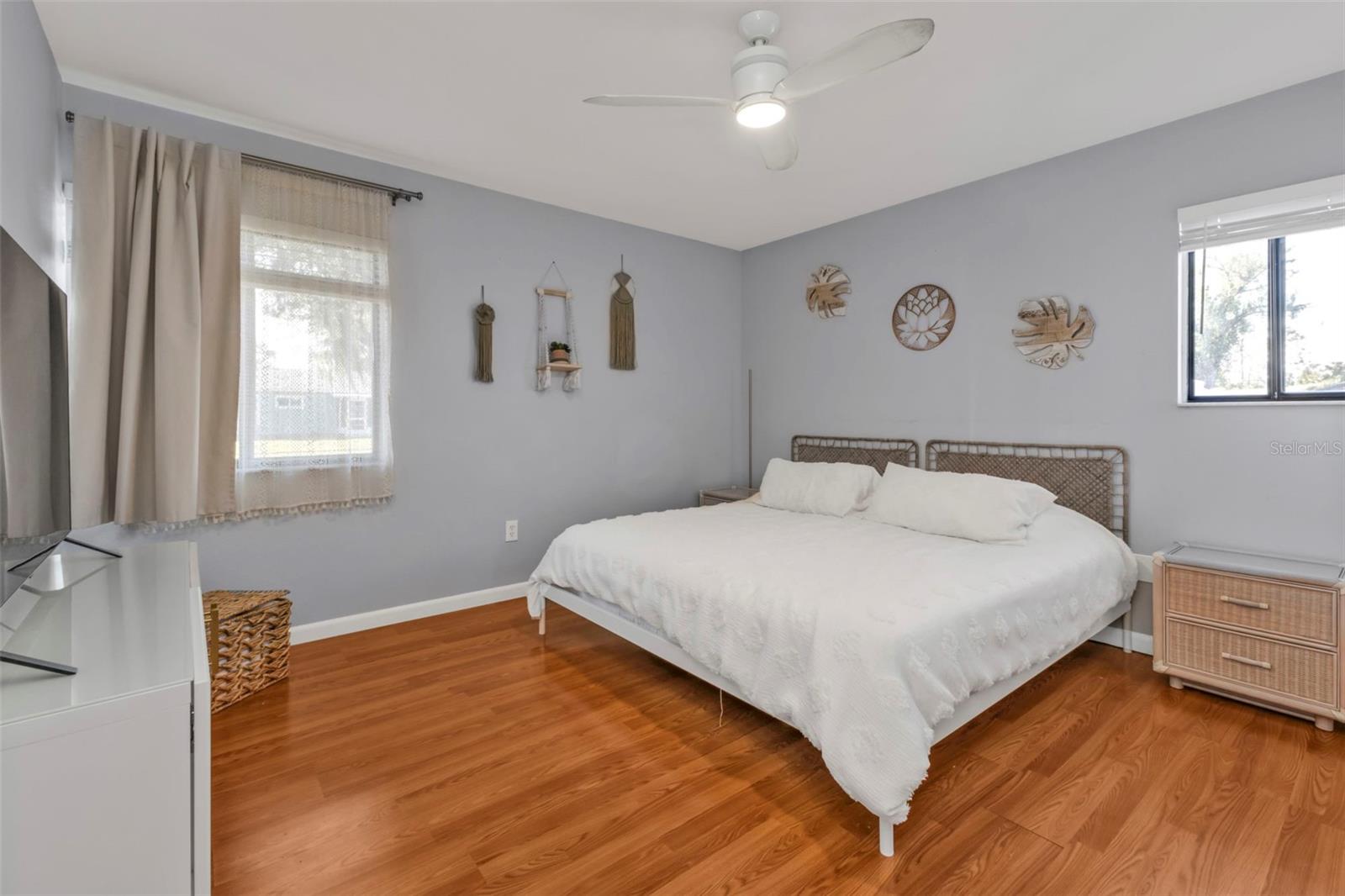Don't miss this adorable 3-bedroom, 2-bathroom home situated on an oversized corner lot with city water and sewer! As you step through the screened-in entryway, you'll be welcomed into a spacious living and dining room combo with tile flooring. The kitchen boasts granite countertops, a stylish tile backsplash, and a central island, perfect for meal prep and entertaining. The master bedroom and one guest bedroom feature laminate flooring. The master bathroom includes a single vanity and a walk-in shower. The guest bathroom is equipped with a single vanity and a shower/tub combo. The converted garage adds versatility, housing the third bedroom and laundry room is located off of bedroom, both with tile flooring. Part of the garage remains for storage. Need extra space?!? The huge BONUS family room off the dining area is ideal for gatherings and opens to the screened-in lanai and fully fenced backyard a great space for entertaining or your furry friends. No deed restrictions or HOA. Additional features: Roof, Electric Panel and Hot Water Heater all replaced in 2019. Conveniently located in a nice neighborhood close to restaurants, shopping, beaches, and more. Ask to see this one first...make YOUR appointment today!!!