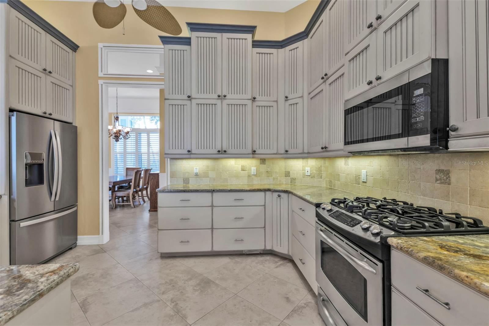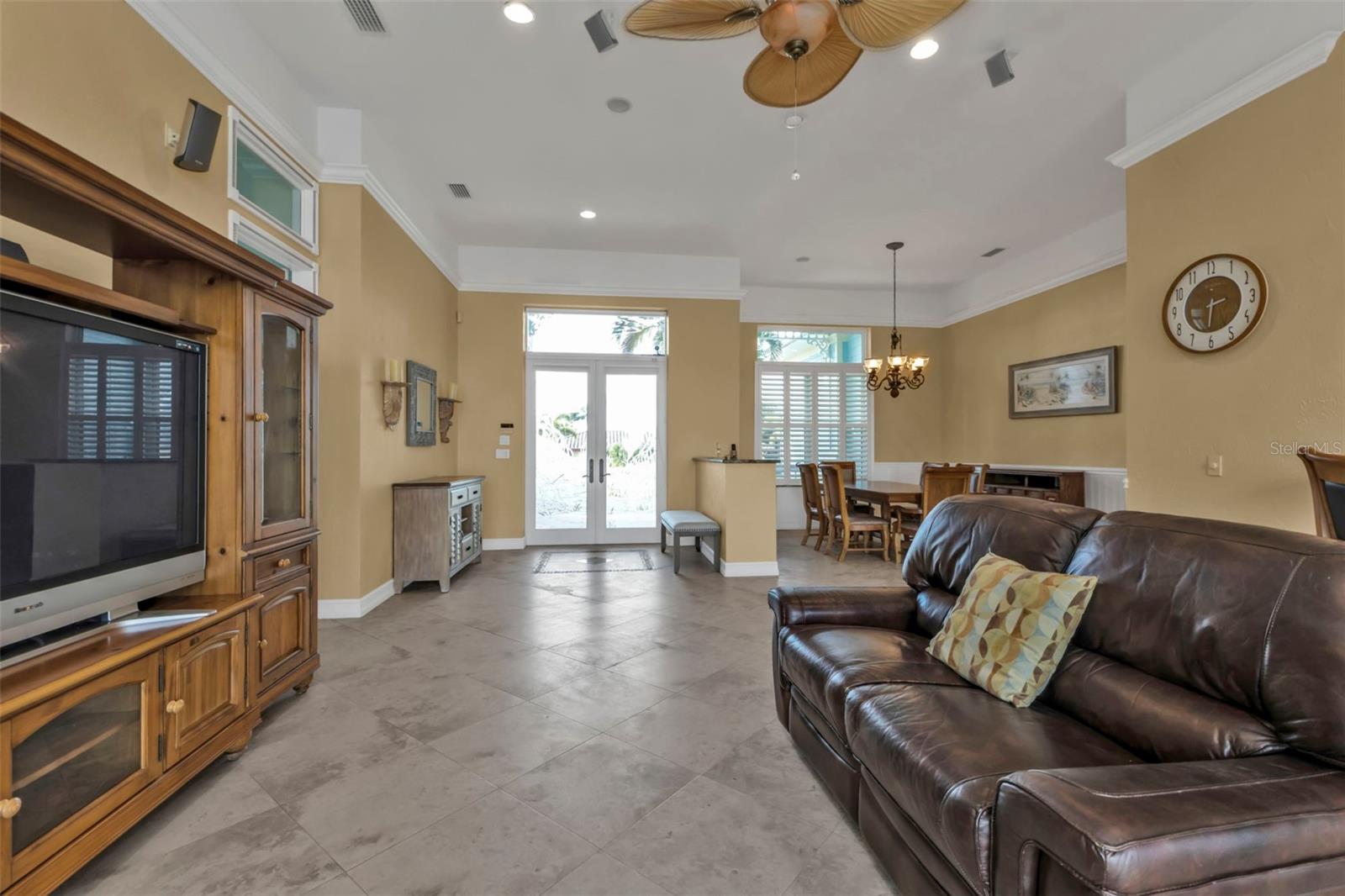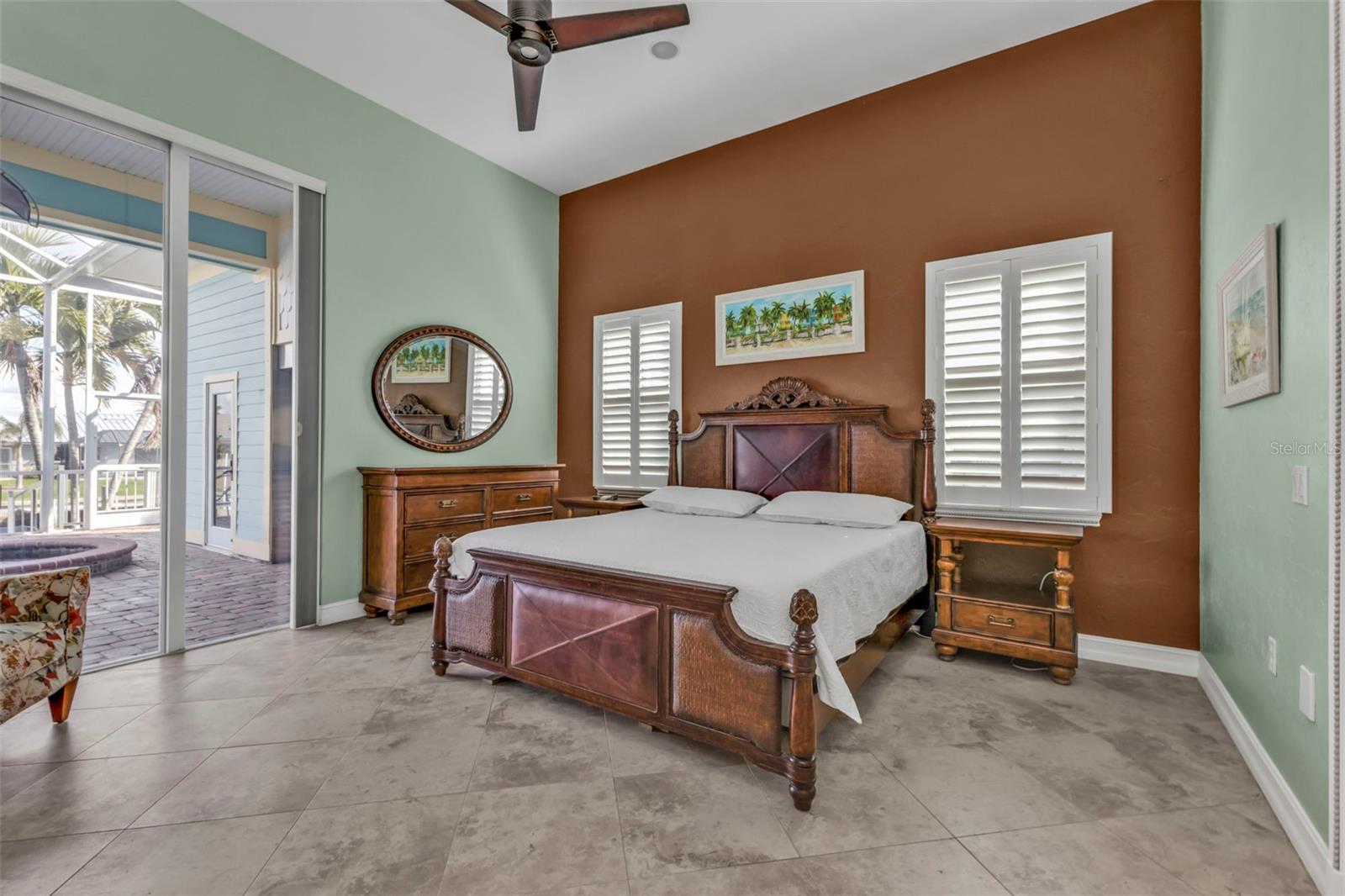 Exterior: Hurricane Shutters, Lighting, Other, Outdoor Grill, Outdoor Kitchen, Outdoor Shower, Rain Gutters, Sidewalk, Sliding Doors, Storage