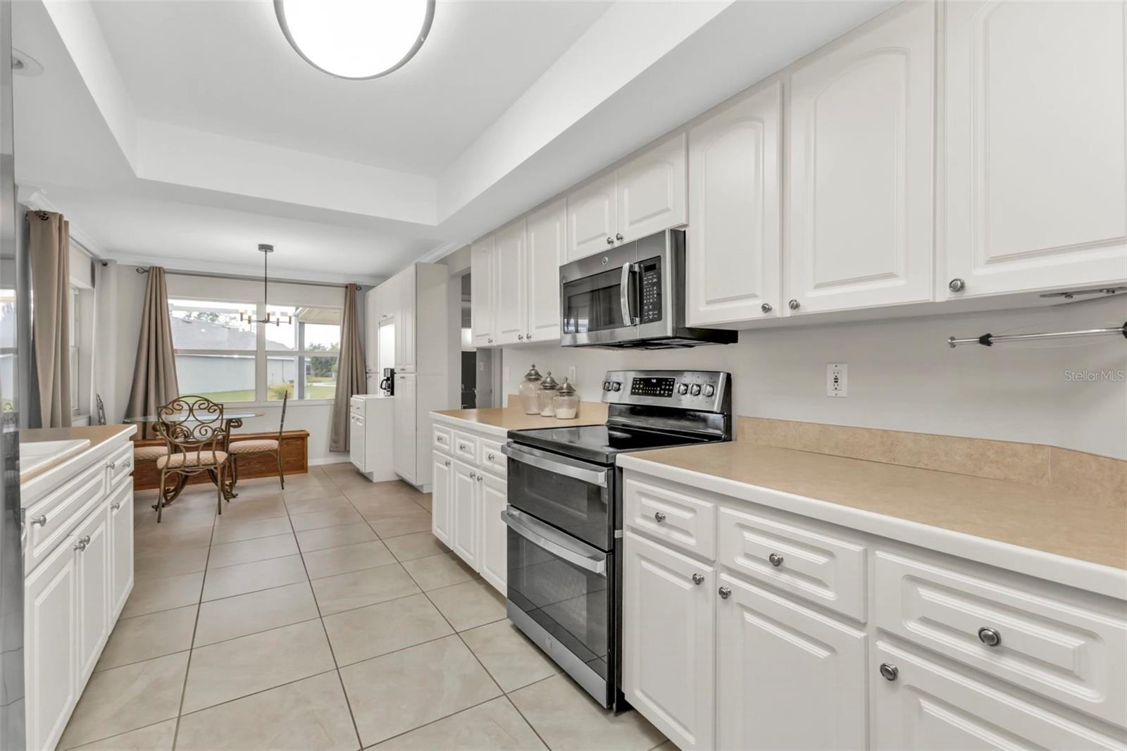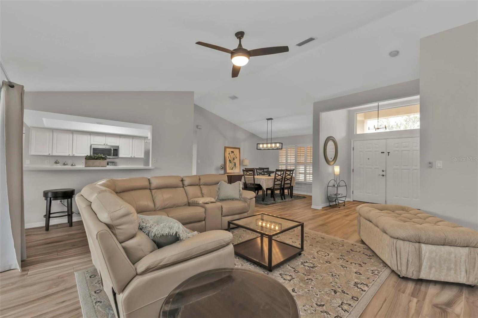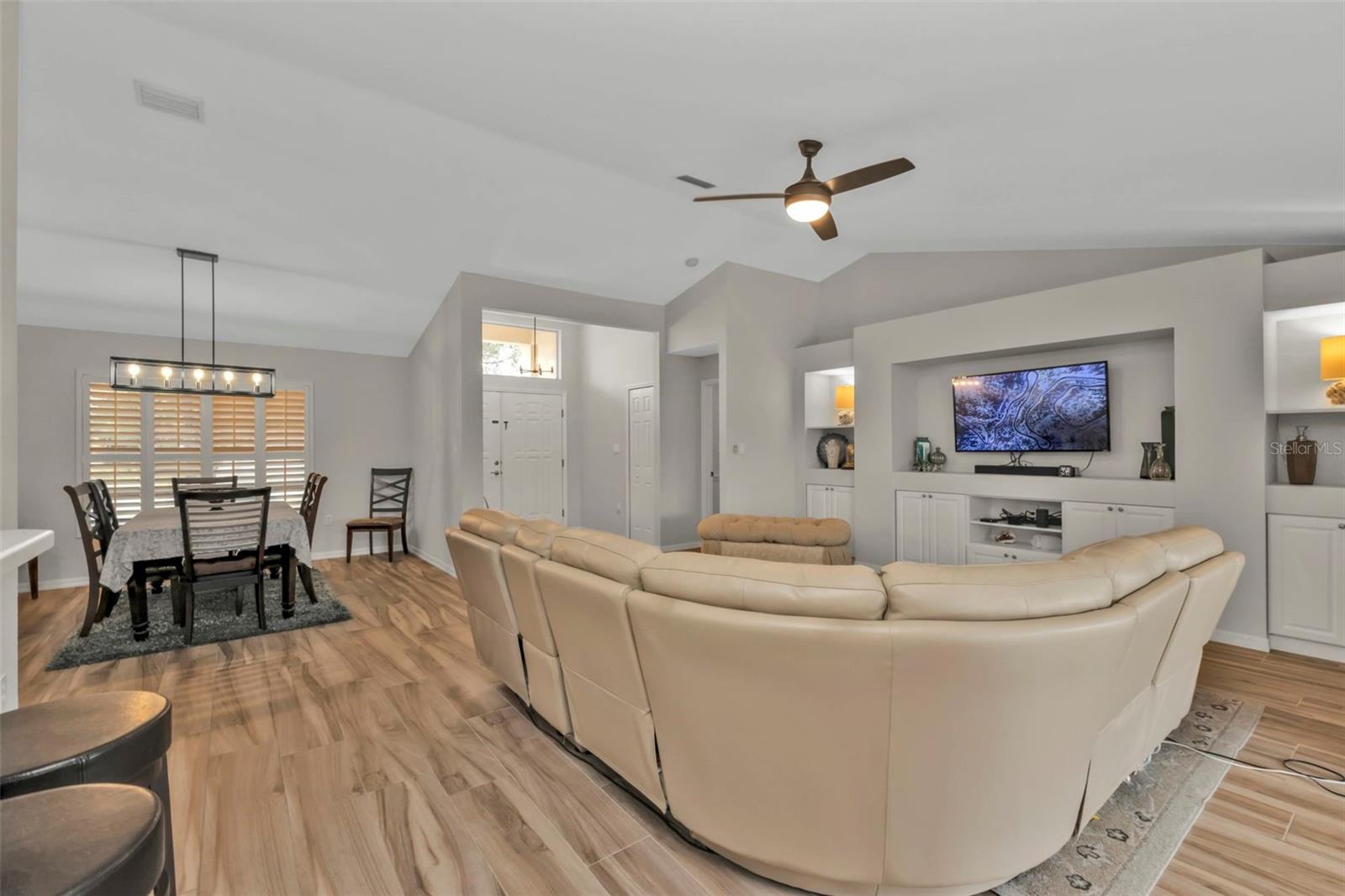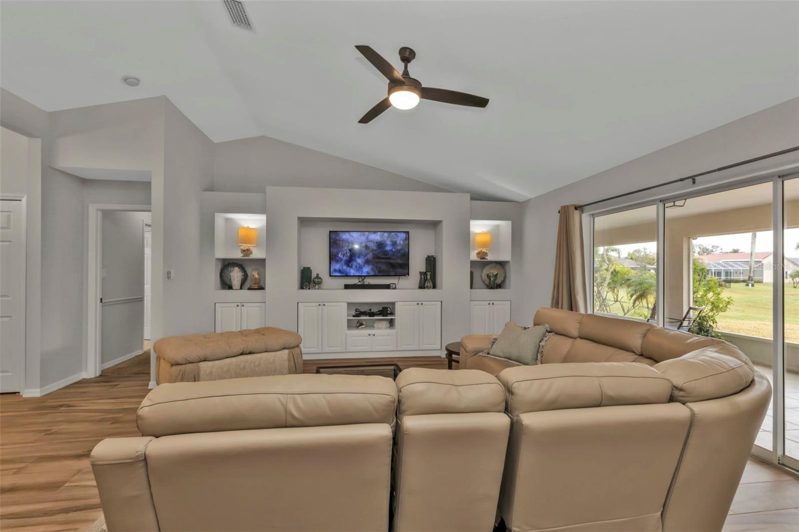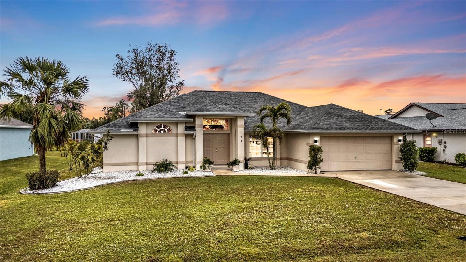Discover the home of your dreams in the sought-after community of Deep Creek! This charming and comfortable residence offers an inviting living area that seamlessly opens to a private lanai, framed by a serene greenbelt, providing ultimate privacy and picturesque views. Three pocket sliders give access from the entire back of the house. The Deep Creek community is known for its excellent schools and beautifully kept homes, ensuring a peaceful and family-friendly environment. Enjoy the convenience of easy access to the interstate highway, making travel to Sarasota and Fort Myers a breeze. The kitchen and dinette area flow effortlessly into the spacious living and dining rooms, making it perfect for entertaining and family gatherings. A double convection oven awaits the family chef. The breakfast nook is enhanced with a built-in storage unit with double width pantries, dual trashcan cabinet, additional storage and a coffee bar, adding both functionality and style. The living room's whole wall entertainment center is designed to accommodate an oversized TV, while providing ample space for your favorite books and keepsakes. The split floor plan offers a private retreat in the primary ensuite, featuring a walk-in closet and a bathroom with dual sinks and abundant natural light. Pocket sliders and a French door lead to the lanai and backyard, creating a seamless indoor-outdoor living experience. Cathedral ceilings enhance the sense of space, and plantation shutters add a modern touch to the dining room. Transom and arched windows give the home a stately appearance, while a neutral color palette throughout creates a cohesive and inviting atmosphere. This prime location is situated just 10 minutes from downtown Punta Gorda. The home offers quick access to a variety of shops, restaurants, and local beaches. Whether you're seeking a vibrant downtown experience or a relaxing day by the sea, this location has it all. Don't miss this incredible opportunity to own a piece of paradise in Deep Creek. Schedule your private tour today and experience the perfect blend of comfort, elegance, and convenience! Brand new water heater in February, 2025.