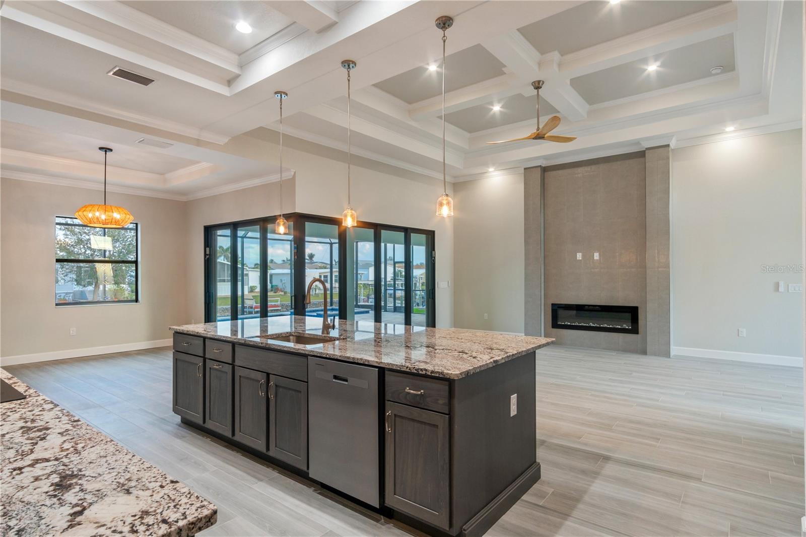 One or more photo(s) has been virtually staged. NEW, NEVER LIVED IN 3 BED / 3 BATH / 3 CAR GARAGE HOME WITH POOL & HOT TUB - JUST UNDER 2,400 SQFT - 10 MINUTES TO CHARLOTTE HARBOR - NO BRIDGES! Welcome to Windward Isles, Punta Gorda's newest maintenance-free waterfront community, featuring 24 luxurious sailboat-access homes! This stunning three-bedroom, three-bathroom residence offers an expansive split-bedroom floor plan with exceptional features and high-end finishes throughout. This spacious home boasts generous guest bedrooms, a formal dining area, a massive great room, and a bonus den/office. The gourmet kitchen includes 42" wood upper cabinets with accent glass inserts, a tiled backsplash, granite countertops, and a stainless steel appliance package featuring a hood, oven, microwave, cooktop, refrigerator, dishwasher, and wine refrigerator. The luxurious master suite offers an expansive master bathroom with a dual vanity, tiled showers, and a walk-in closet. Interior features include porcelain tile flooring throughout, an electric built-in fireplace, tall ceilings with recessed trays, coffers, and grids, crown molding, designer fixtures, and 5" baseboards. The outdoor oasis features a covered paver lanai, a heated pool and spa, and a 90-degree sliding glass door maximizing natural light, all overlooking the picturesque canal. The exterior of the home is equally impressive, featuring a seawall with a wood dock, perfect for boaters. Additional features include a paver driveway and walkway, stone accents, high-impact windows/doors/sliders and a tiled roof, along with an irrigation system and lush landscaping. Windward Isles is a deed-restricted community offering a maintenance-free lifestyle with HOA-covered services, including lawn maintenance, irrigation, tree trimming, pest control, and fertilization. This prime location is moments from Charlotte Harbor and the Gulf of Mexico, with easy access to Boca Grande, Fisherman's Village, and Downtown Punta Gorda by car or boat. Nearby dining, shopping, and entertainment make it an ideal place to call home. Seasonal rentals are allowed, making it a perfect investment opportunity! Additional homesites and models are available. Contact your agent today for more details and to schedule a private showing! CHECK OUT THE INTERACTIVE VIRTURAL TOUR and VIDEO TOUR AVAILABLE FOR THIS HOME. Developer financing is available with a 5.99 30-year fixed rate.