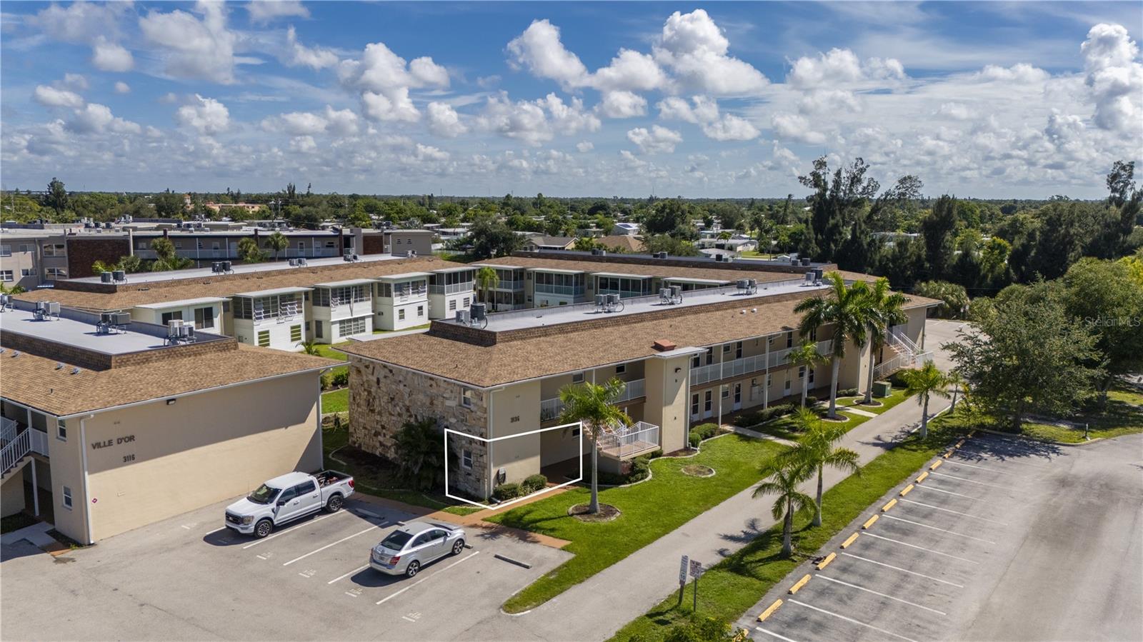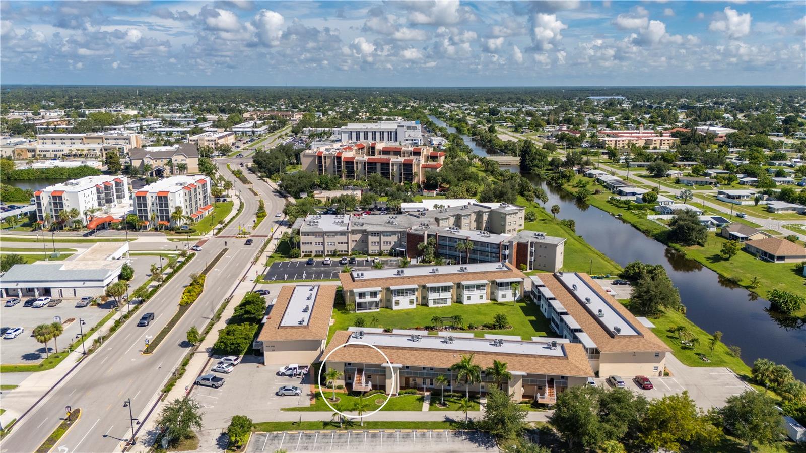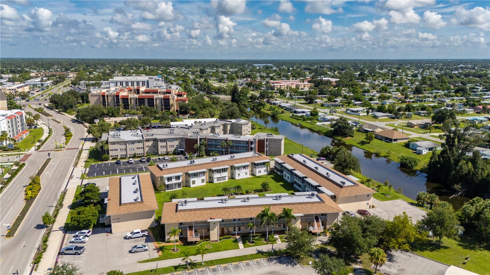 MOTIVATED SELLER!! JUST REDUCED Discover this well-maintained 1st FLOOR CORNER UNIT in the sought-after Ville D'Or complex, offering a fantastic opportunity in the heart of Port Charlotte. This 2-bedroom, 2-bath unit boasts a spacious and inviting layout with large bedrooms, a cozy living area, and a private washer/dryer hookup for added convenience. Enjoy modern upgrades, including new tile flooring throughout, a BRAND NEW ROOF (2023), 2024 water heater, new PEX water pipes and new PVC waste pipes under slab throughout. The kitchen and second bedroom feature impact windows, offering peace of mind during hurricane season. Step out onto the large enclosed lanai and take in SERENE VIEWS of the landscaped courtyard. The Ville D'Or complex consists of four buildings nestled along the scenic Elkcam Waterway, just across from Promenades Mall, making it easy to walk to grocery shopping, restaurants, and entertainment. You'll be close to both Fawcett and Bayfront Hospitals, doctors' offices, parks, a bowling alley, and the Cultural Center. Plus, enjoy quick access to US-41 and I-75, perfect for commuters or exploring nearby Punta Gorda, North Port, the Tampa Bay Rays Spring Training facility, and local beaches. With a low monthly HOA and an unbeatable location near everything Port Charlotte has to offer, this unit is ideal for investors or those looking for a primary or secondary residence.