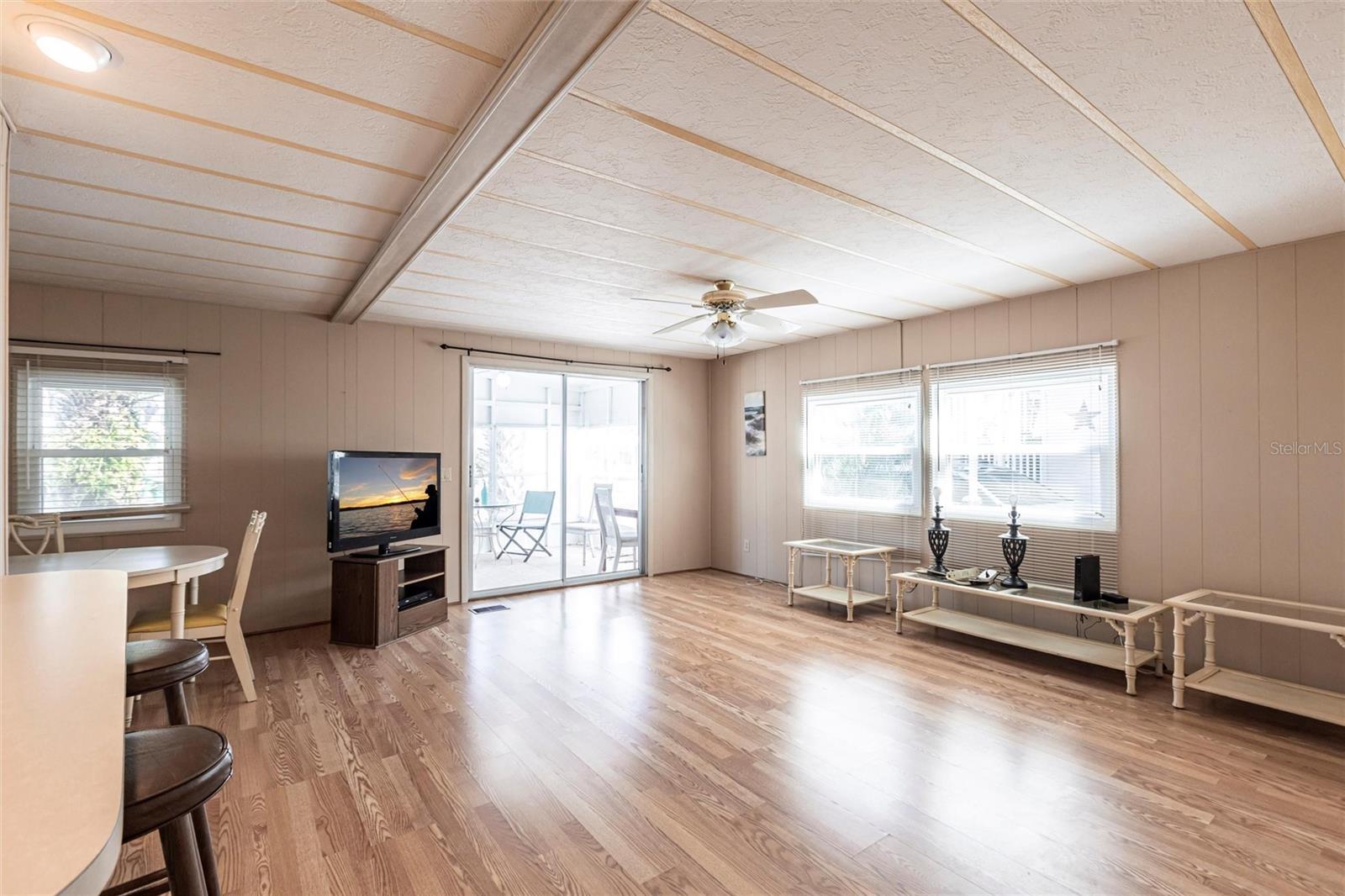 Welcome to #761 Queensway, a remarkable residence located in the award-winning 55+ Maple Leaf Golf & Country Club, where leisure and comfort intertwine for an exceptional living experience. This charming 1982 Jacobsen home has been meticulously maintained, offering a welcoming atmosphere that invites you to relax from the moment you step onto the covered front Lanai. As you enter, you'll be greeted by beautifully maintained laminate flooring that enhances the home's warmth. The spacious layout includes a generous primary bedroom with an ensuite bath and a walk-in closet, serving as your private sanctuary. The guest bathroom, featuring a convenient tub/shower combination, is perfect for visitors or for unwinding after a day filled with activities. The heart of the home is the expansive kitchen and dining area, complete with custom built-in cabinetry, seamlessly flowing into an open-concept living room. This setup creates an ideal space for entertaining friends or enjoying quiet evenings at home. The home includes a certificate that grants you access to the outstanding amenities of the Maple Leaf Golf & Country Club. and community owned share.This resident-owned, 55+ gated community is known for its vibrant, active resort lifestyle. Enjoy the award-winning 18-hole, par 62 golf course, perfect for players of all skill levels, as well as five tennis courts for friendly matches, bocce ball, lawn bowling, and shuffleboard courts. For relaxation, take advantage of the four heated swimming pools and two hot tubs, alongside a state-of-the-art fitness facility and woodworking shop for hobbyists. With over 75 clubs and activities, including four pickleball courts, there's always something to engage in.Dining options abound with on-site restaurants and a tiki hut/bar for leisurely drinks. At Maple Leaf Golf & Country Club, every day feels like a vacation, making #761 Queensway a wonderful place to call home. Don't miss the opportunity to make this beautiful residence your own!