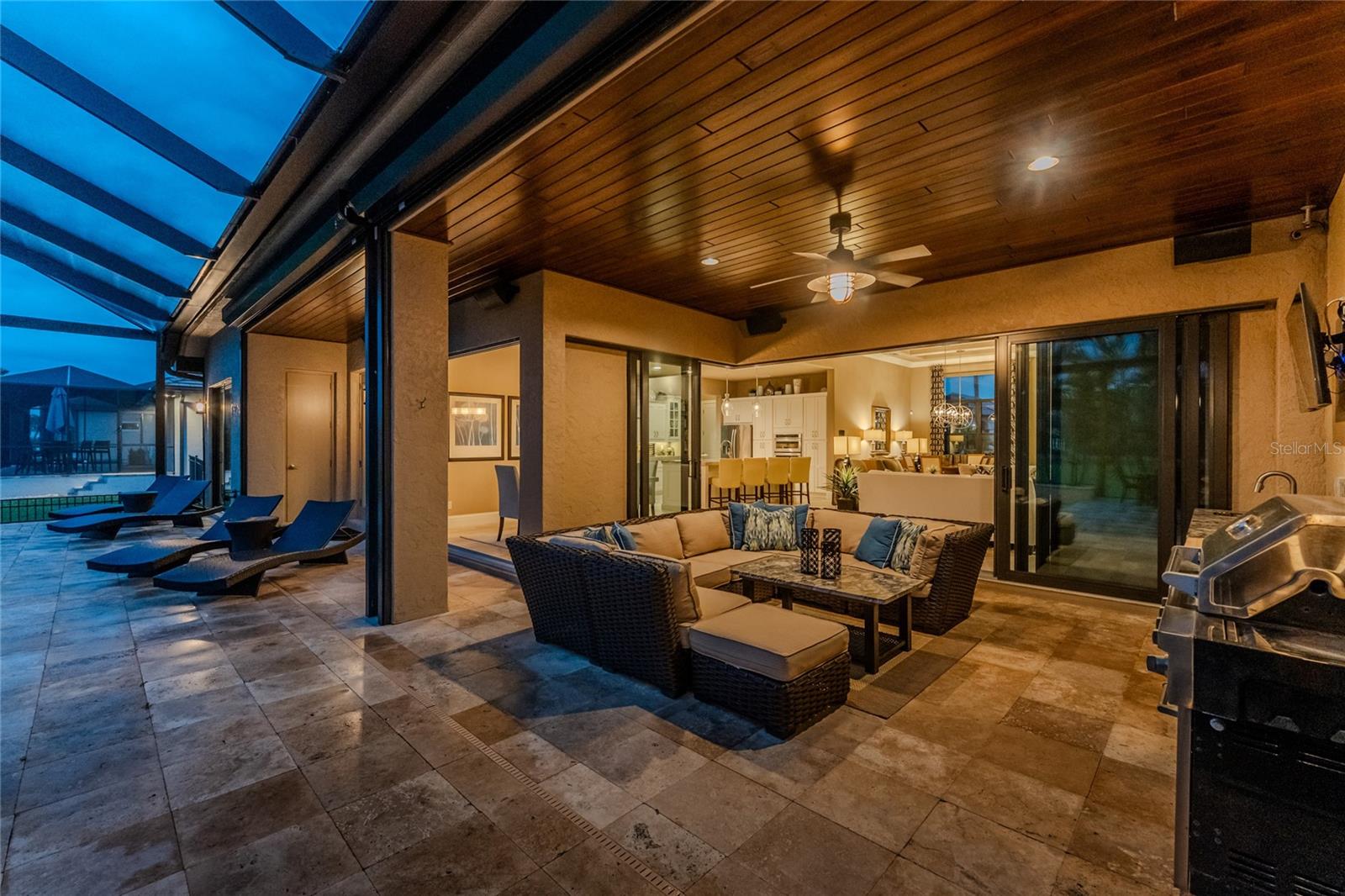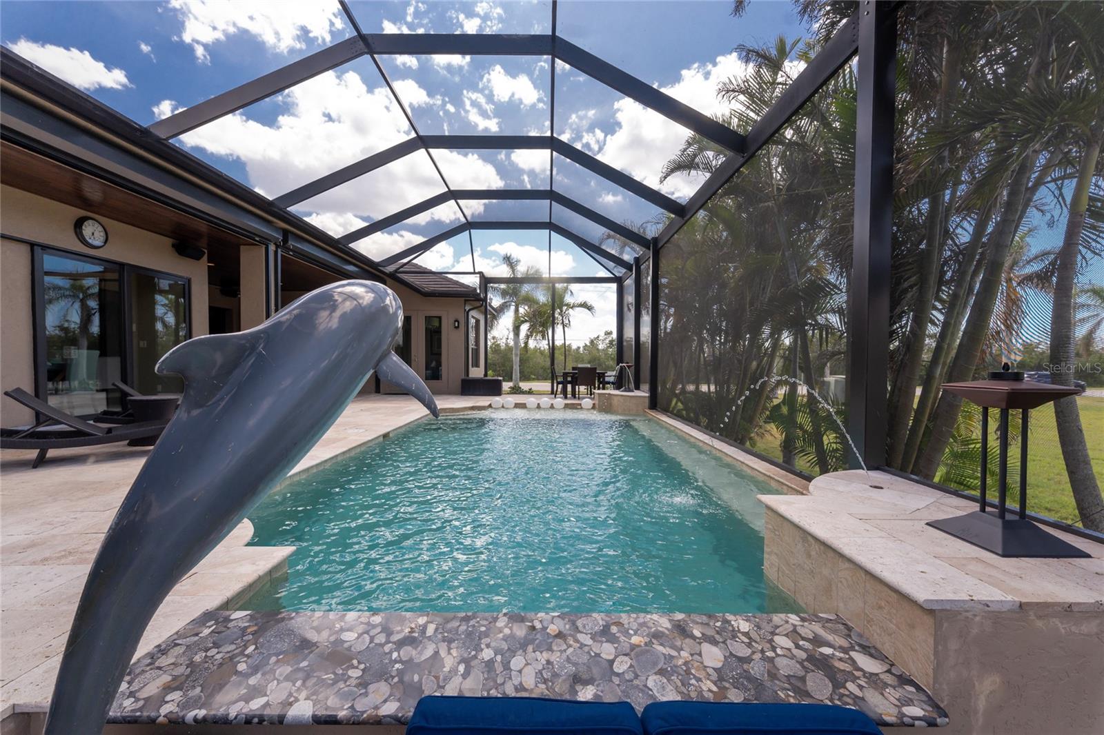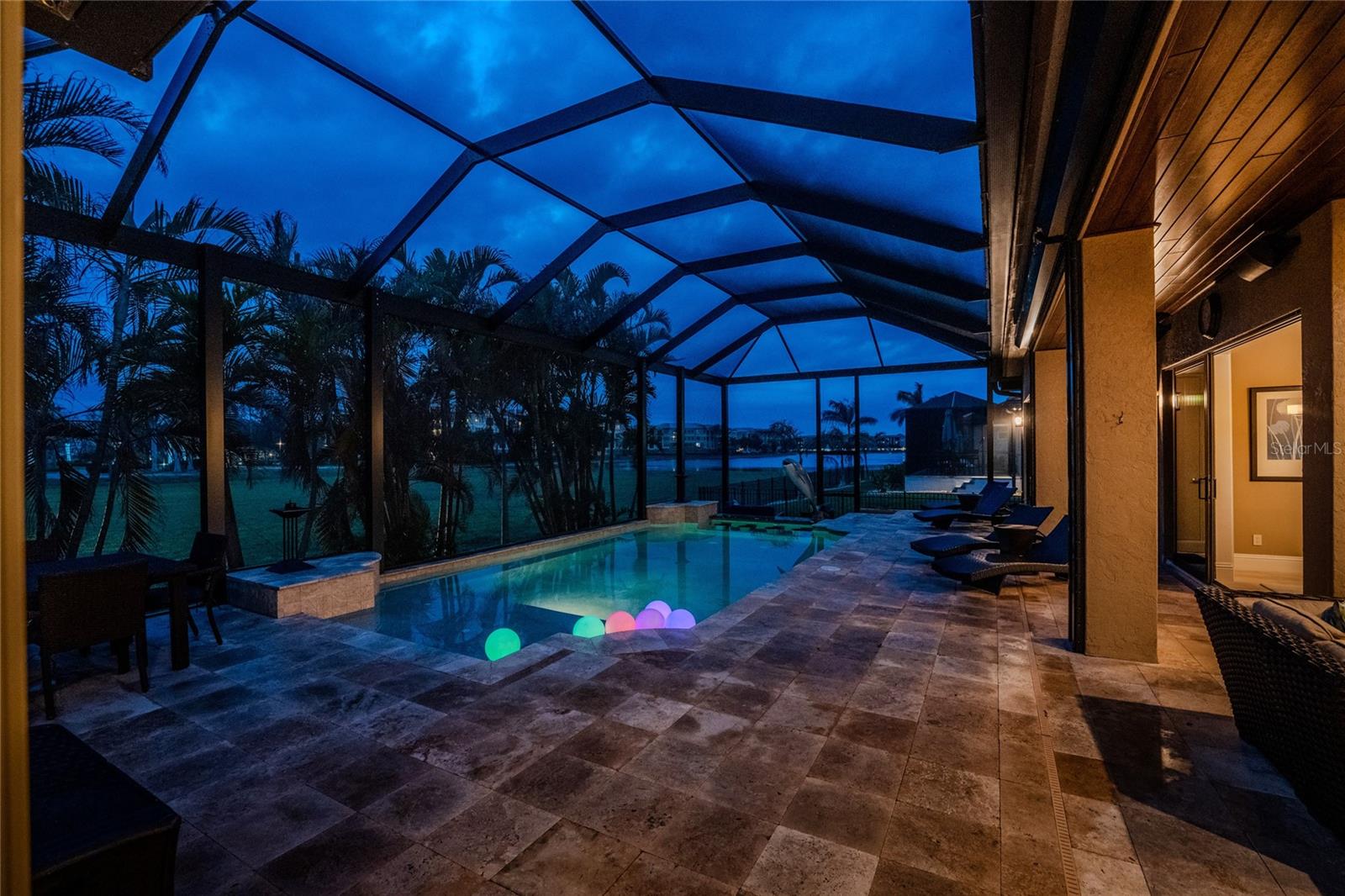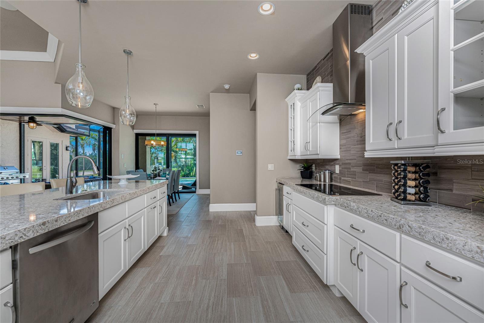 BACK ON THE MARKET DUE TO BUYER DEFAULT - NOW AN OPPORTUNITY FOR YOU! Welcome to your dream home! This former builder's model, crafted by award-winning PGI Homes in 2014, blends comfort, style, & luxury. Offered turnkey furnished including items in the garage, this 3-bedroom, 2-bath home with an office spans 2,680 sq. ft. features an oversized lanai and pool area. A circular paver driveway with lush landscaping leads to an elegant double-door entry. Inside, soaring ceilings with crown molding, an open-concept design and abundant natural light highlight the beautifully furnished space. The great room features a coffered ceiling, while the dining room showcases a unique architectural ceiling. The gourmet kitchen boasts a large 3" edge Silestone quartz countertop with the center island seating for four, a striking tile backsplash, KitchenAid stainless steel appliances, an induction cooktop with a sleek hood, and ample storage in classic white cabinetry. The luxurious primary suite includes a sitting area, French doors to the pool, a tray ceiling, and elegant lighting. Two walk-in closets lead to a spa-like bath with a crystal chandelier, soaking tub, Roman shower with dual heads, and dual vanities with Silestone quartz counters. The guest wing offers two spacious bedrooms and a pool-access bath with custom tile and a glass-walled shower. A standout 3-car garage features wood flooring, crown molding, recessed lighting, and newly installed independent climate control ideal for vehicles or a home gym. BRAND NEW York 5 ton, 16.2 seer AC installed August 2025. Smart home features include a Z-Wave system, security cameras, & a Nuvo sound system with built-in speakers. Additional peace of mind comes with all impact windows and doors, plus electric Kevlar protection across the back lanai and a 2023 stone-coated metal roof. Disappearing sliders open to a wood-ceilinged lanai, summer kitchen, and wall-mounted TV. The expansive travertine pool deck boasts a heated pool with fountains, a sun platform, a submerged granite bar, and multiple lounging area all overlooking a gorgeous lake view. Close to Ponce de Leon Park and minutes to Fishermen's Village - THIS IS YOUR DREAM HOME!