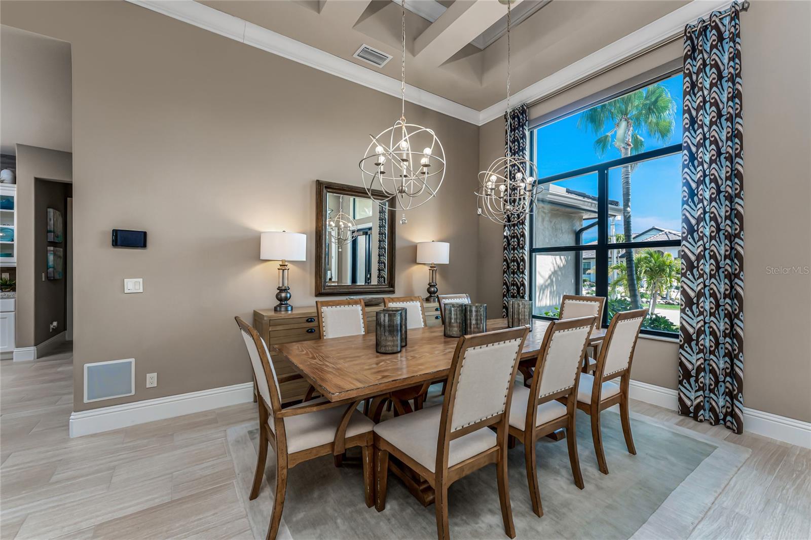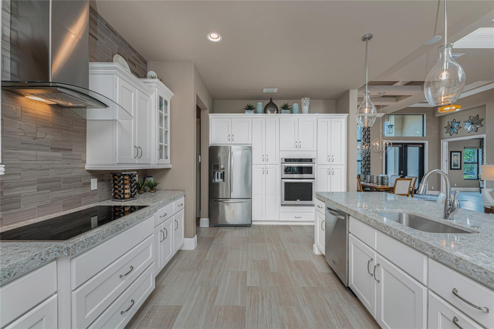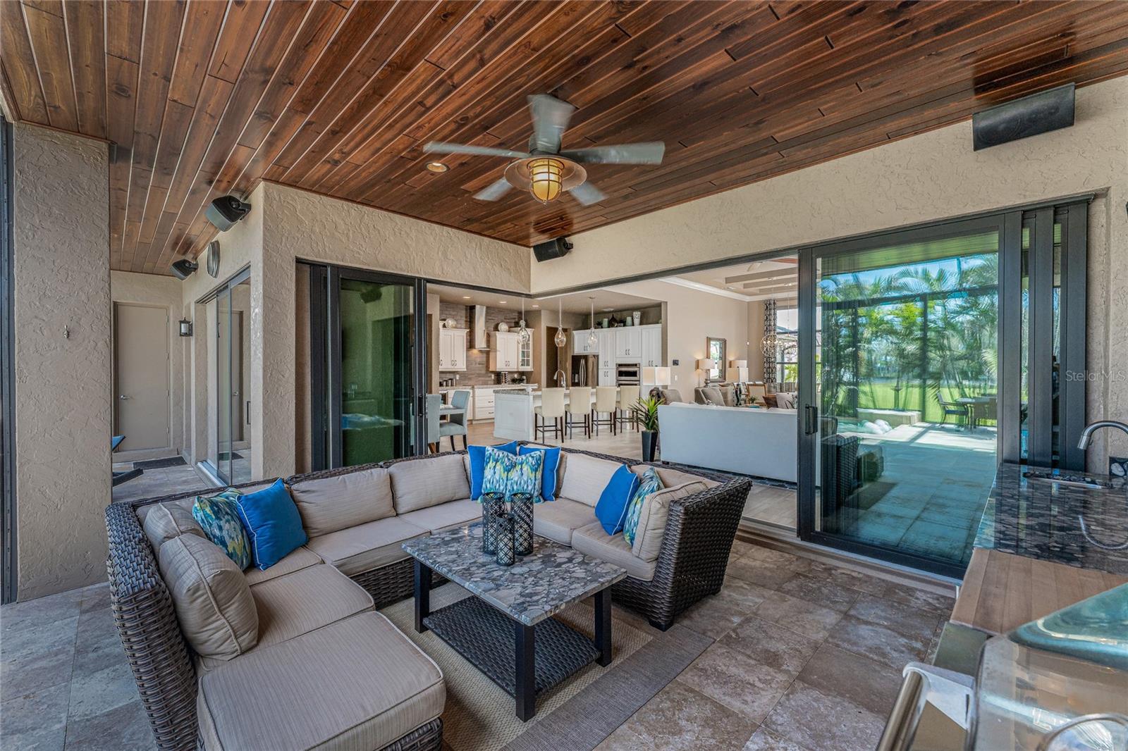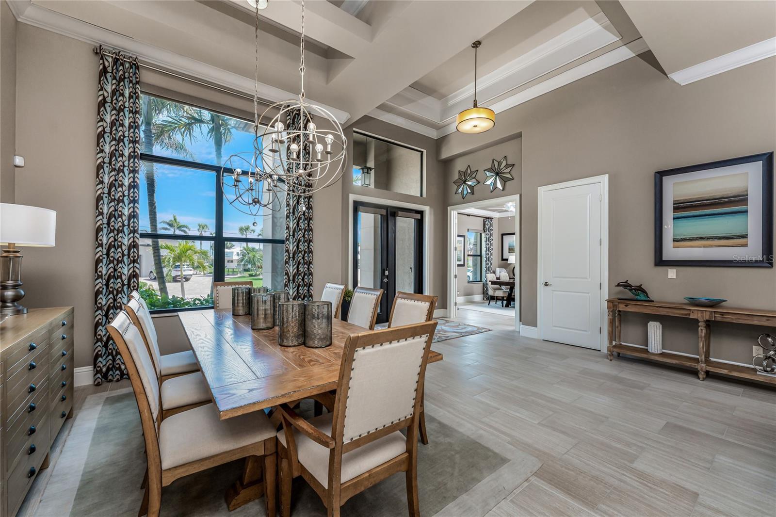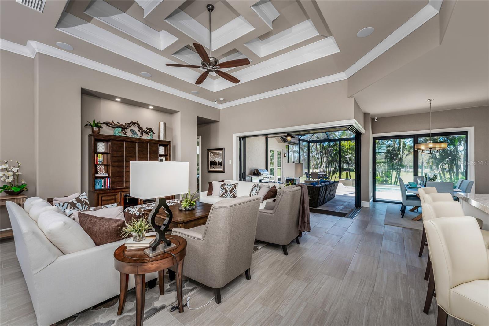 BACK ON THE MARKET DUE TO BUYER DEFAULT - NOW AN OPPORTUNITY FOR YOU! Welcome to your dream home! This former builder's model, crafted by award-winning PGI Homes in 2014, blends comfort, style, & luxury. Offered turnkey furnished including items in the garage, this 3-bedroom, 2-bath home with an office spans 2,680 sq. ft. features an oversized lanai and pool area. A circular paver driveway with lush landscaping leads to an elegant double-door entry. Inside, soaring ceilings with crown molding, an open-concept design and abundant natural light highlight the beautifully furnished space. The great room features a coffered ceiling, while the dining room showcases a unique architectural ceiling. The gourmet kitchen boasts a large 3" edge Silestone quartz countertop with the center island seating for four, a striking tile backsplash, KitchenAid stainless steel appliances, an induction cooktop with a sleek hood, and ample storage in classic white cabinetry. The luxurious primary suite includes a sitting area, French doors to the pool, a tray ceiling, and elegant lighting. Two walk-in closets lead to a spa-like bath with a crystal chandelier, soaking tub, Roman shower with dual heads, and dual vanities with Silestone quartz counters. The guest wing offers two spacious bedrooms and a pool-access bath with custom tile and a glass-walled shower. A standout 3-car garage features wood flooring, crown molding, recessed lighting, and newly installed independent climate control ideal for vehicles or a home gym. BRAND NEW York 5 ton, 16.2 seer AC installed August 2025. Smart home features include a Z-Wave system, security cameras, & a Nuvo sound system with built-in speakers. Additional peace of mind comes with all impact windows and doors, plus electric Kevlar protection across the back lanai and a 2023 stone-coated metal roof. Disappearing sliders open to a wood-ceilinged lanai, summer kitchen, and wall-mounted TV. The expansive travertine pool deck boasts a heated pool with fountains, a sun platform, a submerged granite bar, and multiple lounging area all overlooking a gorgeous lake view. Close to Ponce de Leon Park and minutes to Fishermen's Village - THIS IS YOUR DREAM HOME!