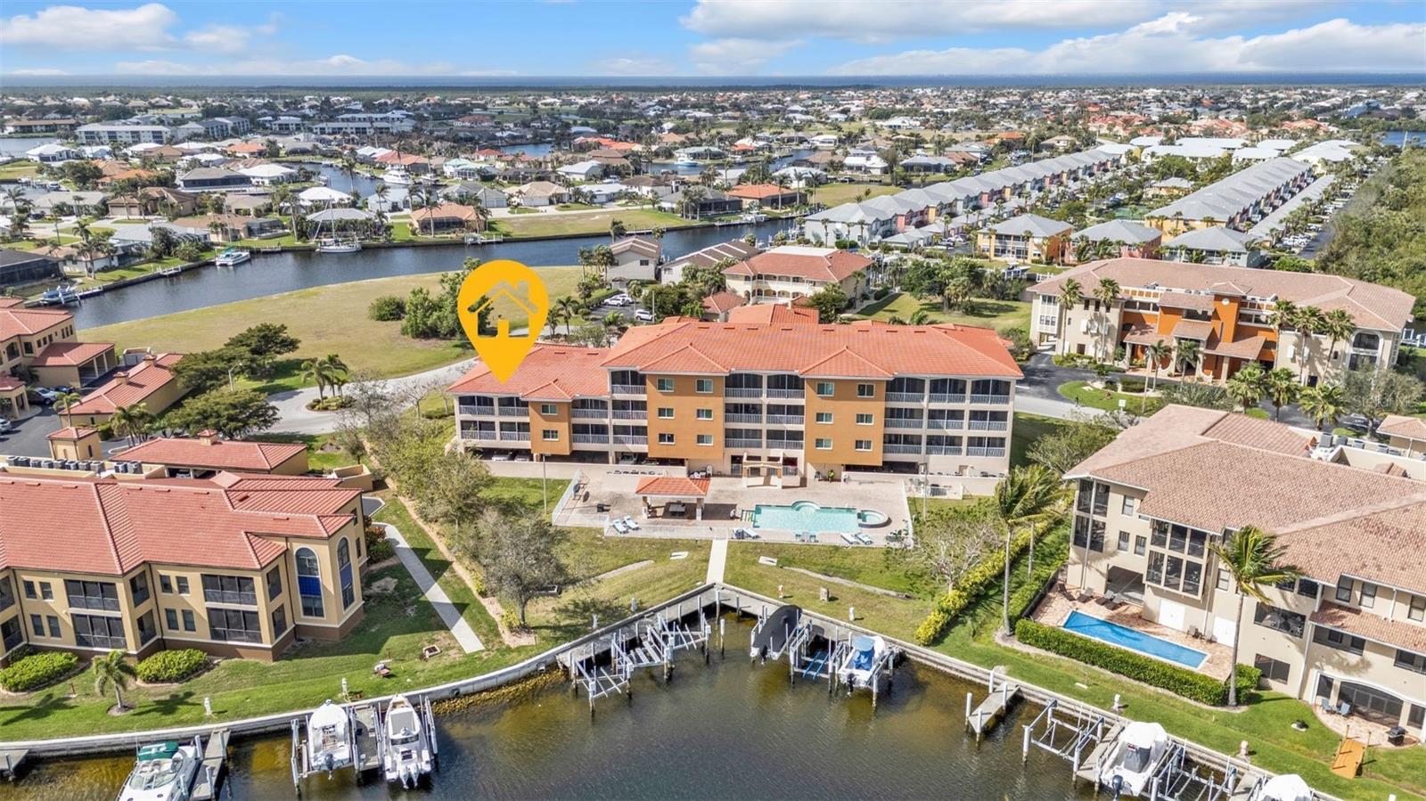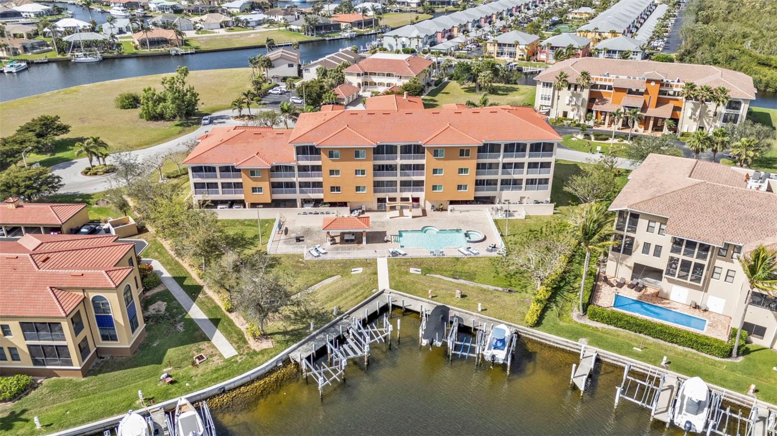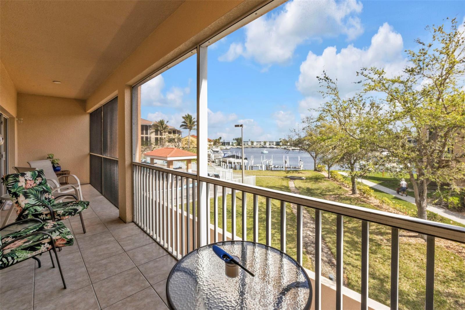 DEEDED BOAT SLIP! Seller is offering Buyer $5,000 in allowances for repairs at closing. This spacious end-unit, partially furnished condo offers breathtaking canal and pool views from the screened balcony, blending luxury and waterfront living seamlessly. The 27x16 Great Room flows effortlessly onto the balcony, perfect for relaxing or entertaining. The gourmet kitchen boasts granite countertops, cherry wood cabinets, and stainless steel appliances. The primary suite features two closets (one walk-in), balcony access, and a spa-like ensuite with a glass-enclosed shower, soaking tub, and double vanity.Two guest bedrooms share a Jack and Jill bathroom, while a separate half bath provides added convenience. This condo also includes lighted tray ceilings, impact windows, and a private storage room (#7). Take the elevator or the stairs down to your 2 ASSIGNED parking spaces, storage room, or the DEEDED BOAT SLIP. Enjoy resort-style amenities, including a heated pool and spa, grill & gazebo area, and an assigned boat slip for easy water access. With two reserved under-building parking spaces and partial furnishings included, this waterfront gem is move-in ready! You will be conveniently located minutes from Fisherman's Village, downtown Punta Gorda, shopping and a quick drive to I-75.Schedule your private showing today!