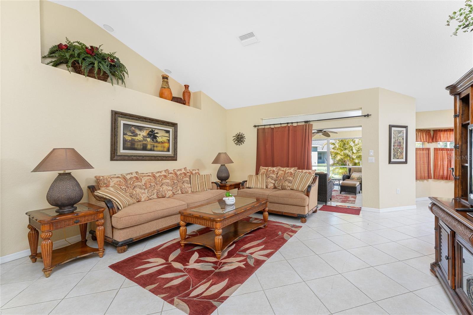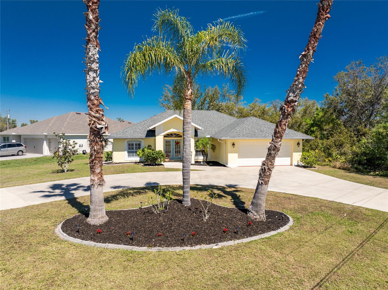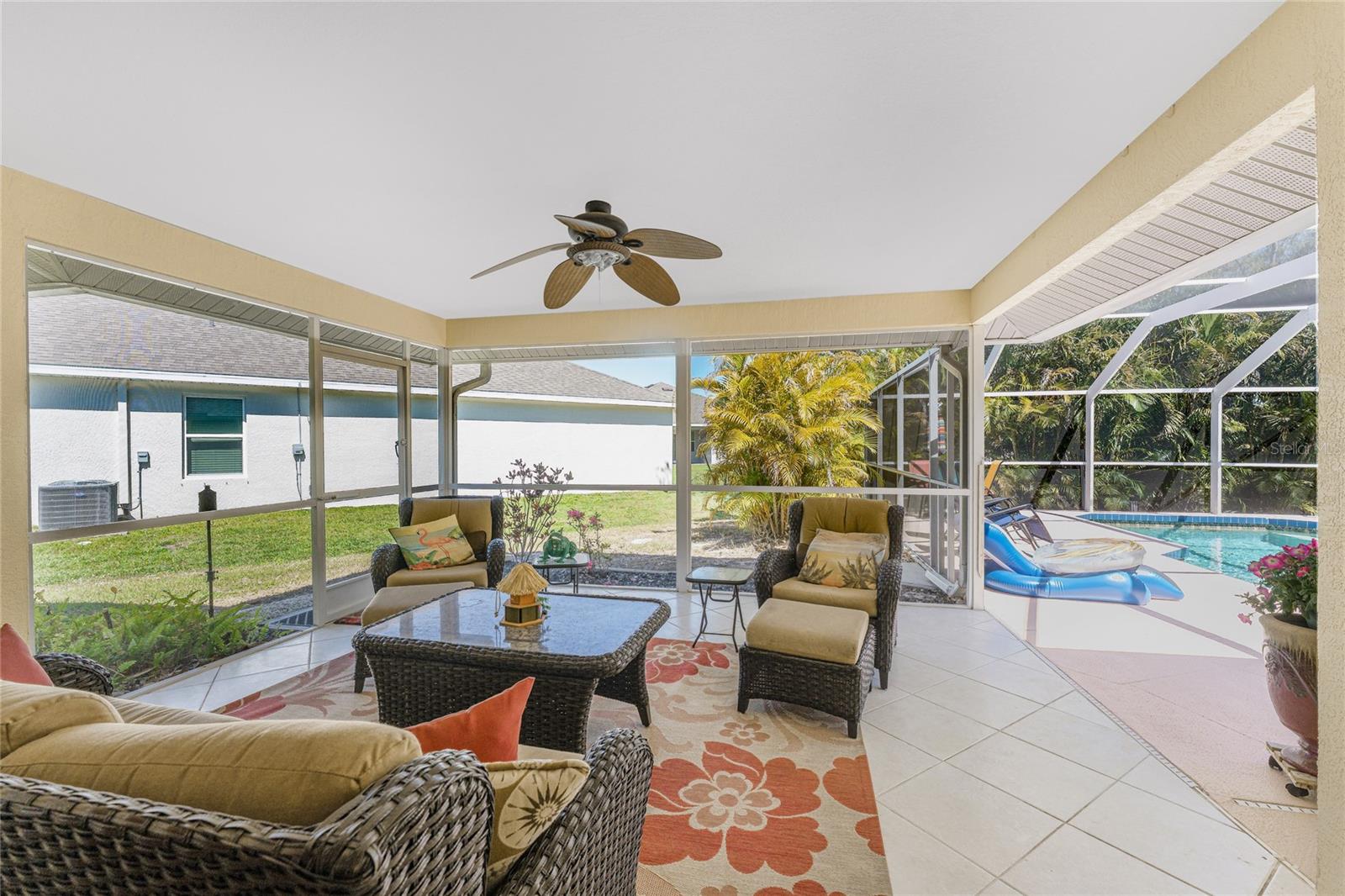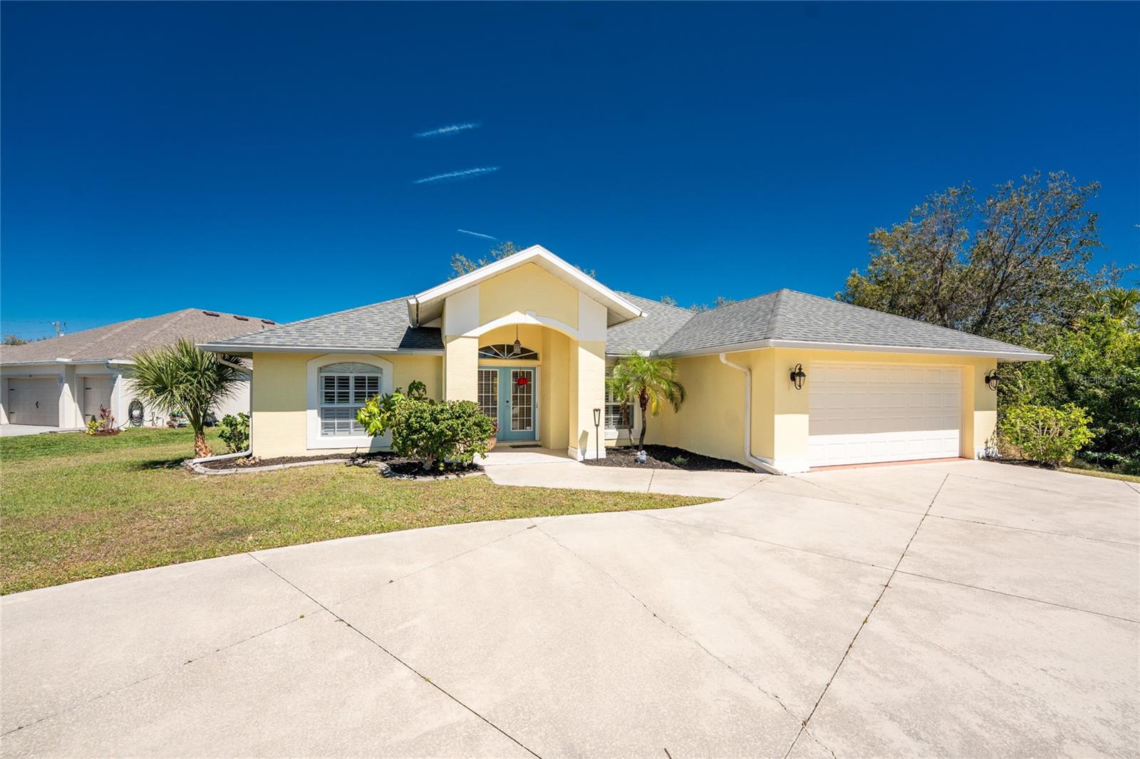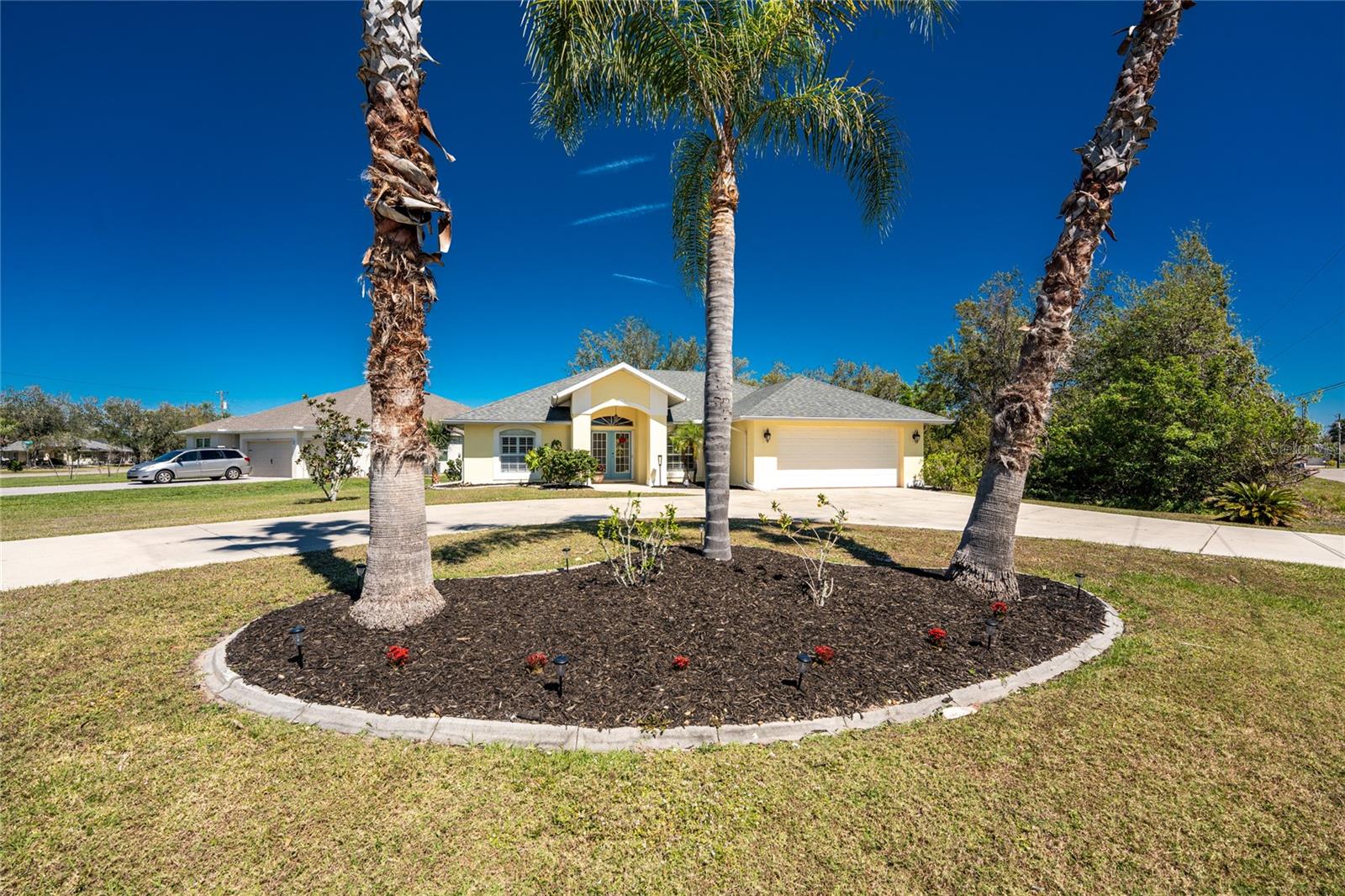 Impressive 3 Bedroom, 2 Bathroom home with attached 2 Car Garage located in the desirable deed restricted community of DEEP CREEK. This light and bright home offers a Foyer with coat closet, Great Room, Den/Office with wood floor off the Great Room, well equipped Kitchen, Inside Laundry Room and screened Lanai. The spacious Great Room features a cathedral ceiling, diagonal lay tile floor, plant shelves and sliding glass doors to the Lanai. The Kitchen offers a breakfast bar, built in desk, dining area overlooking the pool and pantry closet. Appliances include refrigerator, dishwasher, built in microwave, oven/range. Good cabinet and counter space. The Inside Laundry has a washer and dryer, laundry tub, wall cabinet and two closets. The Master Bedroom suite features tile flooring, walk in closet, plant shelves, Lanai access via sliding glass doors and private bathroom. The Bathroom offers a large walk in shower, dual sinks and Corian counters. There are two generous sized guest bedrooms, both with carpet and double closets. The guest bathroom has Corian counters and a tub/shower combination. Your living space extends via sliding glass doors to the screened Lanai with large covered area, 12x24 inground pool and plenty of deck for sunbathing. Other features include: circular driveway, hurricane shutters, double glass door entry with transom window. Utilities are county water and sewer. This home is minutes from Golf, shopping, dining, entertainment, I-75- and is a short drive to medical care and waterfront parks. This home is perfect for a family, winter retreat or investment property, It is a beautiful home in a great community!