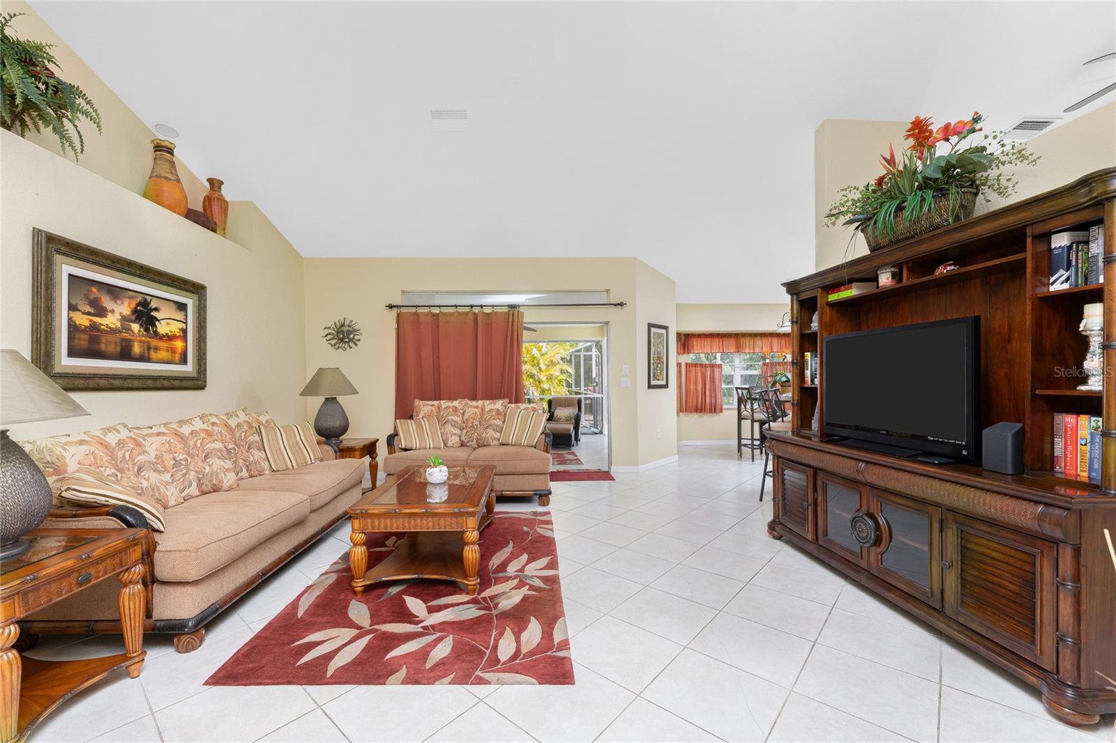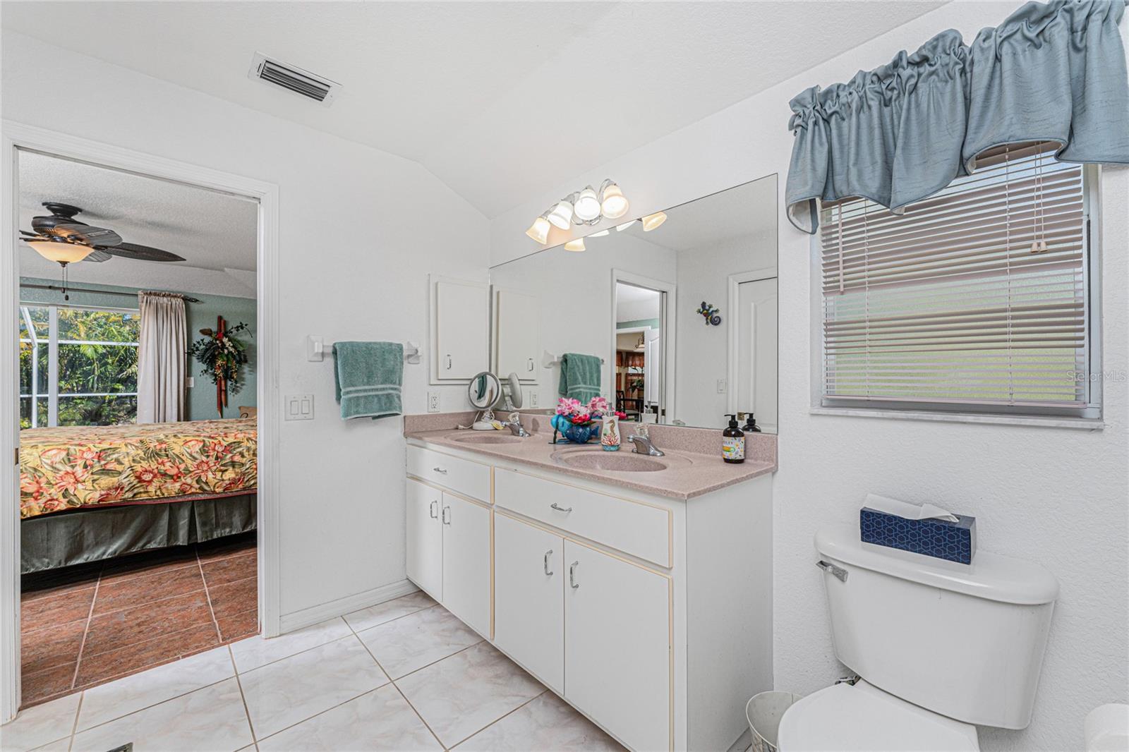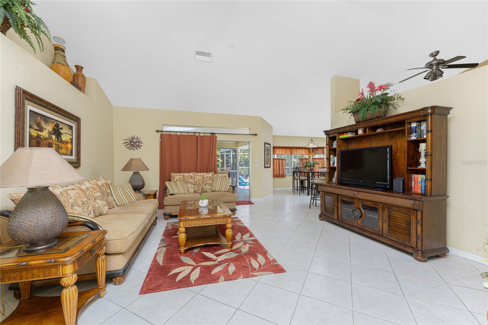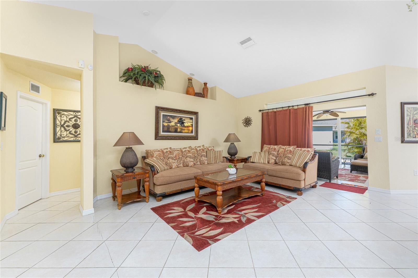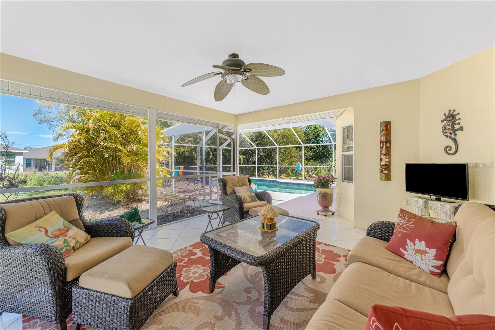 Impressive 3 Bedroom, 2 Bathroom home with attached 2 Car Garage located in the desirable deed restricted community of DEEP CREEK. This light and bright home offers a Foyer with coat closet, Great Room, Den/Office with wood floor off the Great Room, well equipped Kitchen, Inside Laundry Room and screened Lanai. The spacious Great Room features a cathedral ceiling, diagonal lay tile floor, plant shelves and sliding glass doors to the Lanai. The Kitchen offers a breakfast bar, built in desk, dining area overlooking the pool and pantry closet. Appliances include refrigerator, dishwasher, built in microwave, oven/range. Good cabinet and counter space. The Inside Laundry has a washer and dryer, laundry tub, wall cabinet and two closets. The Master Bedroom suite features tile flooring, walk in closet, plant shelves, Lanai access via sliding glass doors and private bathroom. The Bathroom offers a large walk in shower, dual sinks and Corian counters. There are two generous sized guest bedrooms, both with carpet and double closets. The guest bathroom has Corian counters and a tub/shower combination. Your living space extends via sliding glass doors to the screened Lanai with large covered area, 12x24 inground pool and plenty of deck for sunbathing. Other features include: circular driveway, hurricane shutters, double glass door entry with transom window. Utilities are county water and sewer. This home is minutes from Golf, shopping, dining, entertainment, I-75- and is a short drive to medical care and waterfront parks. This home is perfect for a family, winter retreat or investment property, It is a beautiful home in a great community!
