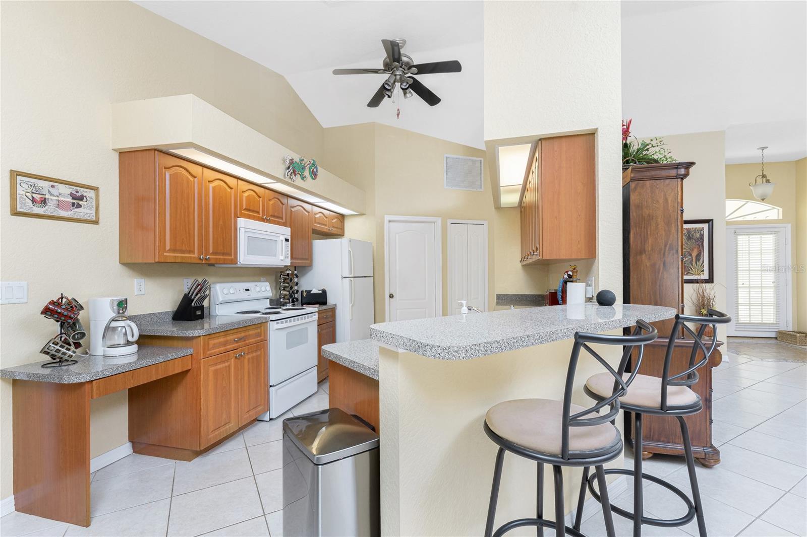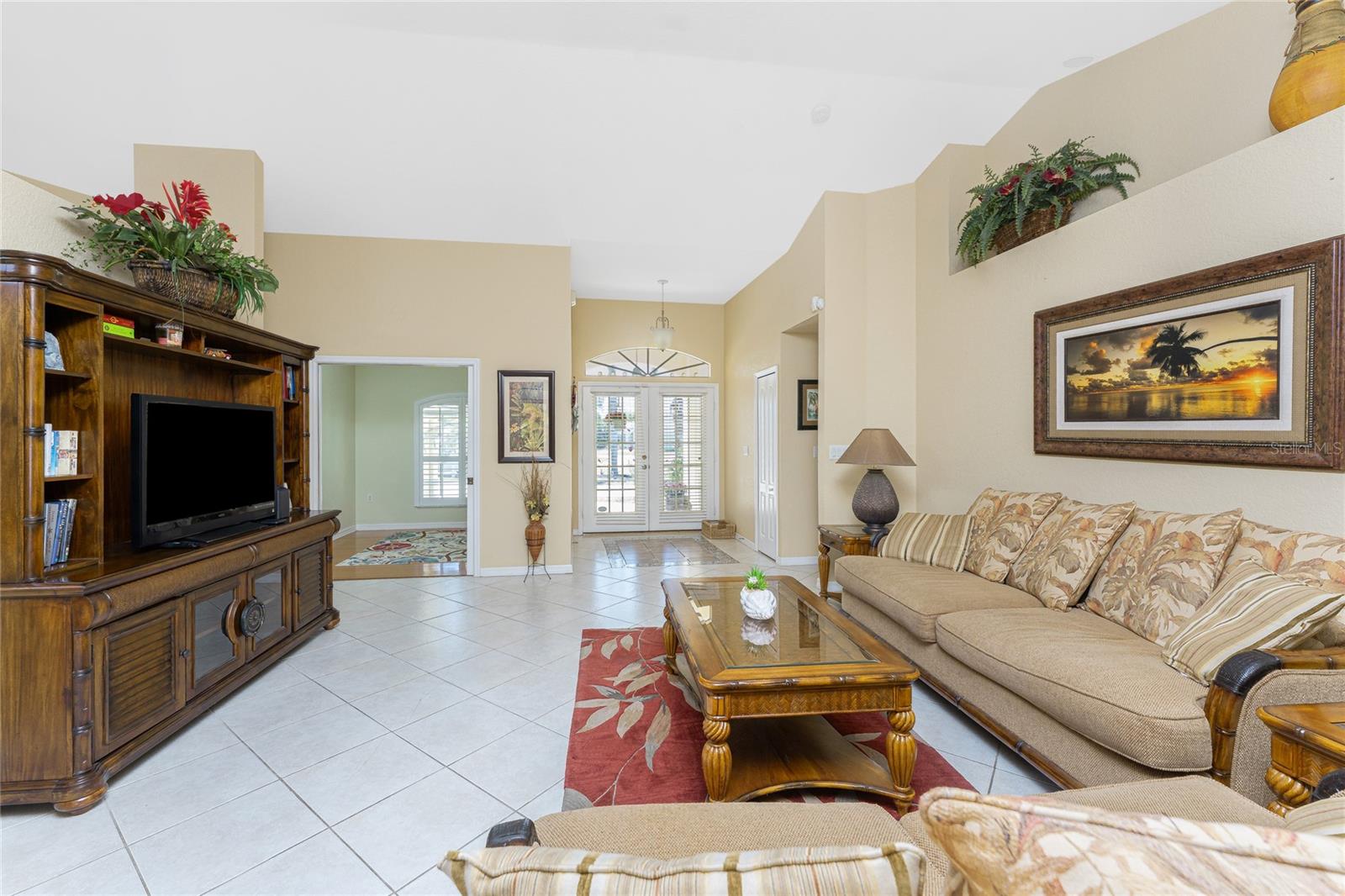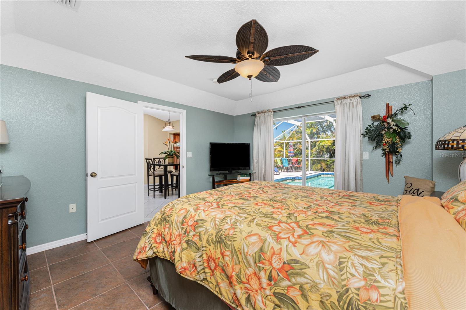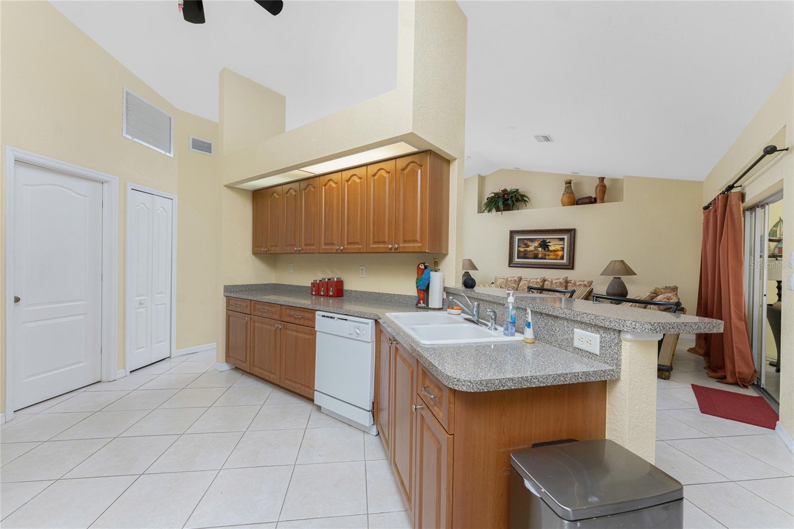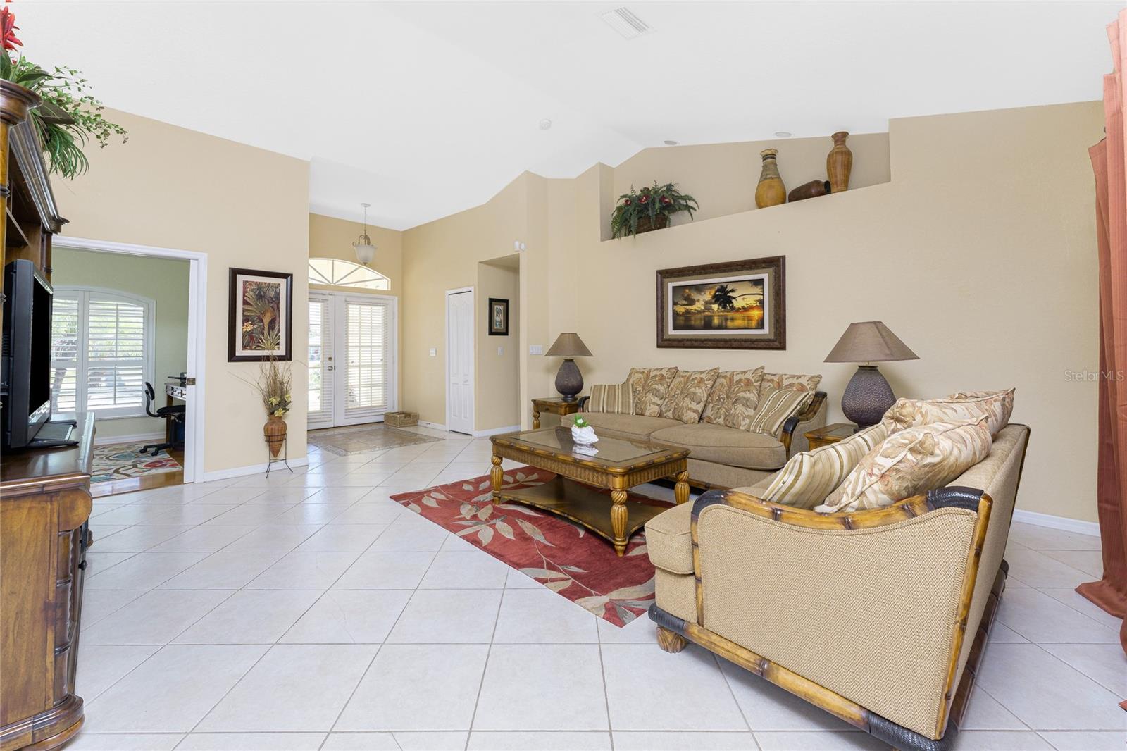 Impressive 3 Bedroom, 2 Bathroom home with attached 2 Car Garage located in the desirable deed restricted community of DEEP CREEK. This light and bright home offers a Foyer with coat closet, Great Room, Den/Office with wood floor off the Great Room, well equipped Kitchen, Inside Laundry Room and screened Lanai. The spacious Great Room features a cathedral ceiling, diagonal lay tile floor, plant shelves and sliding glass doors to the Lanai. The Kitchen offers a breakfast bar, built in desk, dining area overlooking the pool and pantry closet. Appliances include refrigerator, dishwasher, built in microwave, oven/range. Good cabinet and counter space. The Inside Laundry has a washer and dryer, laundry tub, wall cabinet and two closets. The Master Bedroom suite features tile flooring, walk in closet, plant shelves, Lanai access via sliding glass doors and private bathroom. The Bathroom offers a large walk in shower, dual sinks and Corian counters. There are two generous sized guest bedrooms, both with carpet and double closets. The guest bathroom has Corian counters and a tub/shower combination. Your living space extends via sliding glass doors to the screened Lanai with large covered area, 12x24 inground pool and plenty of deck for sunbathing. Other features include: circular driveway, hurricane shutters, double glass door entry with transom window. Utilities are county water and sewer. This home is minutes from Golf, shopping, dining, entertainment, I-75- and is a short drive to medical care and waterfront parks. This home is perfect for a family, winter retreat or investment property, It is a beautiful home in a great community!