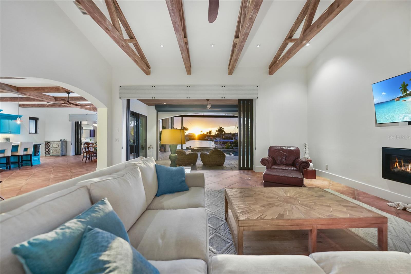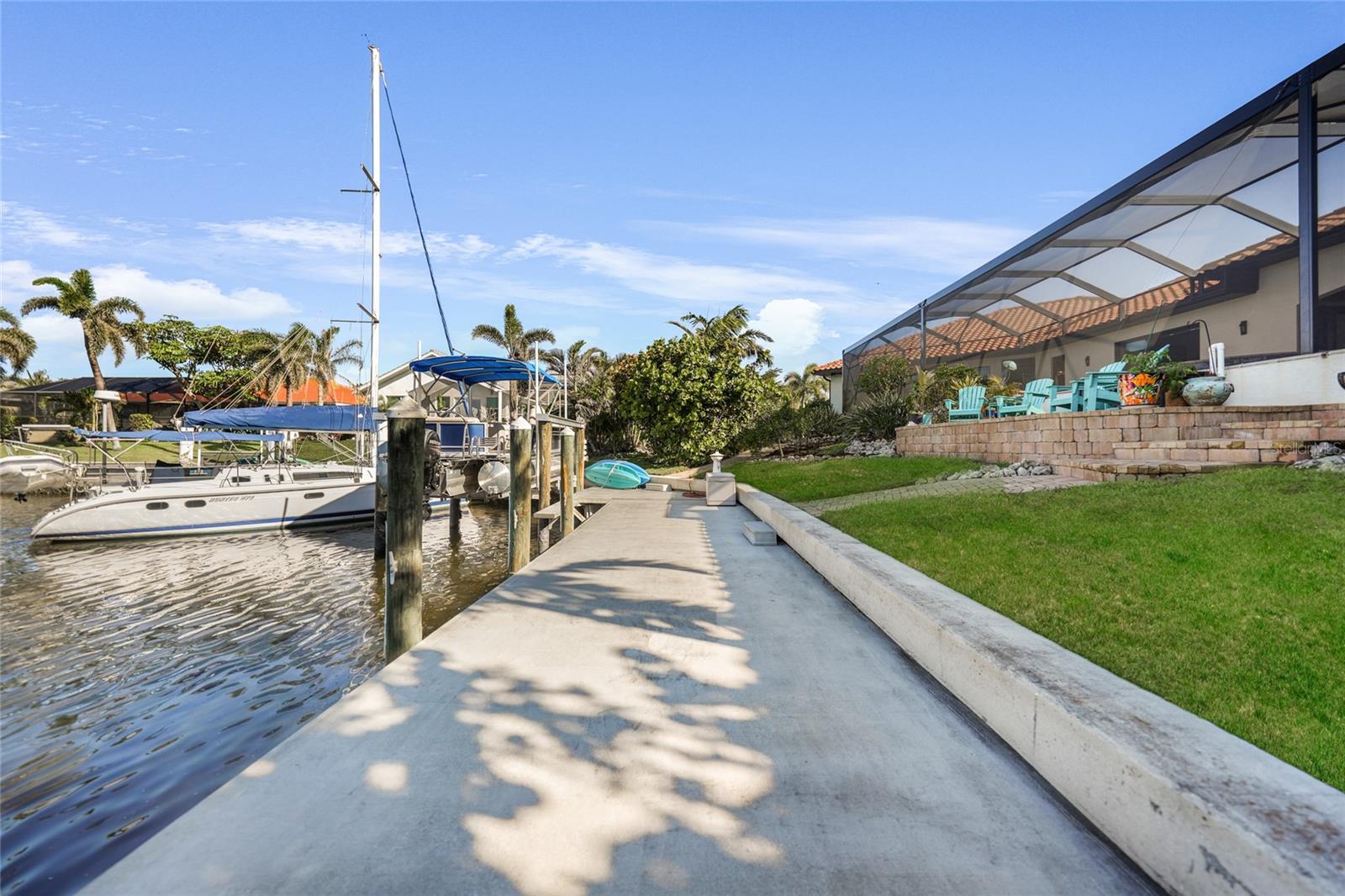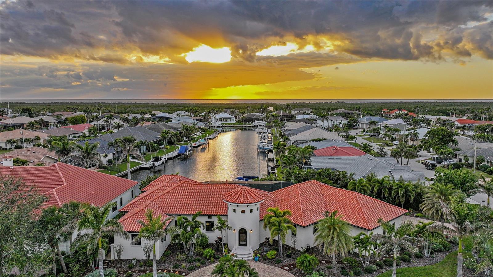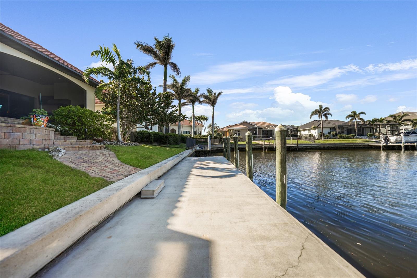 A masterpiece of modern elegance, 1111 San Mateo Drive in the prestigious Punta Gorda Isles redefines luxury living. Built in 2019, this exquisite 5-bedroom, 3-bathroom estate spans an impressive 4,128 square feet on over half an acre of lushly landscaped grounds. A grand, private driveway leads to an oversized two-car garage with an additional workshop space, setting the tone for the sophistication that awaits within. Step inside and experience a seamless open-concept design that exudes contemporary refinement. Towering ceilings adorned with gorgeous wood beams, expansive impact windows and doors, and impeccable finishes bathe the interiors in natural light, creating a space that is both breathtaking and inviting. The chef's kitchen is a true showpiece, boasting top-of-the-line appliances, custom cabinetry, and a sprawling island, all set beneath stunning ceiling beams that add warmth and character to the heart of the home. The primary suite is a sanctuary of indulgence, complete with a spa-like en-suite bath, dual vanities, a freestanding soaking tub, and a luxurious walk-in shower. The additional bedrooms offer versatile spaces for guests, home offices, or private retreats. Designed for both entertainment and serenity, walk out to the expansive backyard which is a private paradise, featuring a sparkling pool, an incredible outdoor kitchen, and breathtaking panoramic views down the length of the canal. This home also boasts an oversized dock with its own lift! Whether hosting a lavish gathering or enjoying a peaceful evening, the unparalleled sunset views over the water create an ambiance of pure magic. Situated in one of Punta Gorda's most sought-after locations, this home offers unrivaled access to dining, boutique shopping, and waterfront parks, all while being moments from world-class boating and recreation. This is more than a home--it's a statement of uncompromising luxury, where every detail has been meticulously designed to capture the essence of coastal elegance.