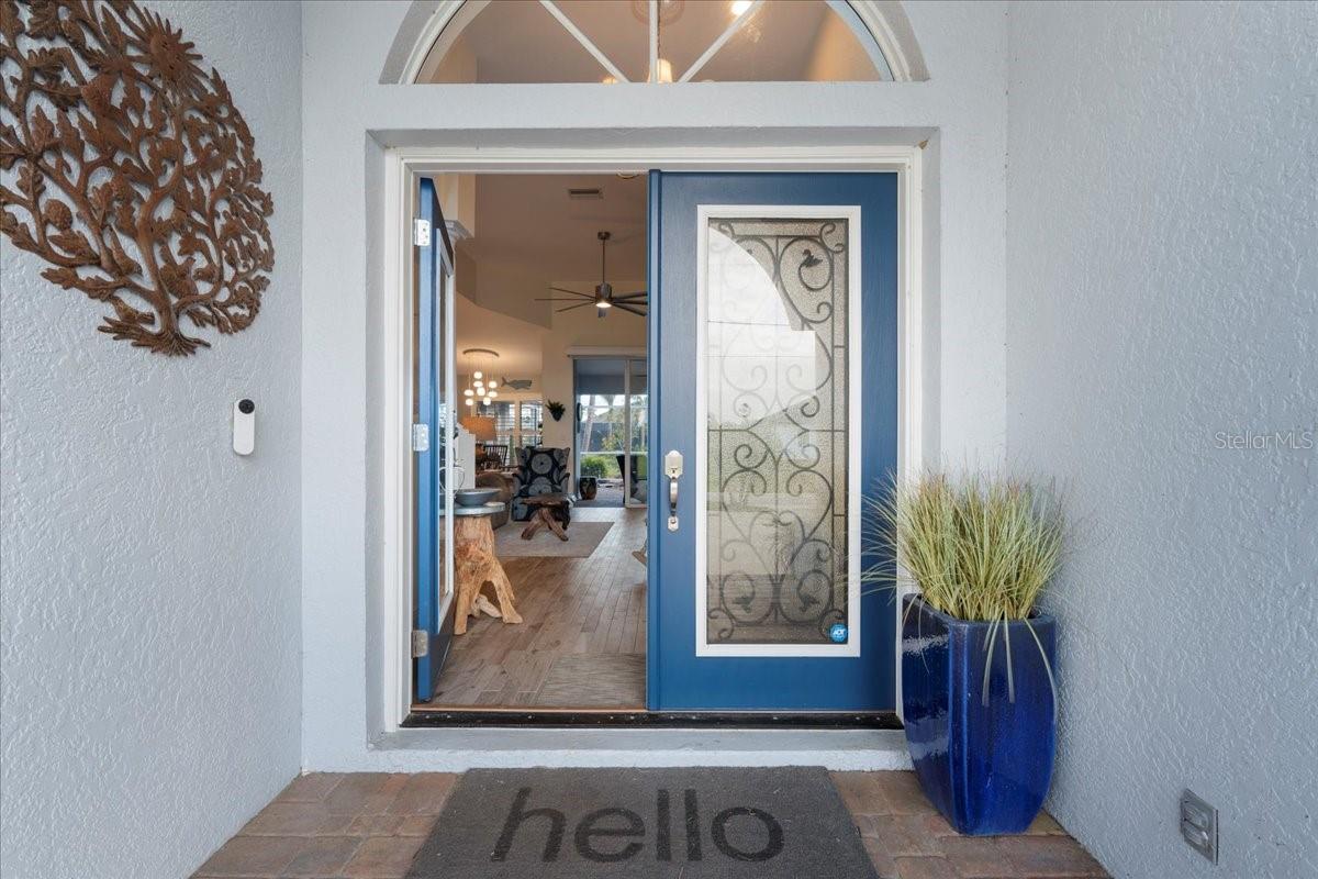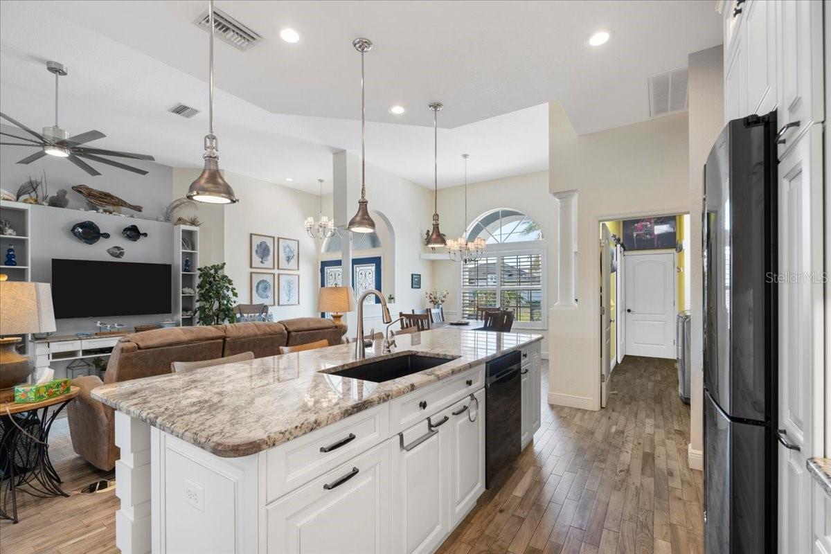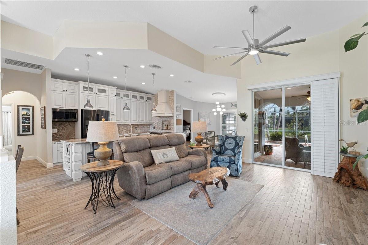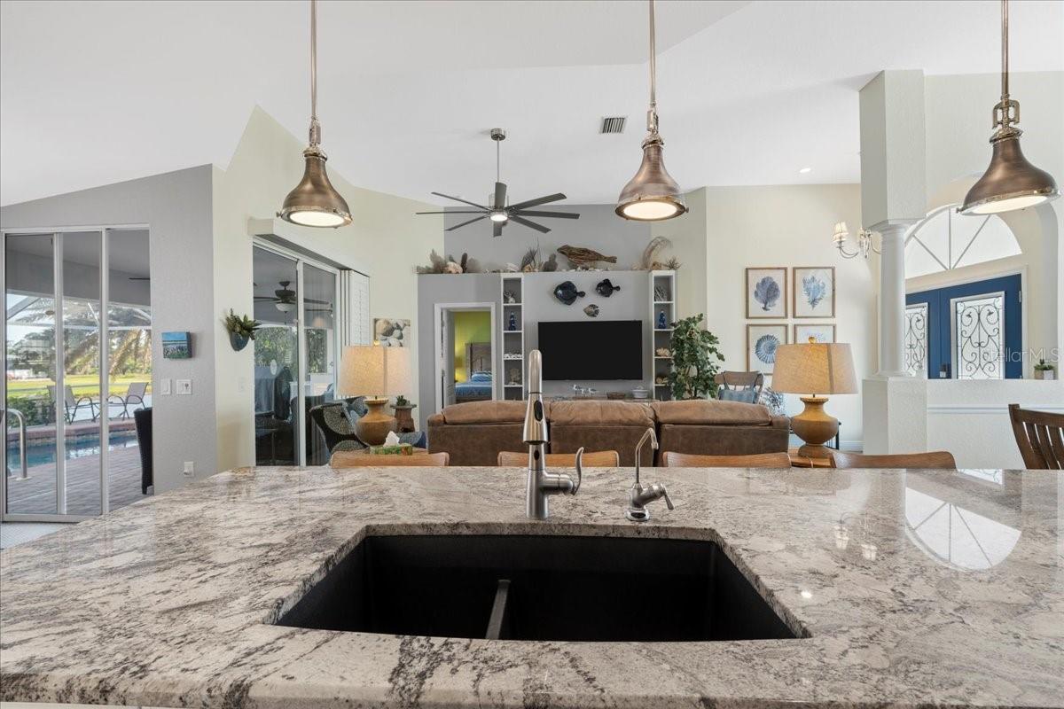 **New Year, New Price!!** Welcome to 1091 Rotonda Circle, a Beautiful Waterfront Pool home that perfectly blends style and comfort. This spacious residence features a highly sought after open floor plan, with 3 bedrooms and 3 and 1/2 bathrooms, making it ideal for both relaxation and entertaining. This unique layout showcases rarely found, DUAL PRIMARY EN-SUITES, providing the utmost privacy and convenience for both you and your guest. Perfect for multi generational families too. Each space is thoughtfully designed, offering ample space and elegant finishes. Upon entering through the glass inlaid double door entry, your eyes are immediately drawn to the captivating luxury wood plank tile that flows seamlessly throughout the main living area, accompanied by 5 and 1/4 inch baseboards adding a refined touch to each room. At the heart of the home, the gourmet kitchen is a true chef's dream. It boasts large custom cabinets accented perfectly with granite countertops, an absolute stunning backsplash, and a huge central island with additional hand created custom trim work, making it ideal for meal prep or gathering with family and friends. New stainless steel appliances and upgraded fixtures round out this remarkable space! Natural light cascades throughout the home via large windows and sliders highlighted with everyone's favorite plantation shutters! Speaking of sliders, walk through any of the multiple sets leading outside to the expansive and extended lanai, where you'll find an oasis like none other. Take a swim in the refreshing pool, relax in the spa or simply enjoy the outdoor kitchen area -- perfect for cooking and dining while taking in the serene waterfront views. The lush tropical landscaping complete with curbing, surrounds the pool and spa area, giving a private retreat for relaxation. For added enjoyment, there's also a bocce/cornhole area that provides plenty of space for outdoor games and further entertainment. If you weren't sold already, then let the fact that this meticulously maintained home has been fully inspected top to bottom prior to listing, thus receiving our certified move-in-ready seal of approval! 1091 Rotonda Circle truly offers the perfect balance of indoor elegance with outdoor beauty, making it the perfect place to unwind and entertain. It's the epitome of waterfront living and offers a lifestyle of luxury and tranquility. So don't let your Florida Water Front Dream Home become someone else's address, set up your showing today! ** Don't forget to check out the Virtual Walk Through and Fly Through Video of this amazing home!! **