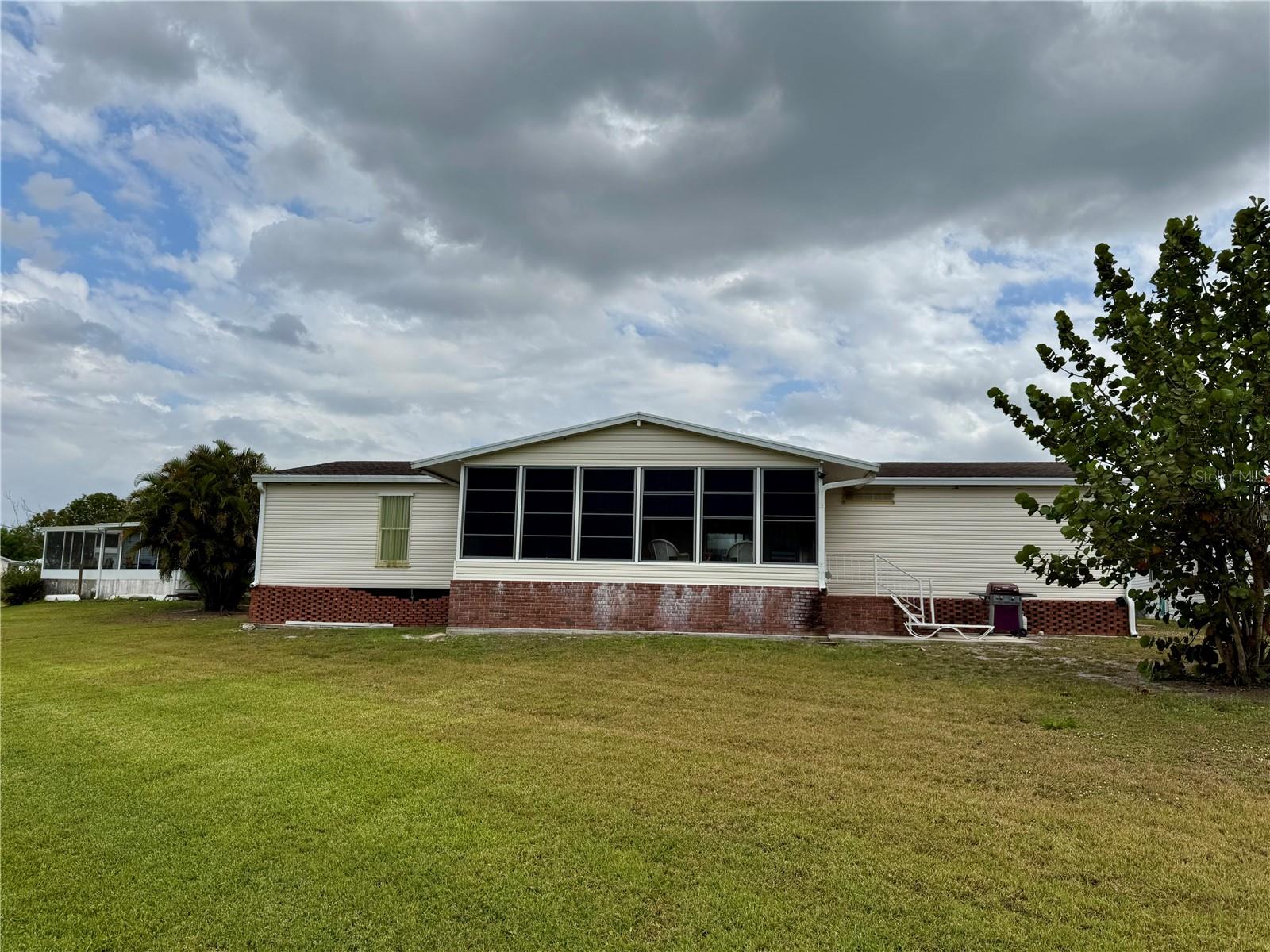 This Siesta Key 2000-built waterfront manufactured home offers 1,755 sq ft of living space, featuring 3 bedrooms, 2 bathrooms, and an office/den. The open-concept design includes a great room and an eat-in kitchen, providing a spacious and inviting atmosphere. Additional amenities include a screened porch, a 2-car garage, and a 14-foot riverfront dock, perfect for boating enthusiasts. Located in a 55+ community, residents can enjoy access to a clubhouse, pool, 9 hole golf course and a small boat ramp enhancing the overall living experience. There is also an adjacent landowner that allows residents to store boats, RV's, and trailers on the property adjacent to the pool parking lot at no extra charge. What a life, leave the cold north in your RV, drive to Huntercreek, park your Rv and live in your home with river access, fishing and golfing, this is your opportunity to enjoy the best of both seasons!