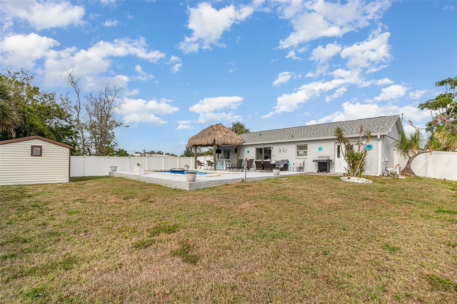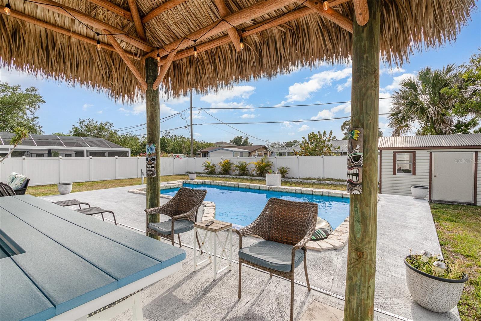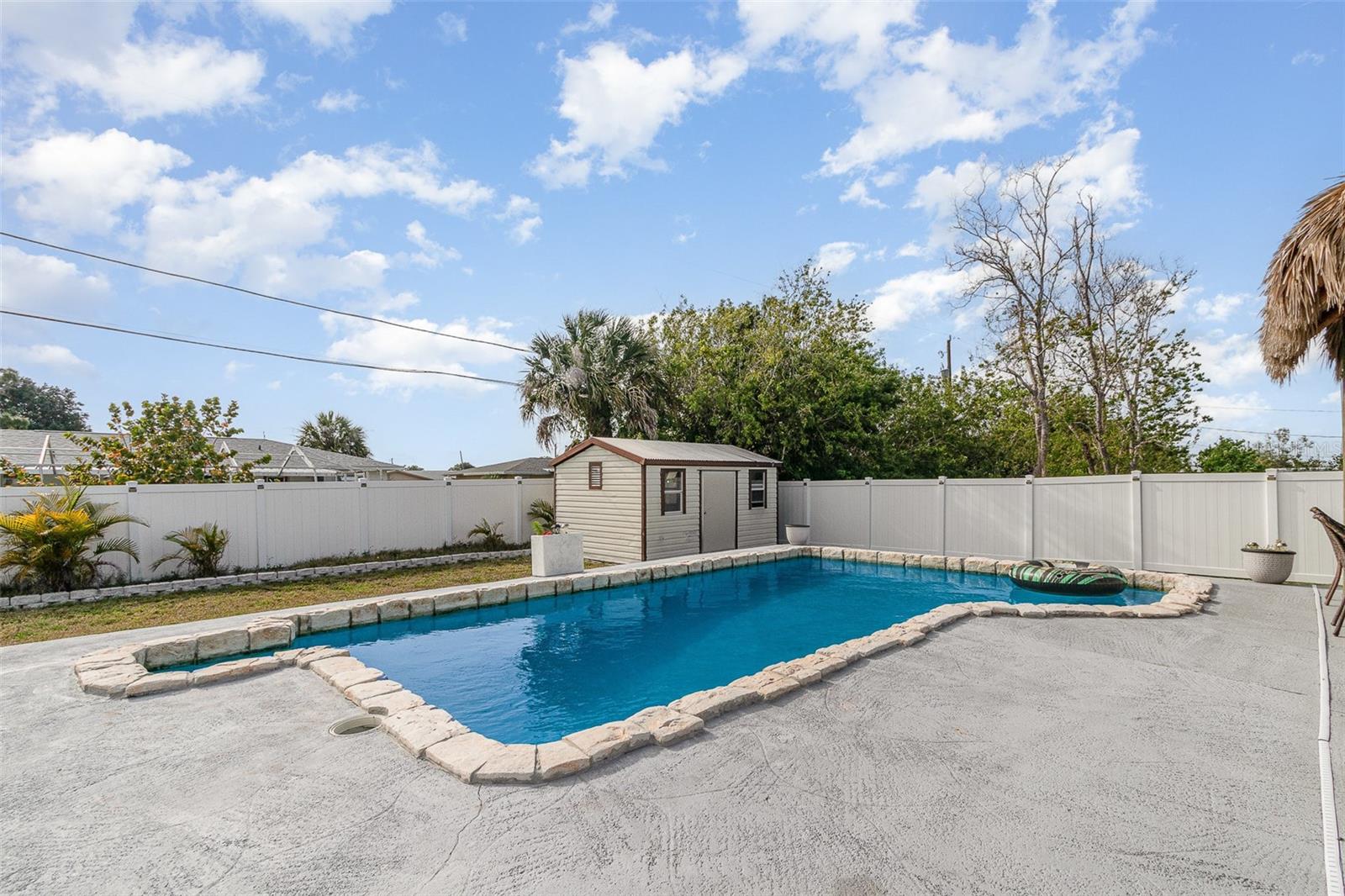 Think you can't afford it? THINK AGAIN! There is a great program now for Buyers to access up to $75,000 to purchase condos and homes in Charlotte County!Cute 3 bedroom 2 bath home, ready for new owner! 2 car attached garage. Pool in backyard, 28 x 14, backyard features a Tiki bar, with stools, and covered, great spot to entertain! Kitchen is fully equipped with all appliances included, plenty of cabinets, pantry. Bedrooms have nice closet space, and ceiling fans. 2 baths one has jetted tub, and the other a shower no tub. Shed in backyard, has electricity and wood floor. Great for hobbies, or storage. Garage has laundry inside, along with mechanicals, pull down stairs for storage in attic area. Back yard has vinyl fencing. Feels like country yet so close to everything!