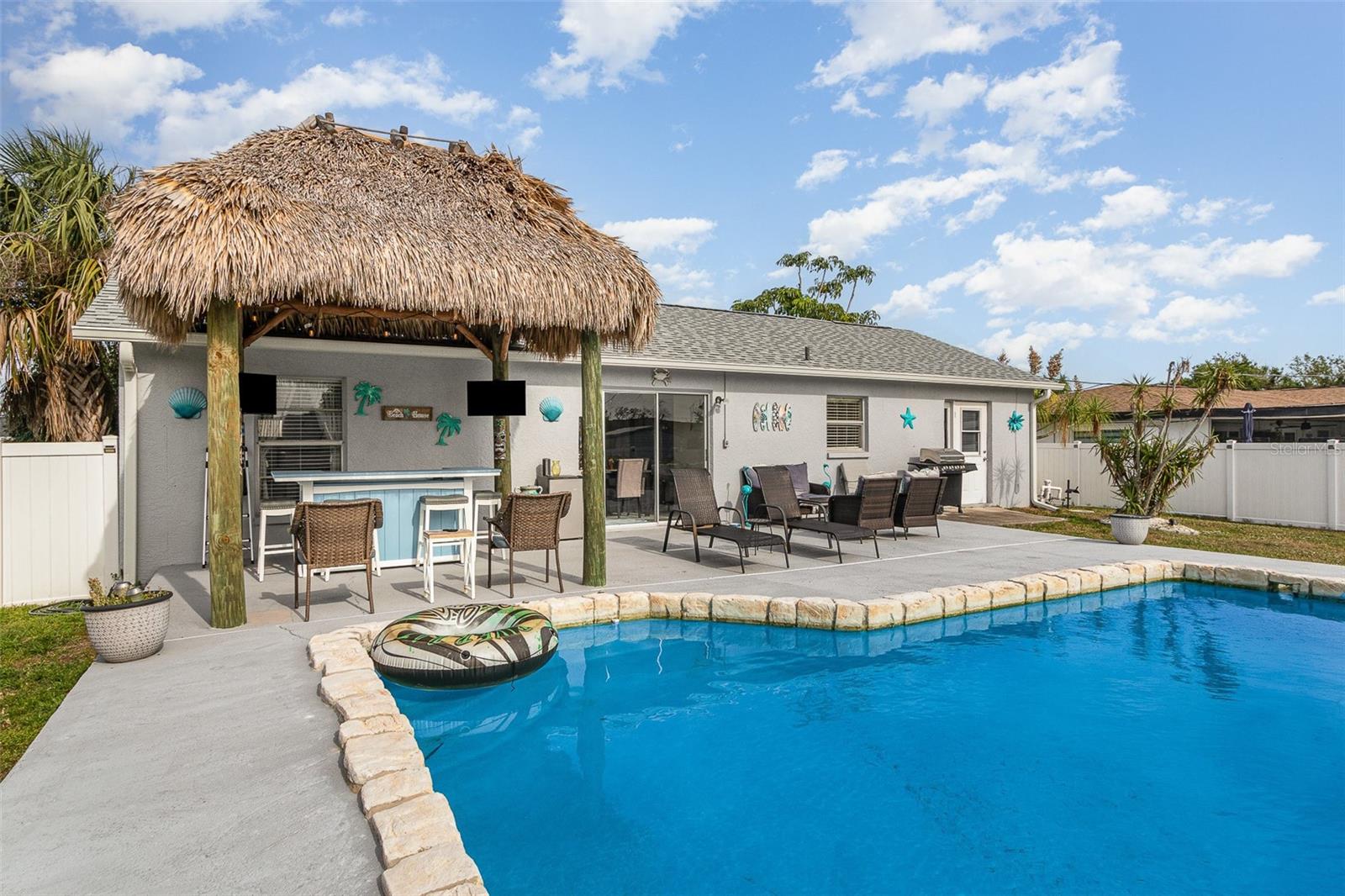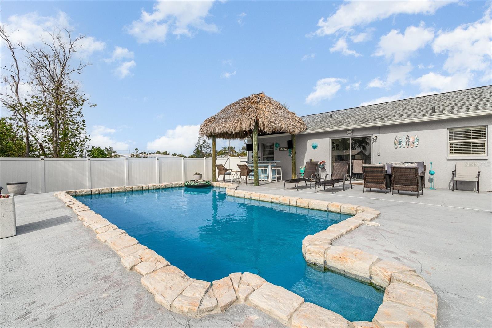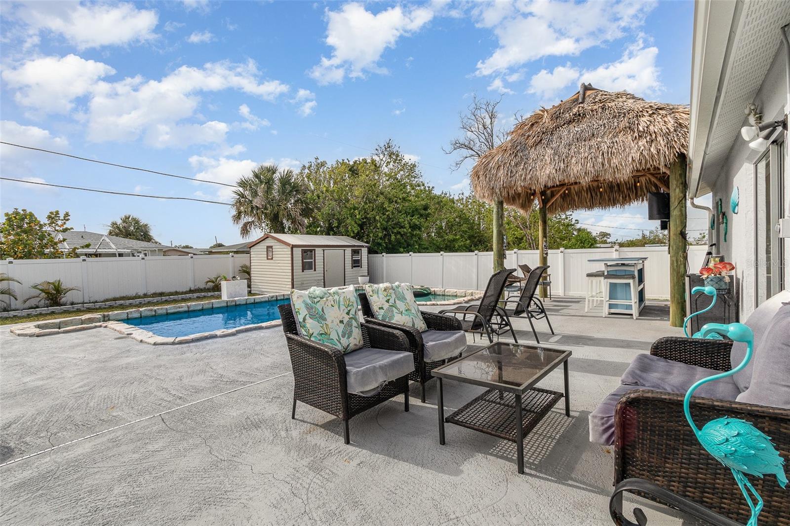 Think you can't afford it? THINK AGAIN! There is a great program now for Buyers to access up to $75,000 to purchase condos and homes in Charlotte County!Cute 3 bedroom 2 bath home, ready for new owner! 2 car attached garage. Pool in backyard, 28 x 14, backyard features a Tiki bar, with stools, and covered, great spot to entertain! Kitchen is fully equipped with all appliances included, plenty of cabinets, pantry. Bedrooms have nice closet space, and ceiling fans. 2 baths one has jetted tub, and the other a shower no tub. Shed in backyard, has electricity and wood floor. Great for hobbies, or storage. Garage has laundry inside, along with mechanicals, pull down stairs for storage in attic area. Back yard has vinyl fencing. Feels like country yet so close to everything!
