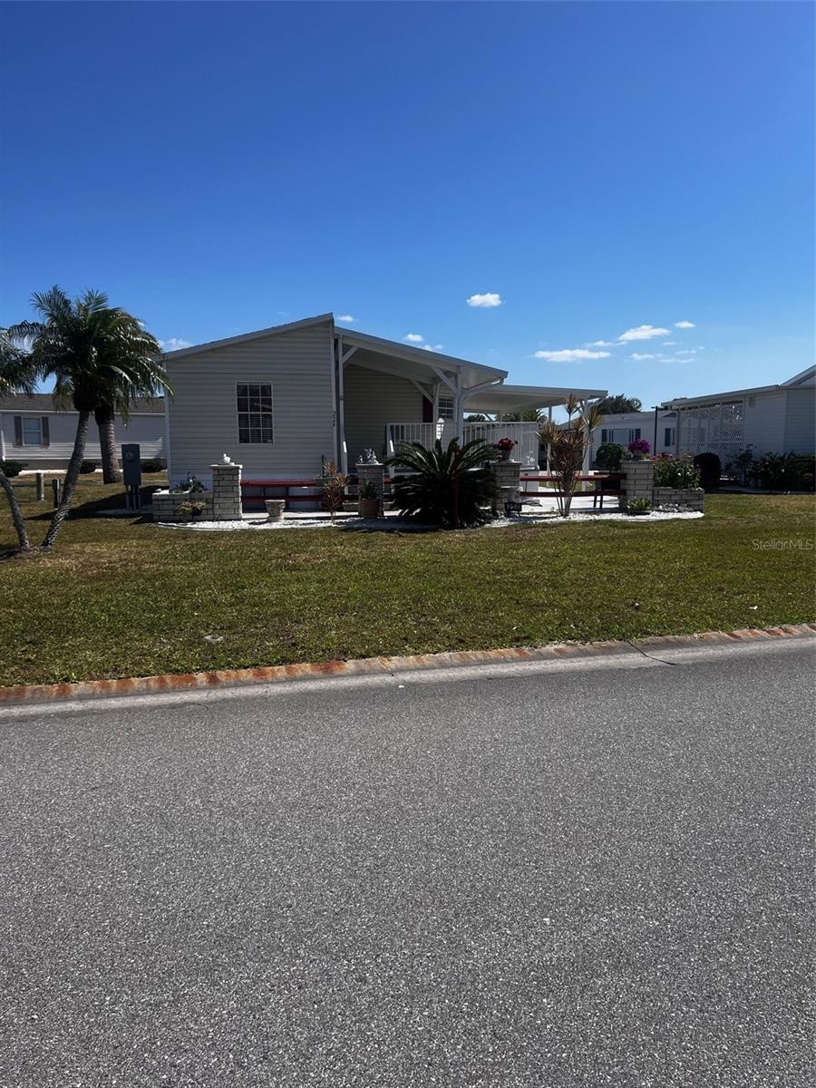 Port Charlotte Village was voted #1 manufactured home park in Charlotte county in 2024. NOT in Flood Zone. Charming 2-bedroom, 2-bath home in a welcoming 55+ manufactured home community with a low HOA. This spacious home features an open floor plan with high ceilings and plantation shutters throughout, creating a light and airy atmosphere. The large kitchen offers ample cabinet space and a generous island that overlooks the living room, making it perfect for entertaining or everyday living. Durable vinyl flooring runs throughout the home for easy maintenance. Step outside to enjoy a covered patio with views of a beautifully maintained garden and friendly Village Drive--perfect for relaxing or greeting neighbors. The property includes a long driveway with additional exterior plumbing and electrical, a non-slip Trex deck for added safety, and a large shed built in 2019 for extra storage. Major updates include a new roof in 2017 and an HVAC system installed in 2019, offering peace of mind. Don't miss this opportunity for comfortable, low-maintenance living in a vibrant community. Professional photos coming soon